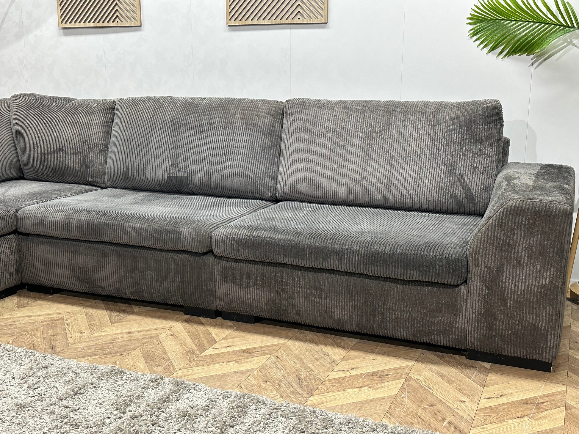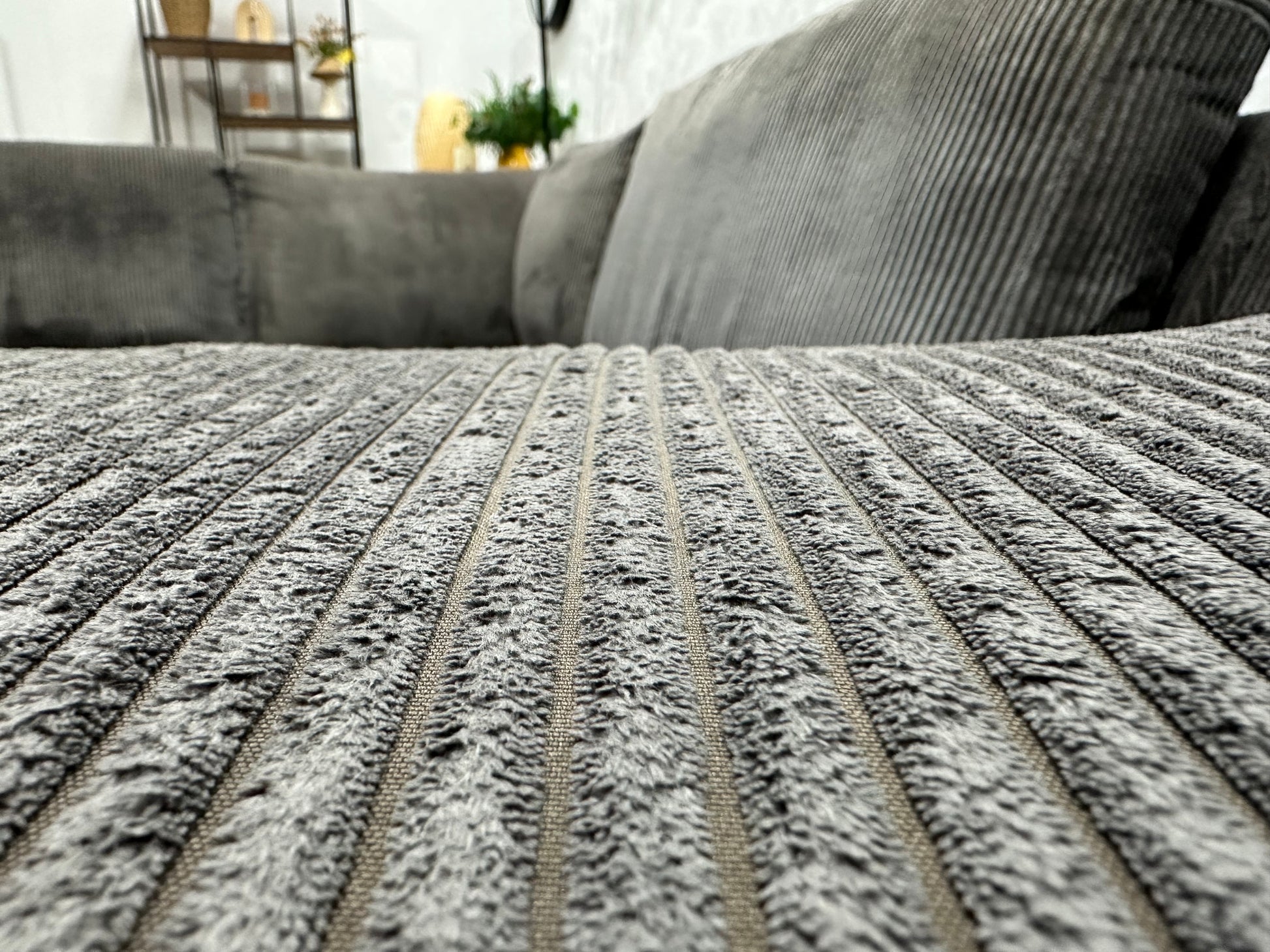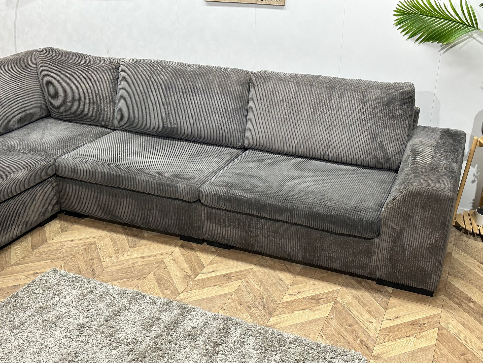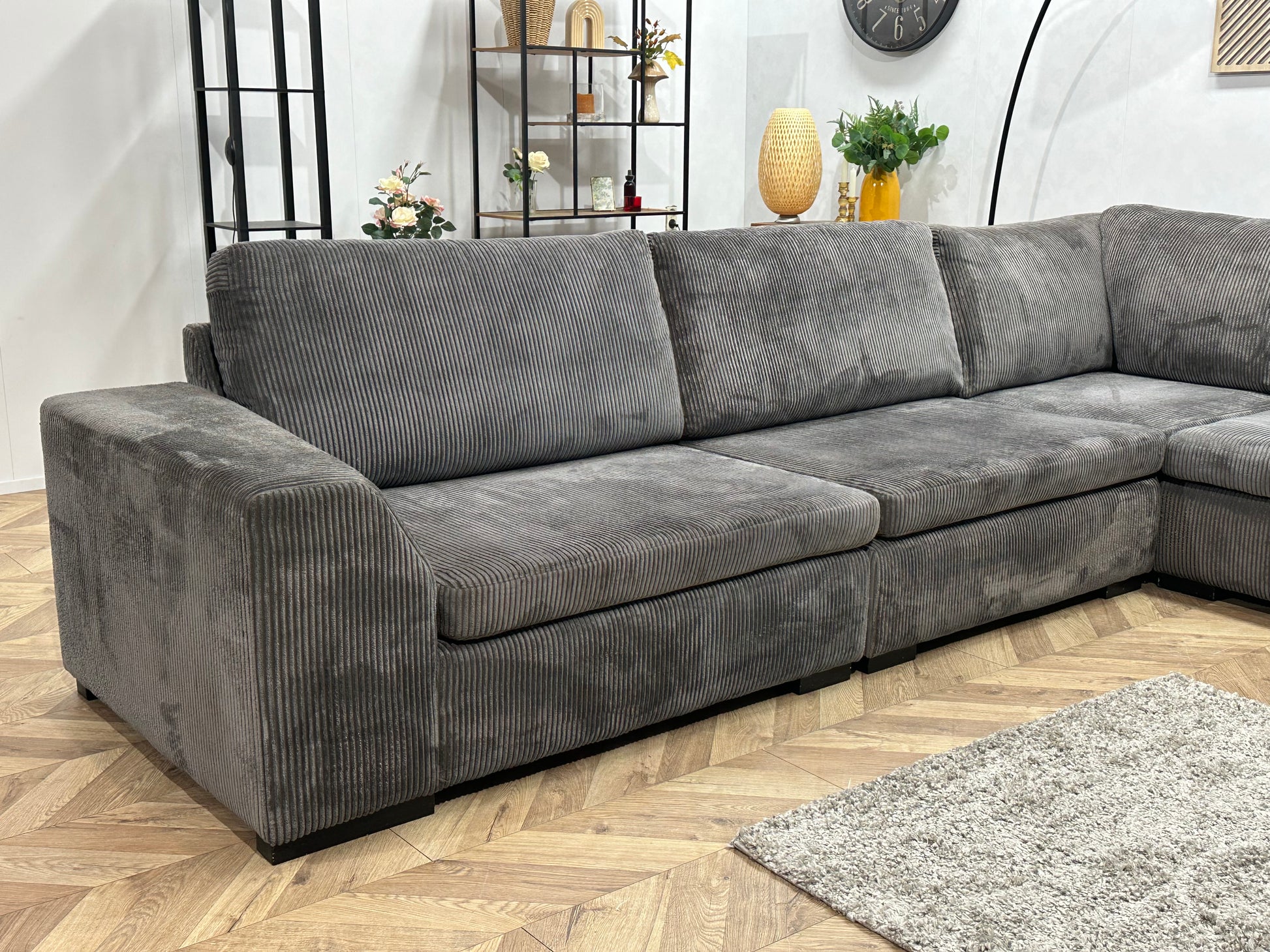 Grijze Ribstof Hoekbank ~ Losse Kussens Met Afneembare Hoezen