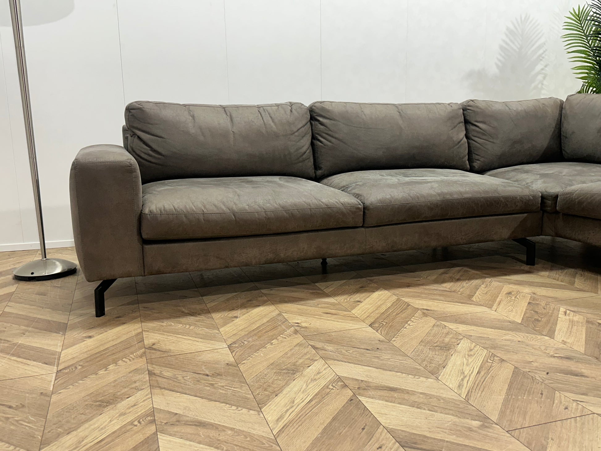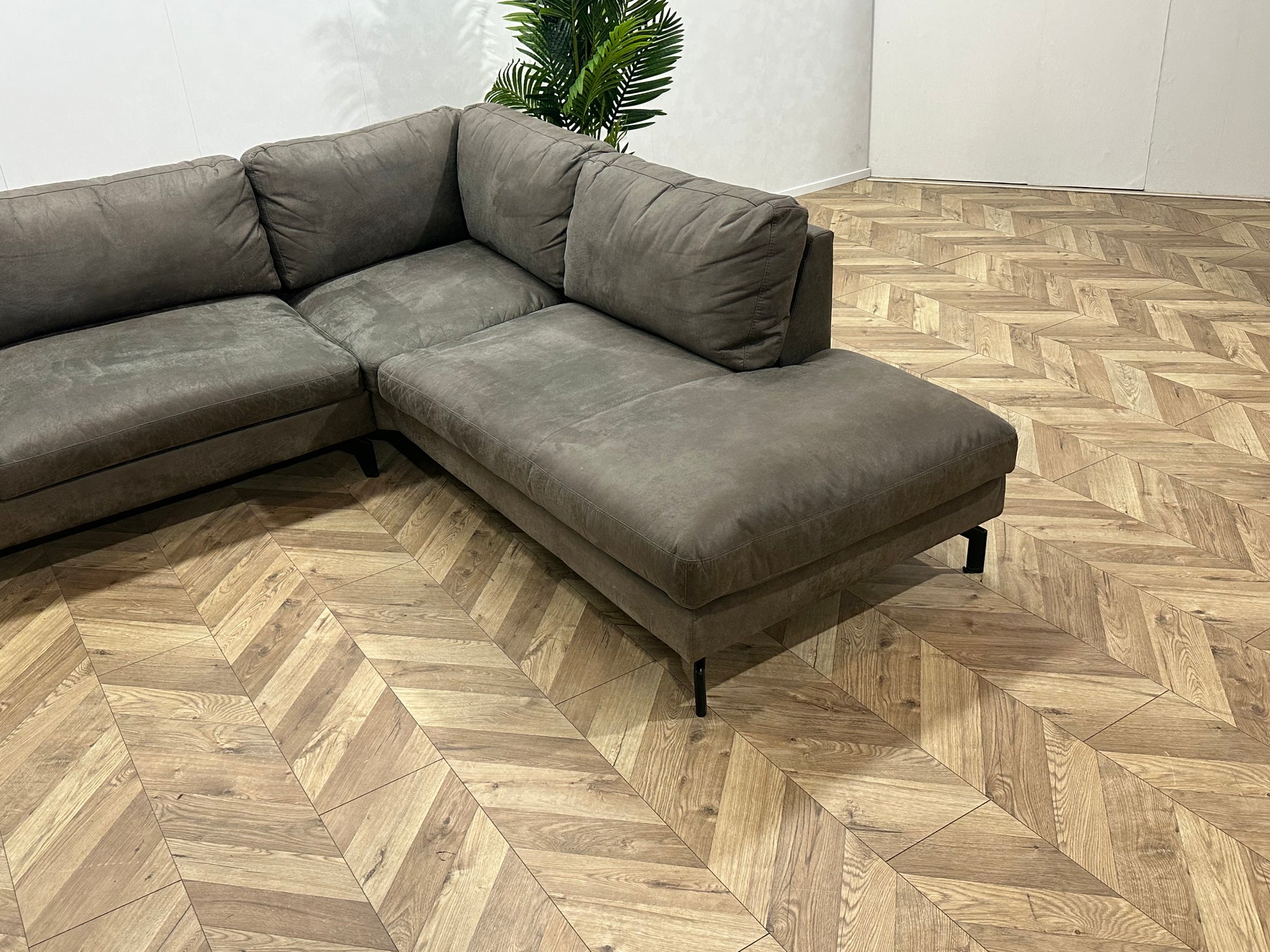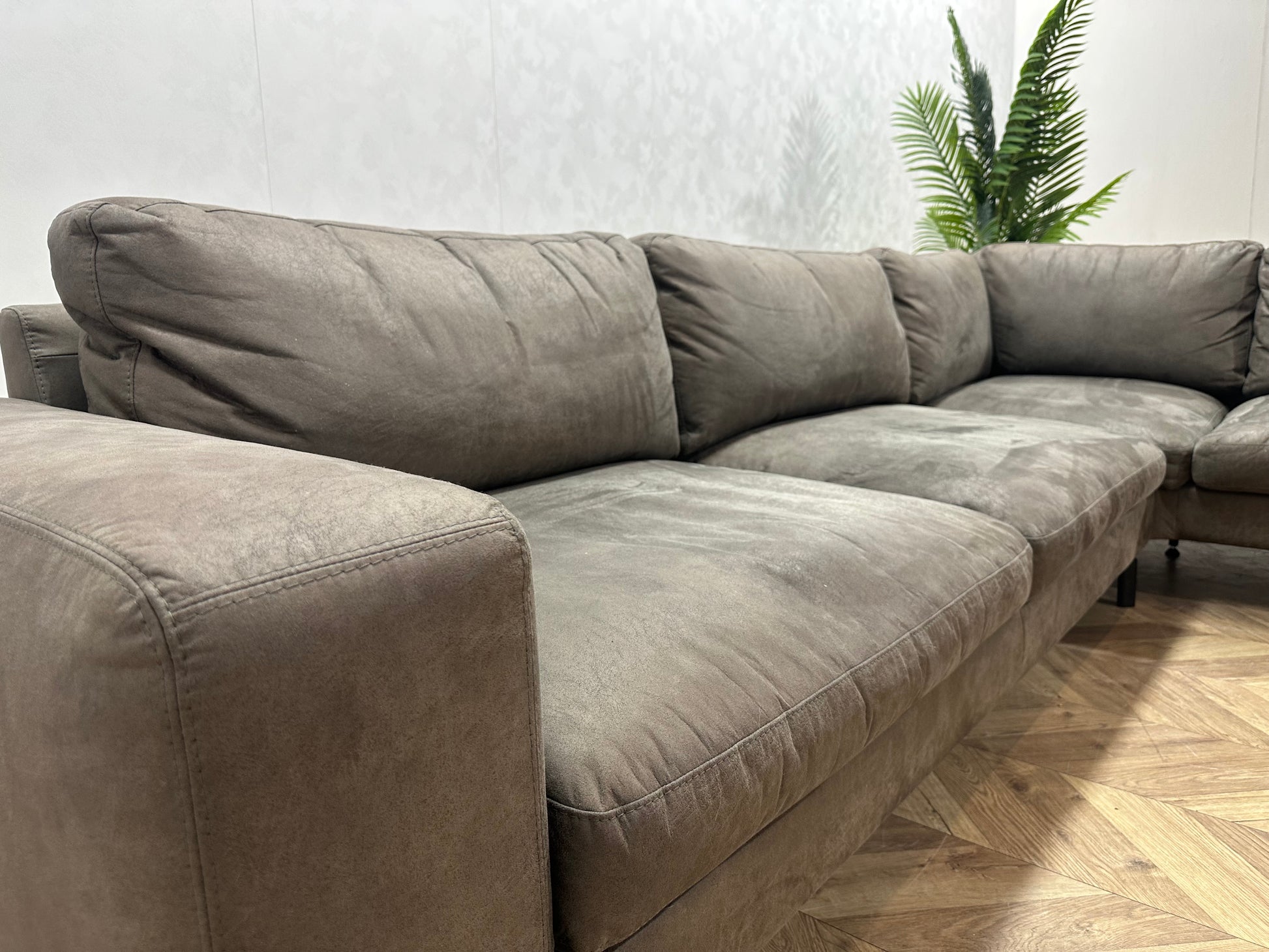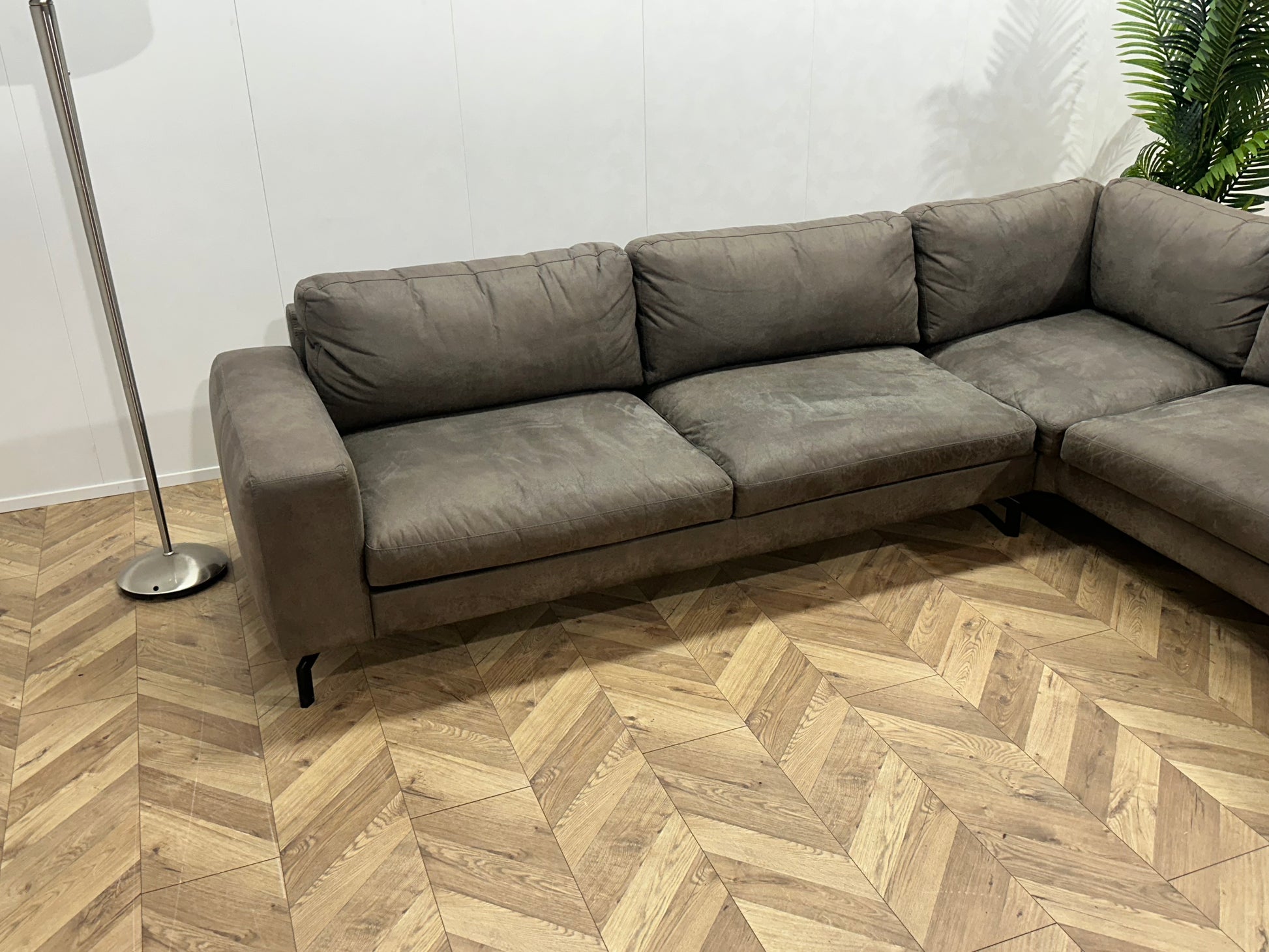 Grijze Suède Lederen Hoekbank ~ Losse Kussens Met Afneembare Hoezen