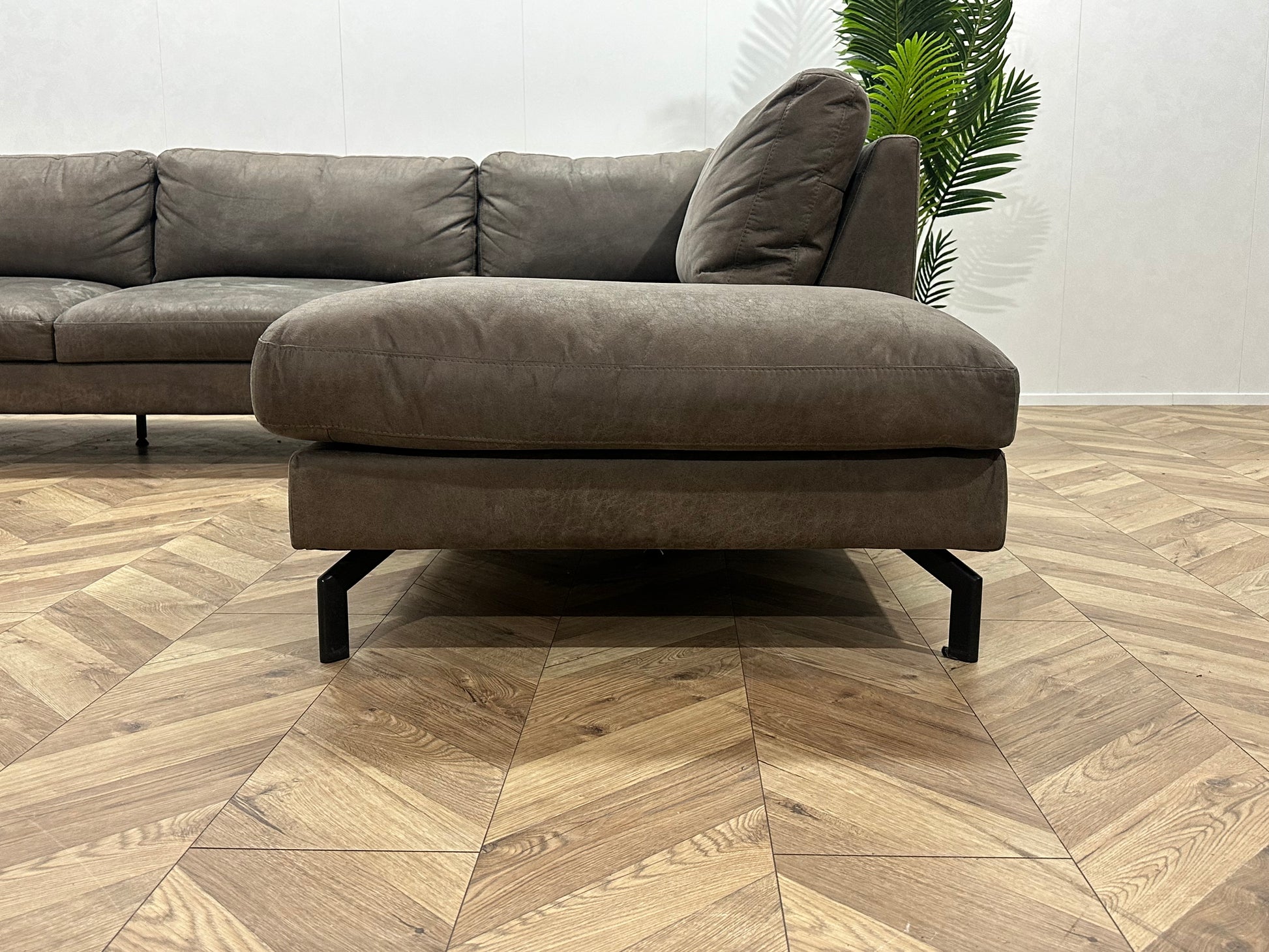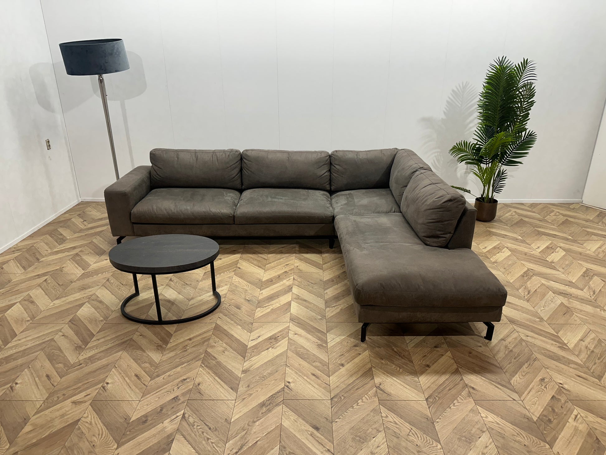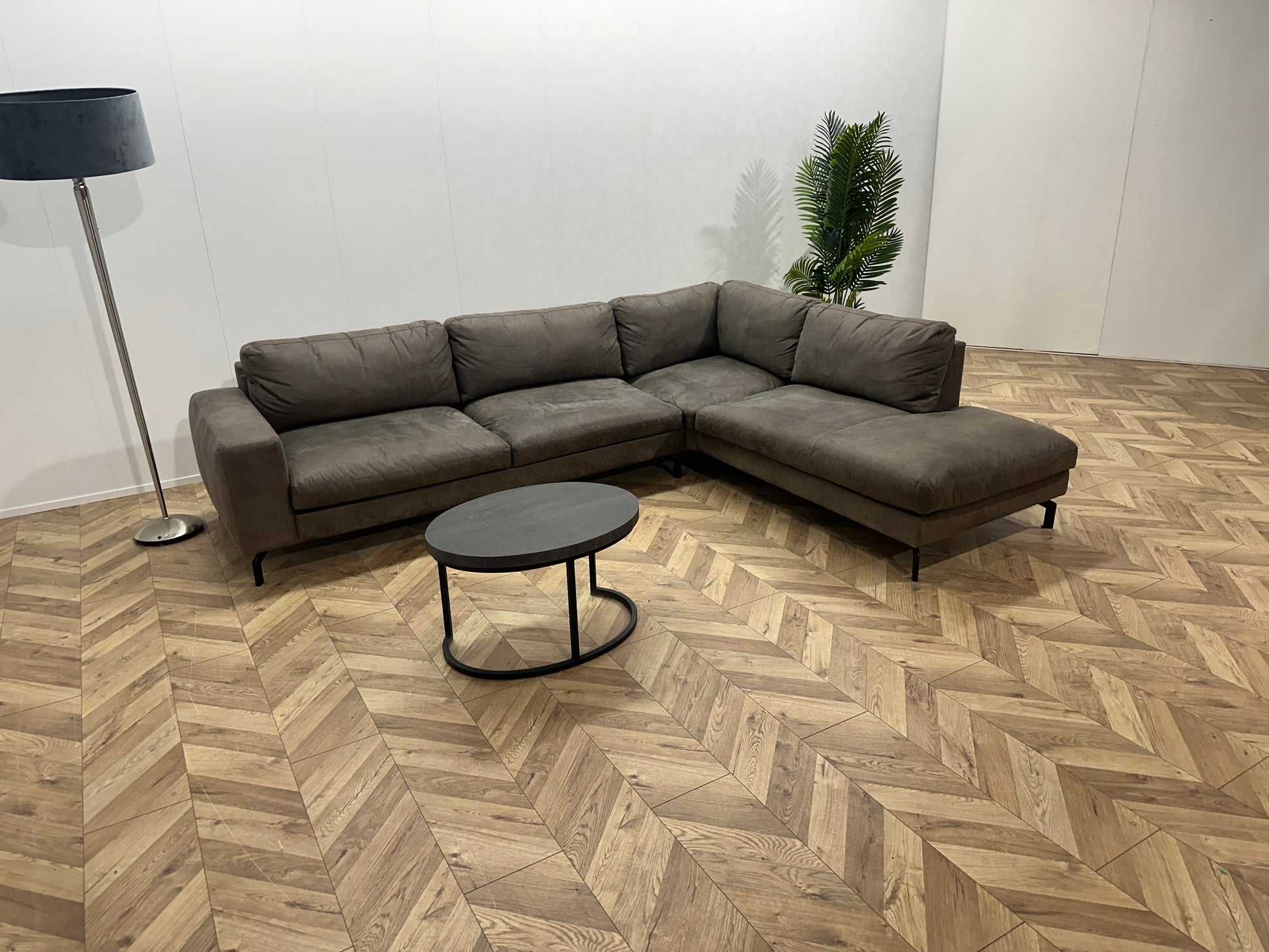 Grijze Suède Lederen Hoekbank ~ Losse Kussens Met Afneembare Hoezen