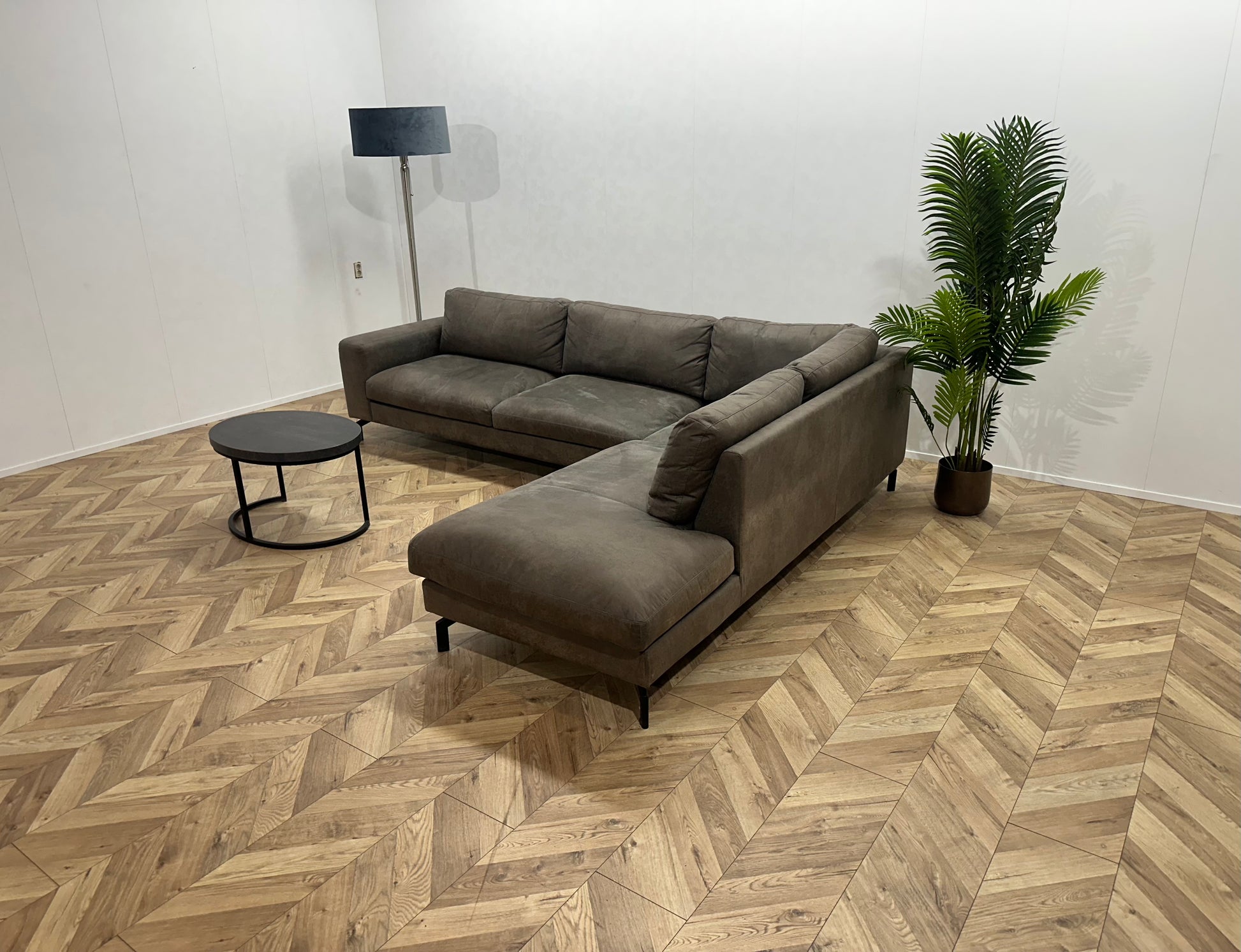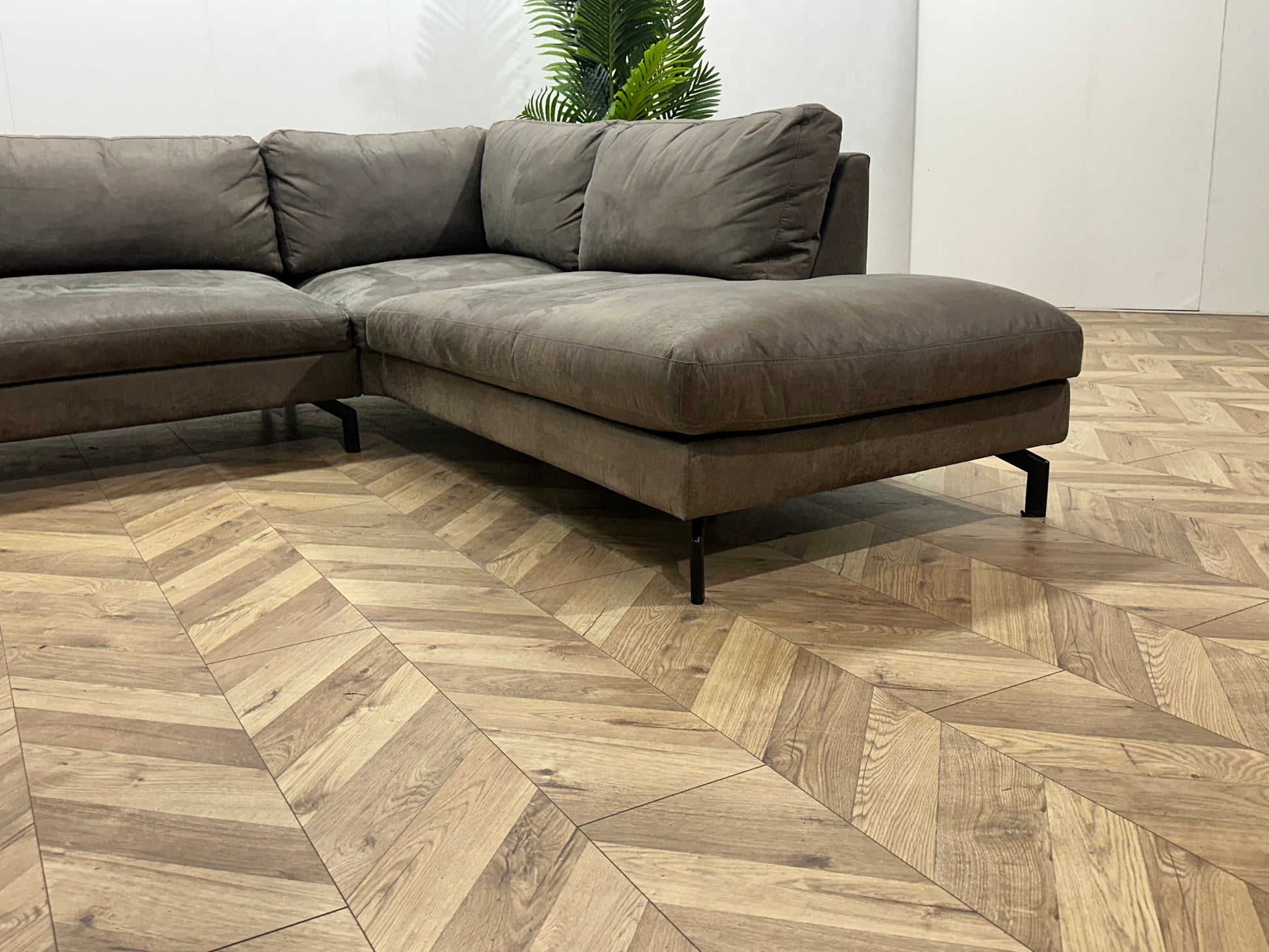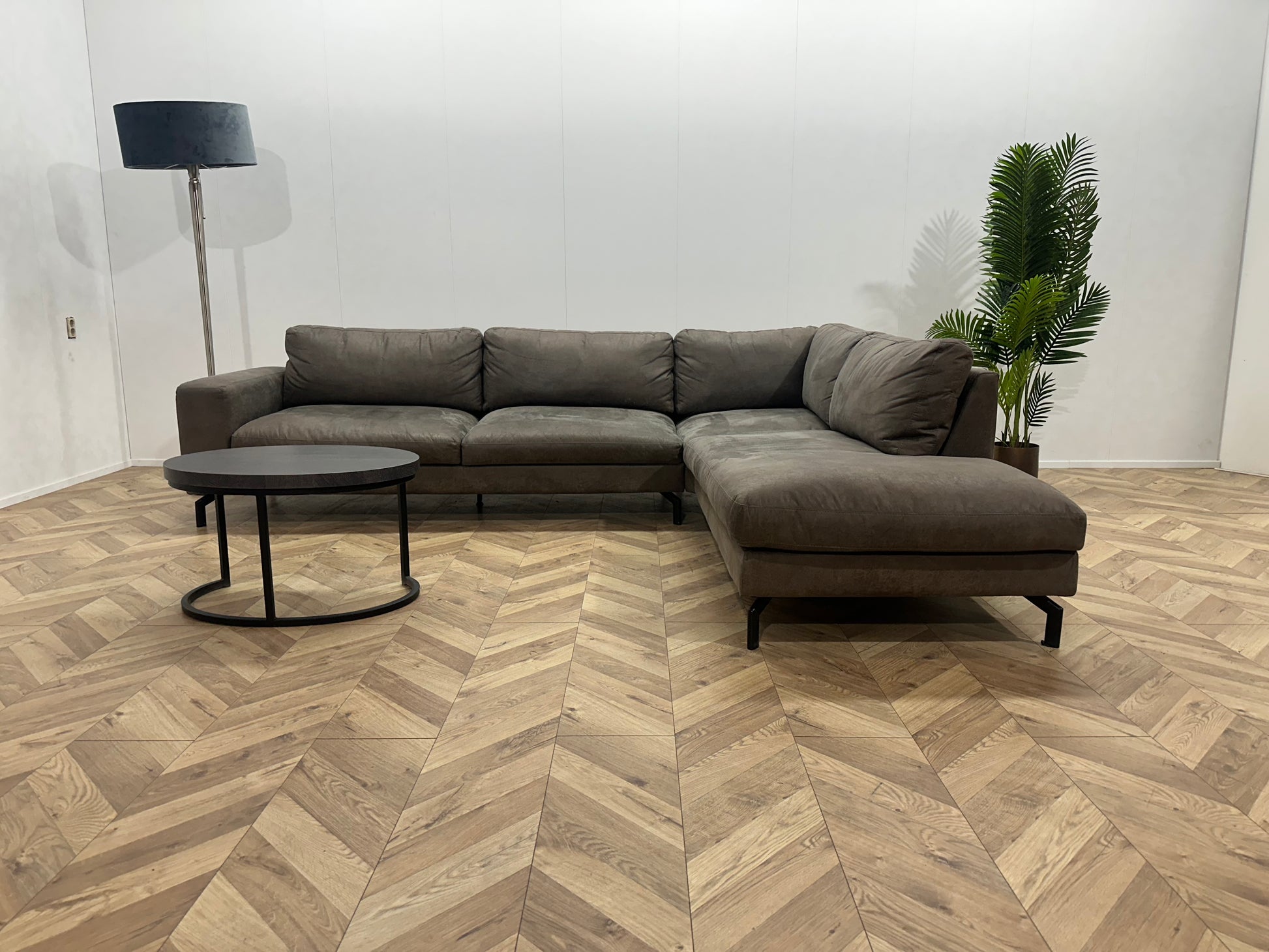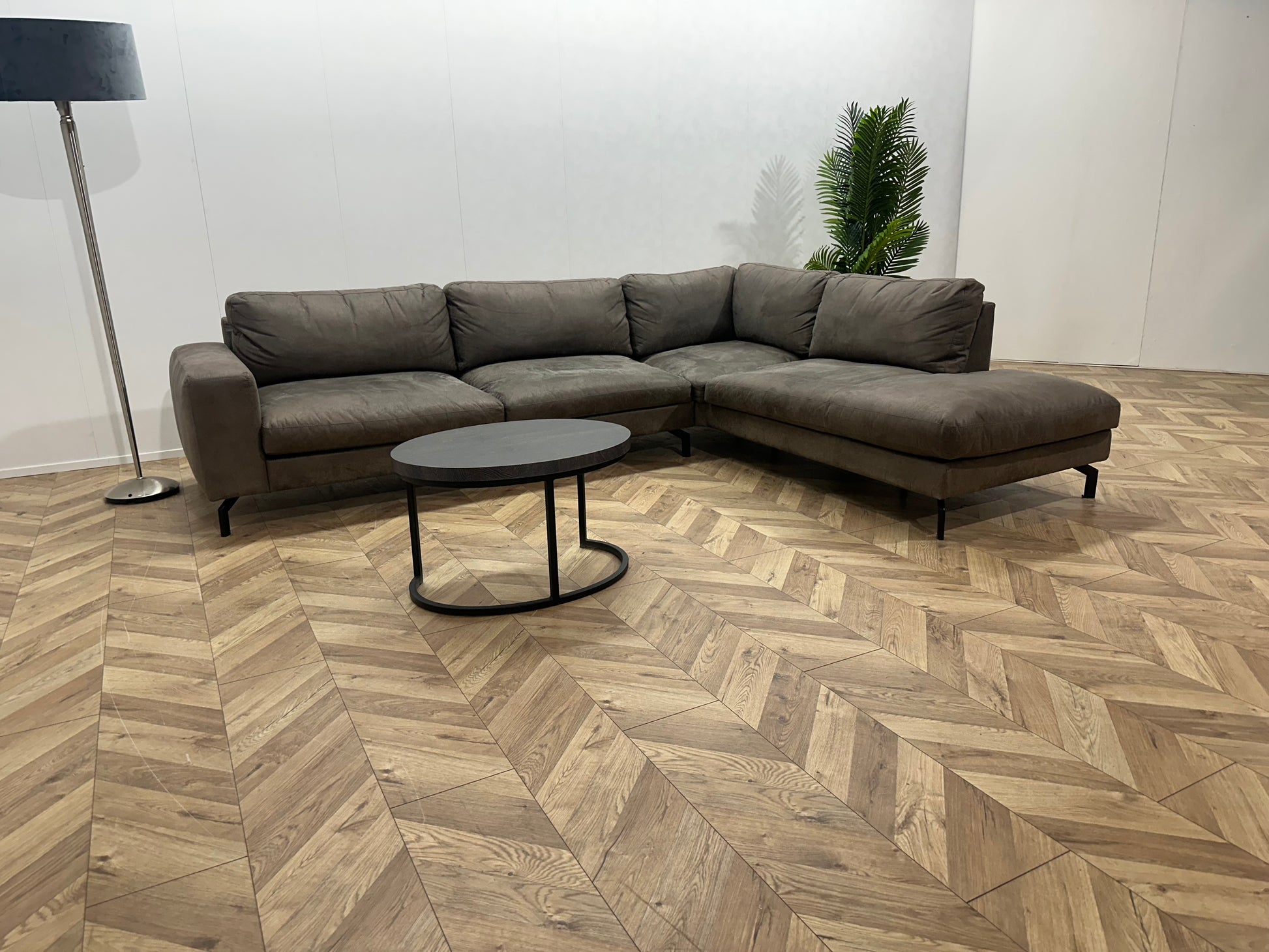 Grijze Suède Lederen Hoekbank ~ Losse Kussens Met Afneembare Hoezen