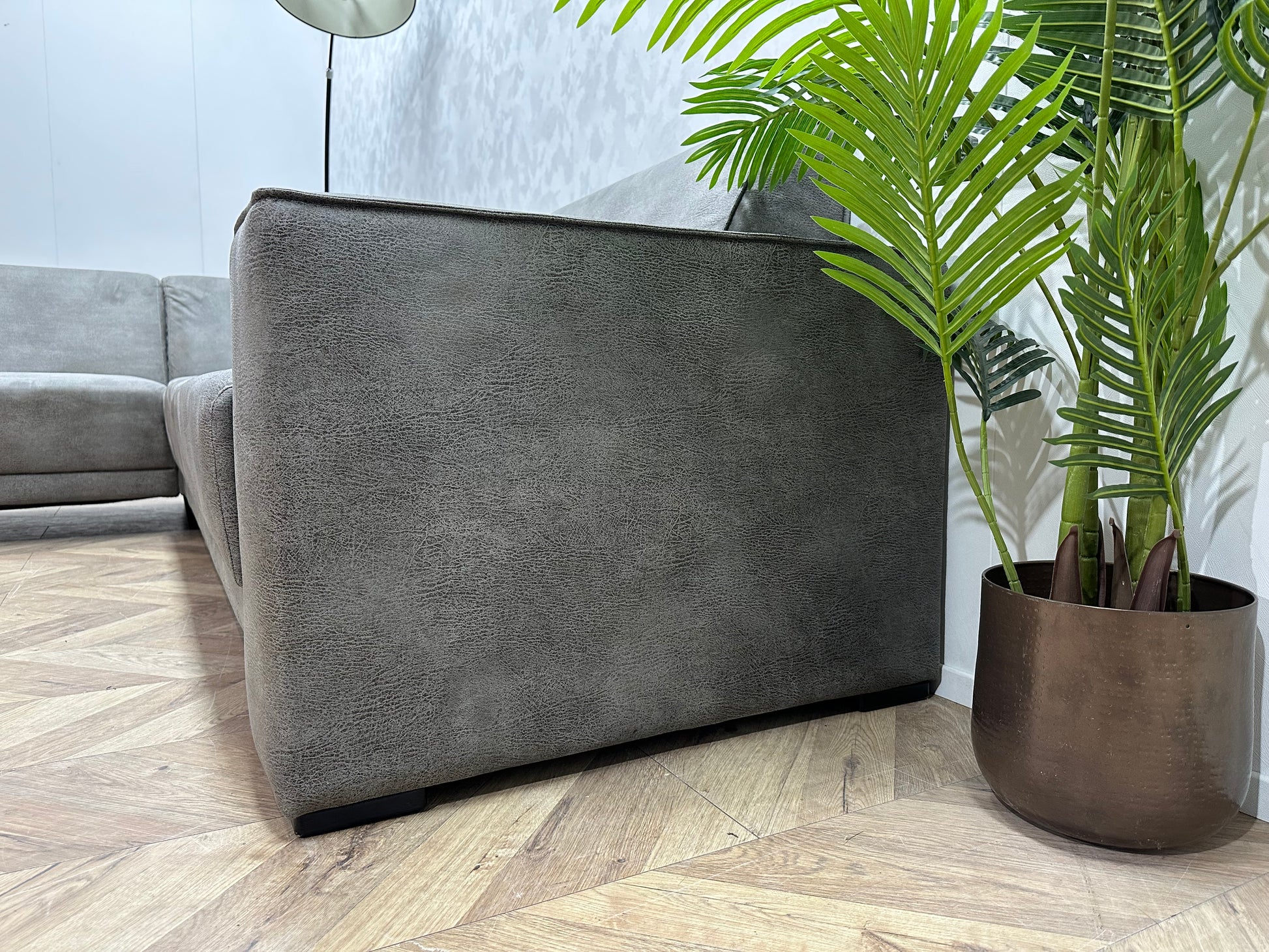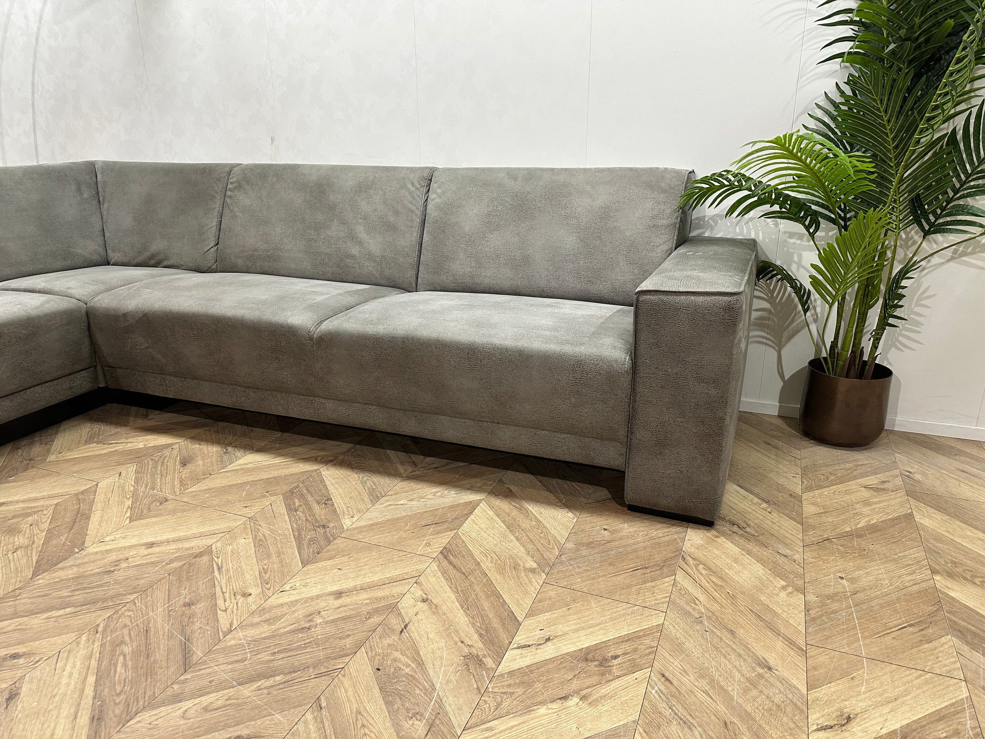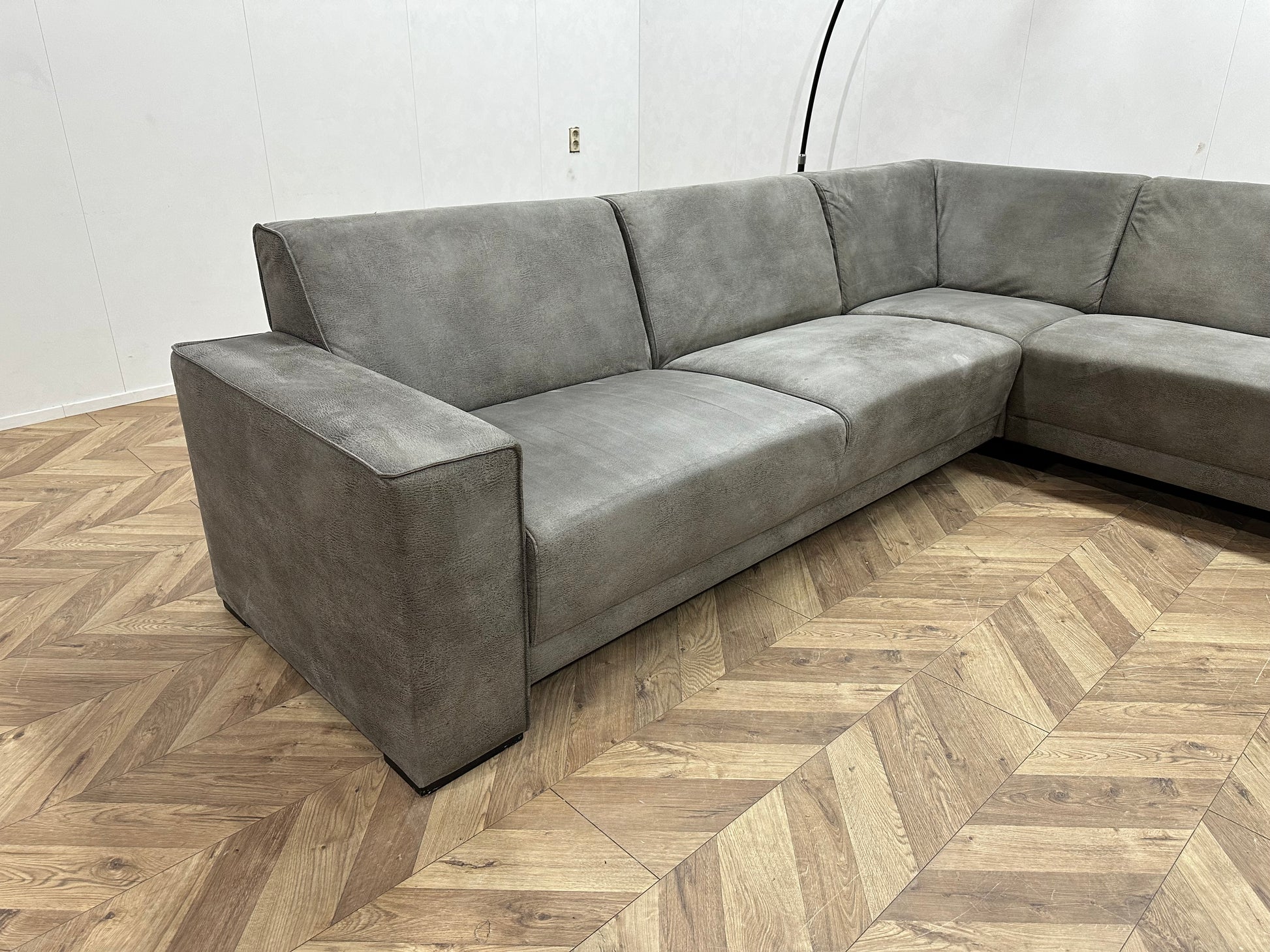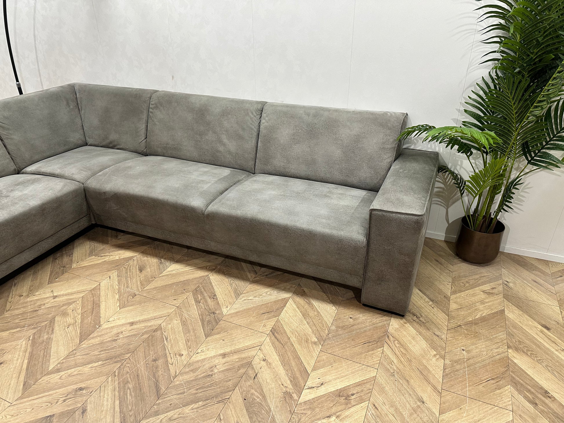 Grijze Suède Leren Hoekbank ~ Nieuwstaat