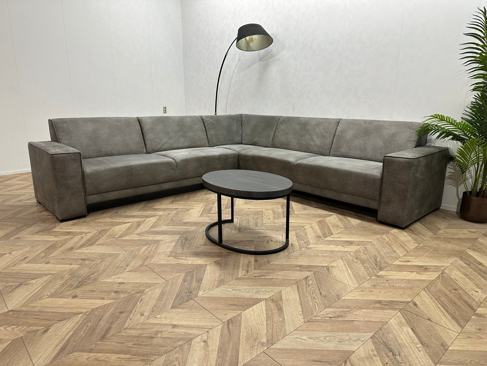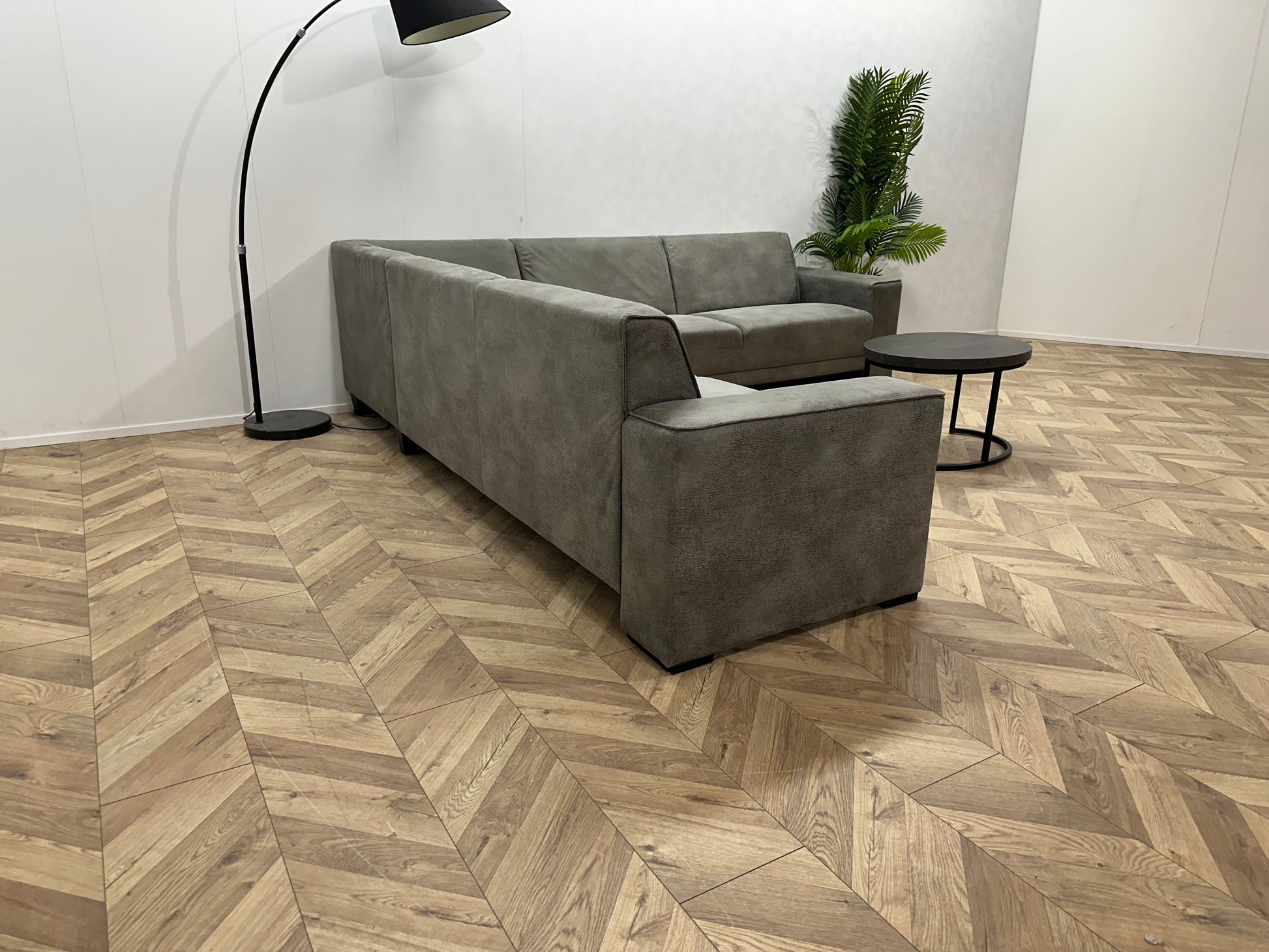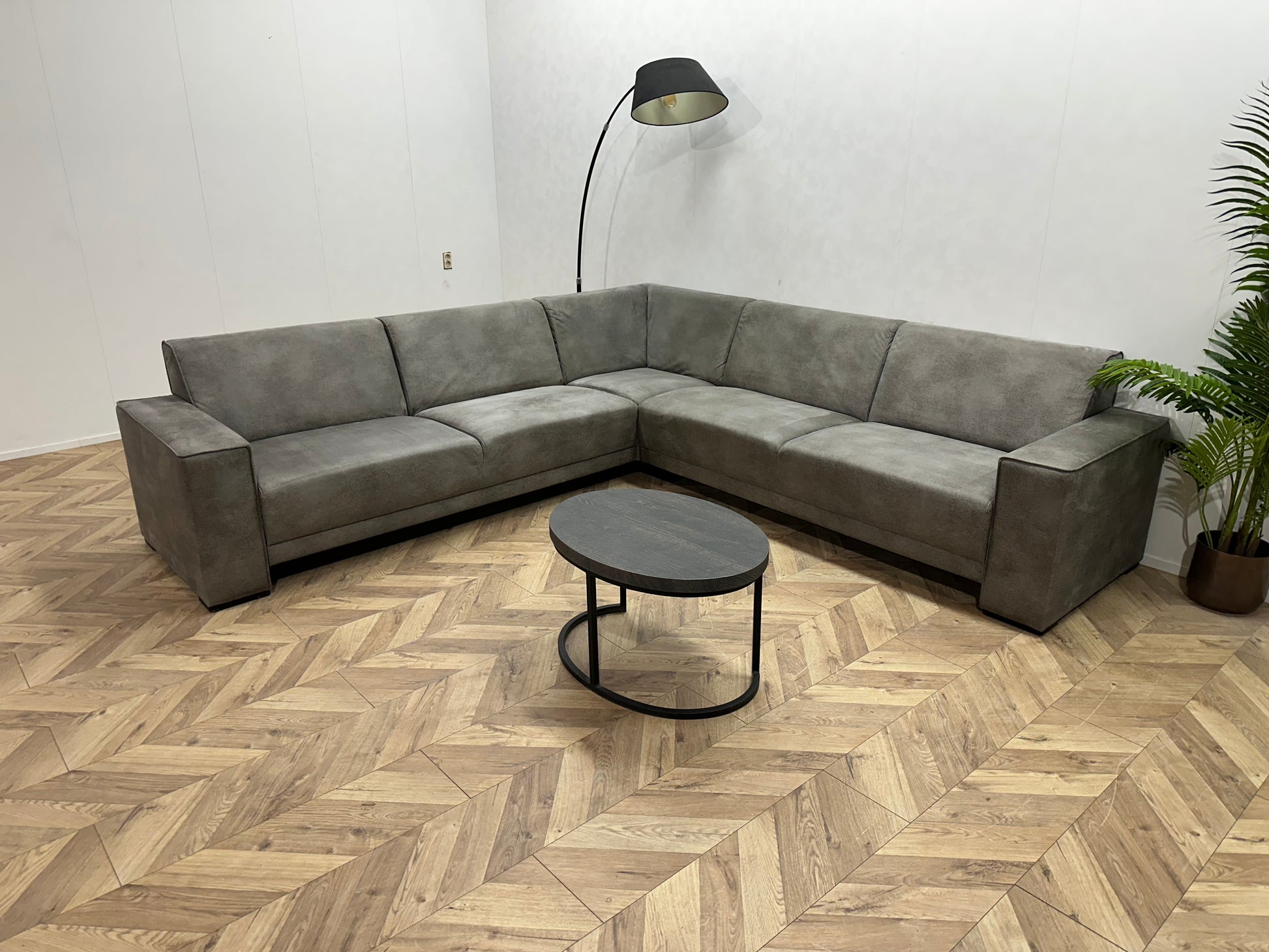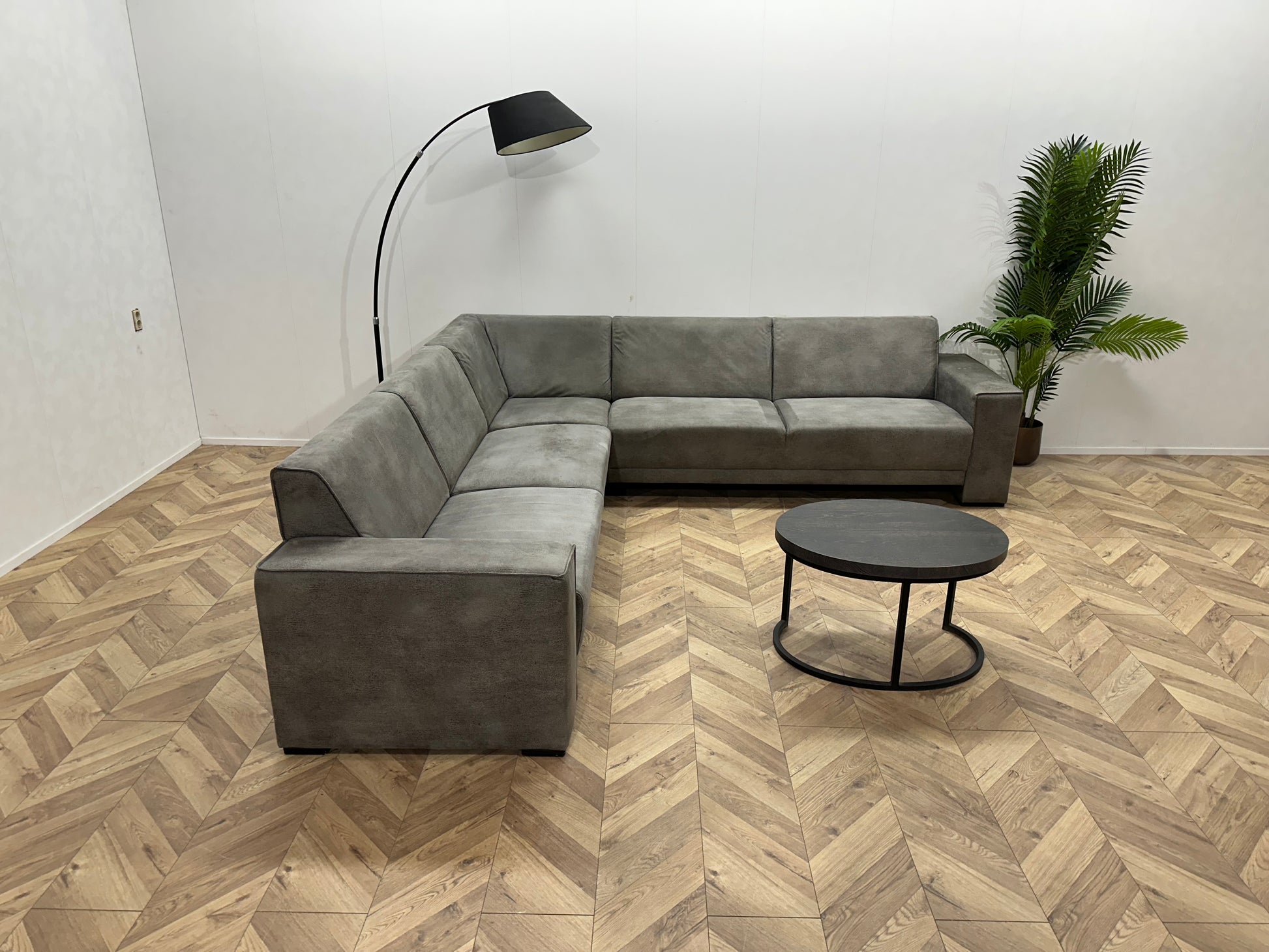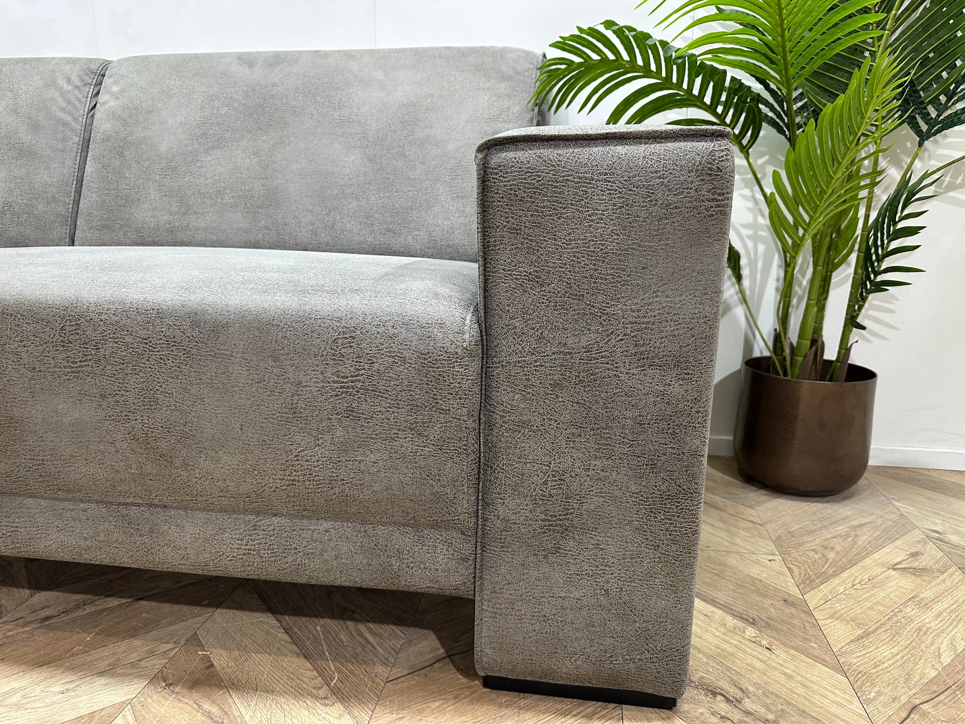 Grijze Suède Leren Hoekbank ~ Nieuwstaat