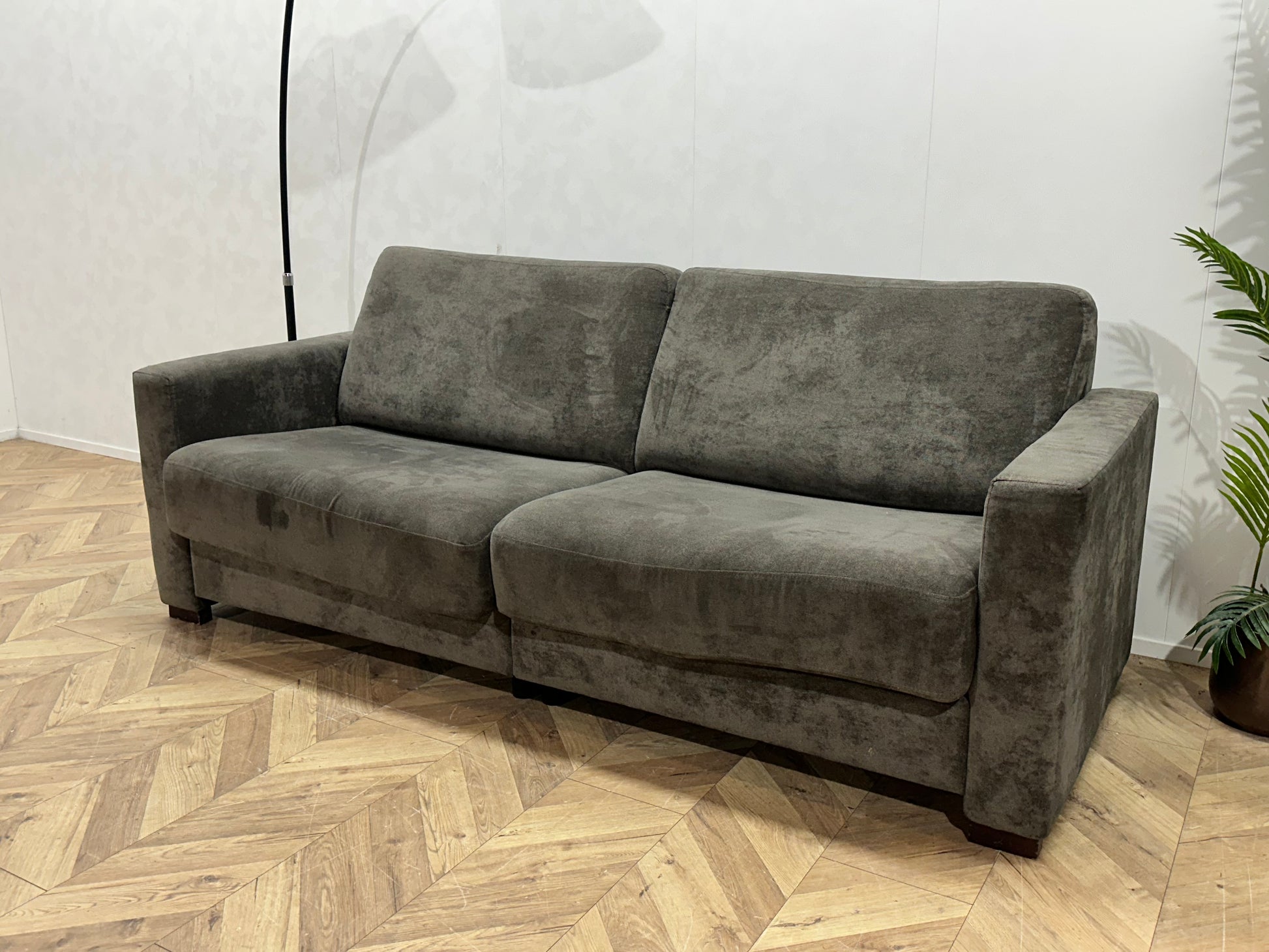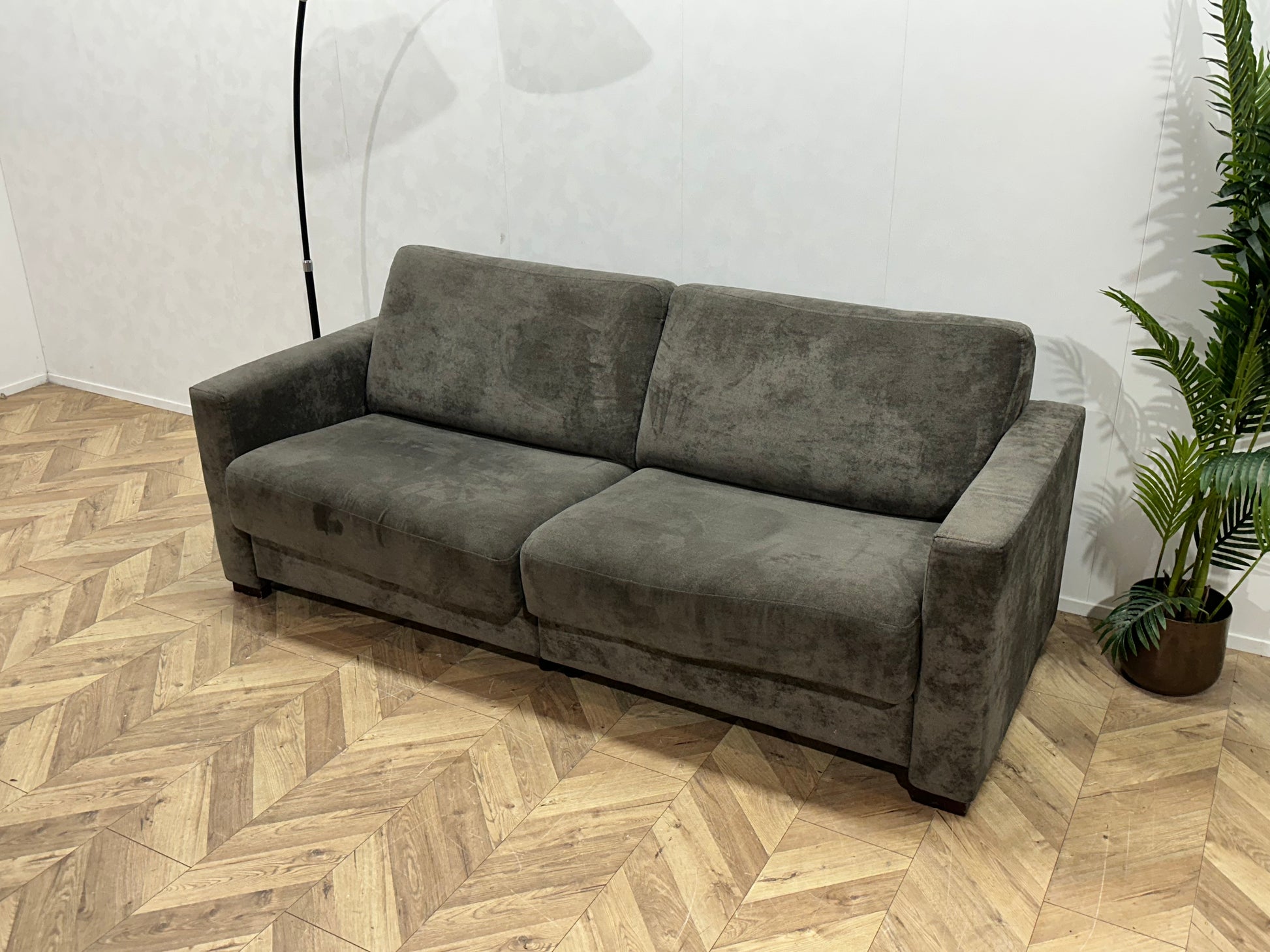 Grijze Suède Stoffen 2.5-Zits Bank ~ Uitschuifbare Zittingen