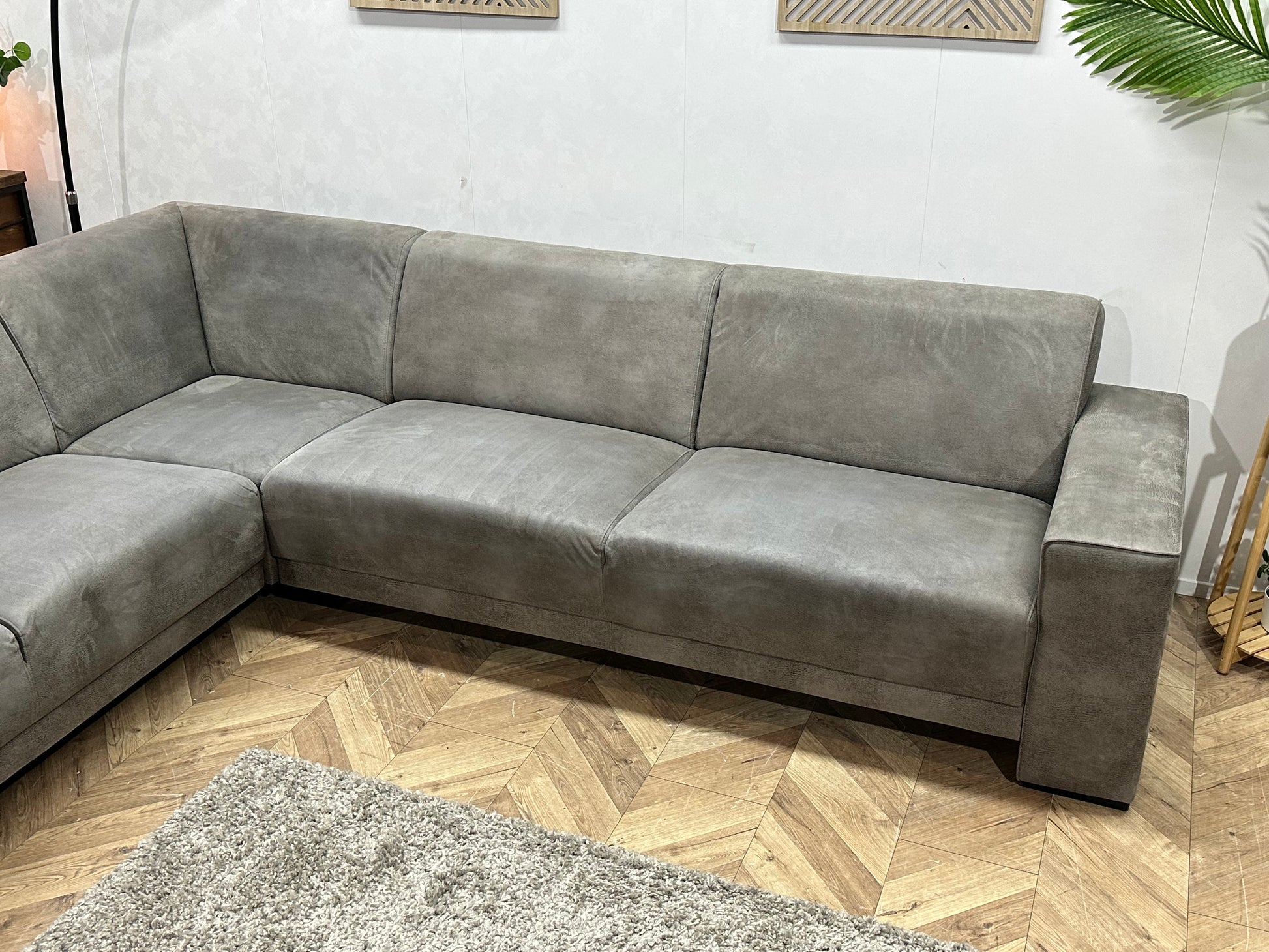 Grijze Suède Stoffen Hoekbank ~ Vaste Kussens