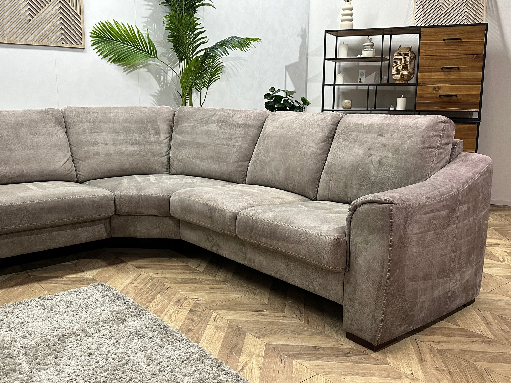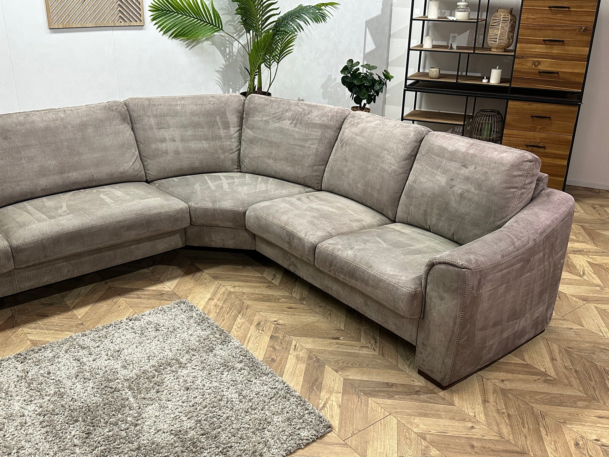 Grijze Suède Stoffen Hoekbank ~ Vaste Kussens
