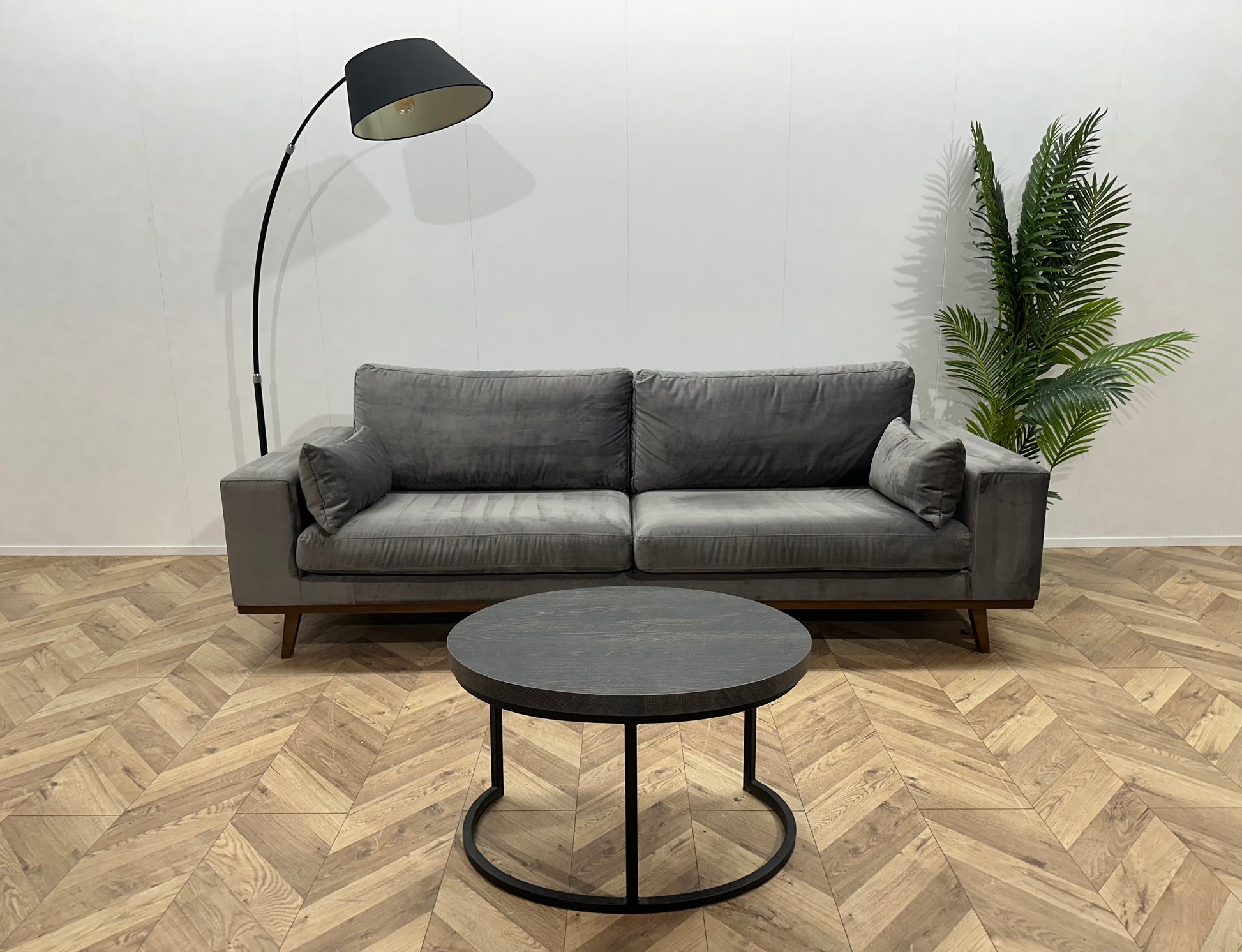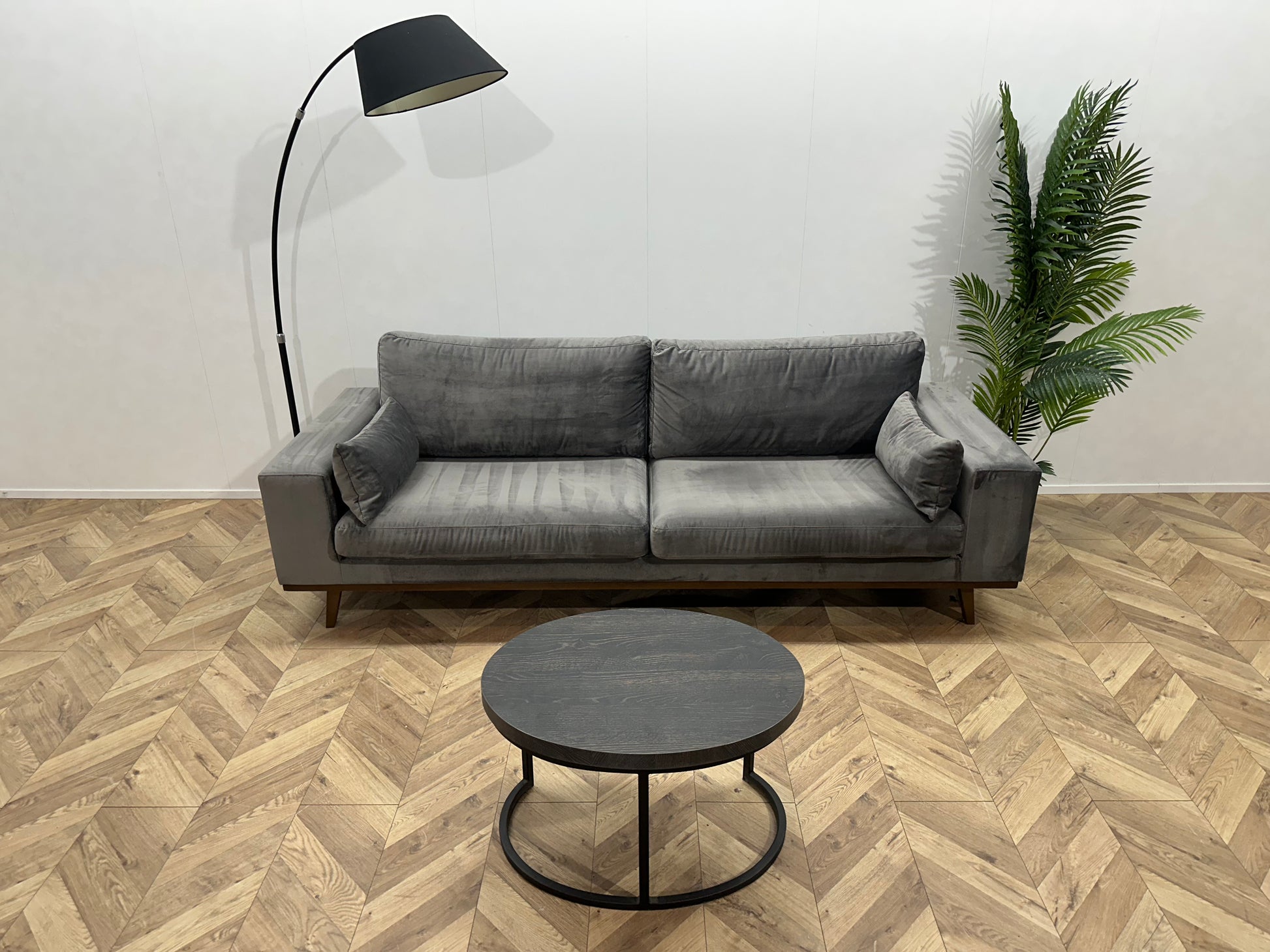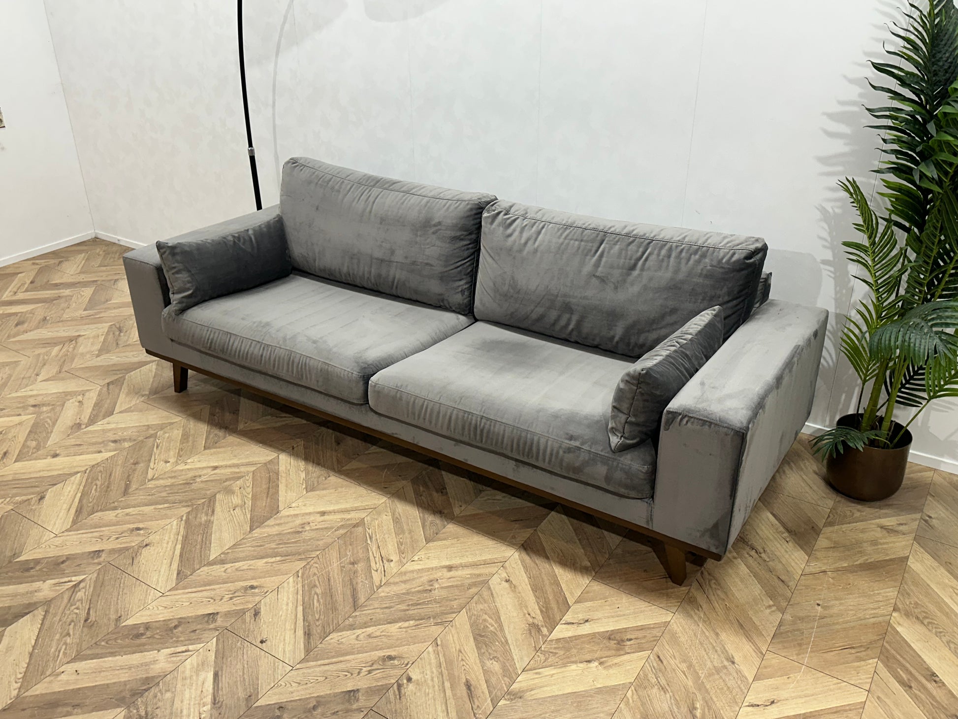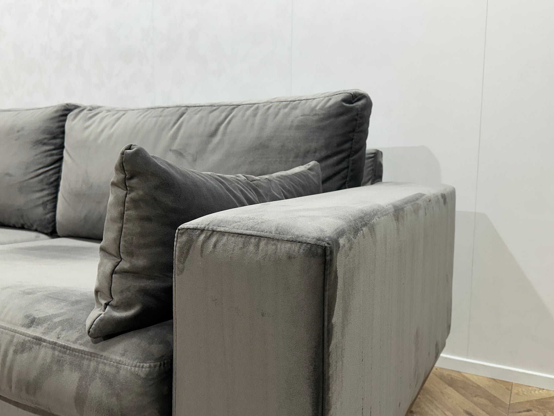 Grijze Velvet 2.5-Zits Bank ~ Losse Kussens Met Afneembare Hoezen