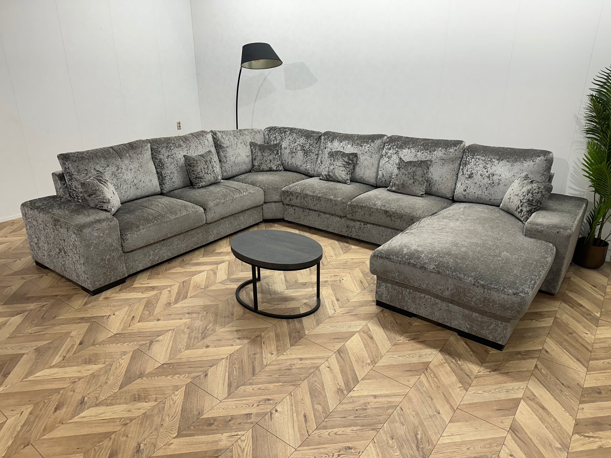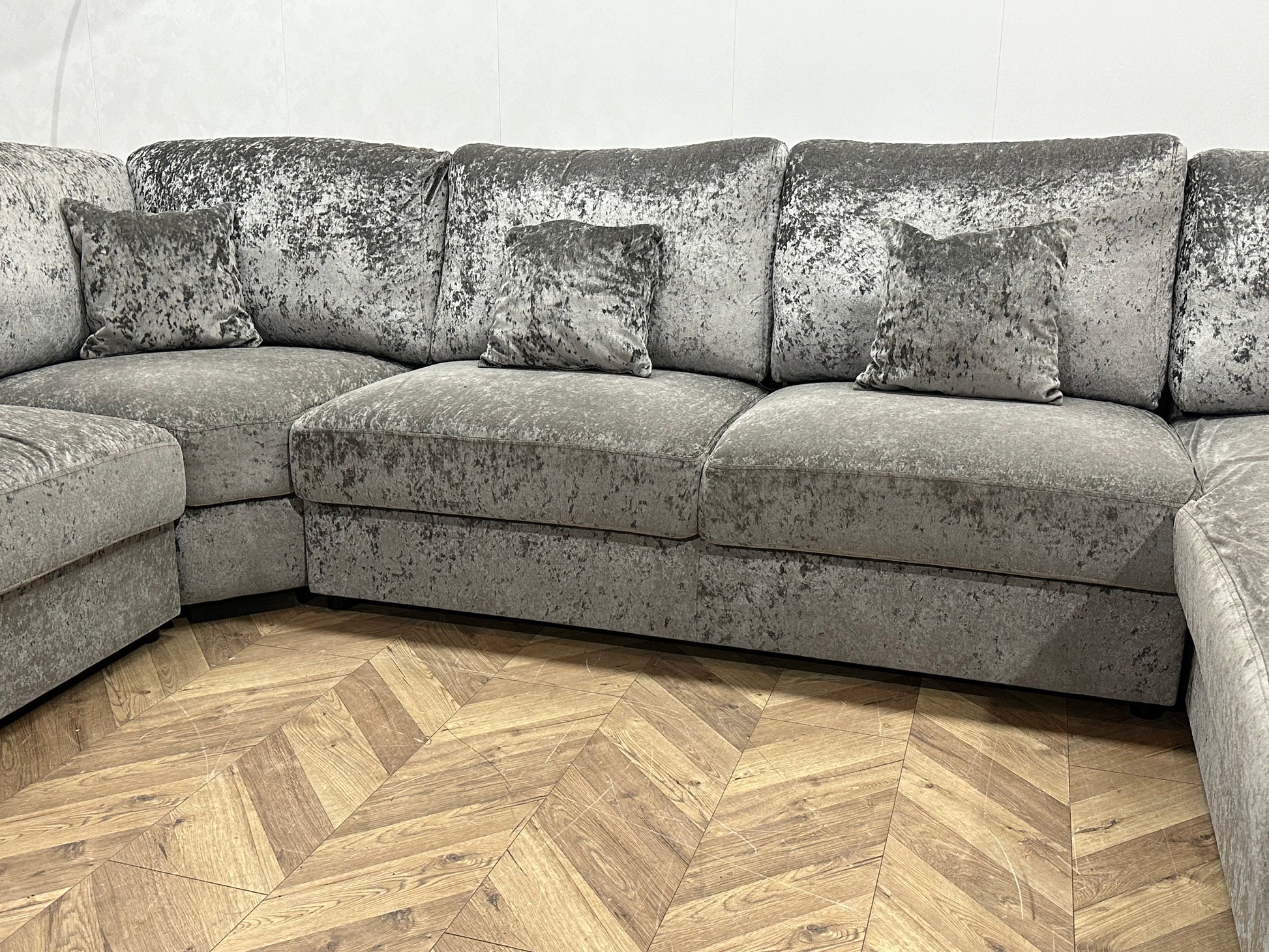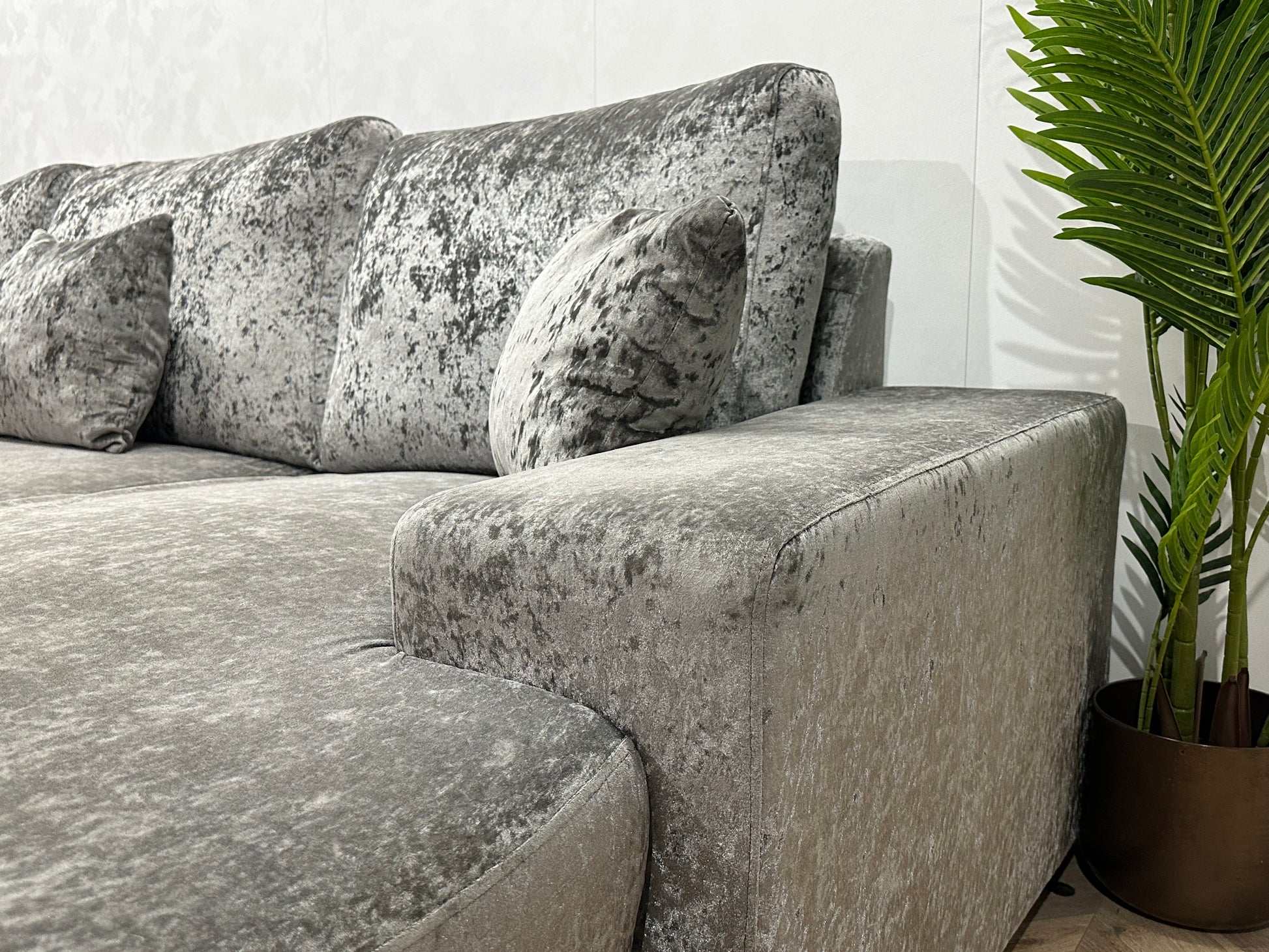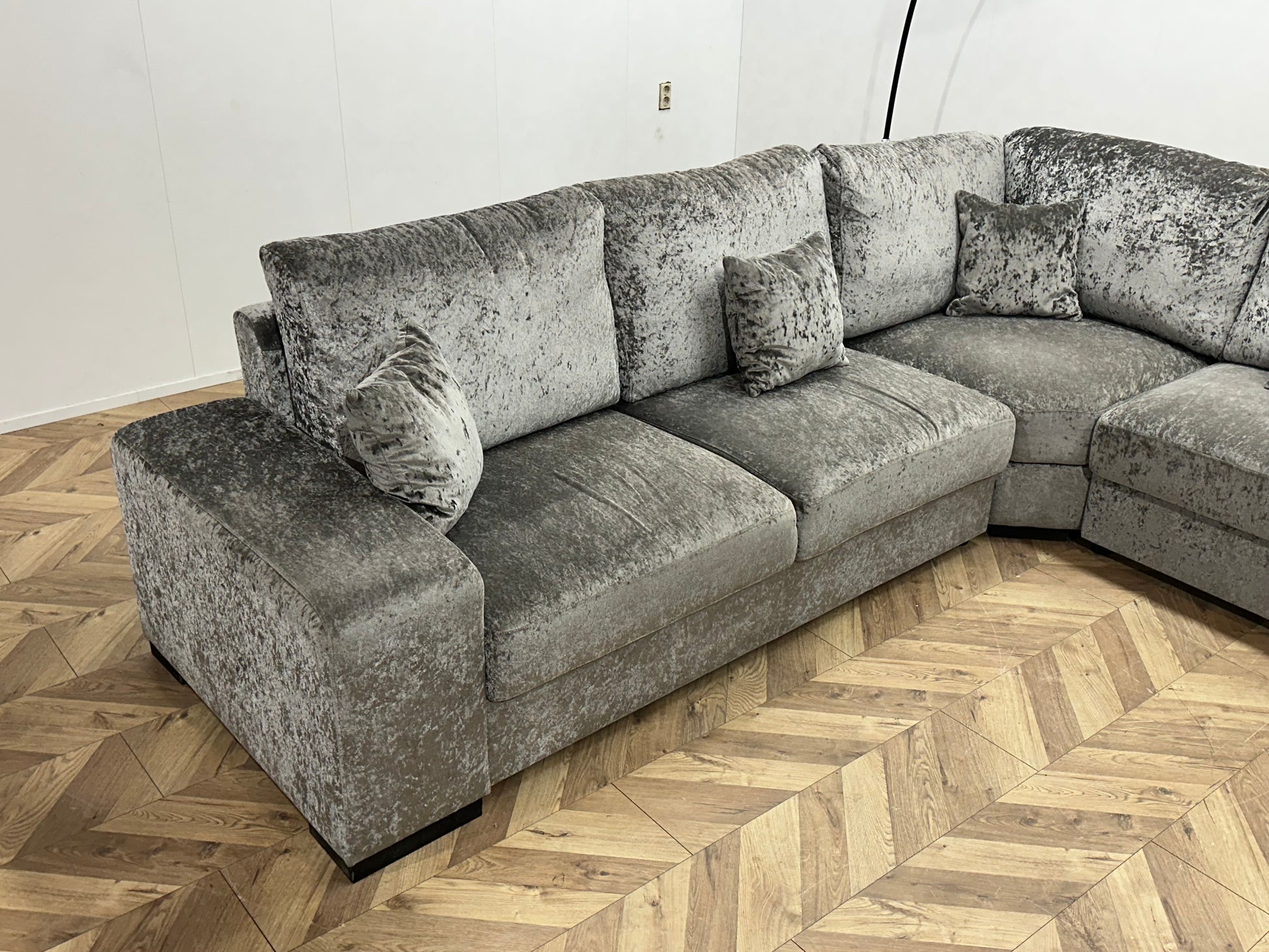 Grijze Velvet U Bank ~ Losse Rugkussens Met Afneembare Hoezen