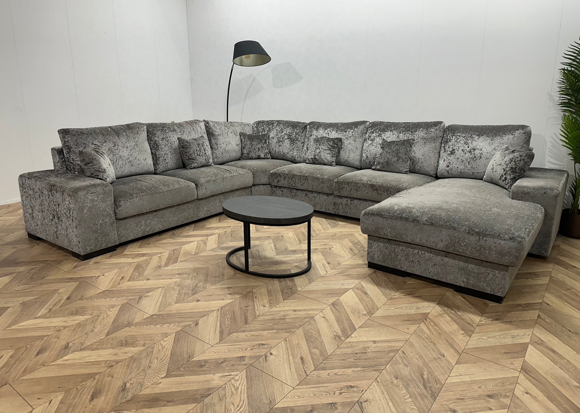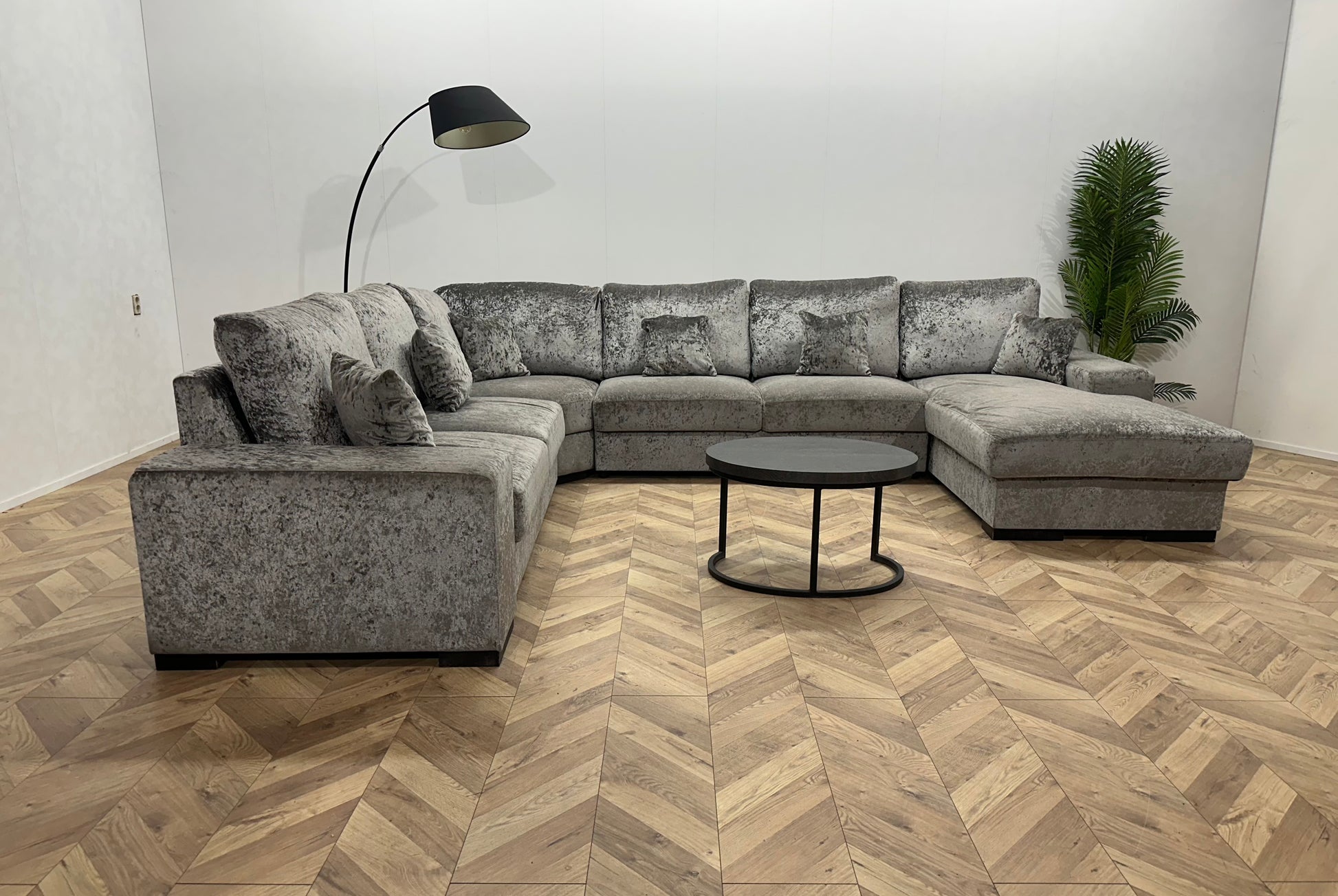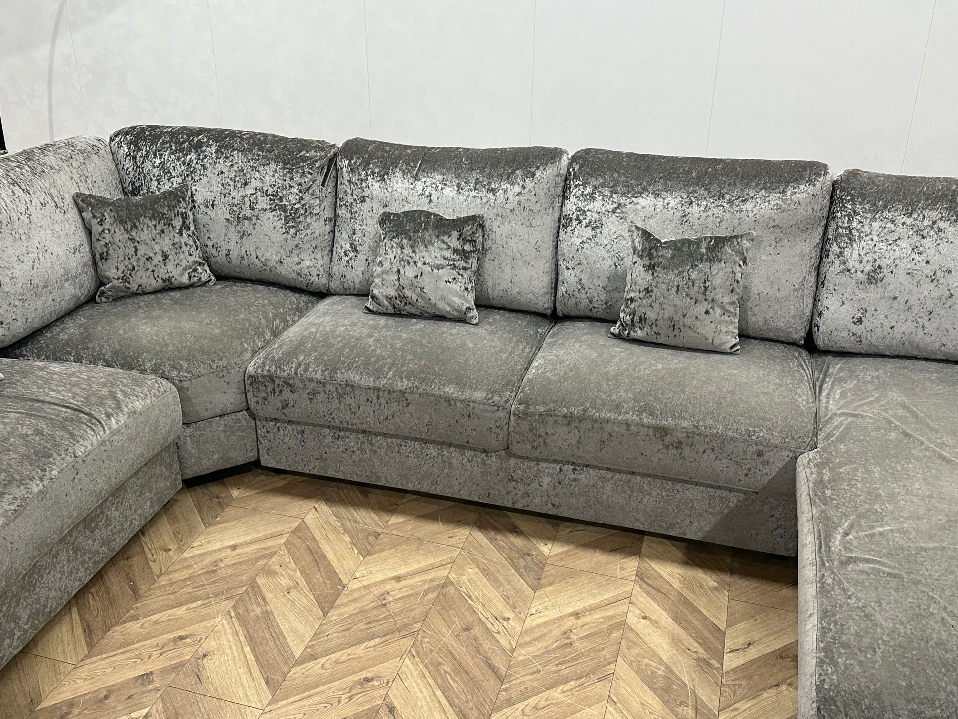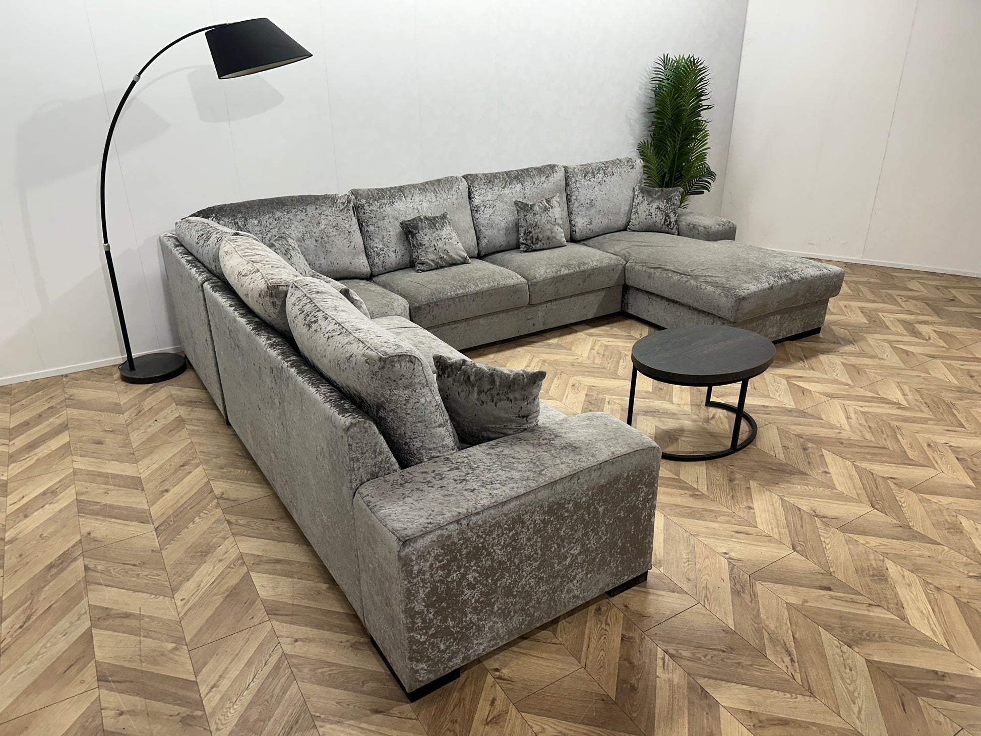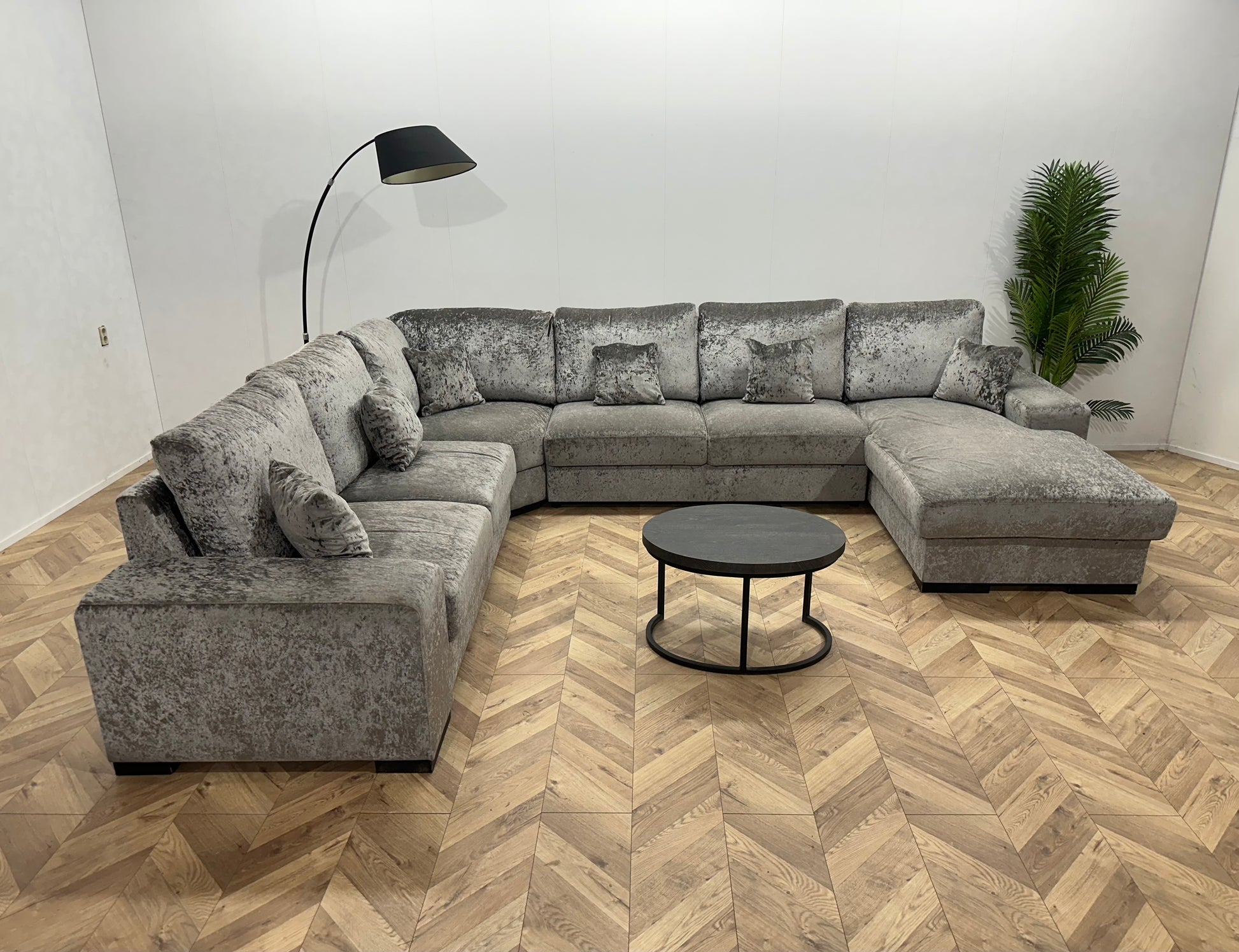 Grijze Velvet U Bank ~ Losse Rugkussens Met Afneembare Hoezen