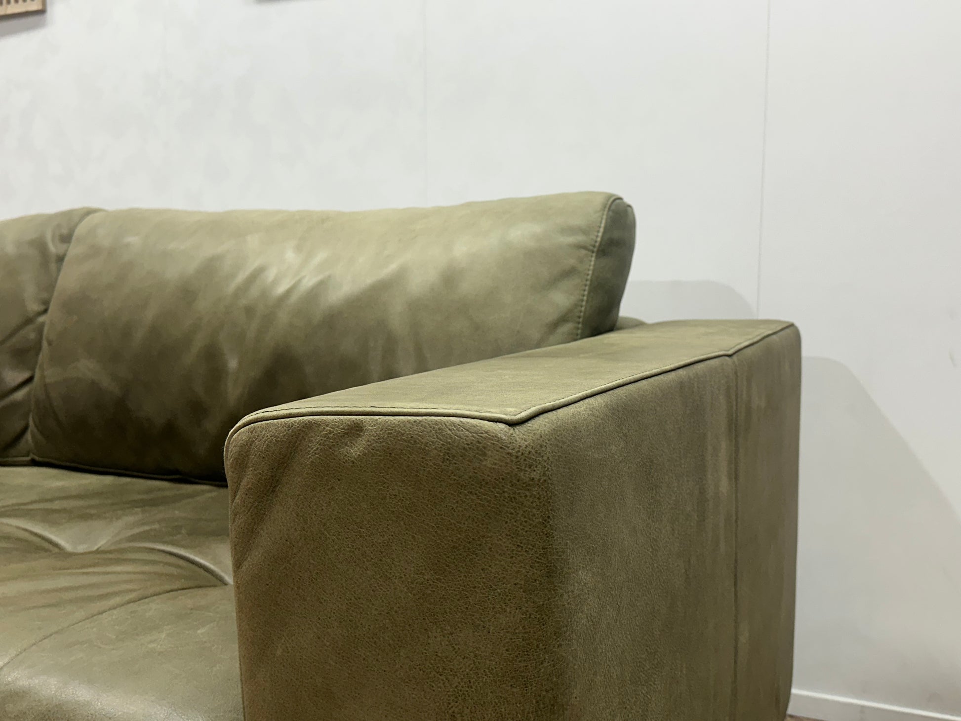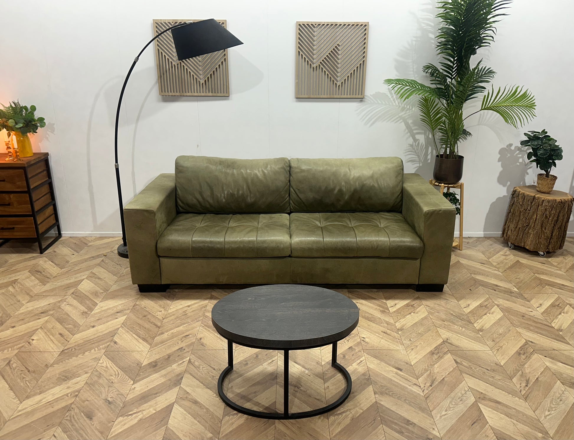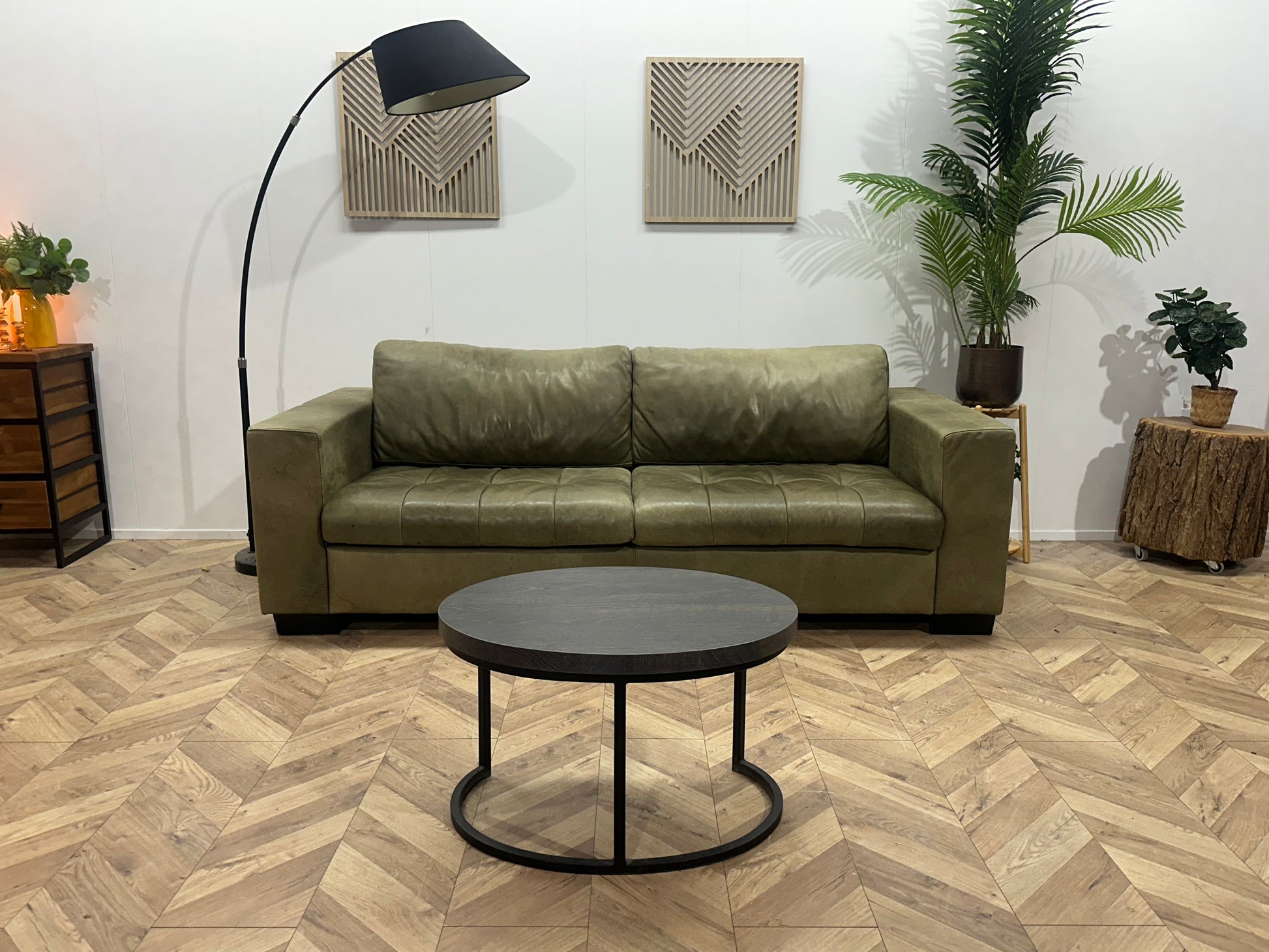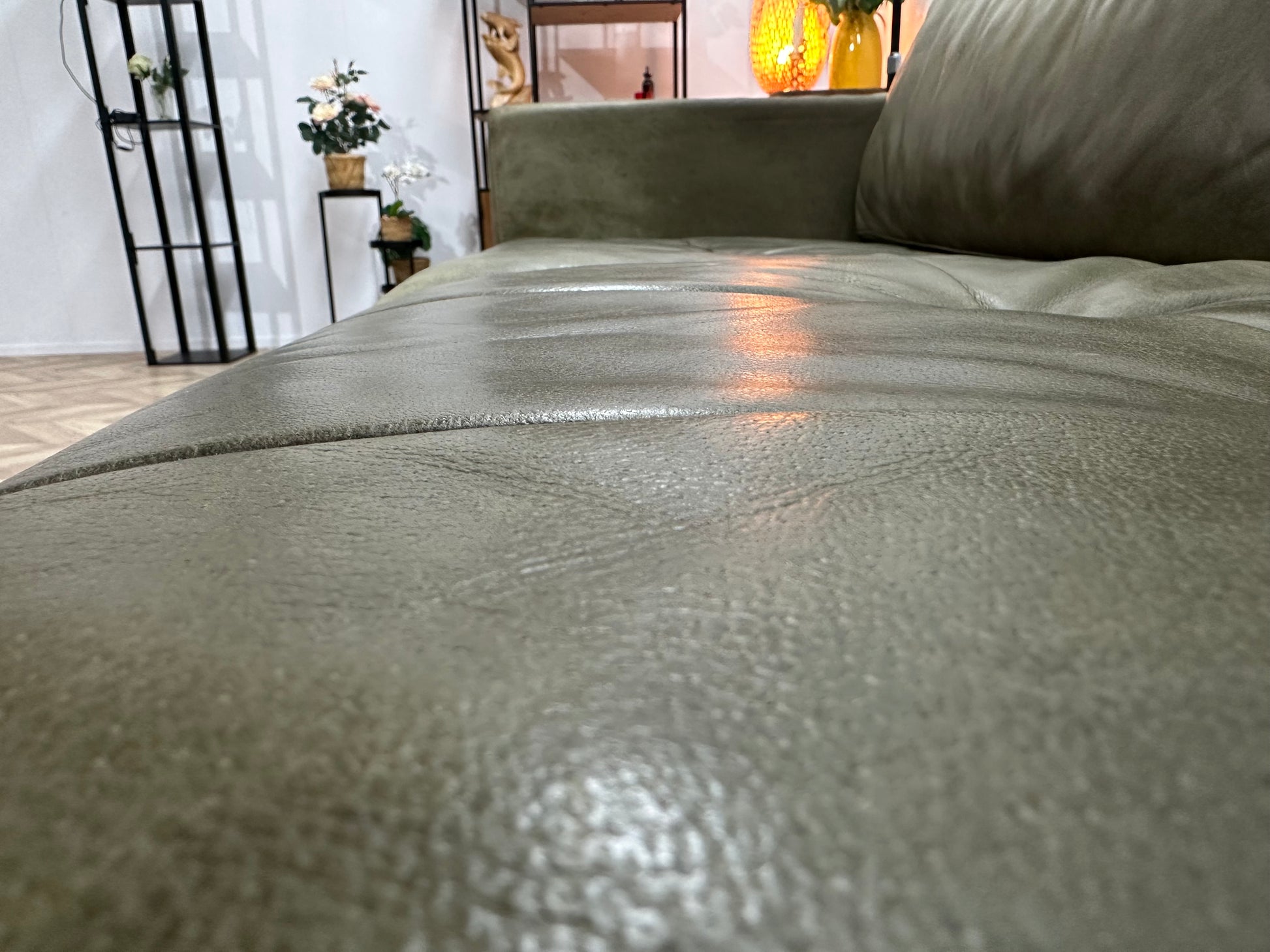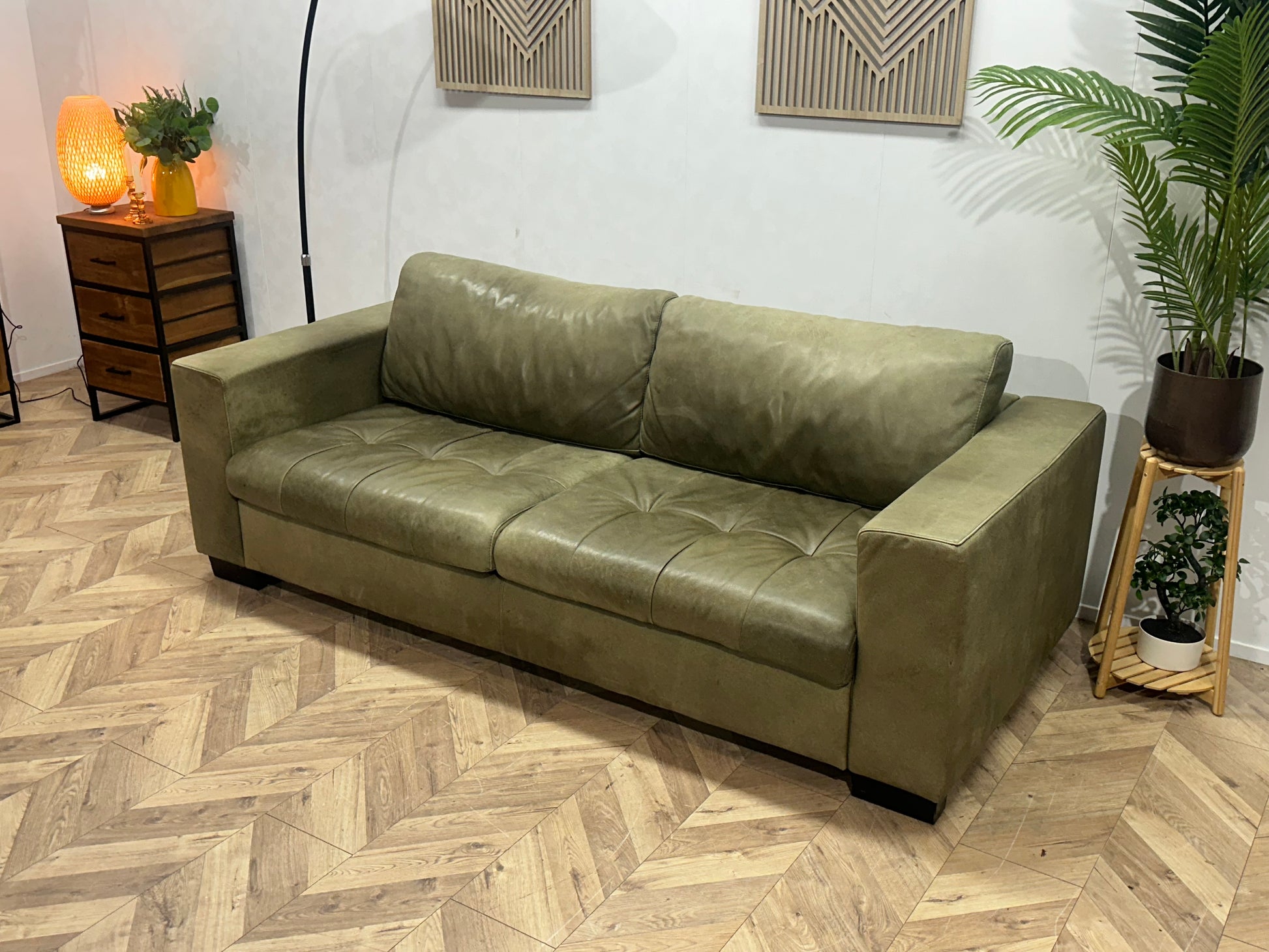 Groene Echt Lederen 2.5-Zits Bank ~ Losse Kussens Met Afneembare Hoezen