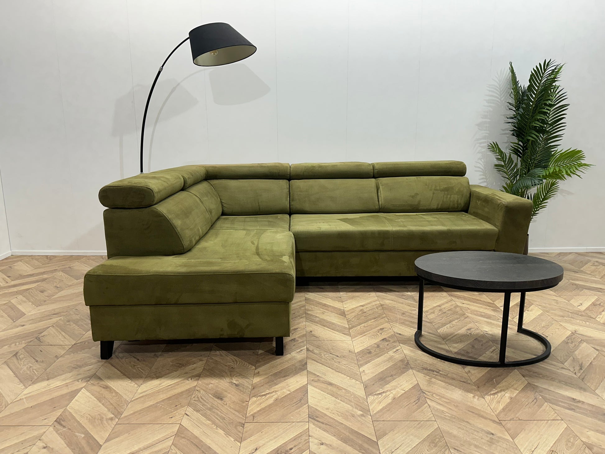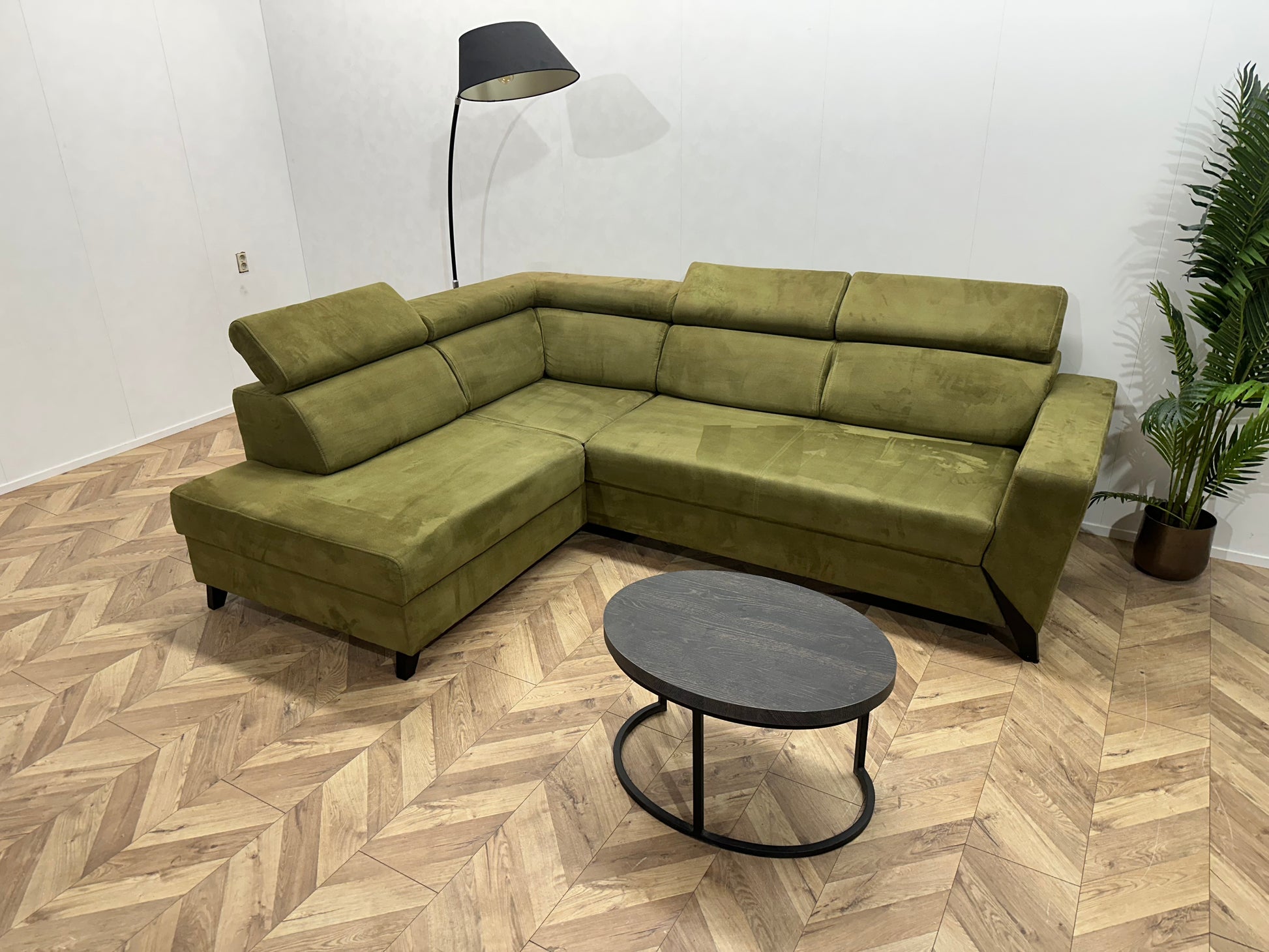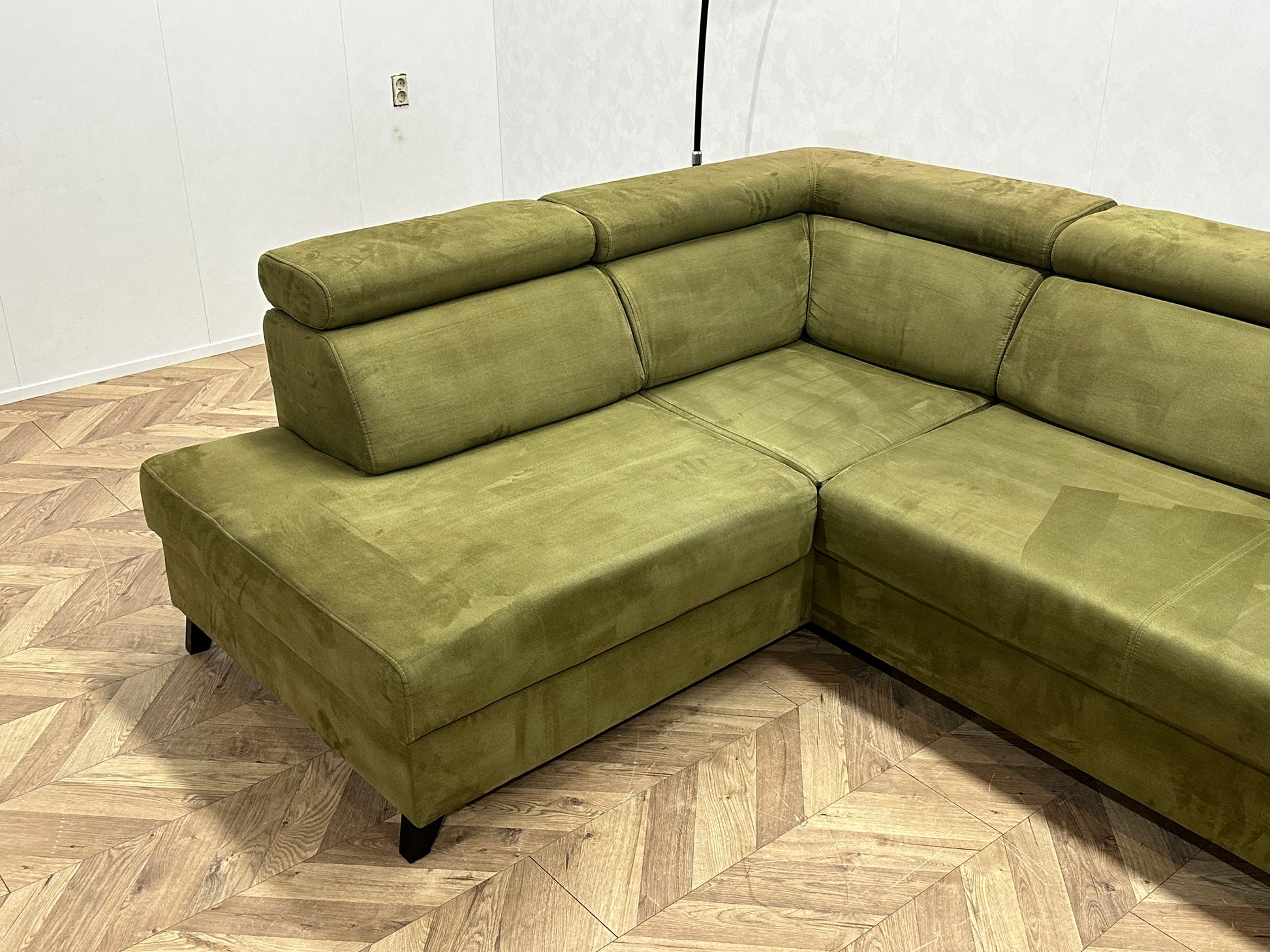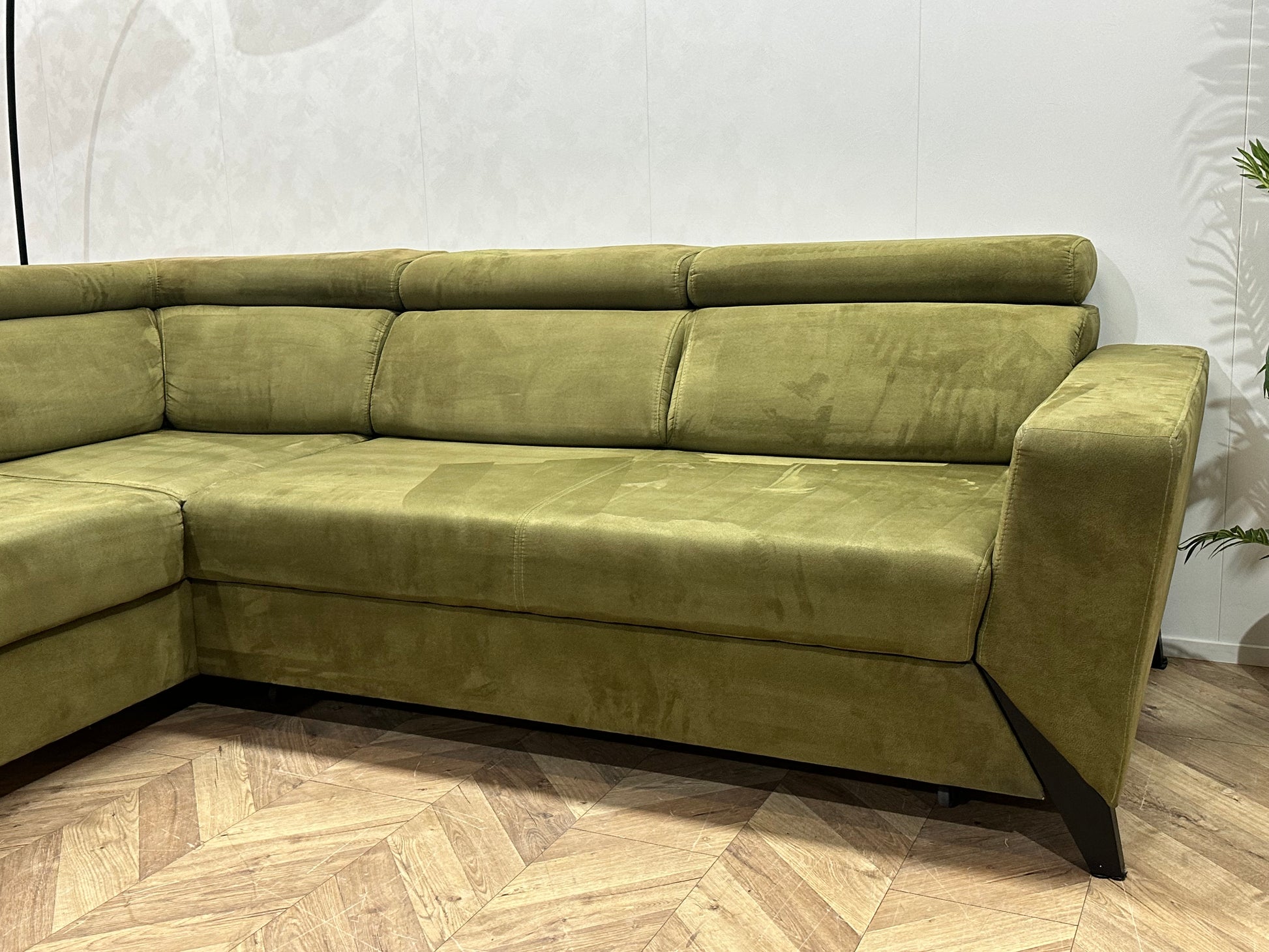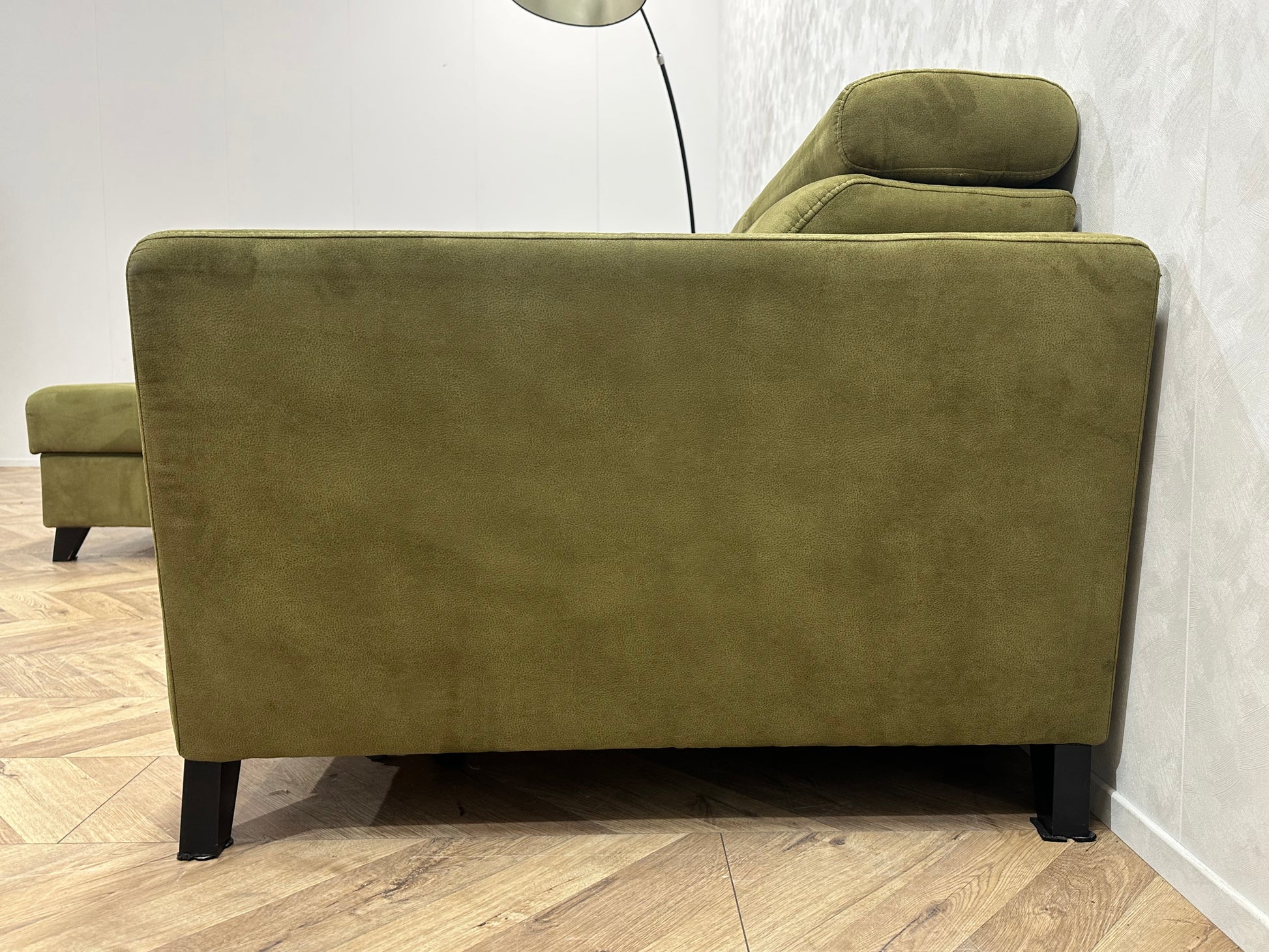 Groene Suède Stoffen Hoekbank ~ Opbergruimte ~ Slaapfunctie ~ Verstelbare Hoofdsteunen
