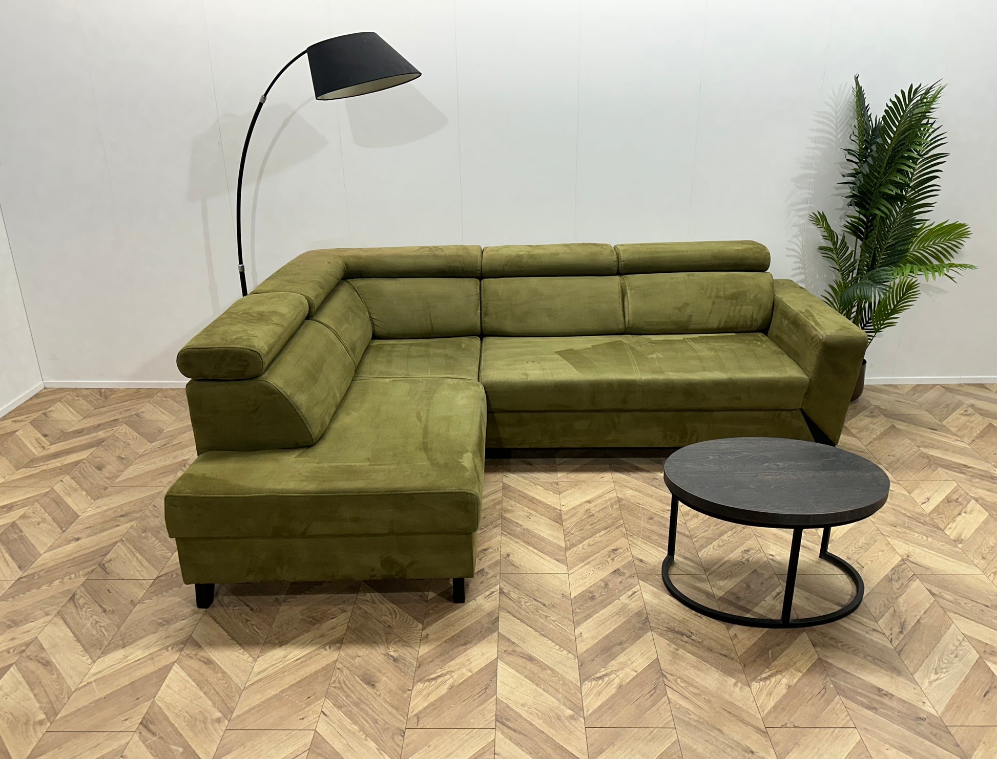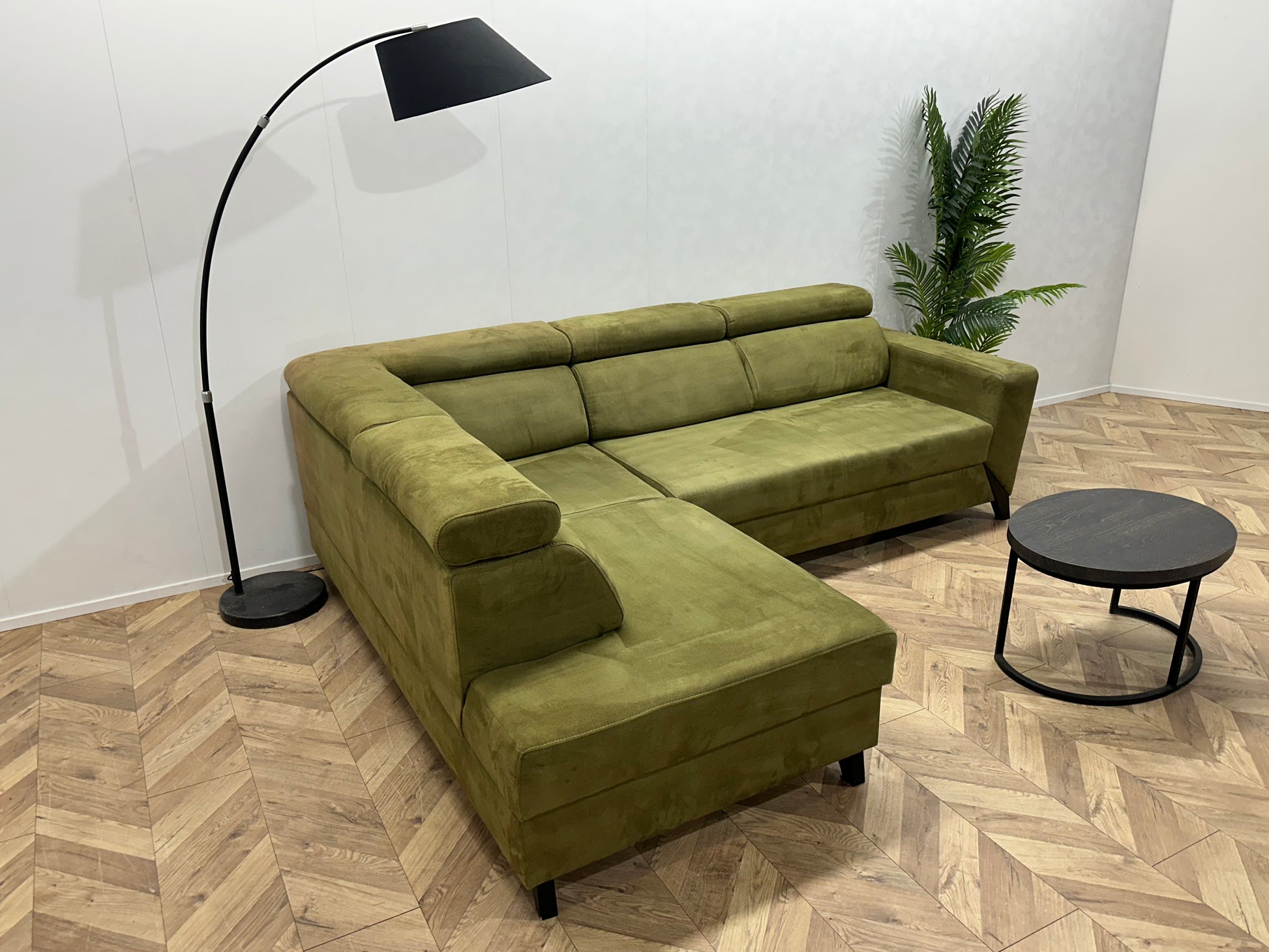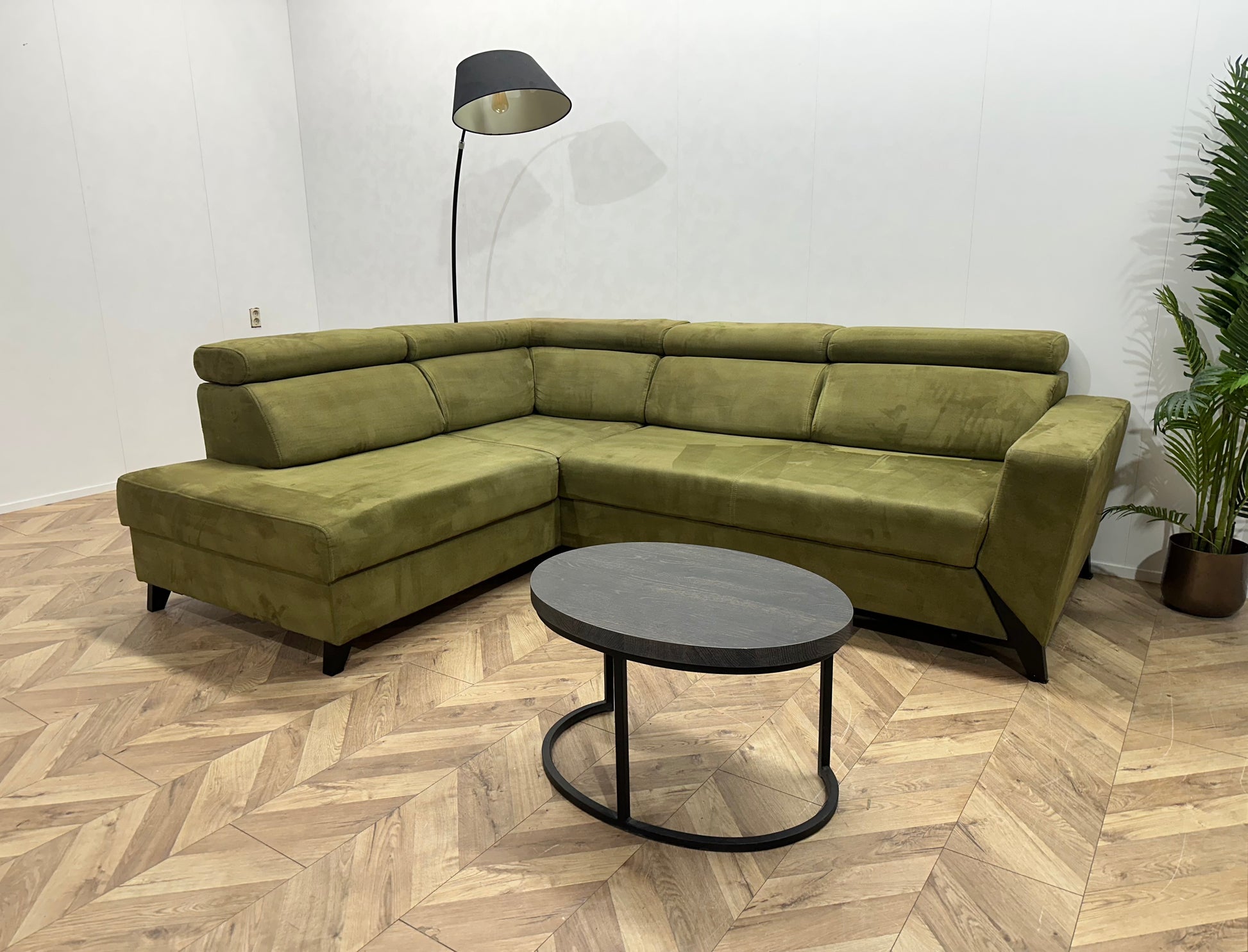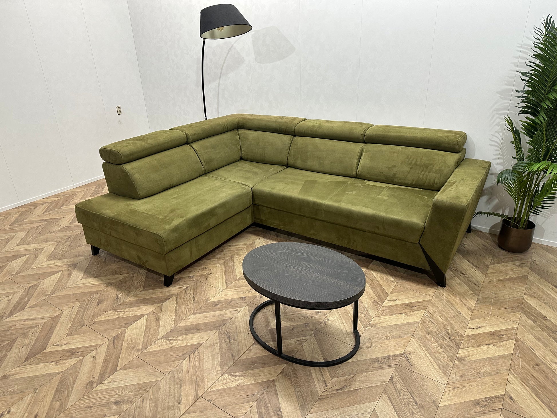 Groene Suède Stoffen Hoekbank ~ Opbergruimte ~ Slaapfunctie ~ Verstelbare Hoofdsteunen