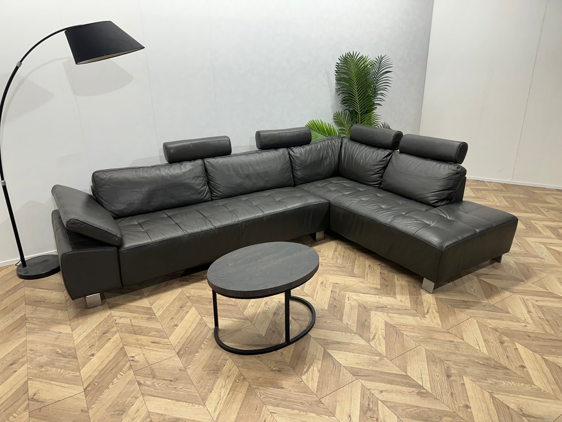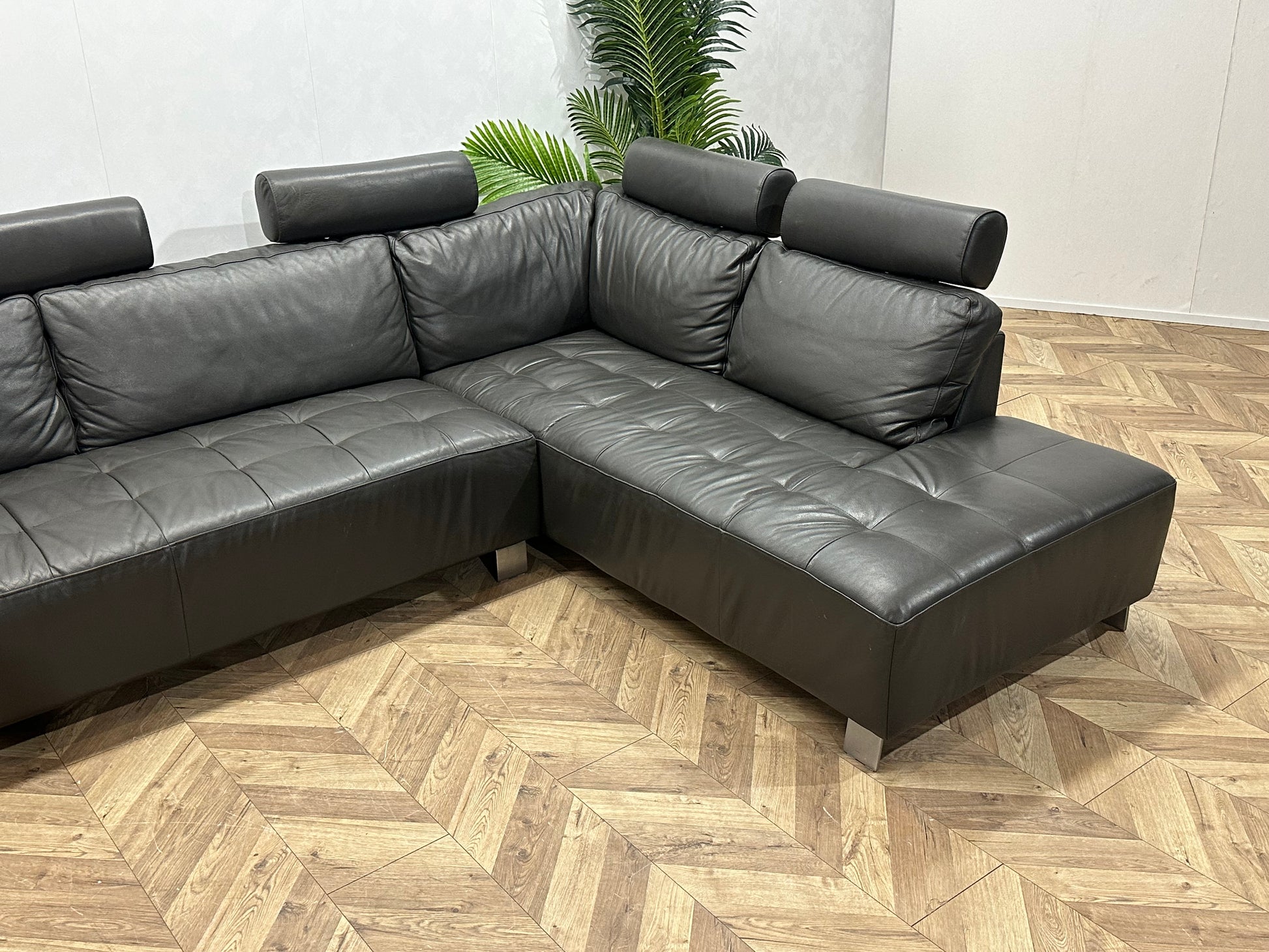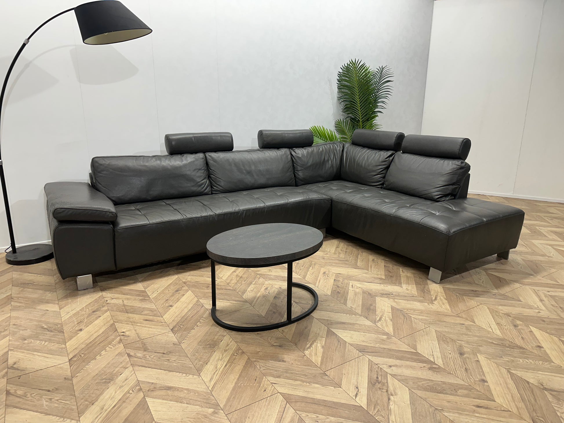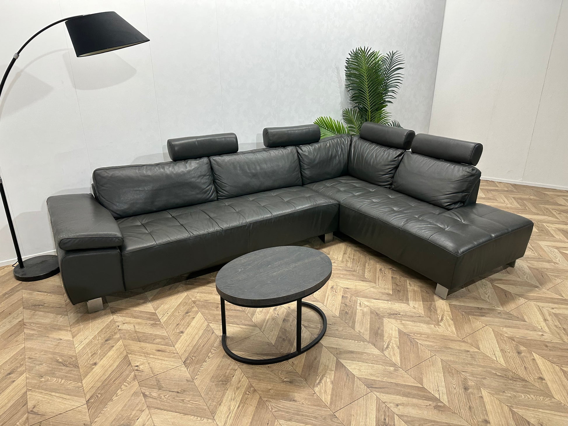 H&H Antraciet Echt Lederen Hoekbank ~ Inruilvoordeel