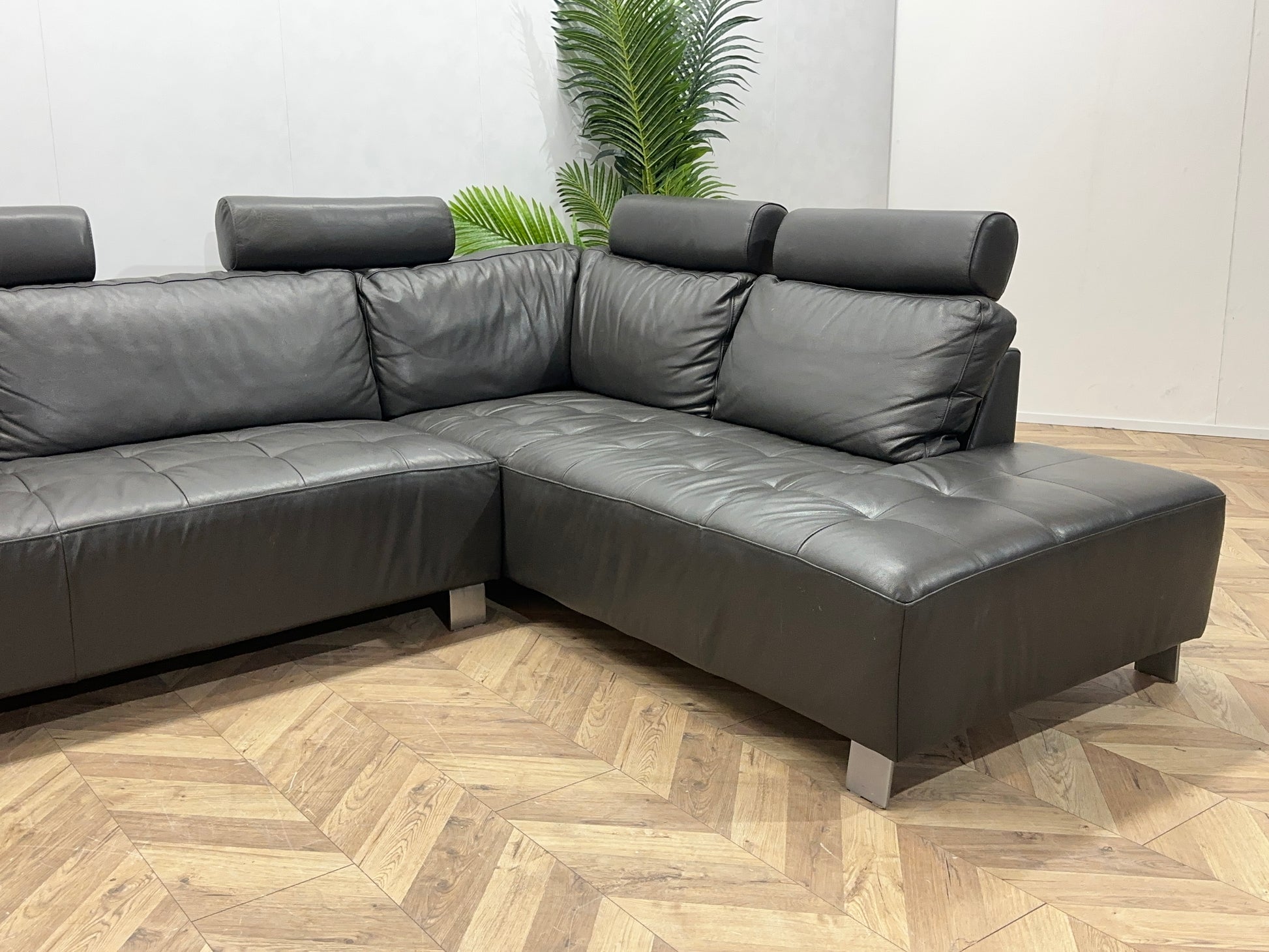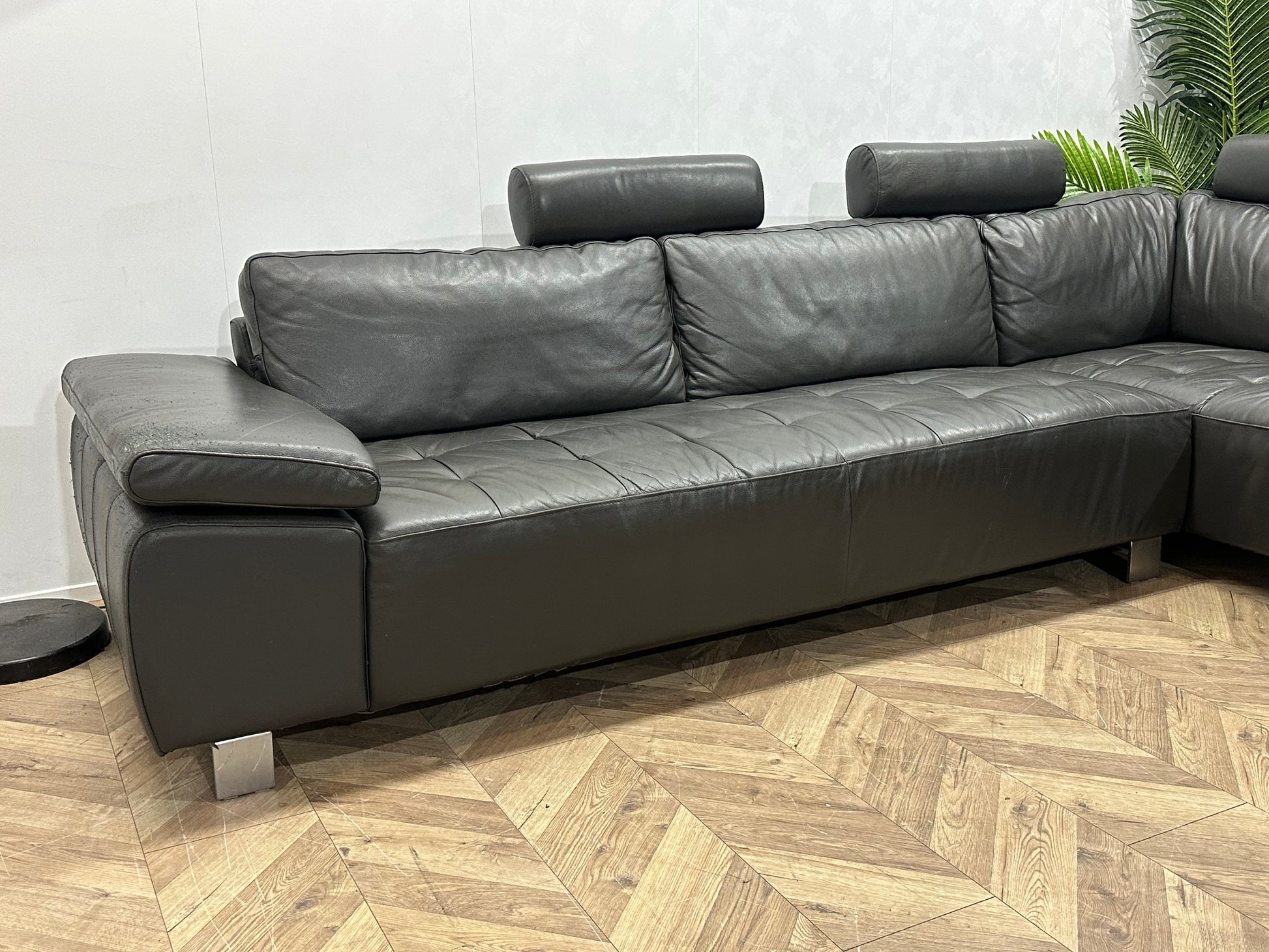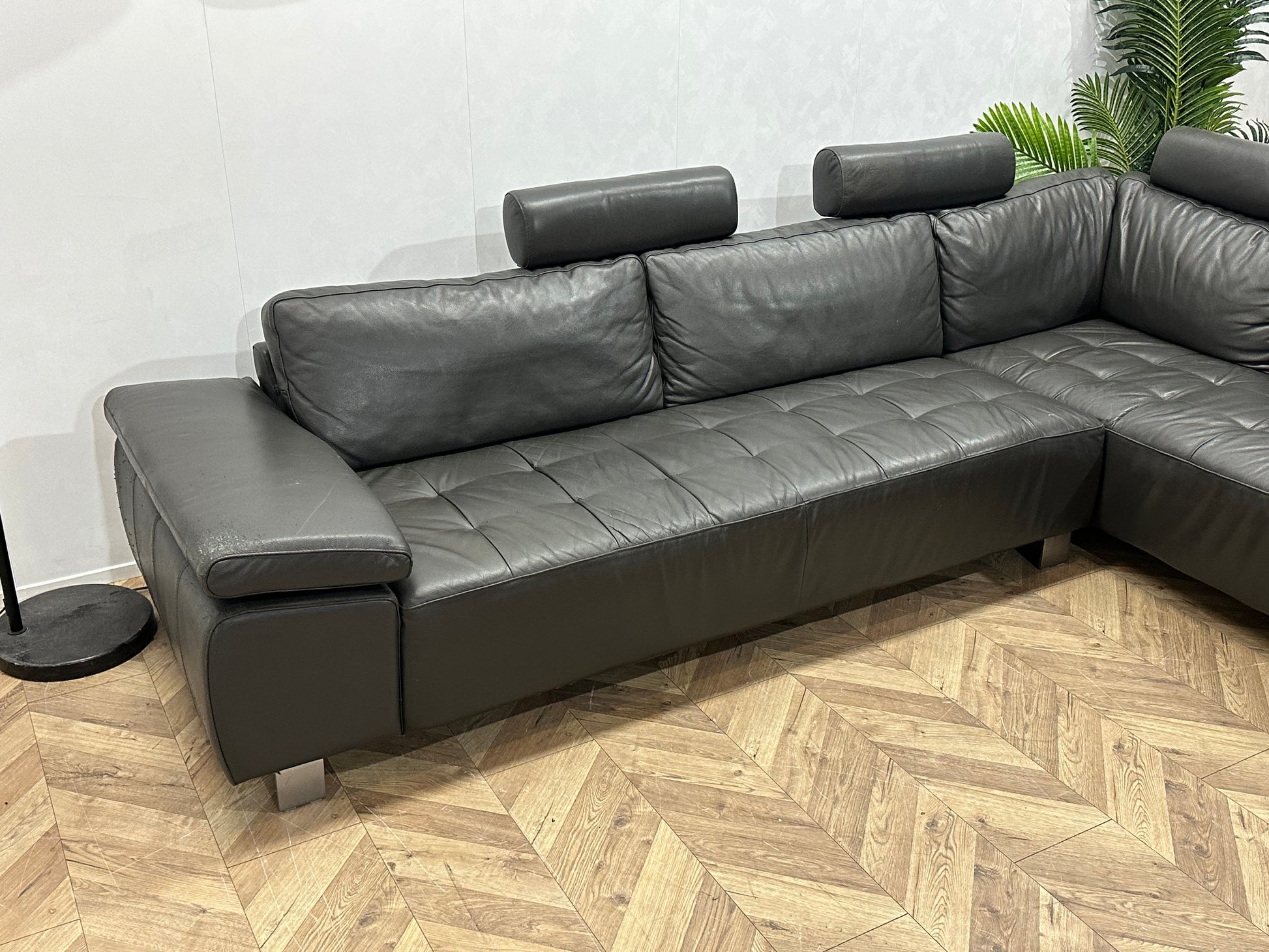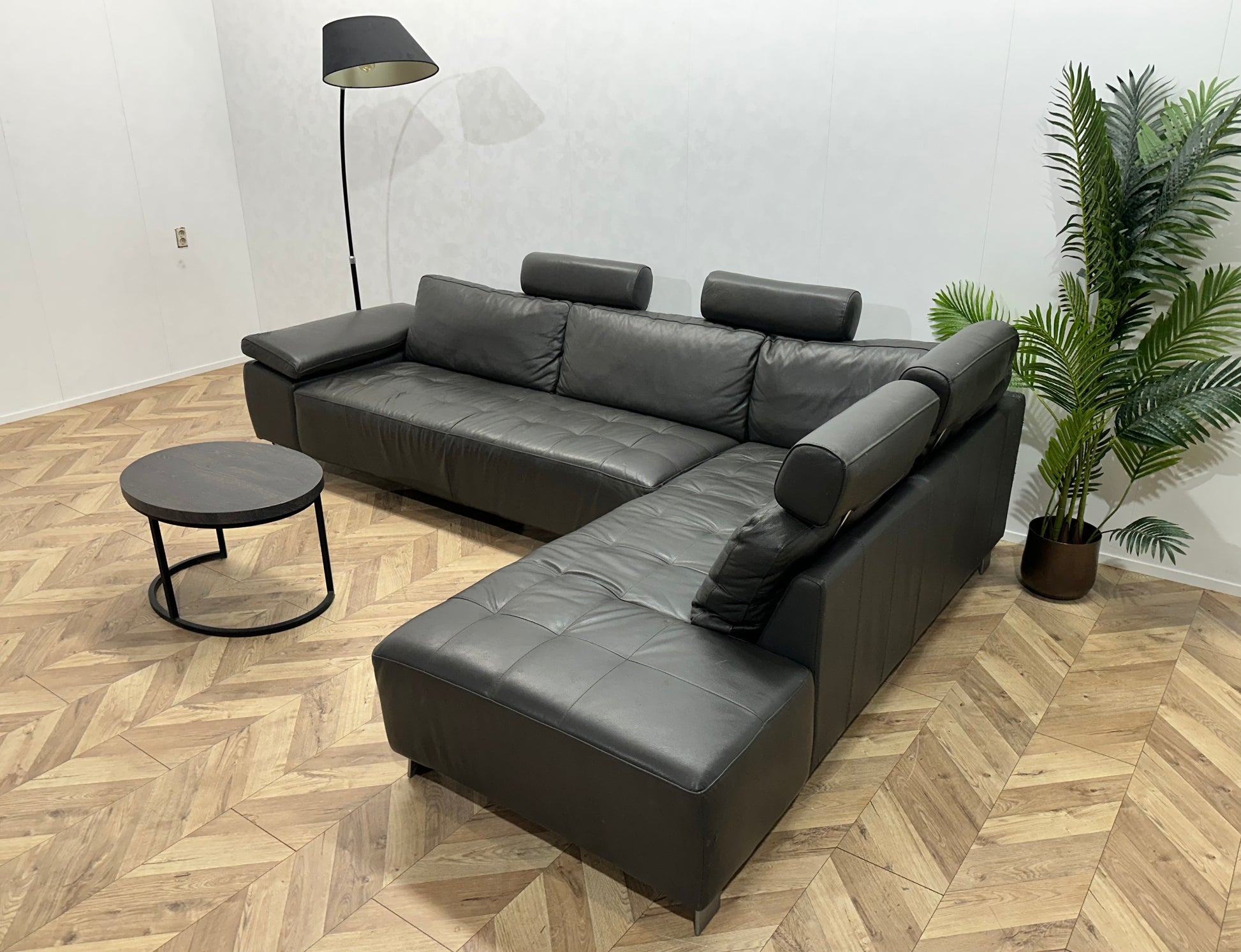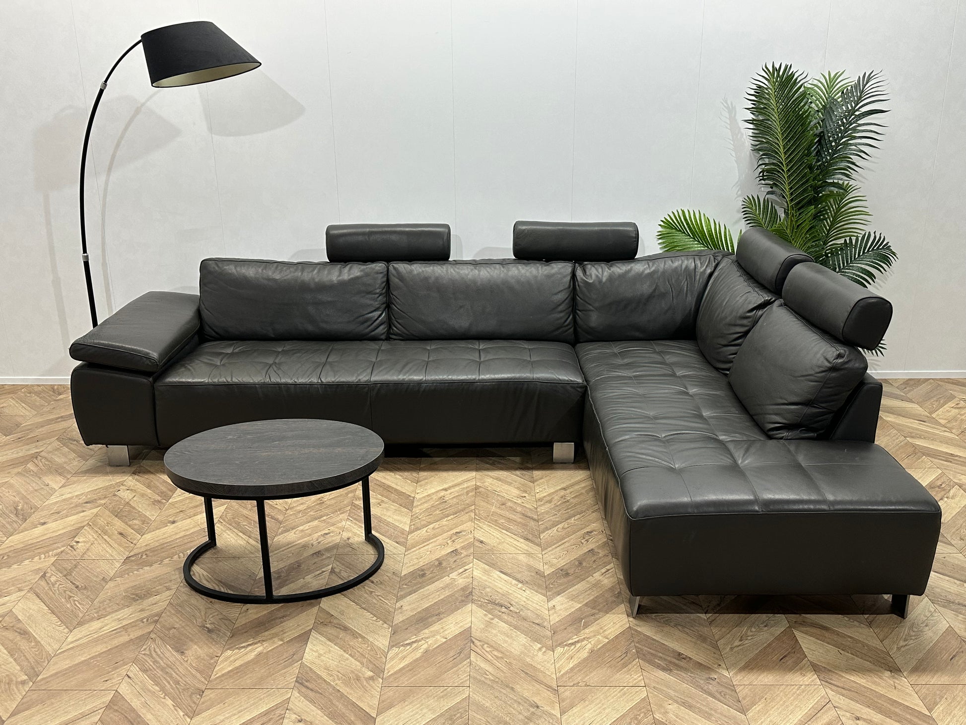 H&H Antraciet Echt Lederen Hoekbank ~ Inruilvoordeel