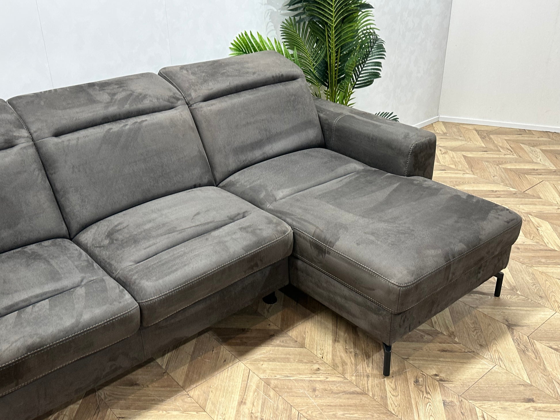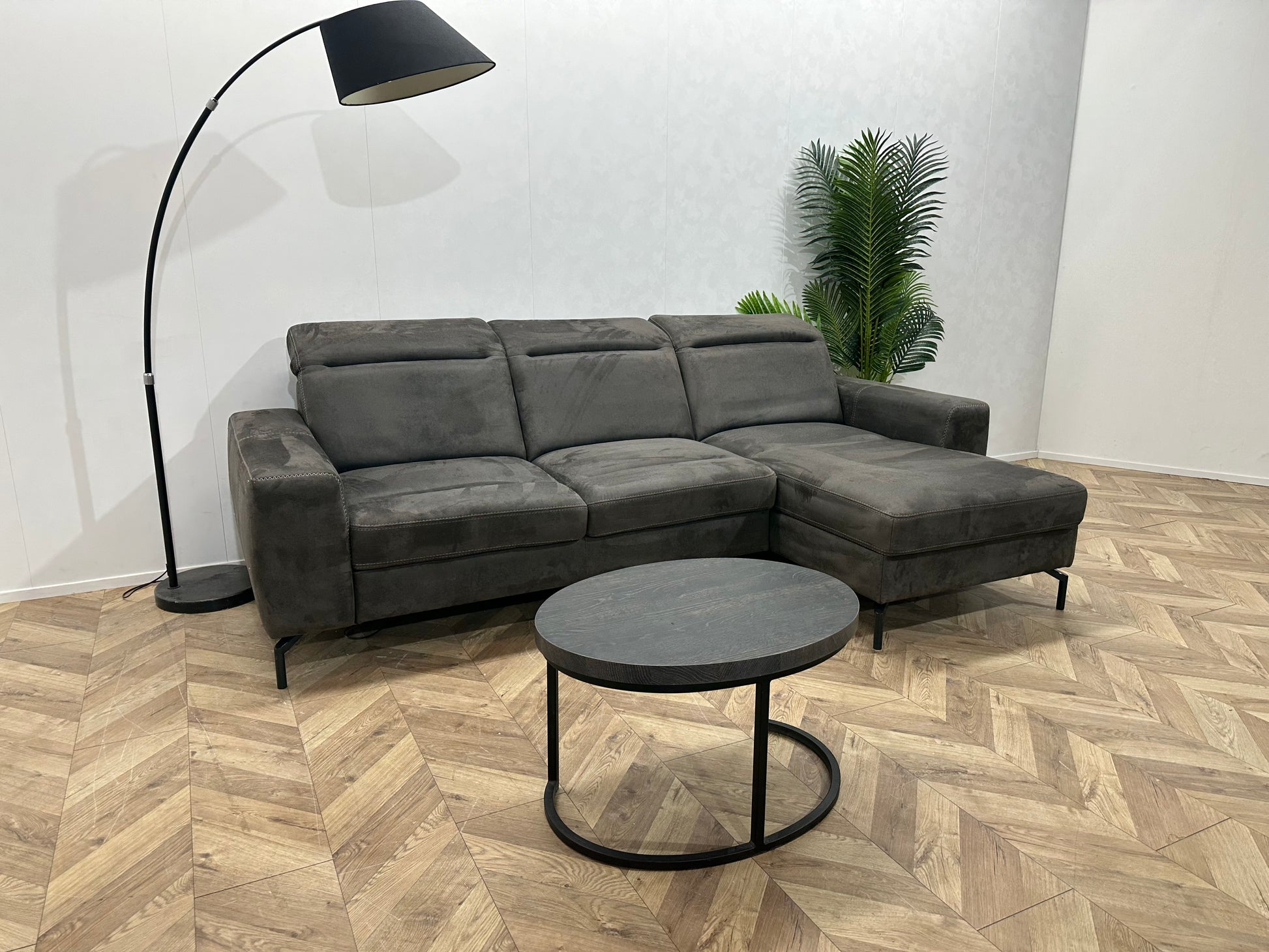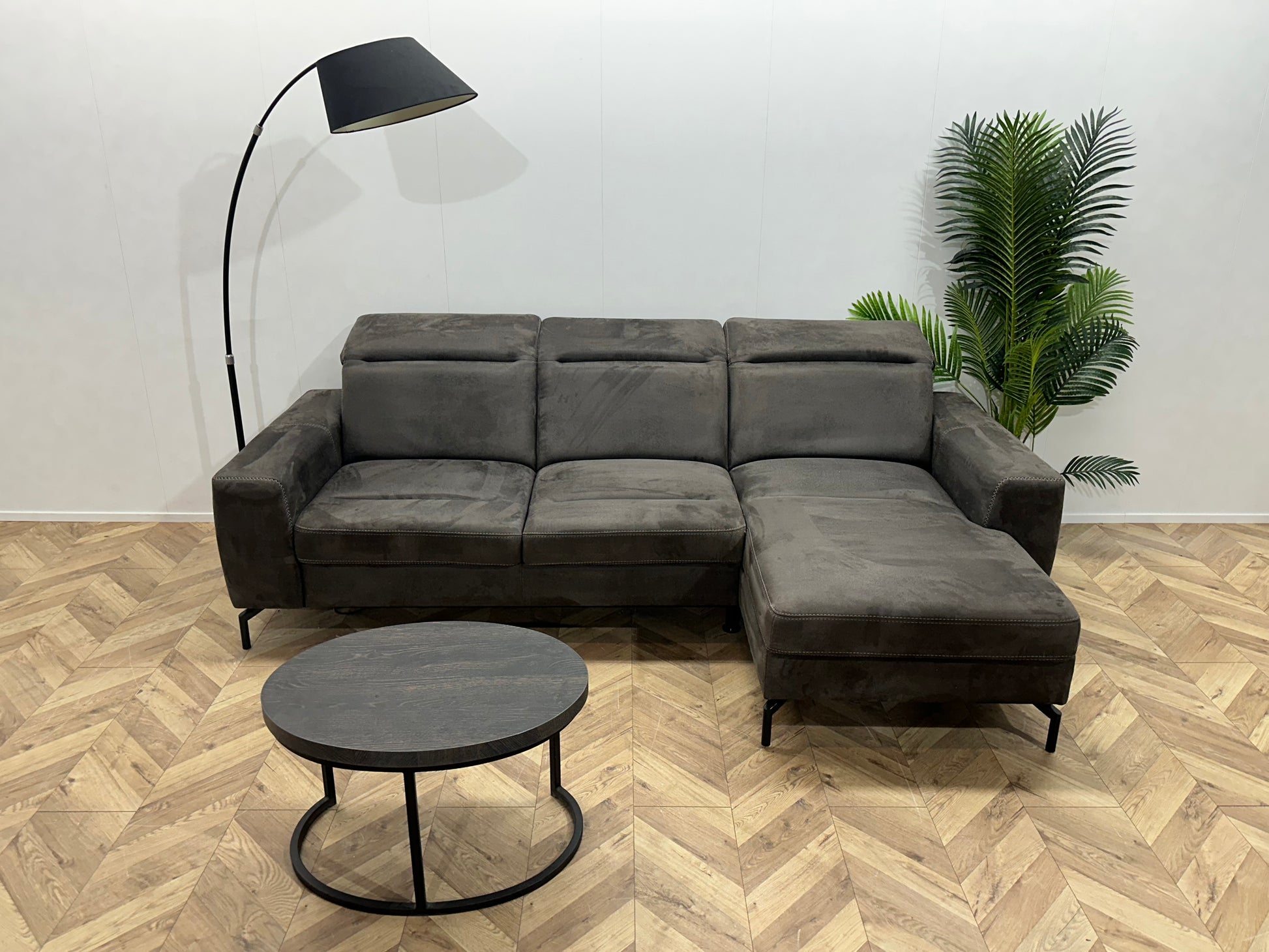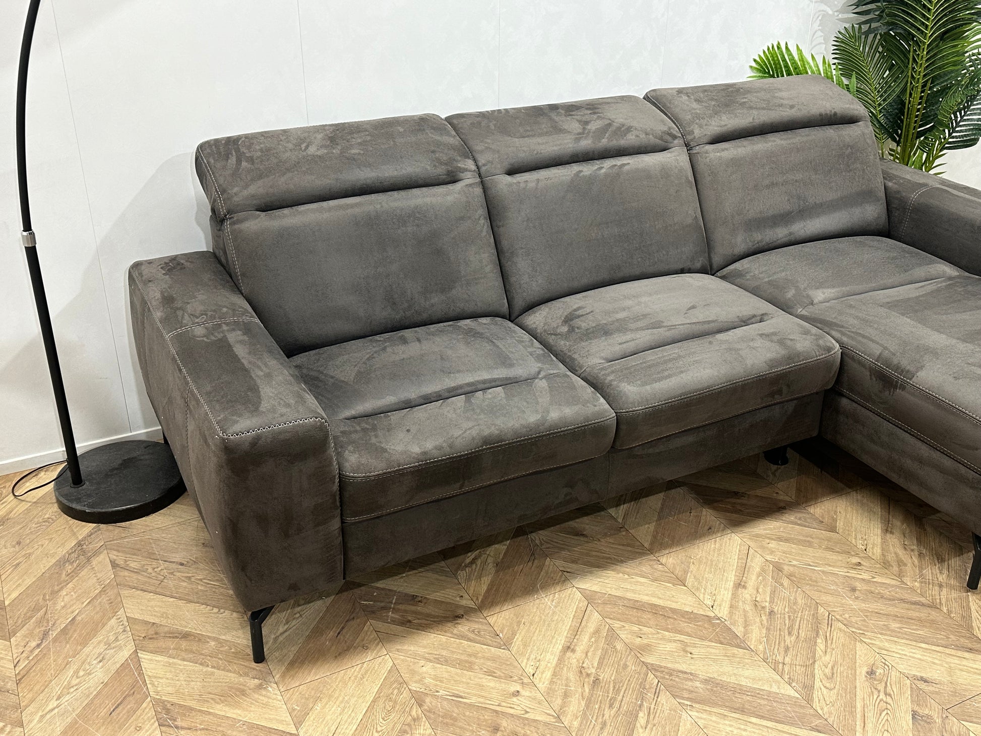 H&H Antraciet Suède Stoffen Hoekbank ~ Verstelbare Hoofdsteunen