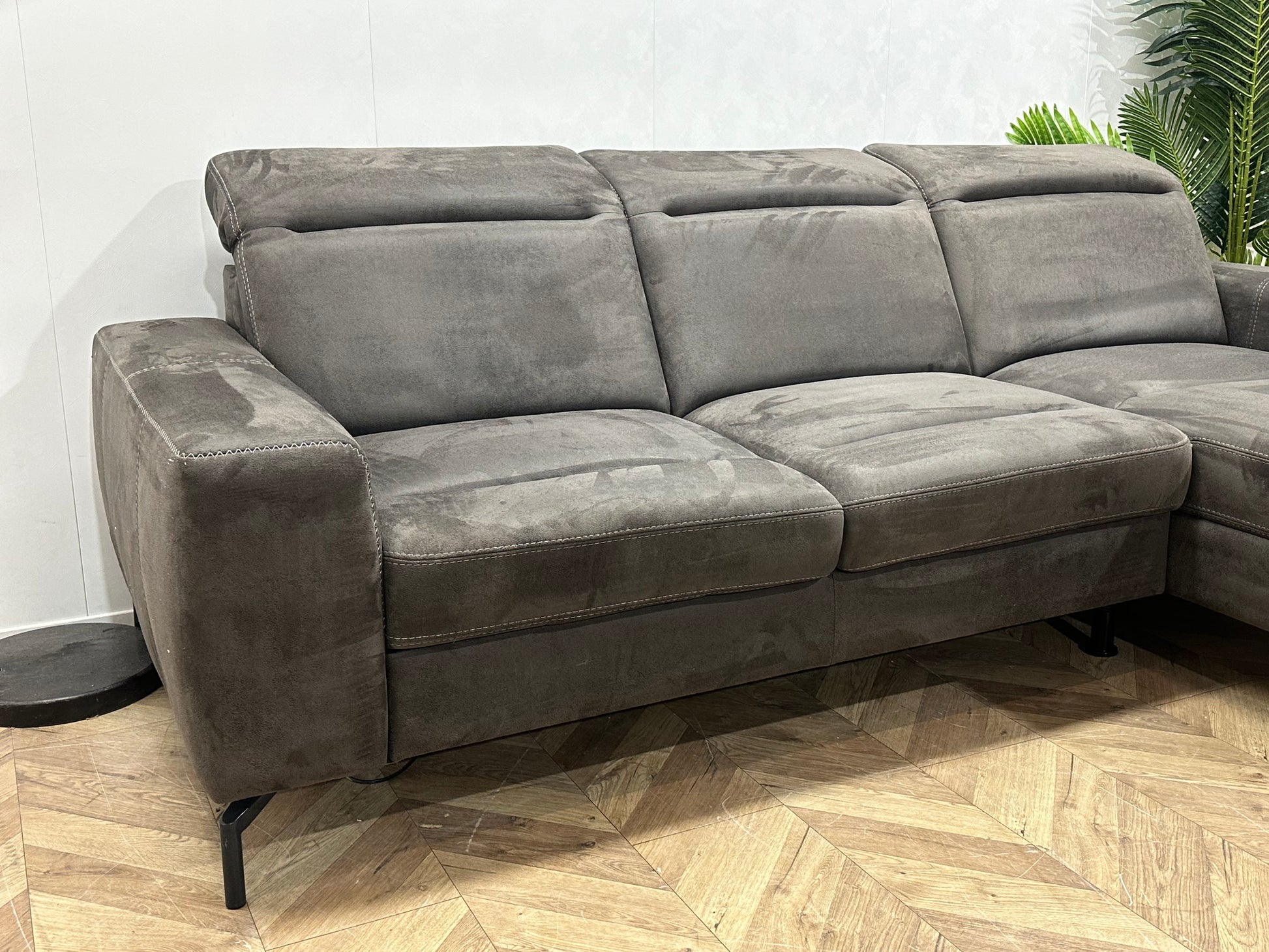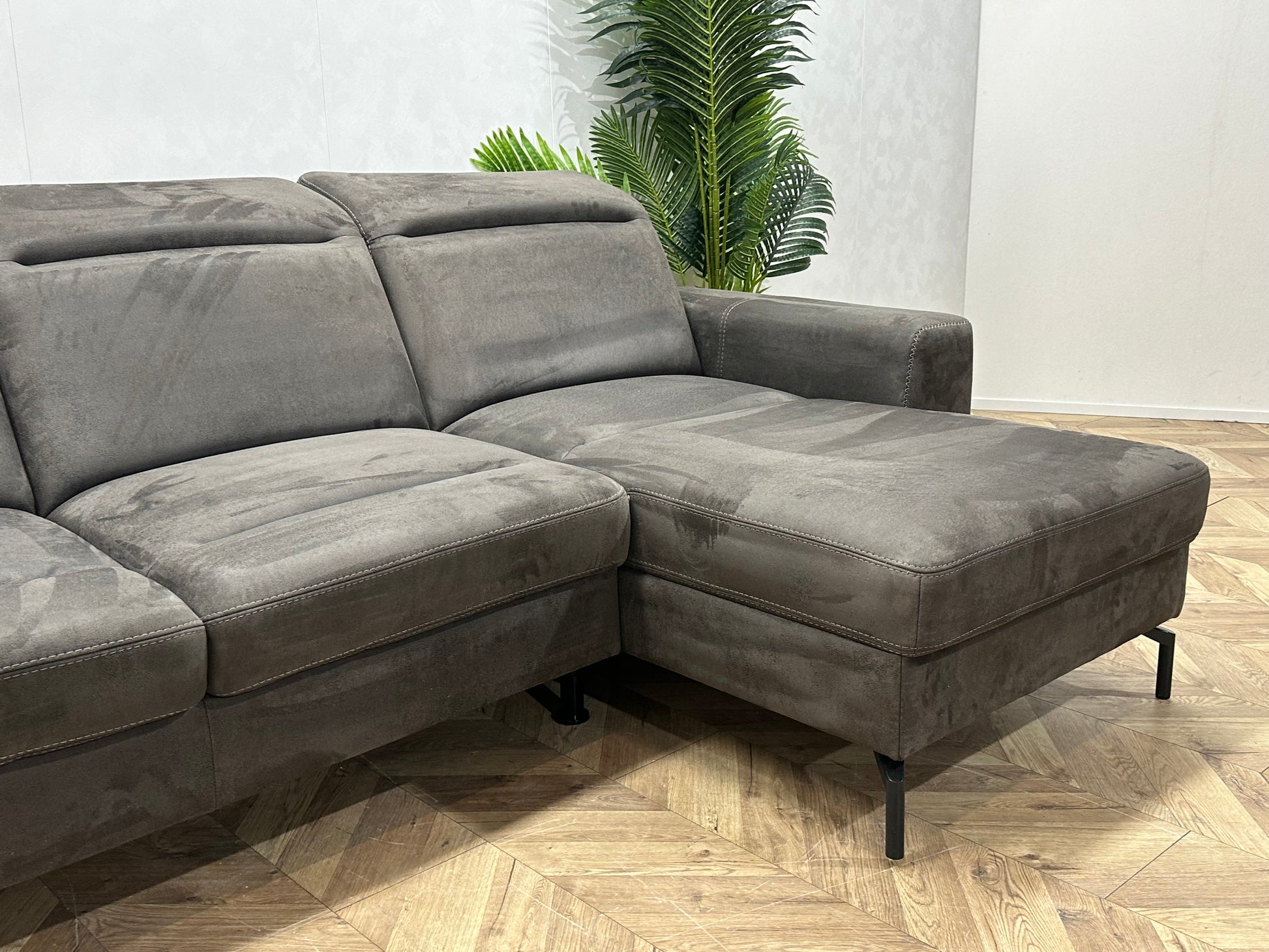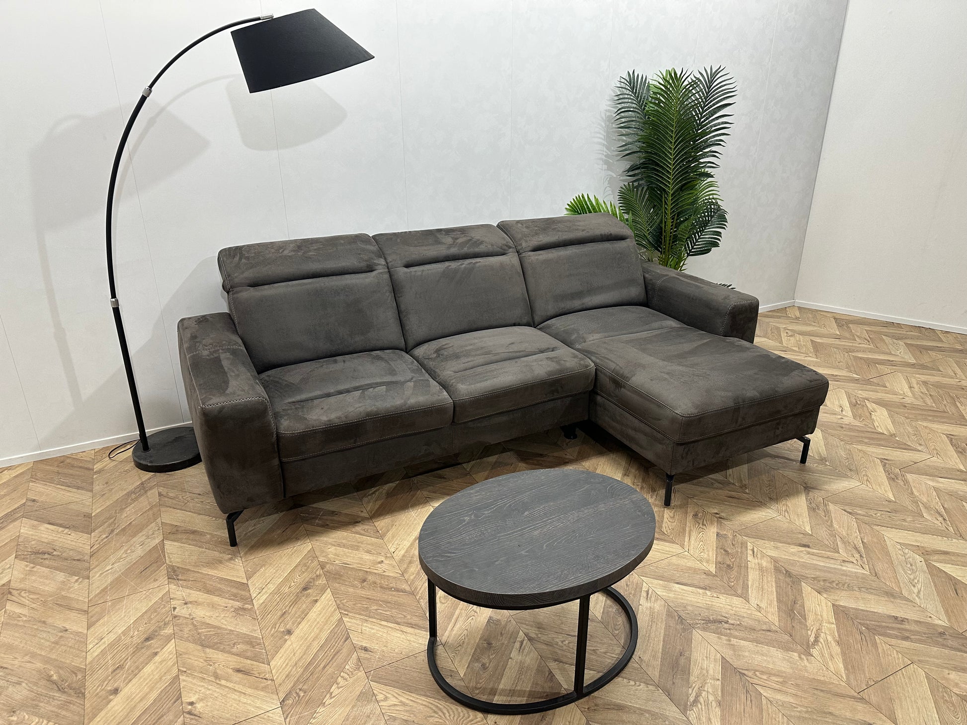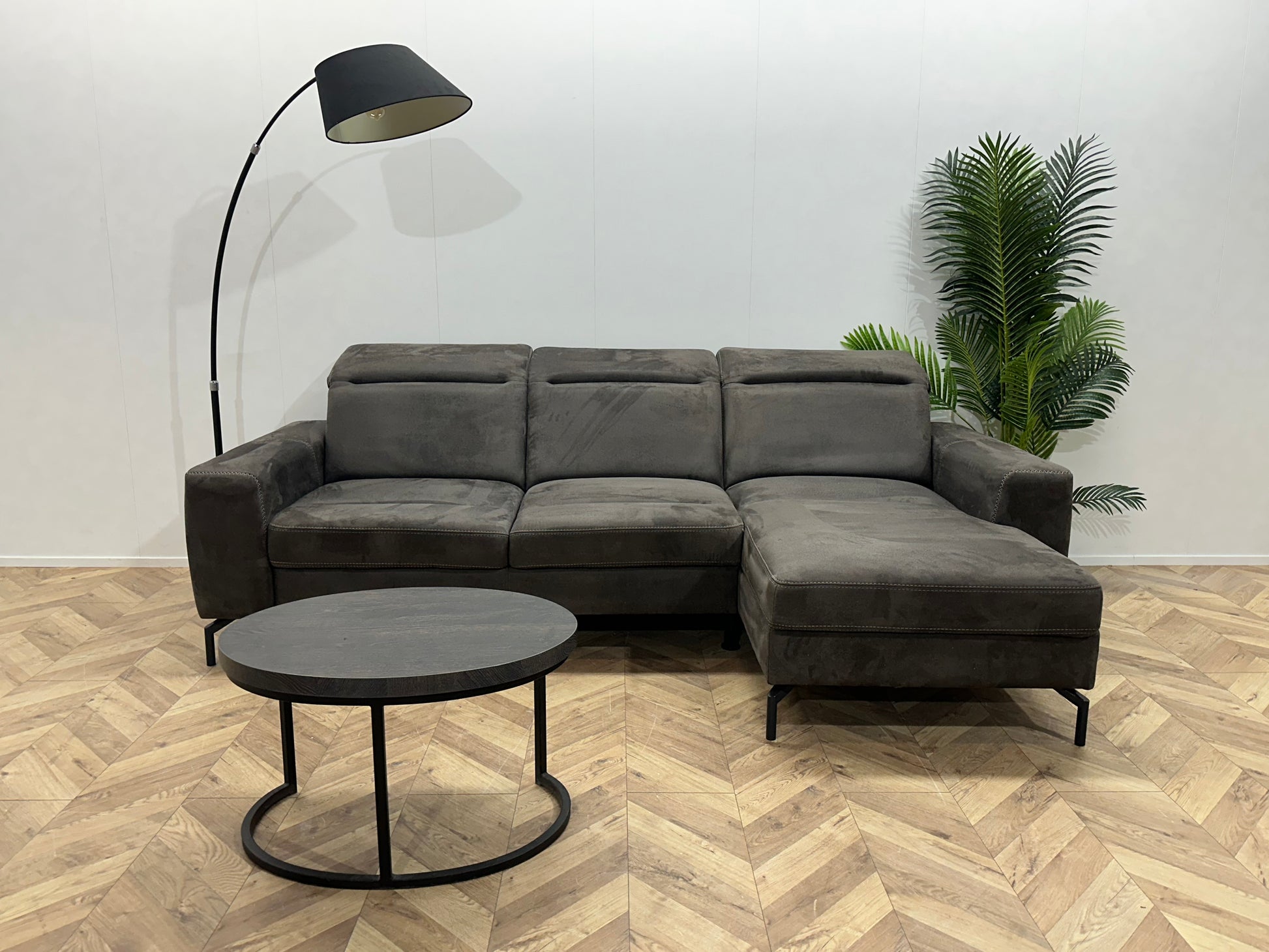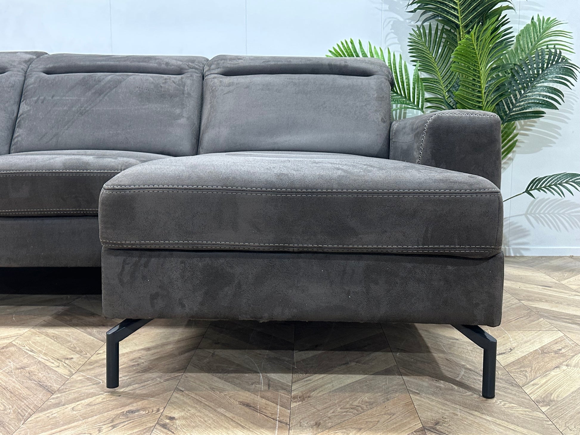 H&H Antraciet Suède Stoffen Hoekbank ~ Verstelbare Hoofdsteunen
