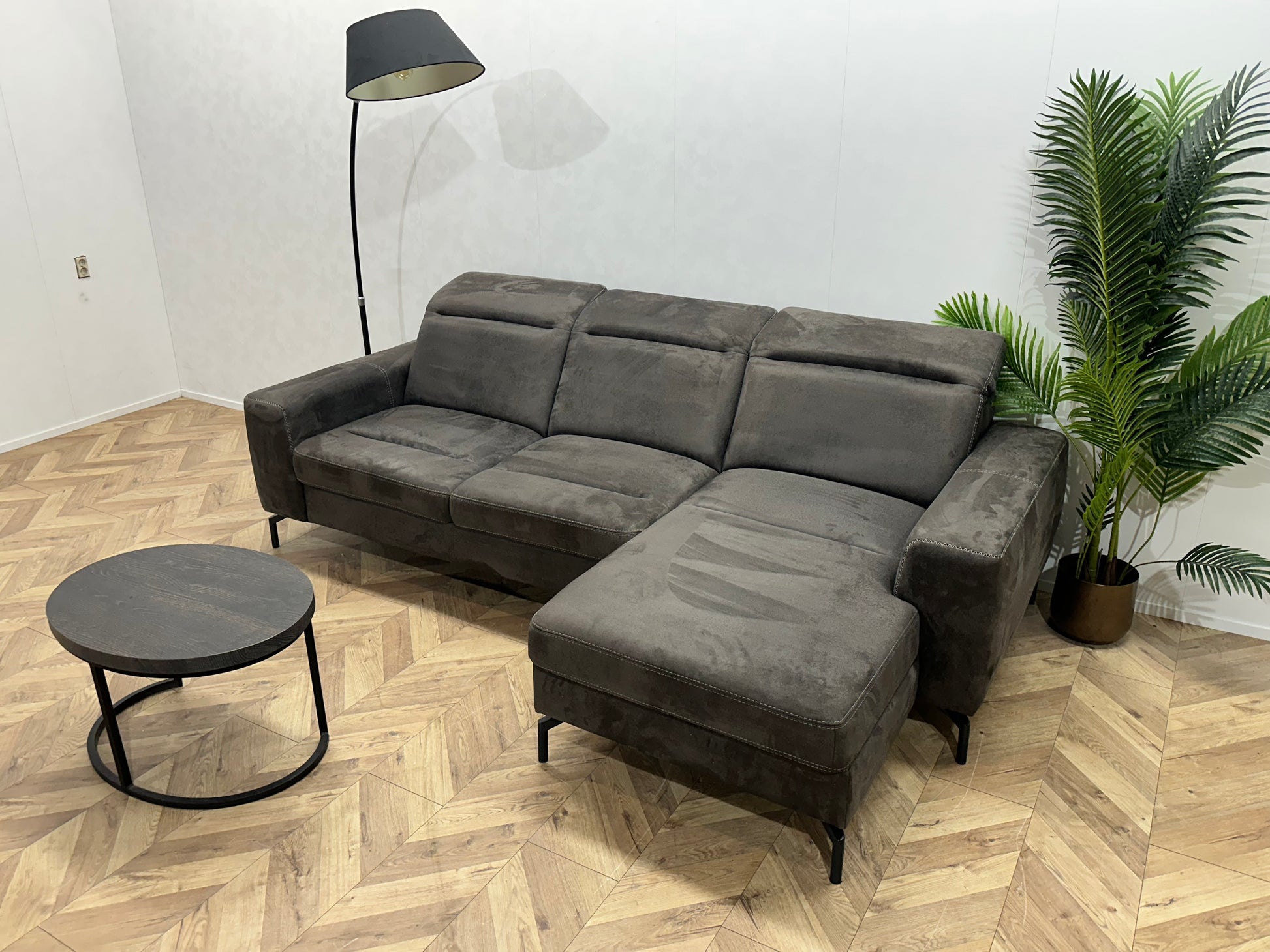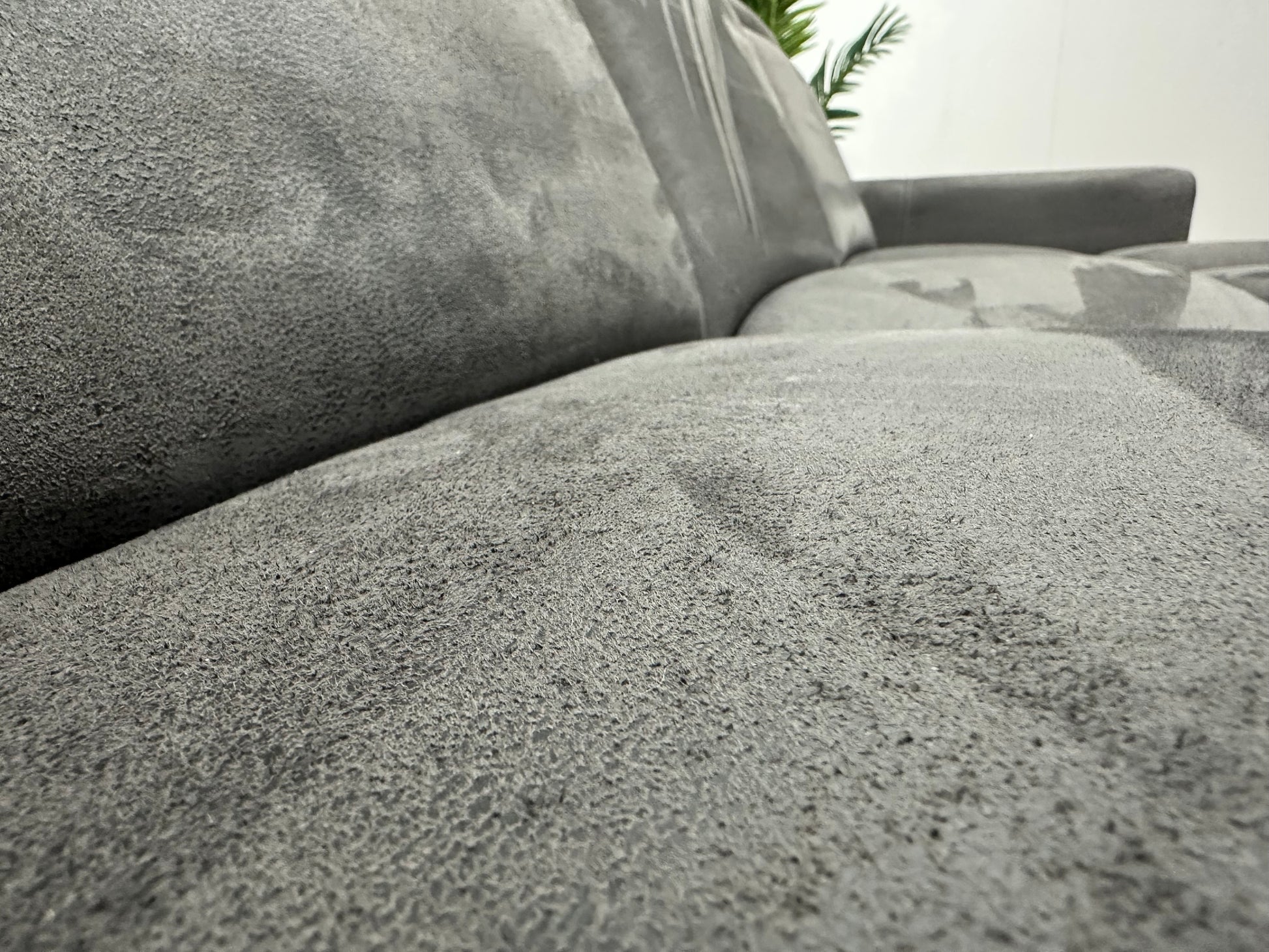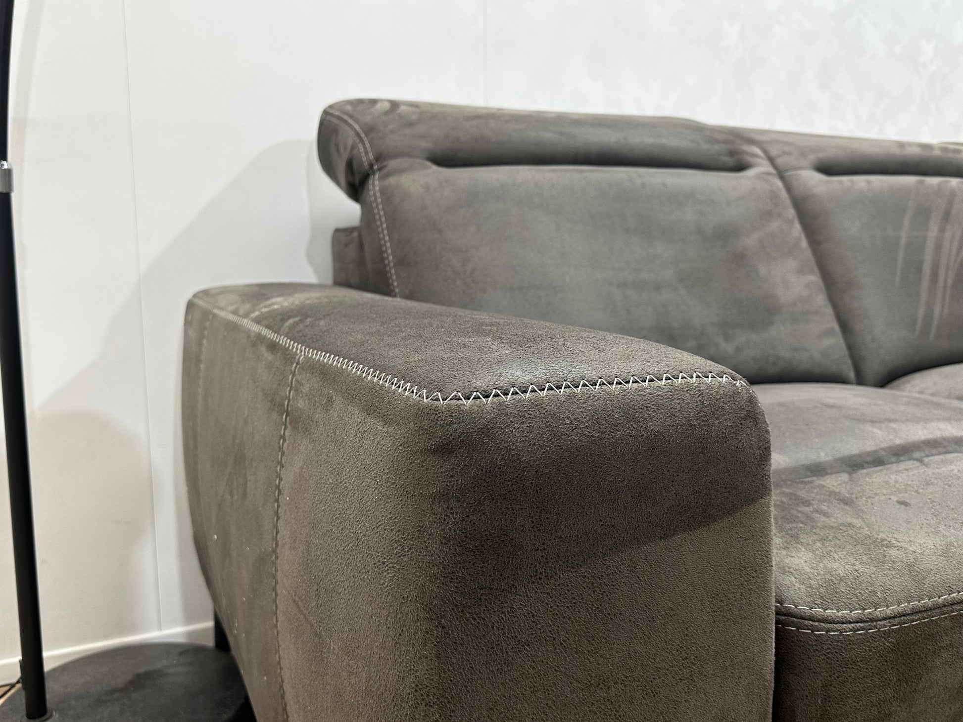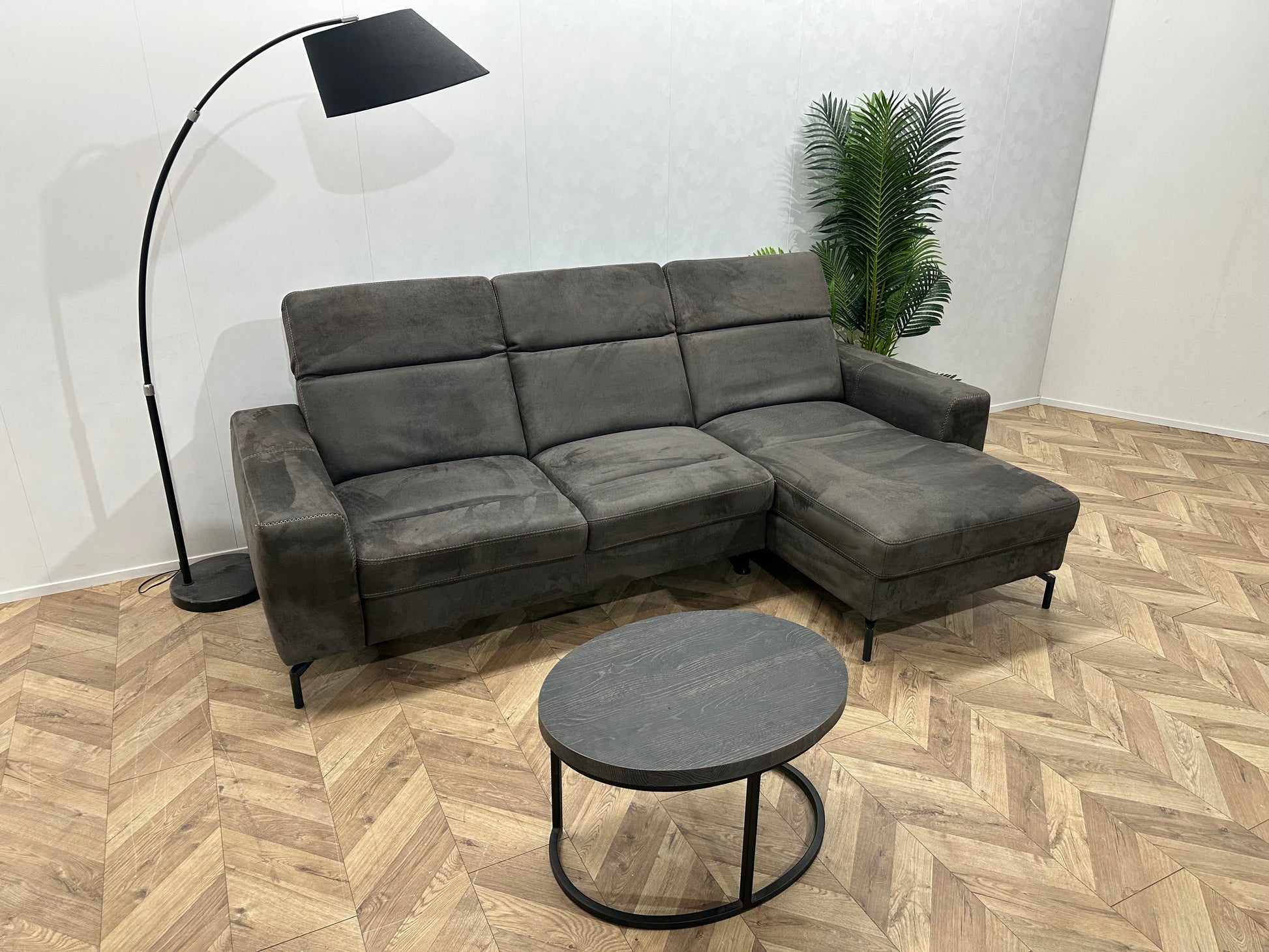 H&H Antraciet Suède Stoffen Hoekbank ~ Verstelbare Hoofdsteunen