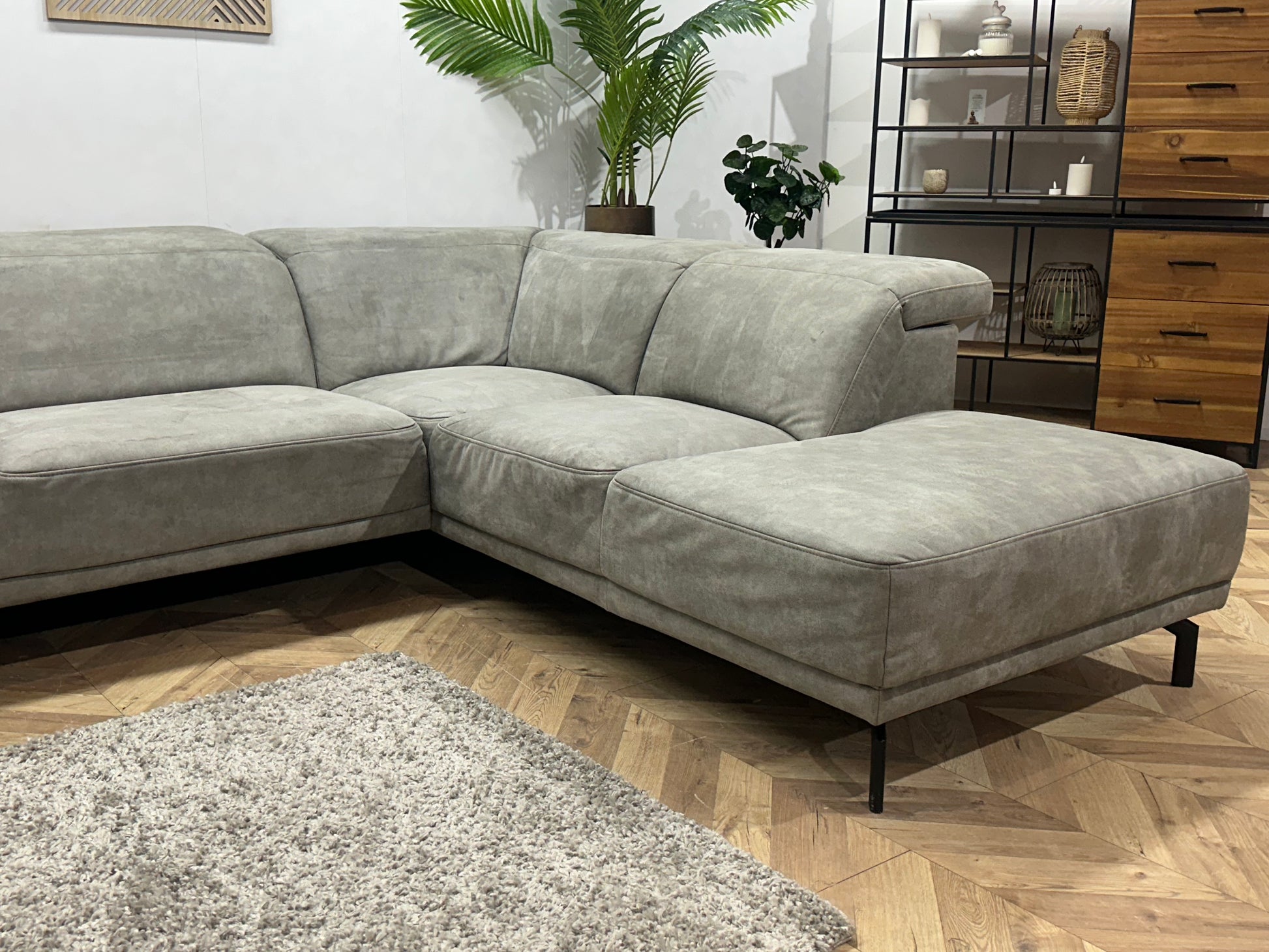 H&H Grijze Suède Stoffen Hoekbank ~ Verstelbare Hoofdsteunen