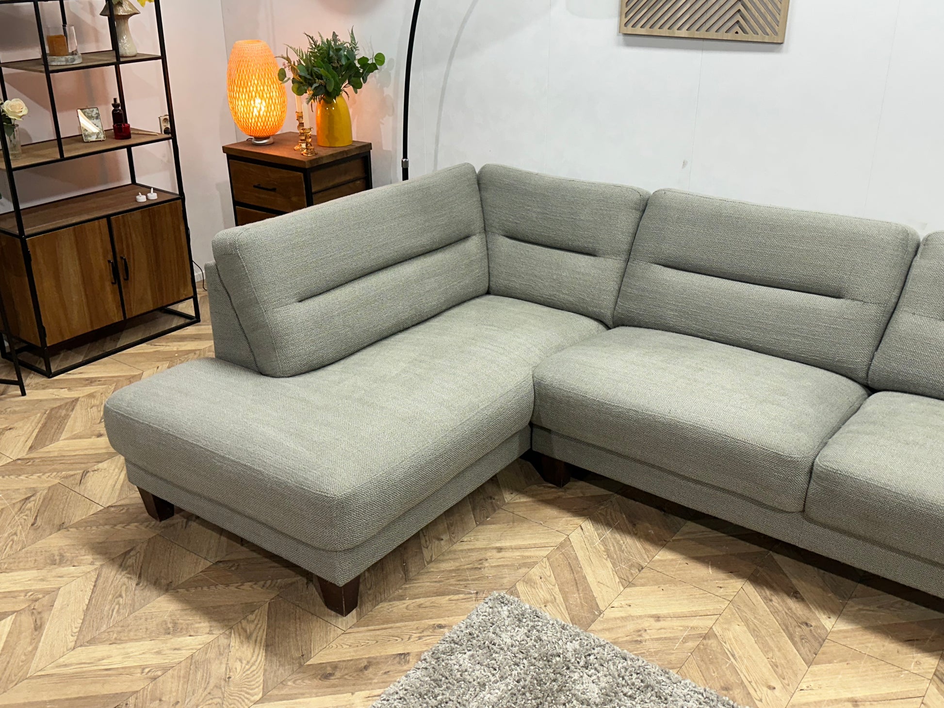 H&H Licht Grijze Hoekbank ~ Vaste Kussens