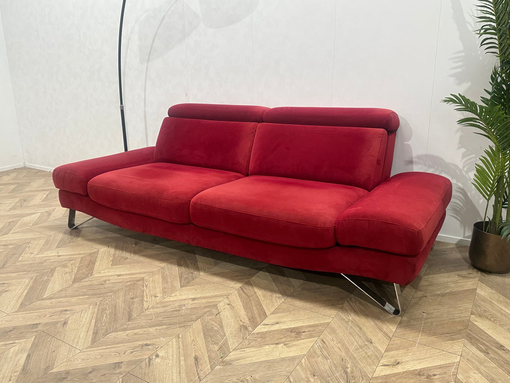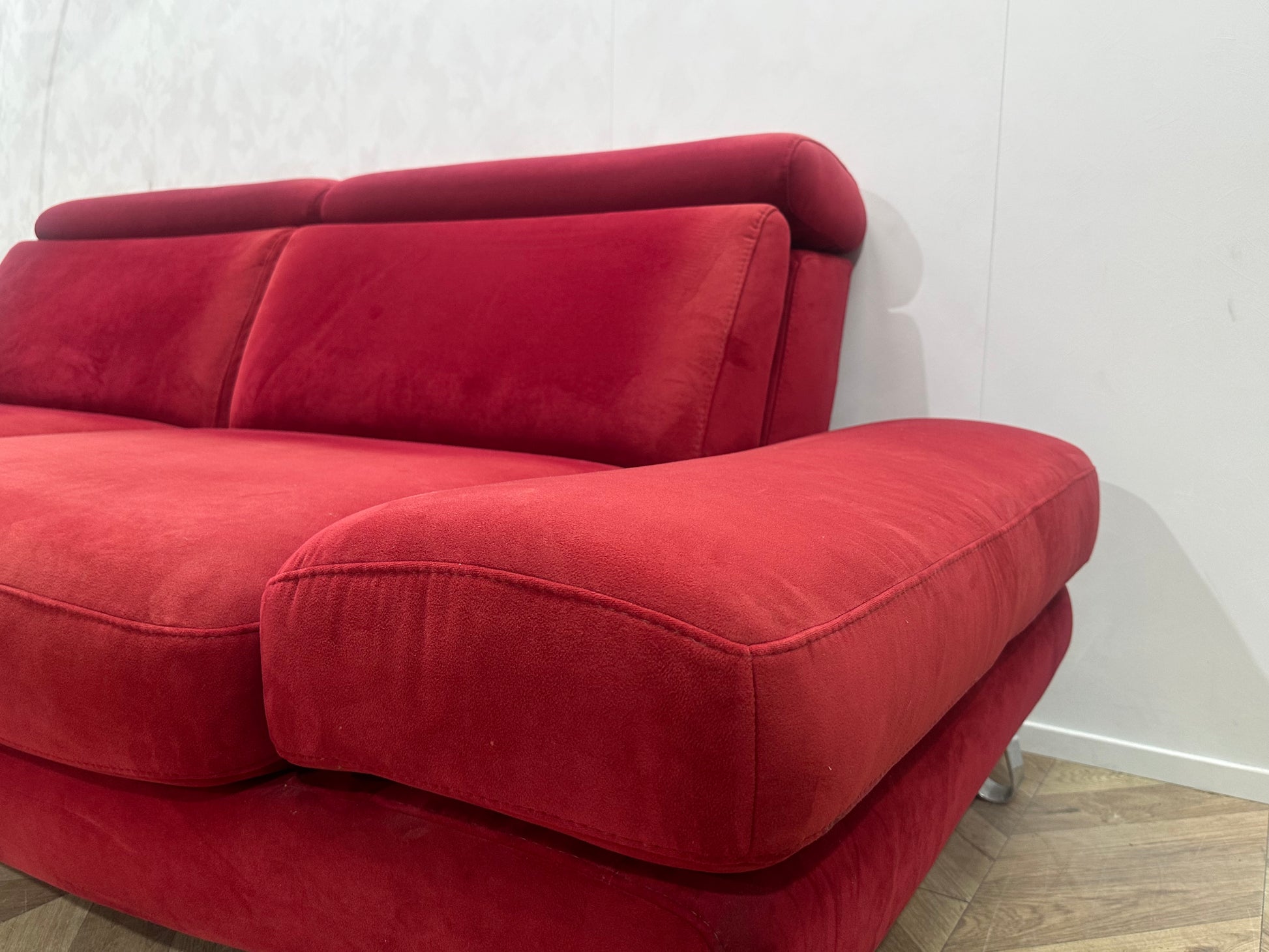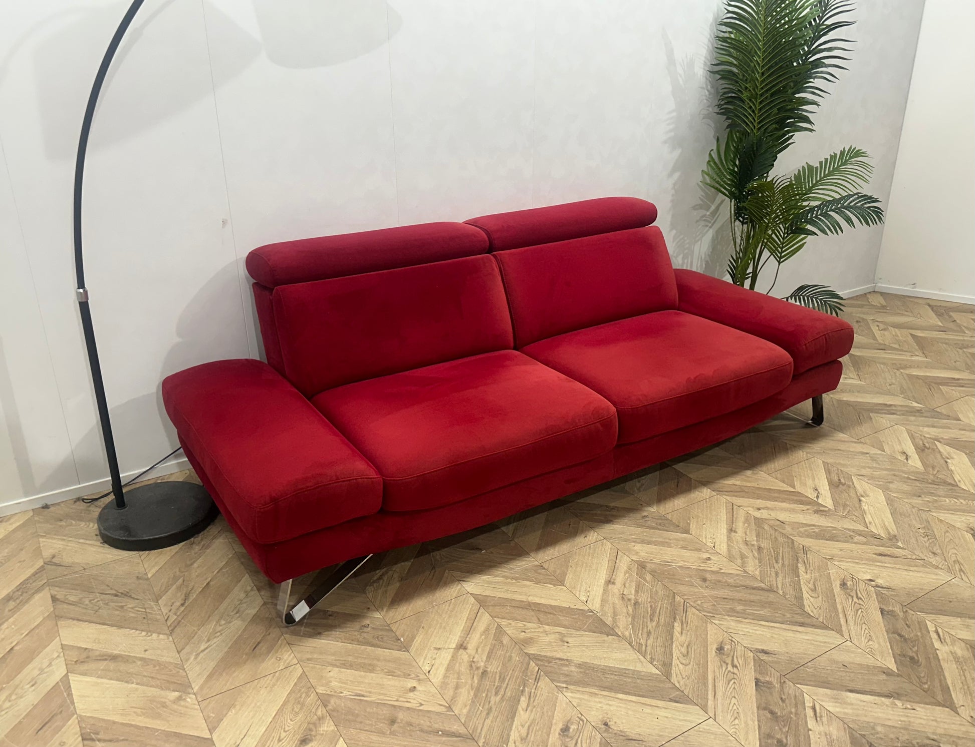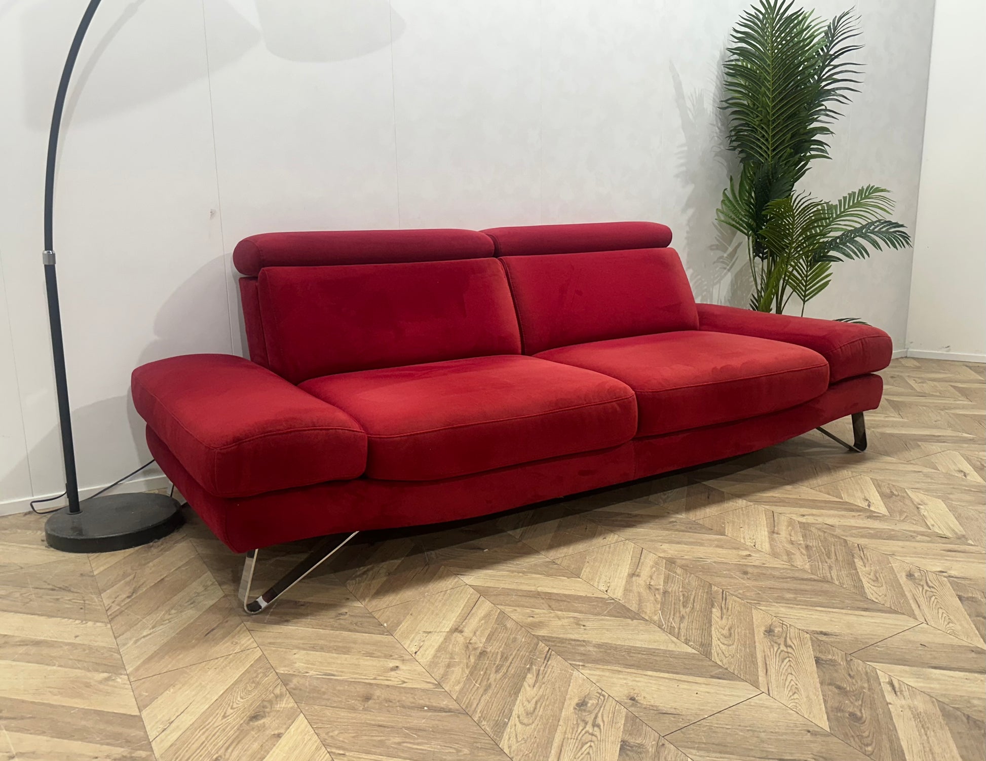 H&H Rode Velvet 2.5-Zits Bank ~ Verstelbare Hoofdsteunen ~ Nieuwstaat
