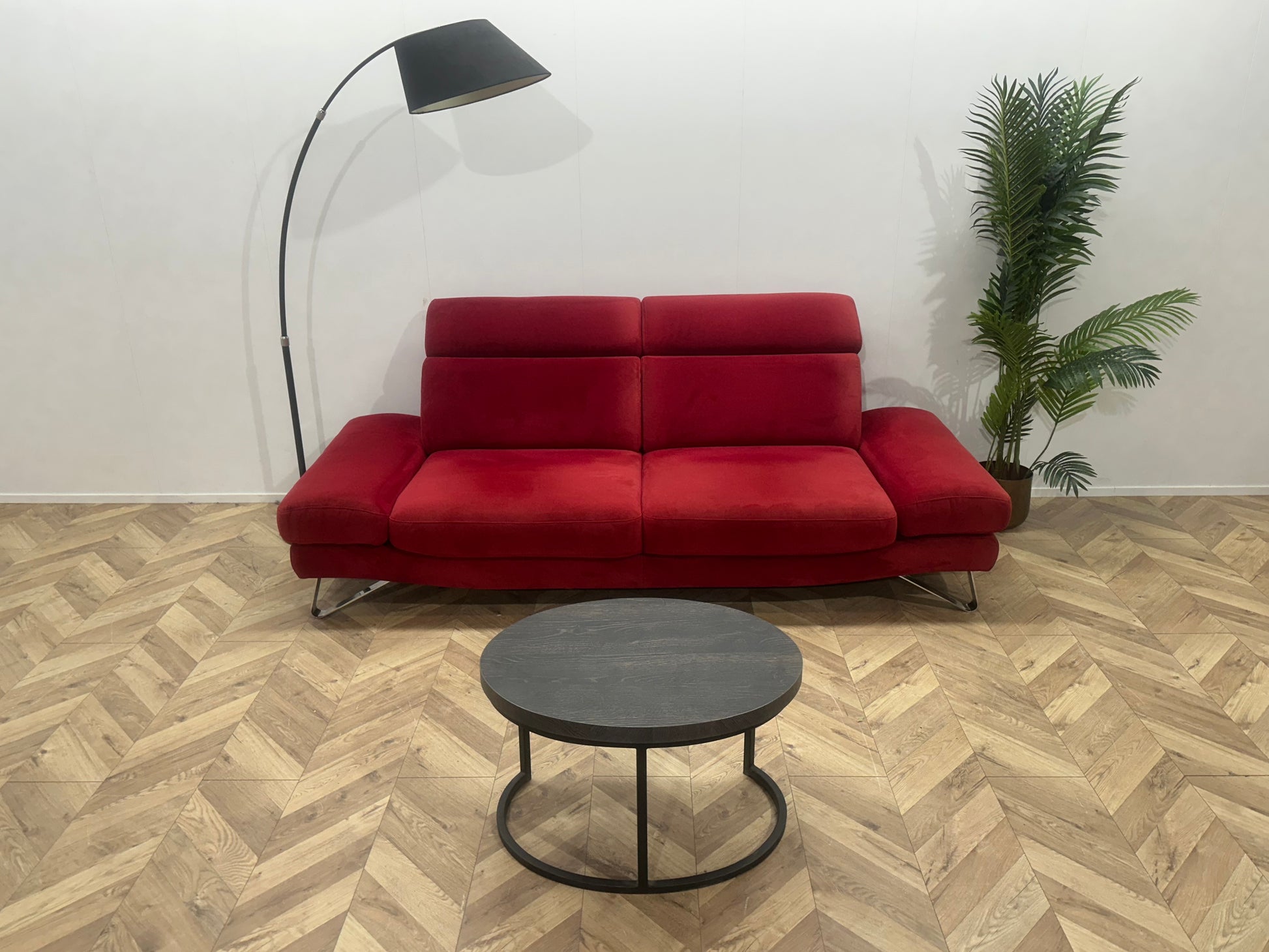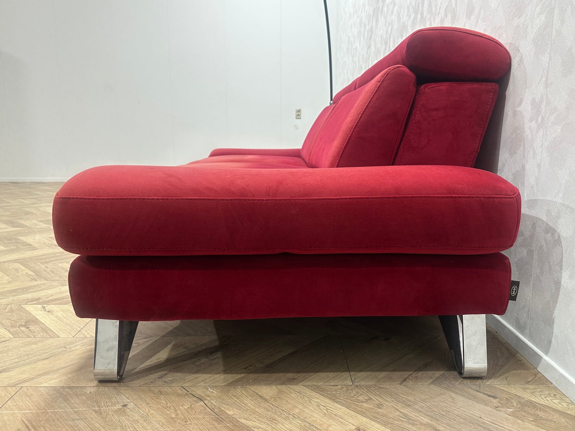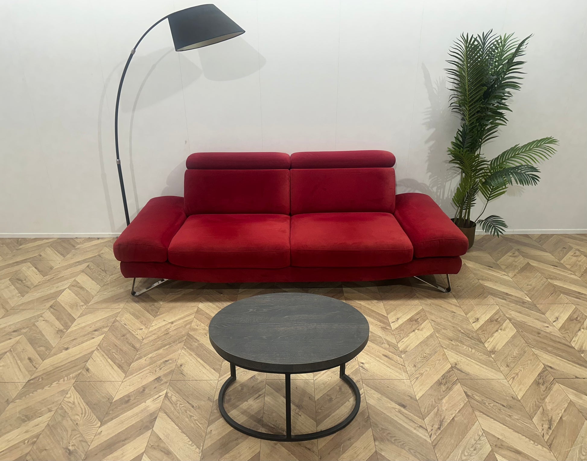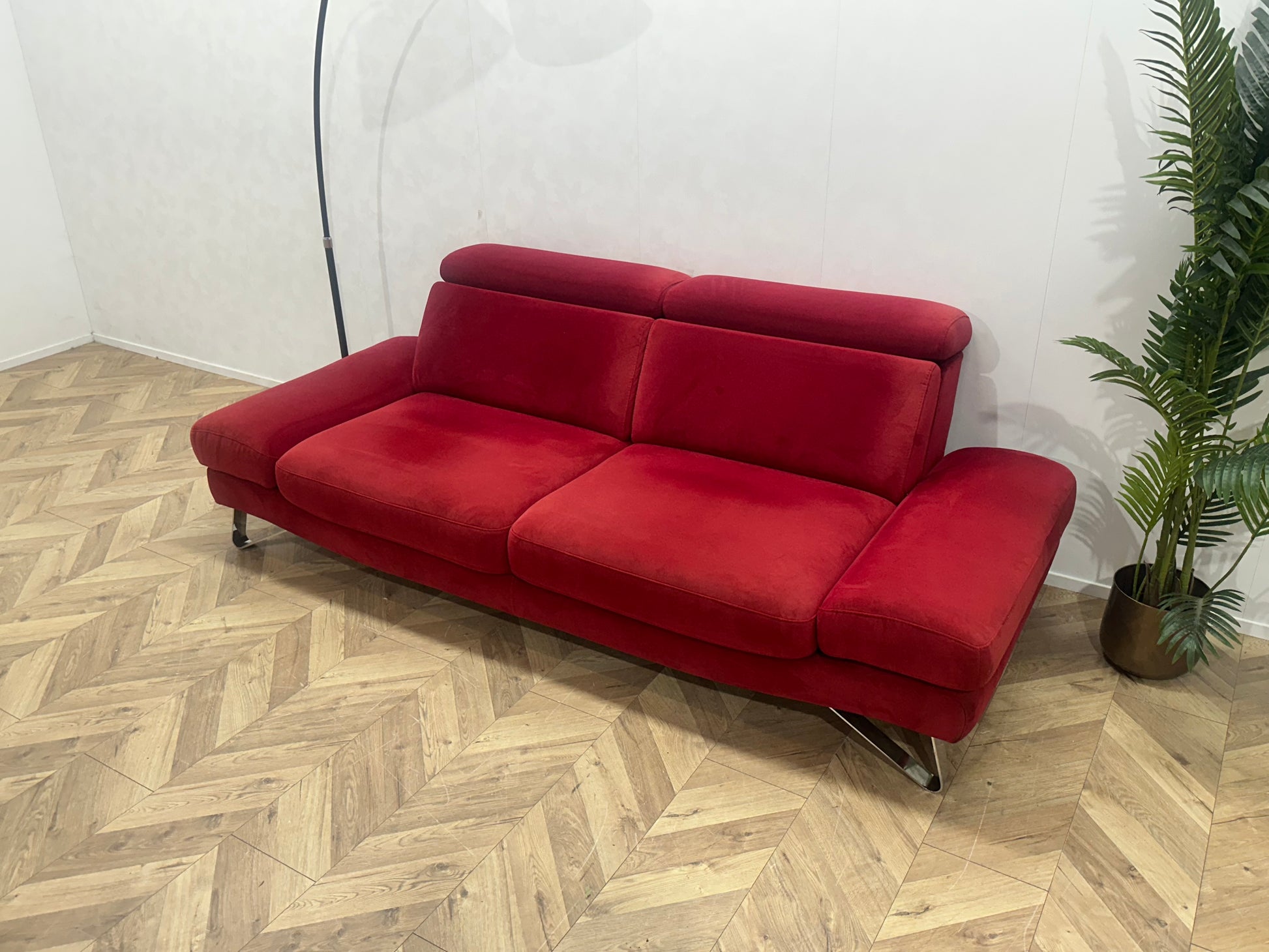 H&H Rode Velvet 2.5-Zits Bank ~ Verstelbare Hoofdsteunen ~ Nieuwstaat