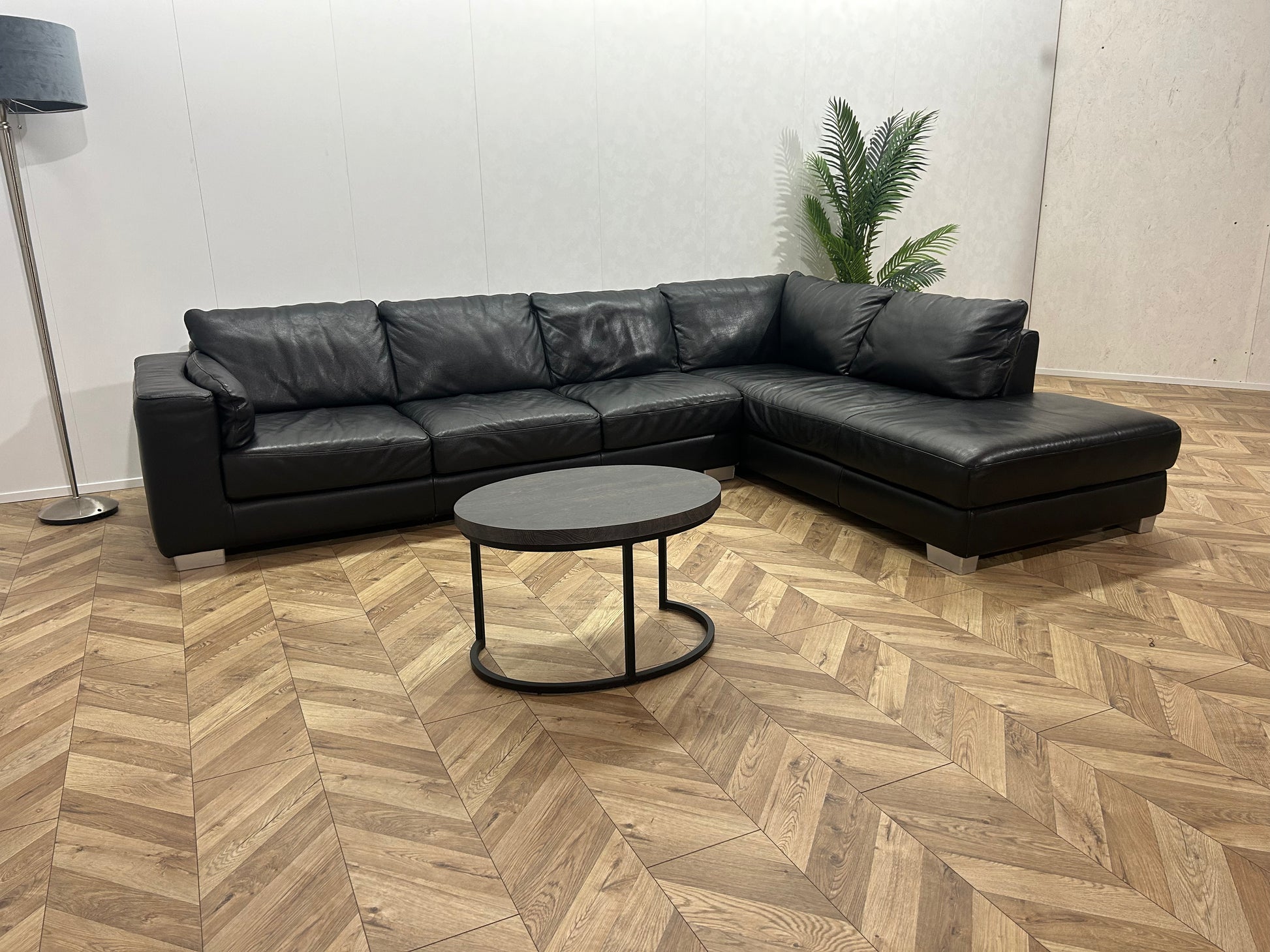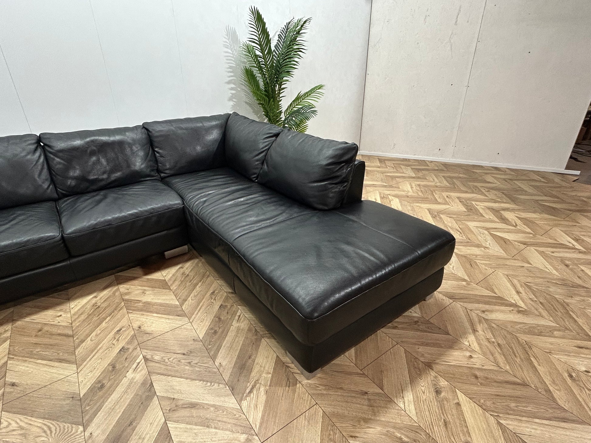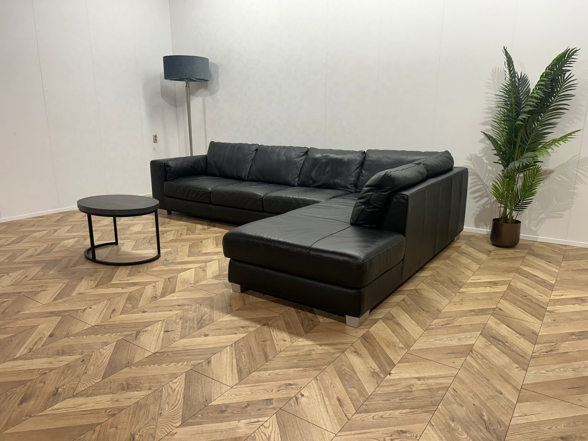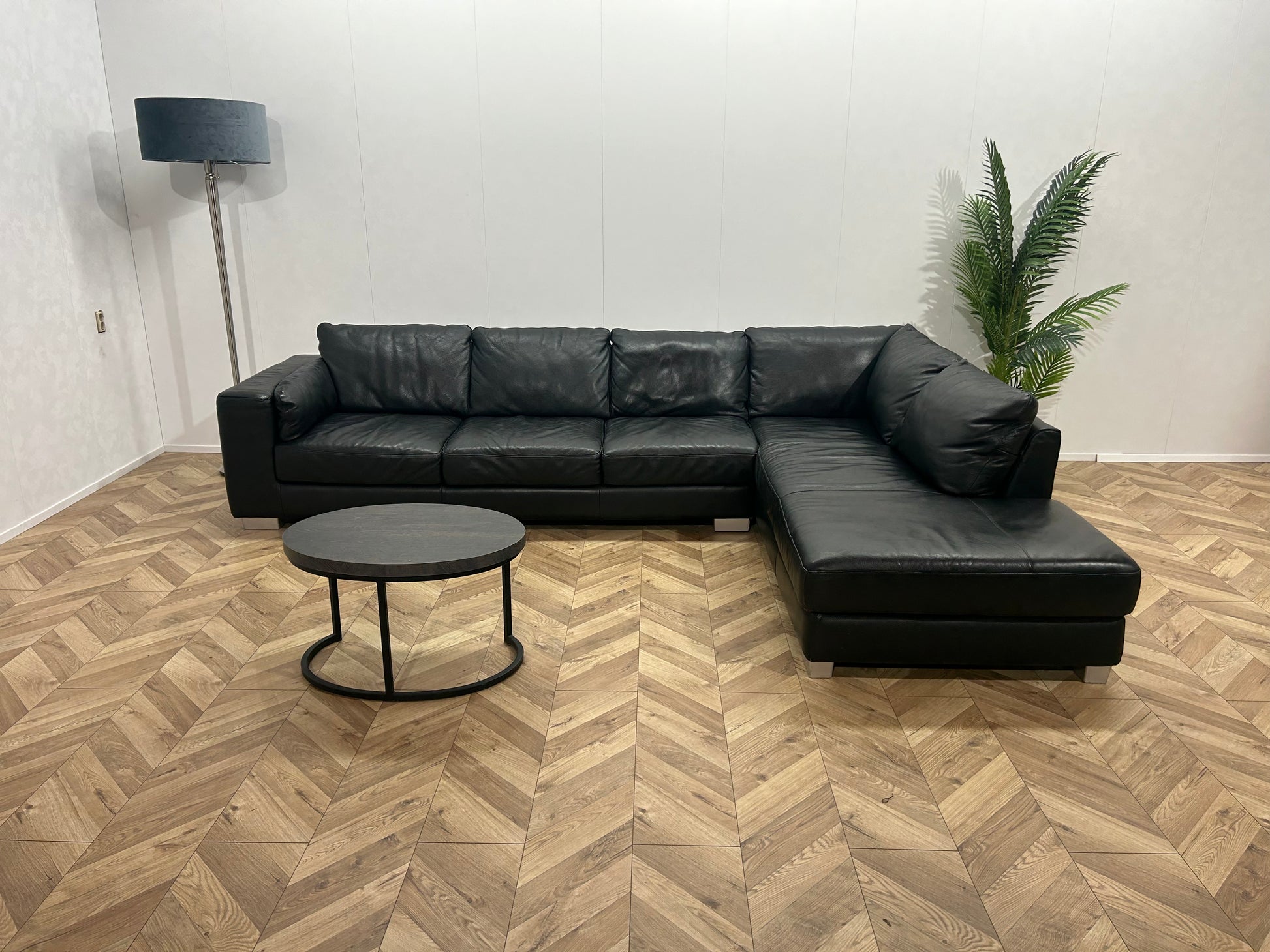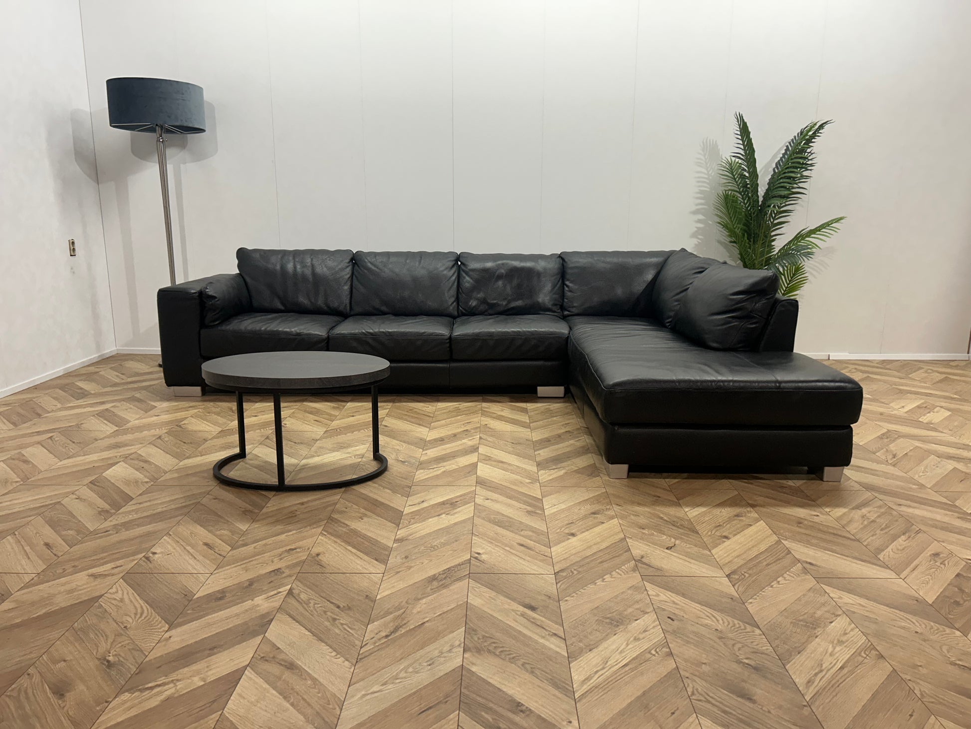 Italsofa Zwarte Echt Lederen Hoekbank ~ Vaste Kussens