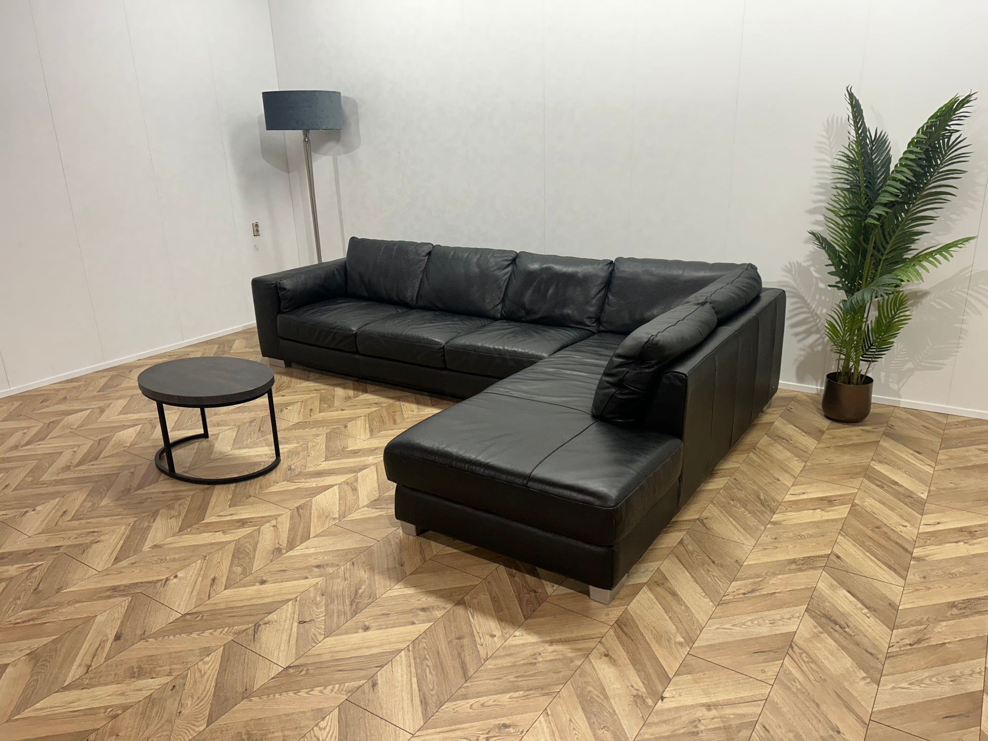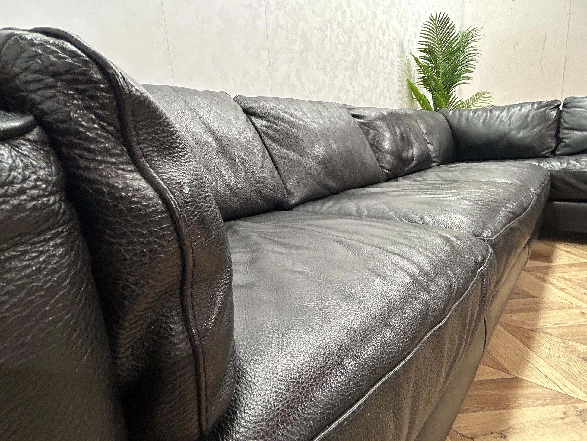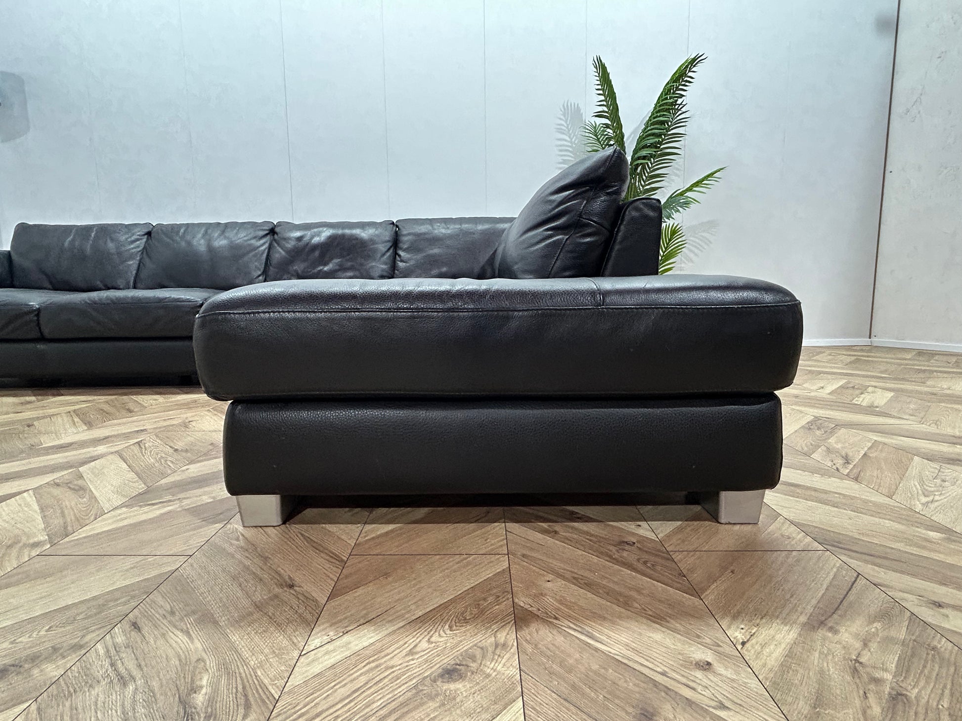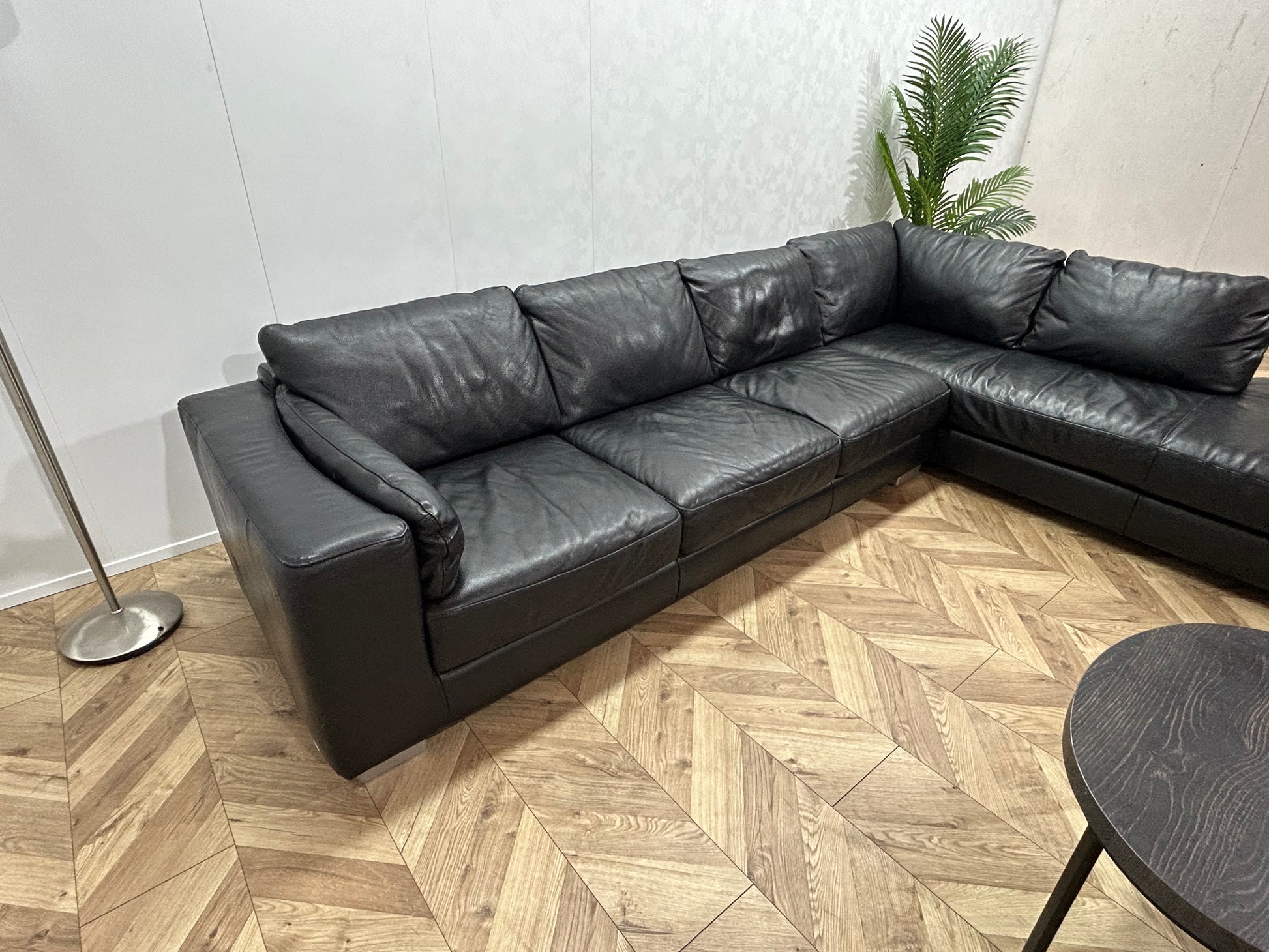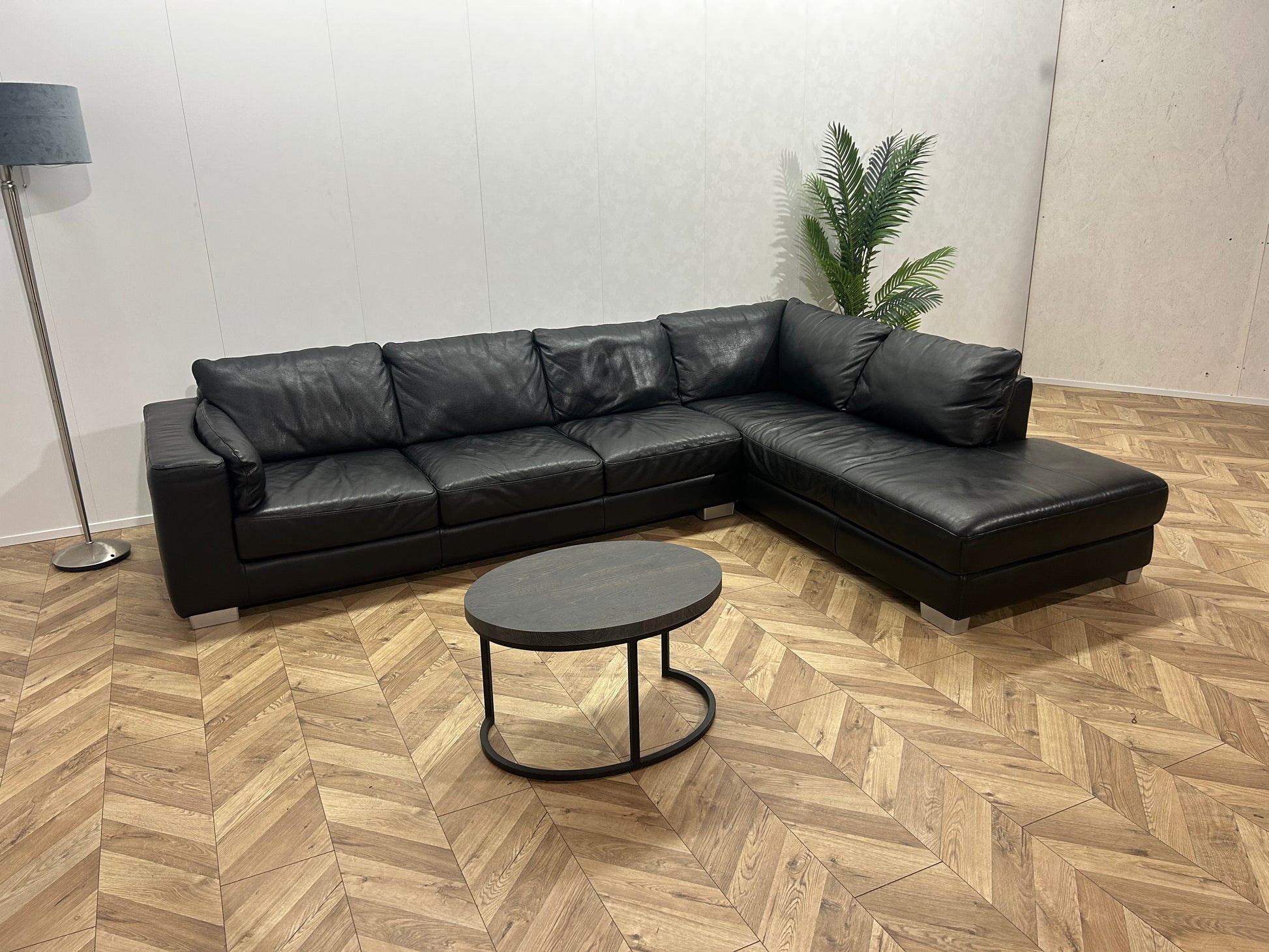Italsofa Zwarte Echt Lederen Hoekbank ~ Vaste Kussens