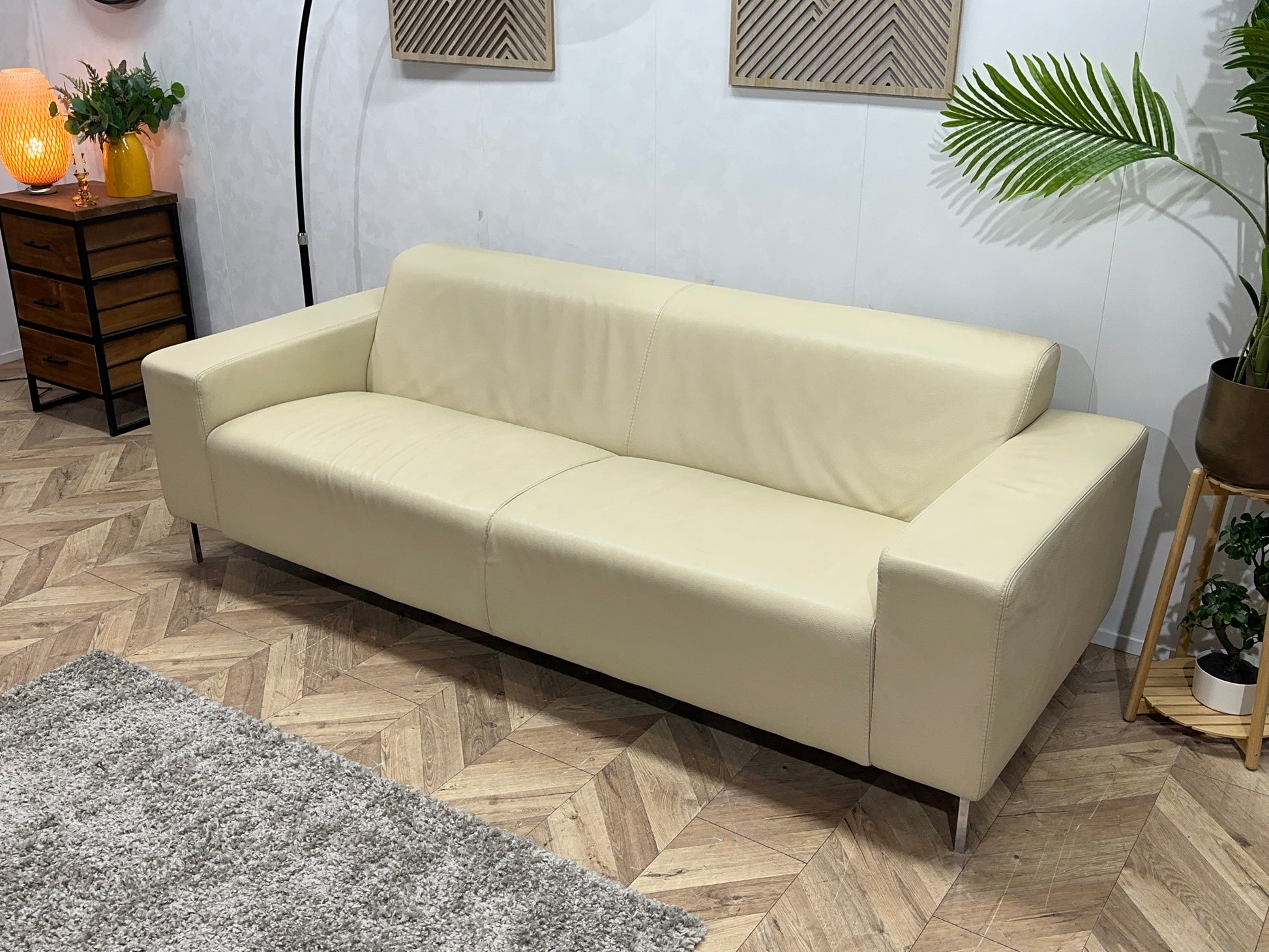 L’Ancoza Crème Echt Lederen 2.5-Zits Bank ~ Vaste Kussens