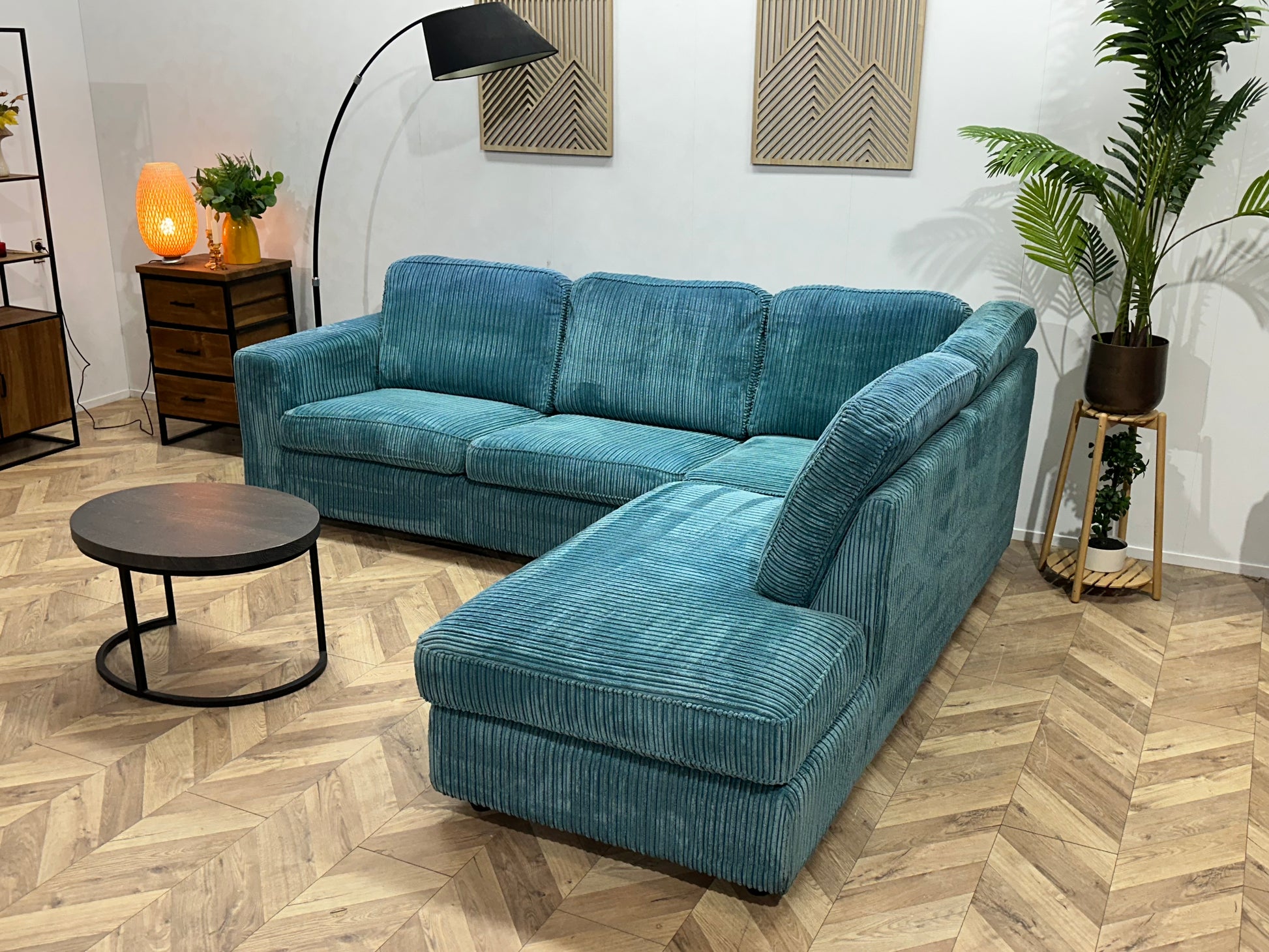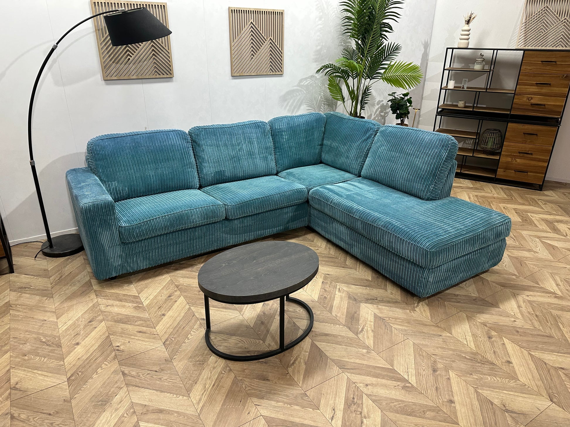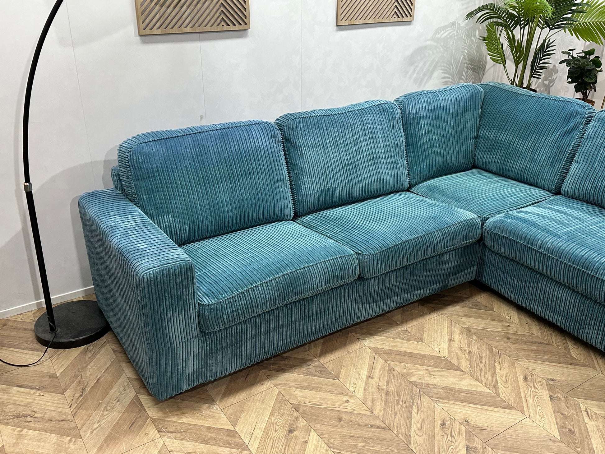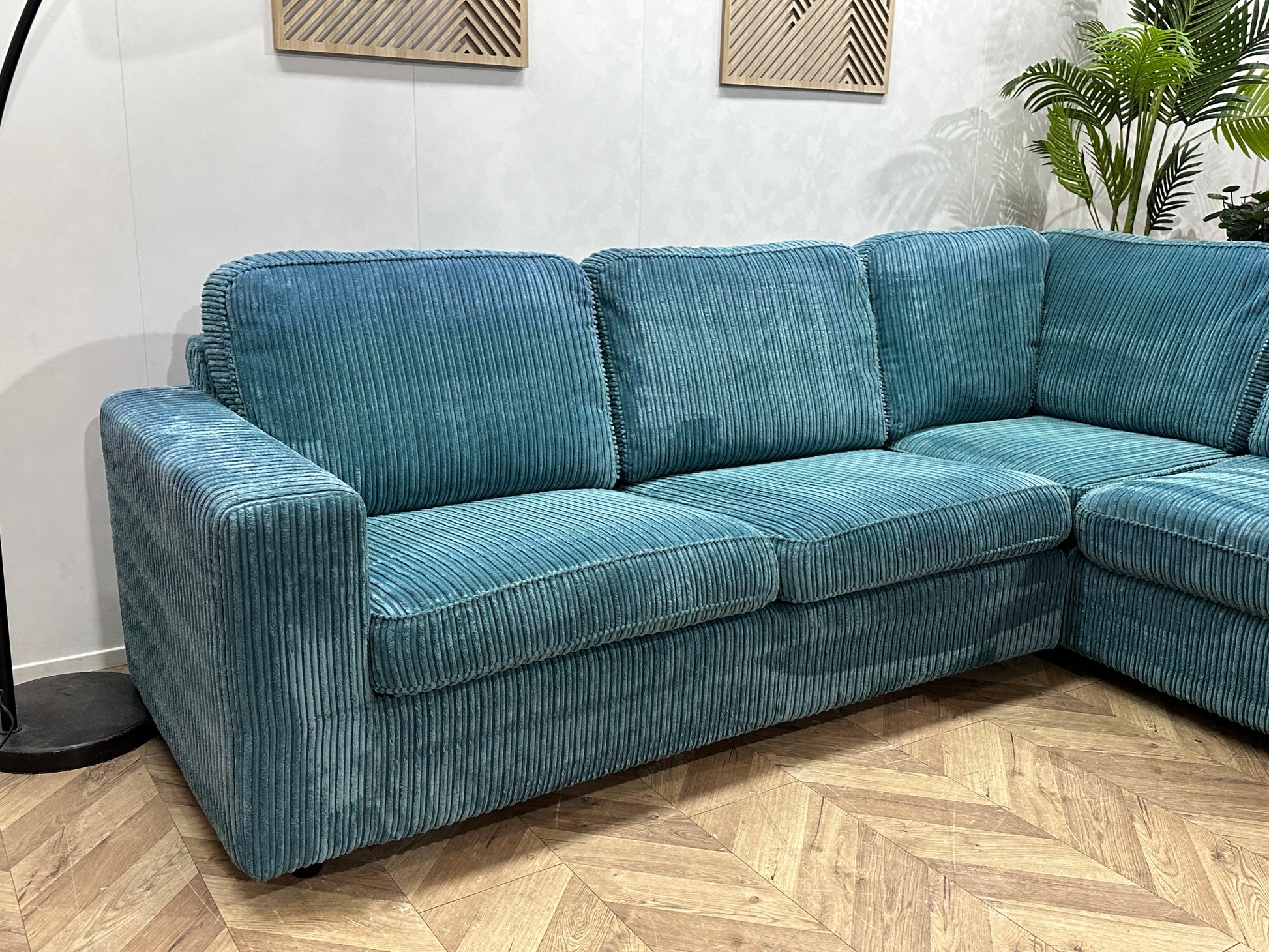 Licht Blauwe Ribstof Hoekbank ~ Losse Kussens Met Afneembare Hoezen
