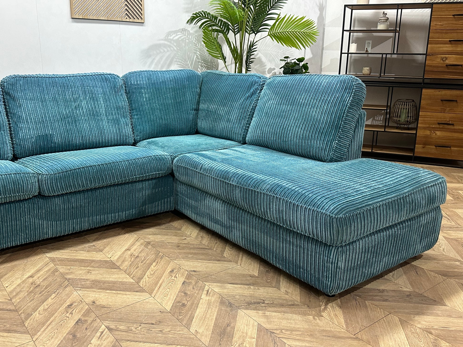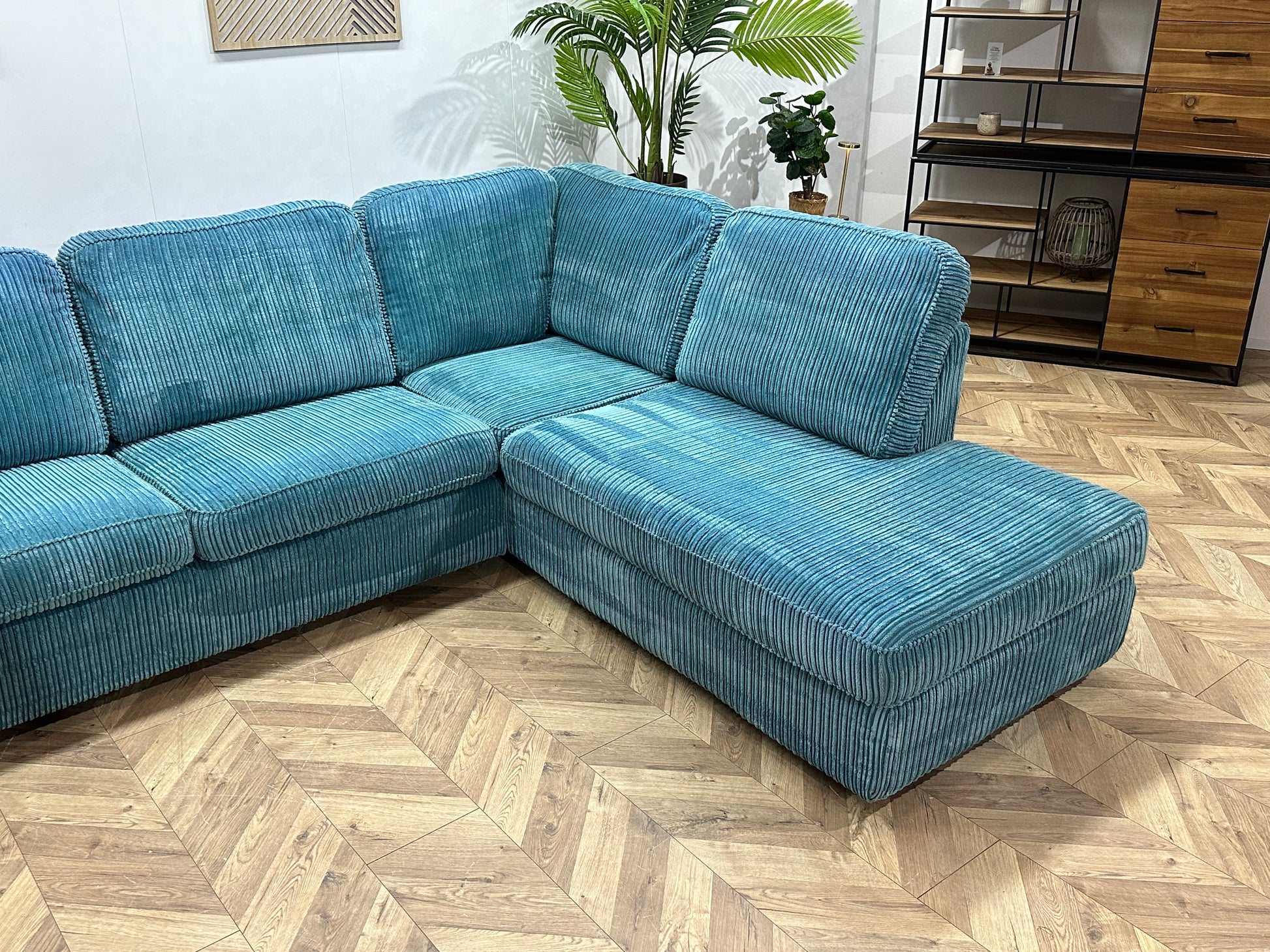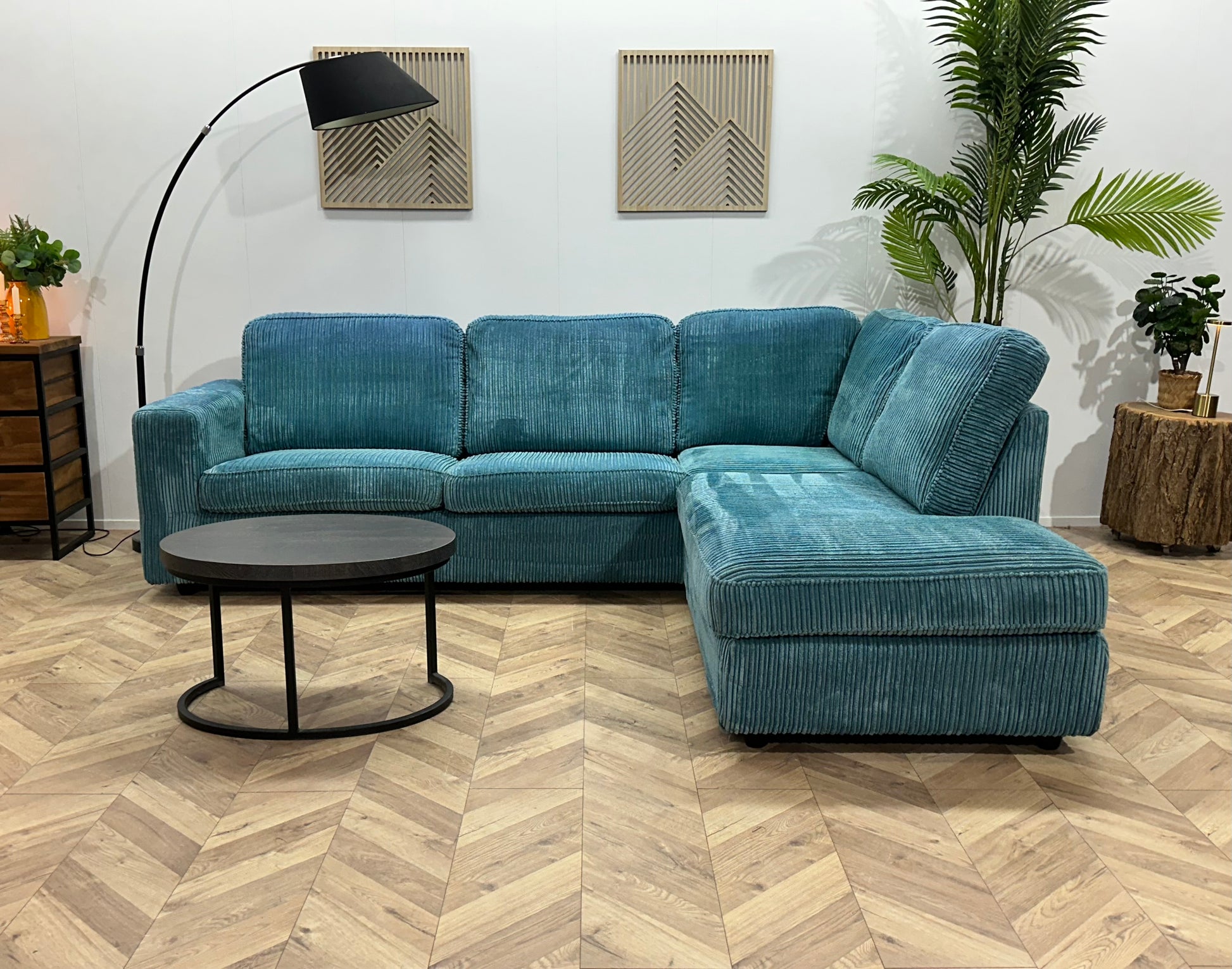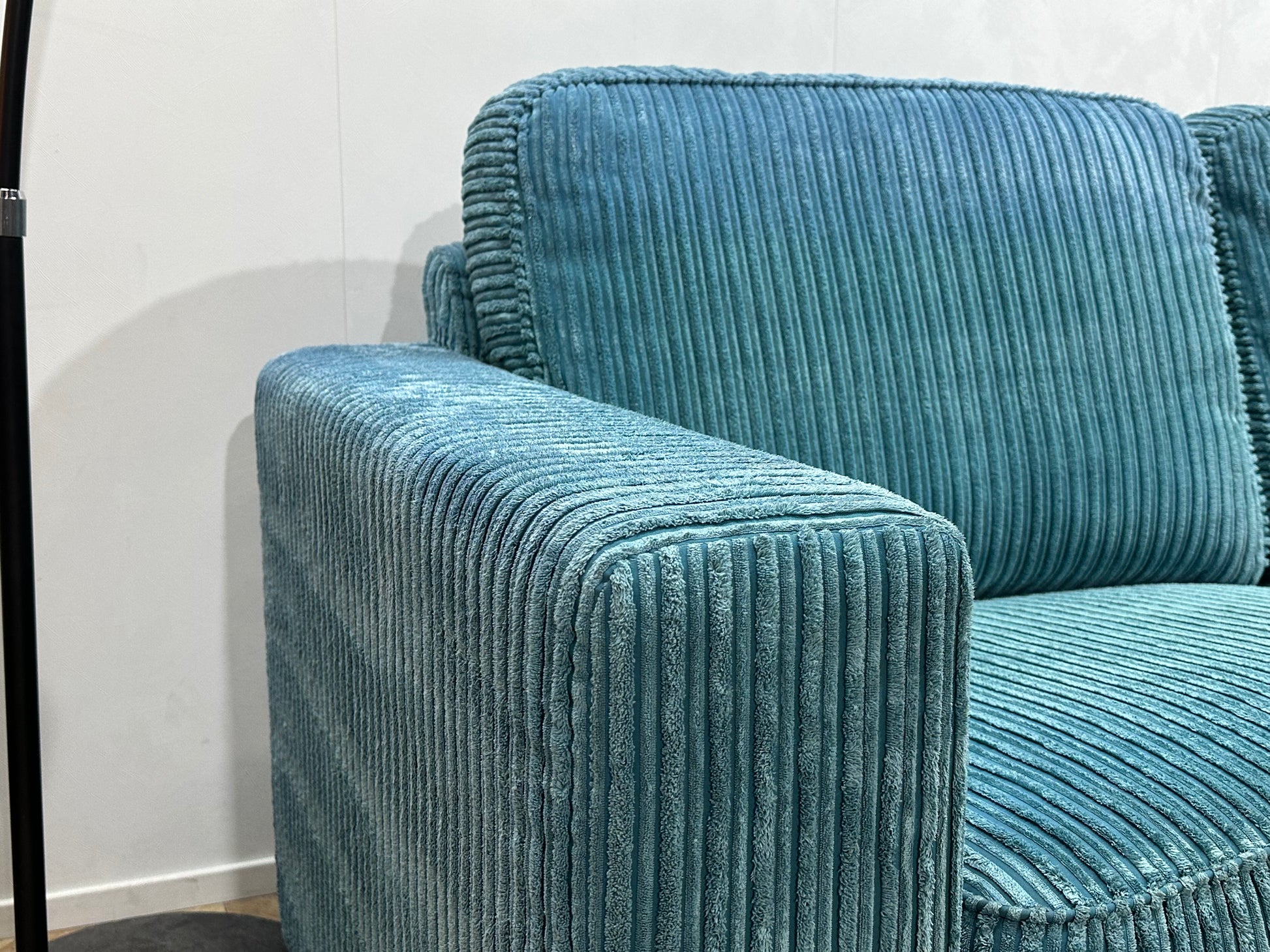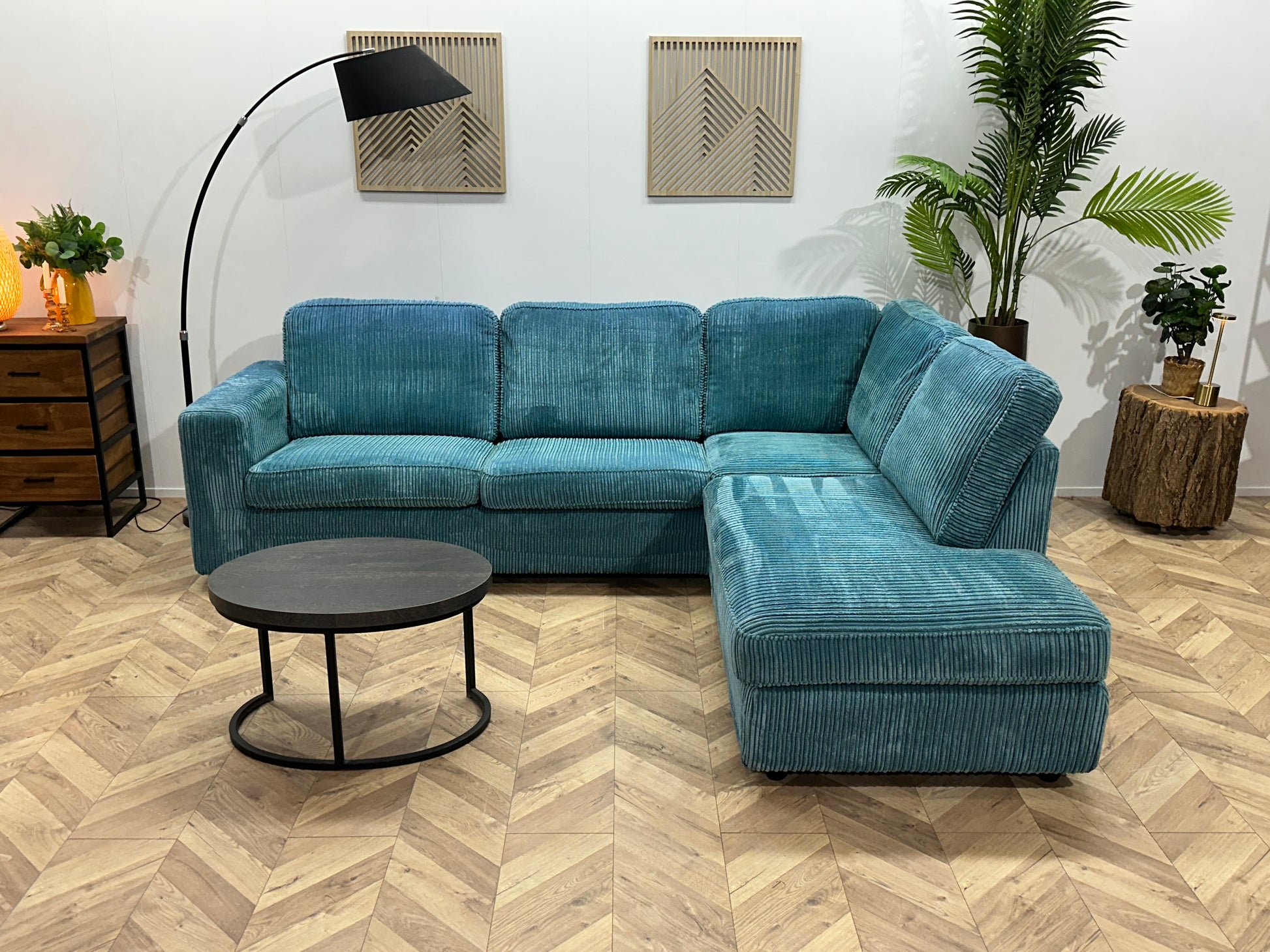 Licht Blauwe Ribstof Hoekbank ~ Losse Kussens Met Afneembare Hoezen