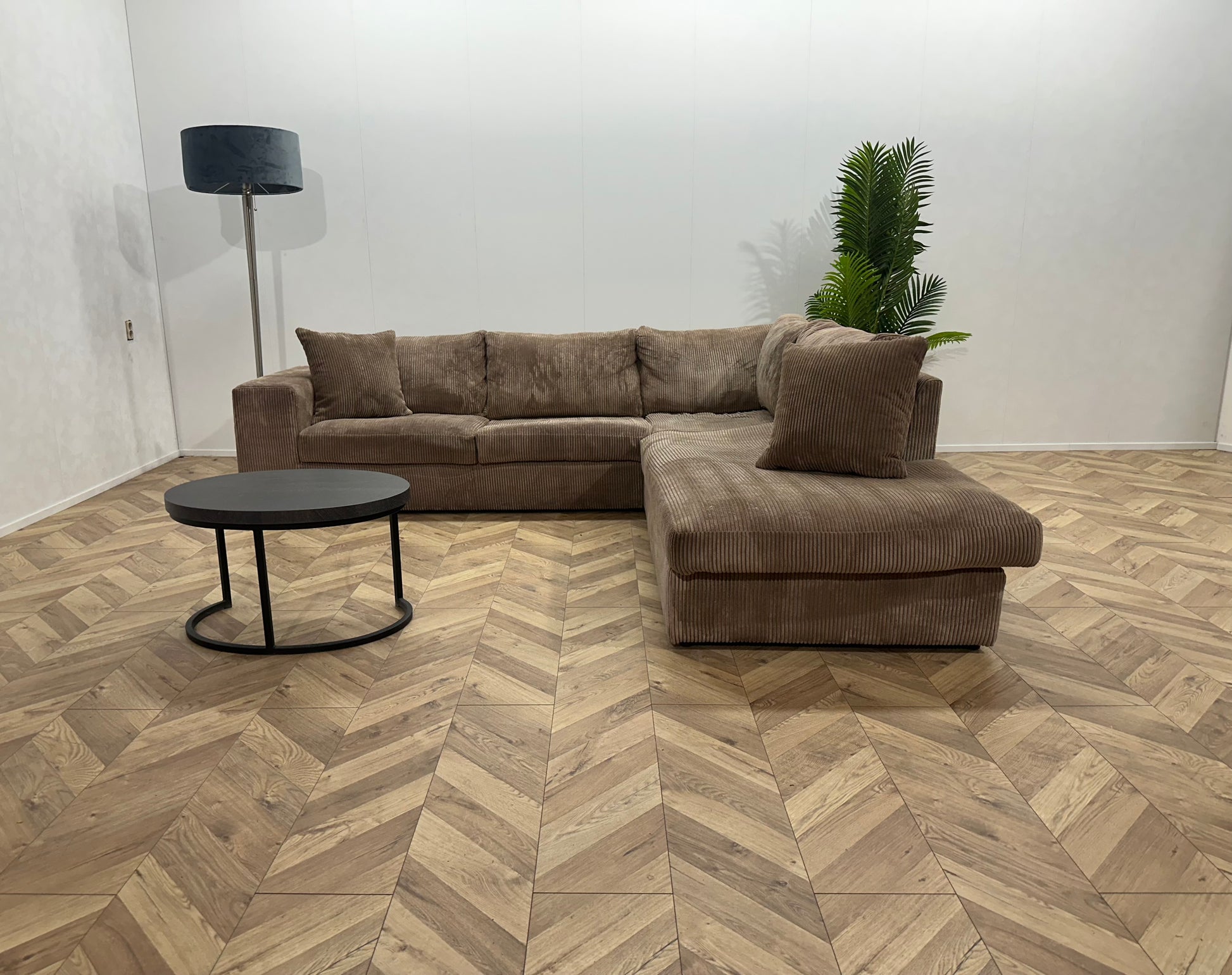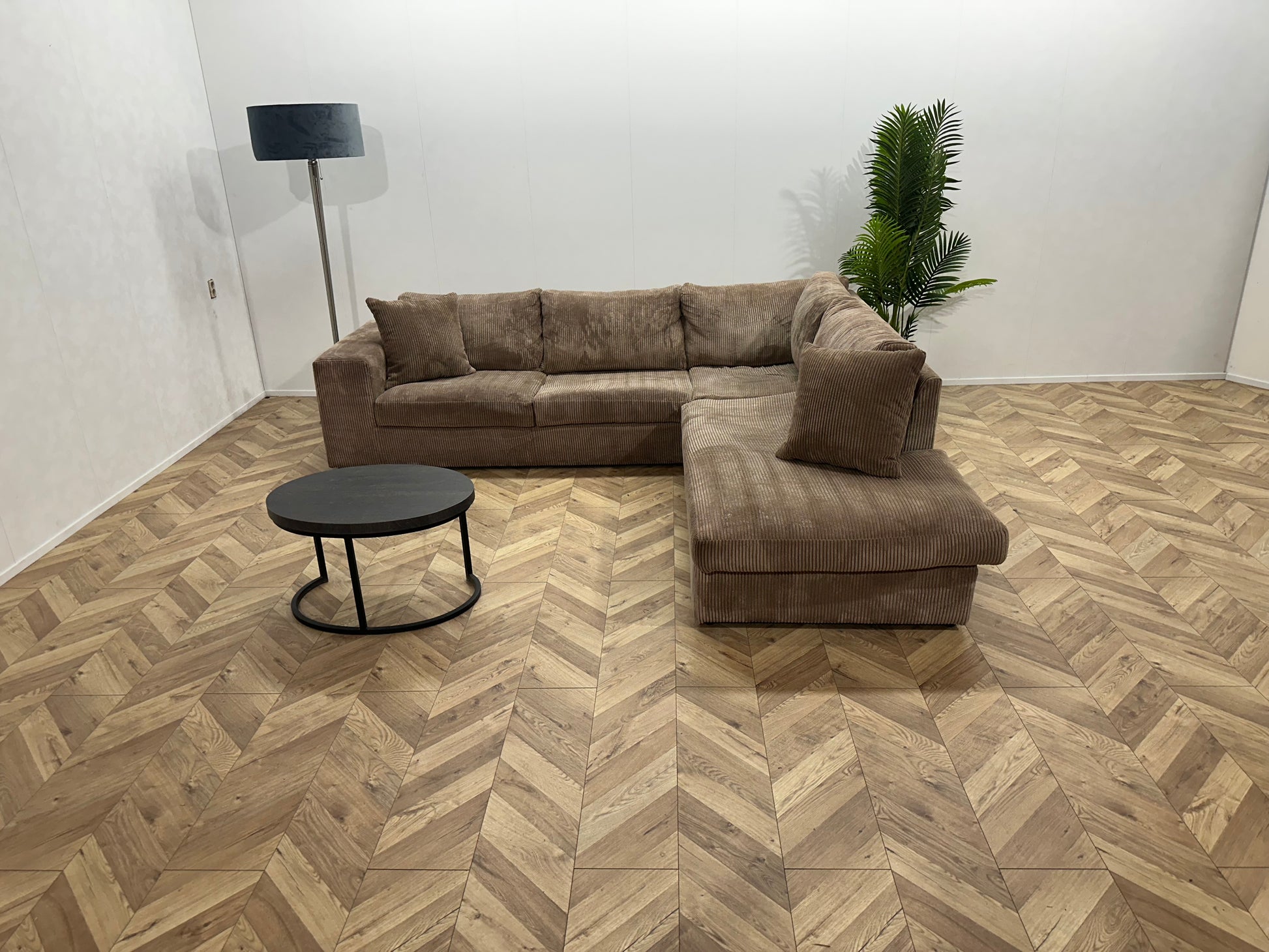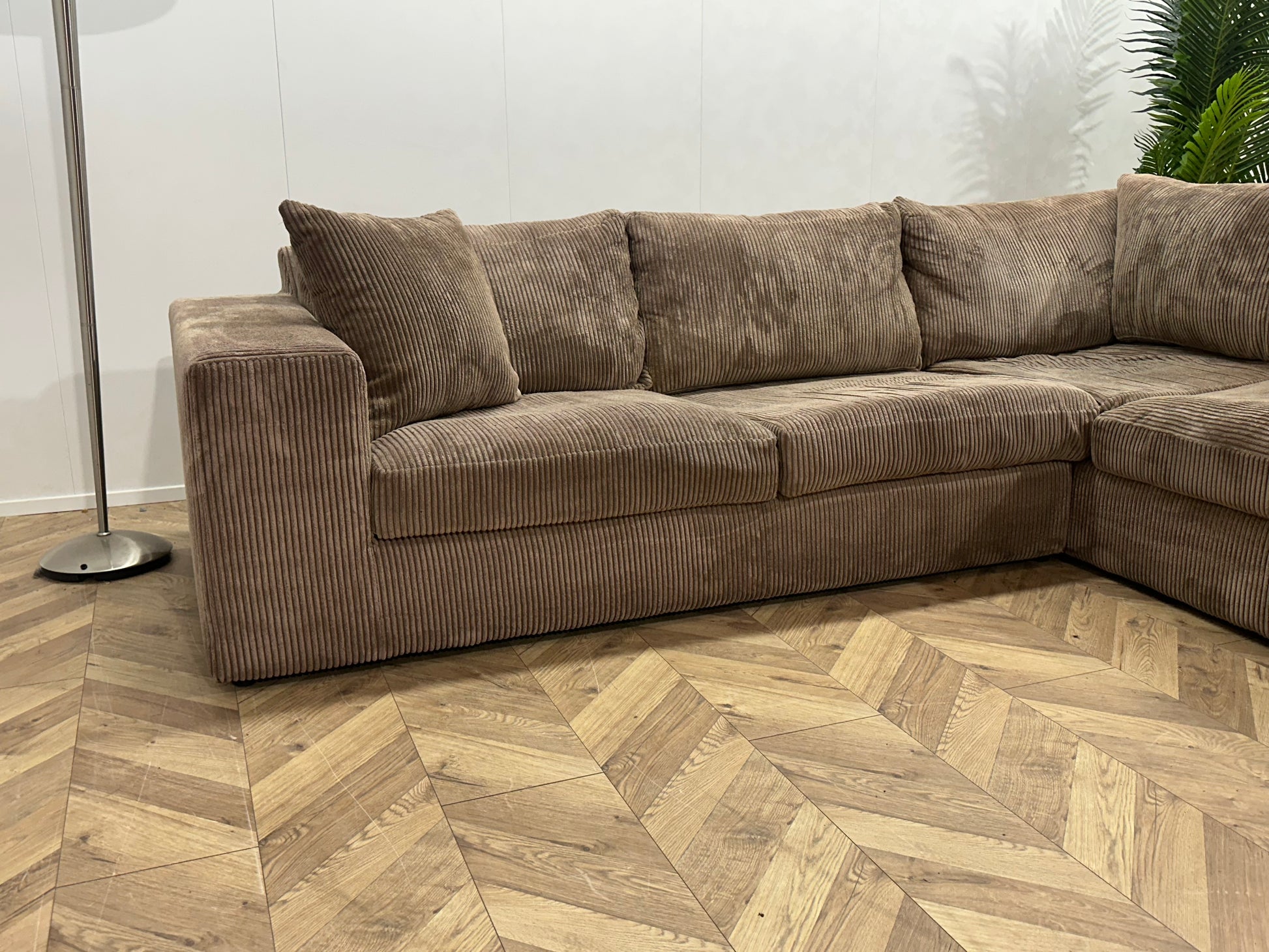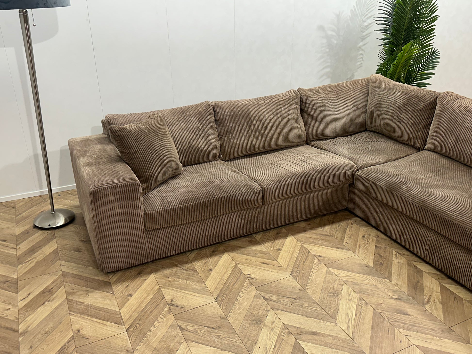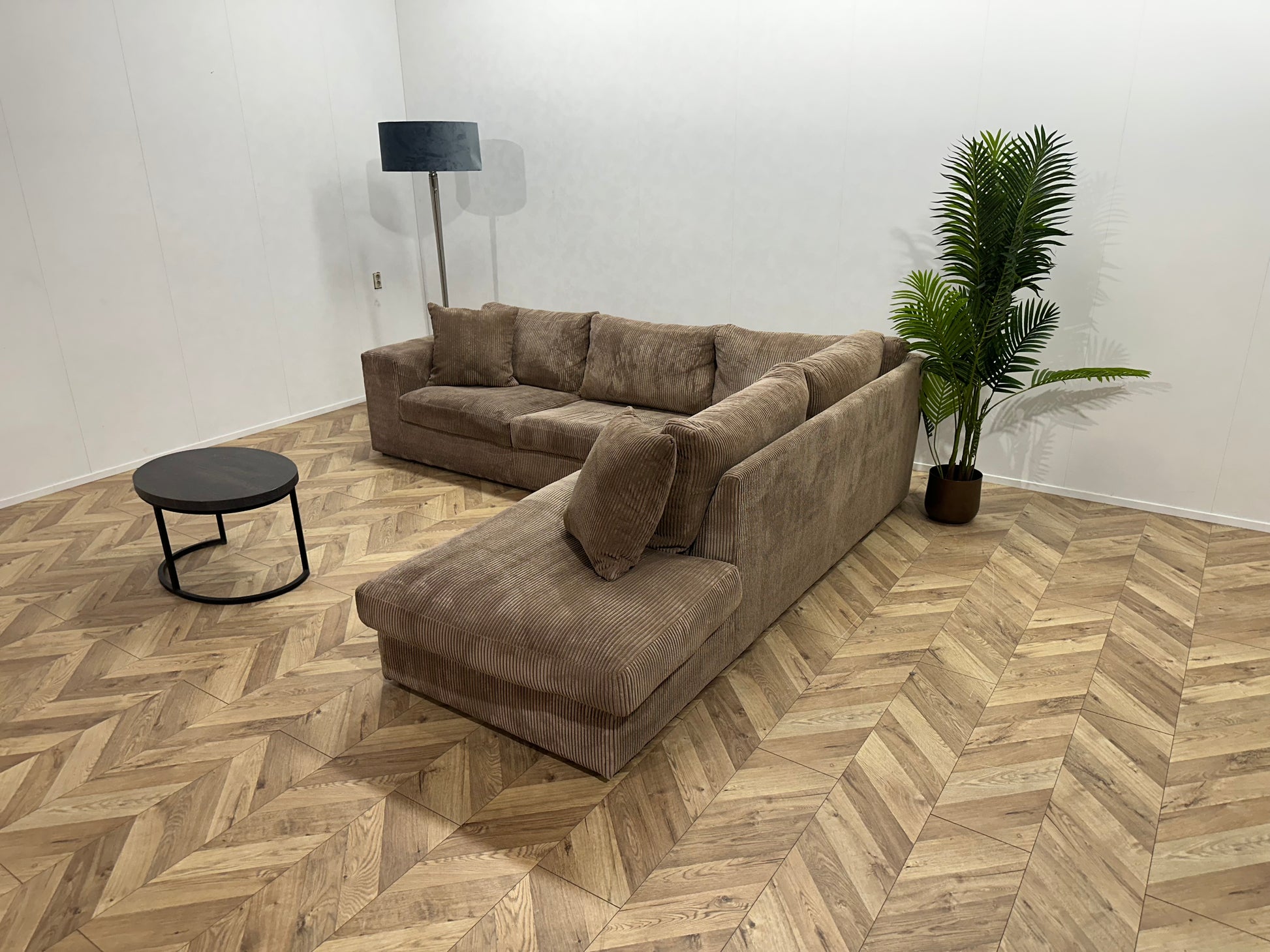 Licht Bruine Ribstof Hoekbank ~ Losse Kussens Met Afneembare Hoezen