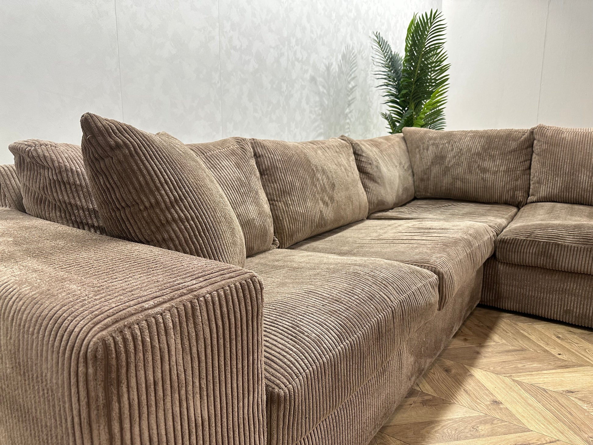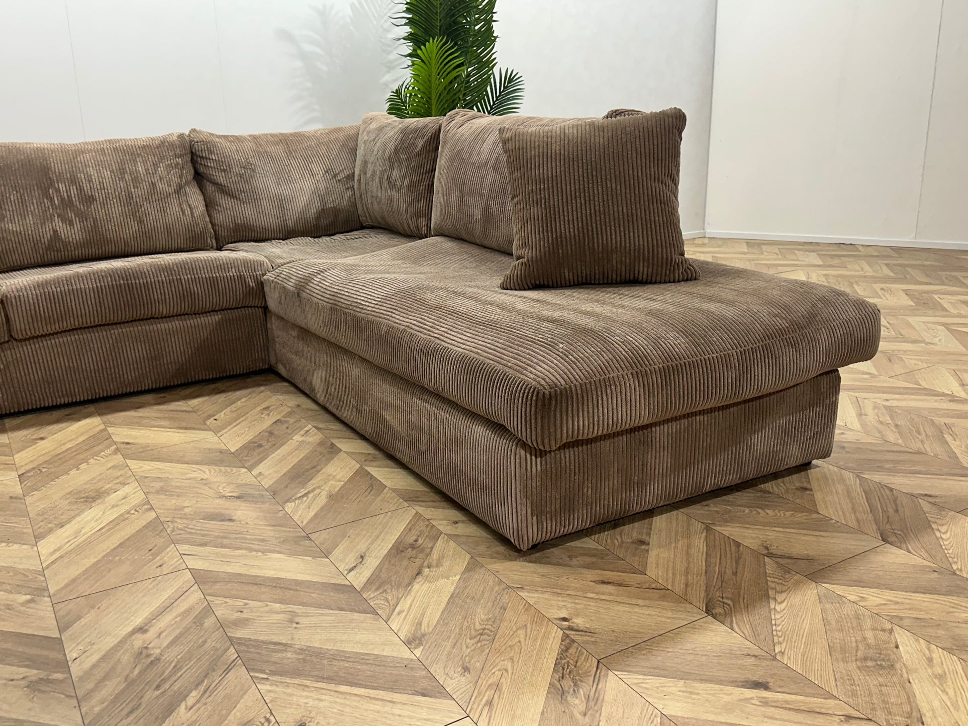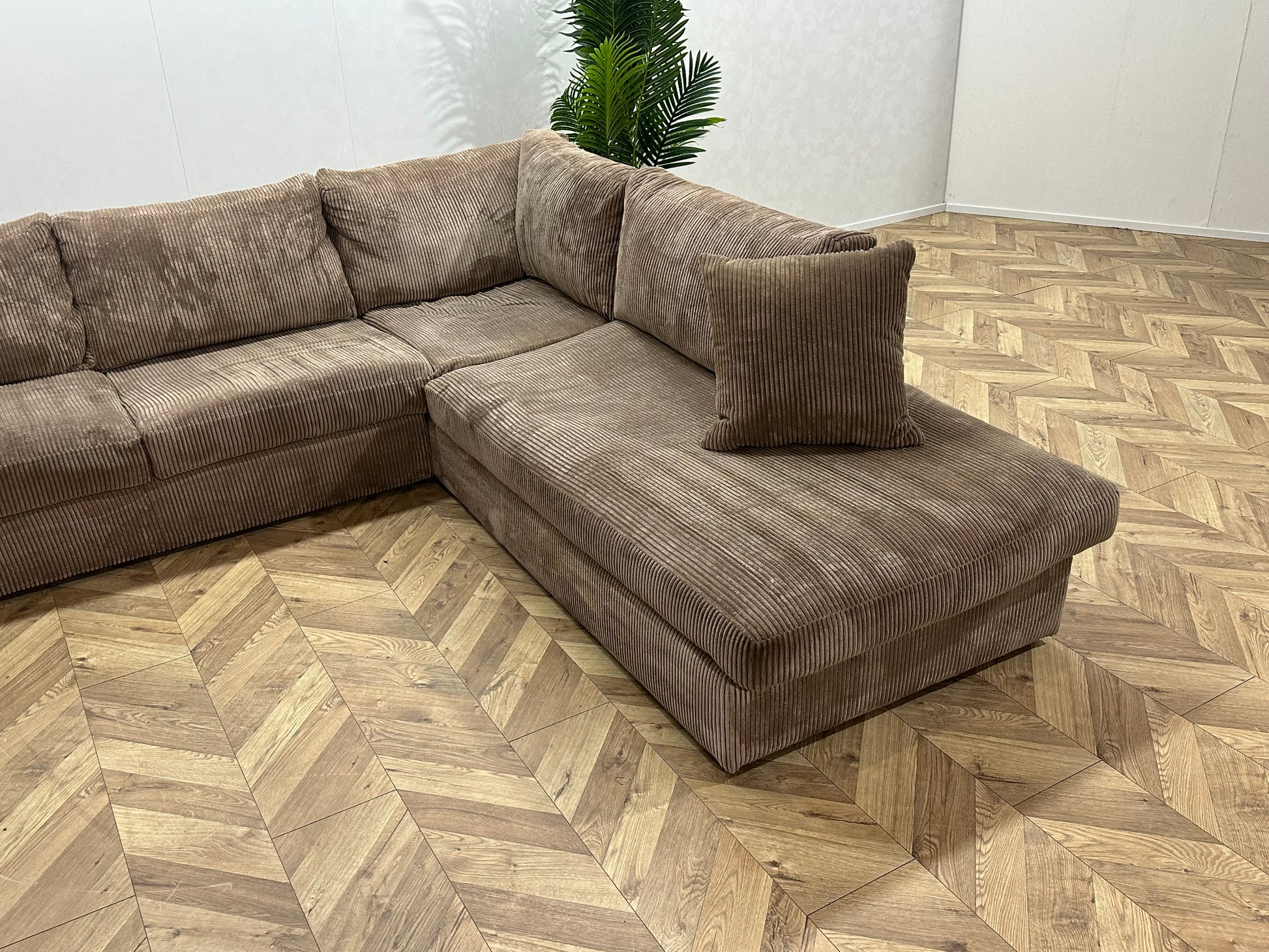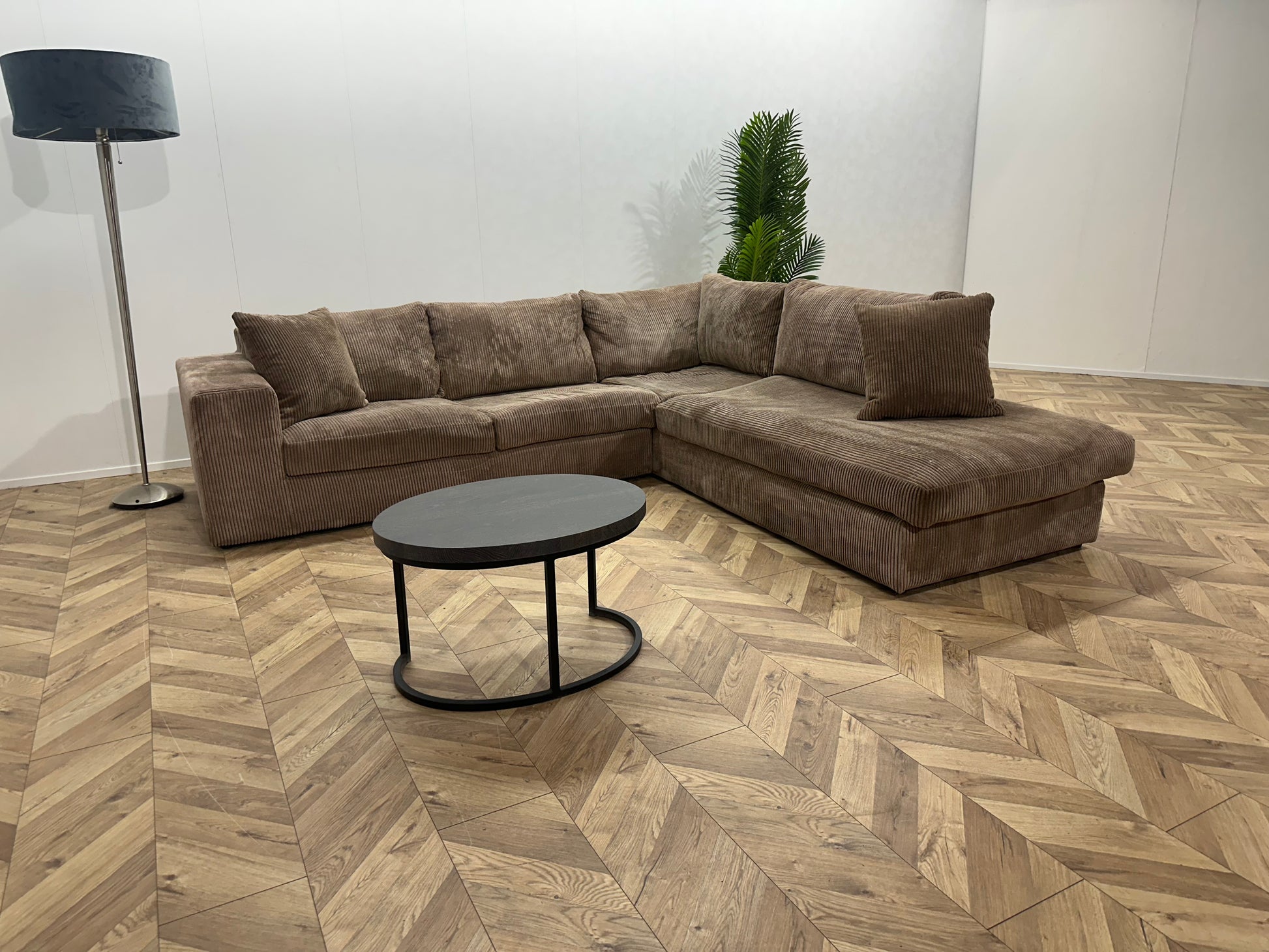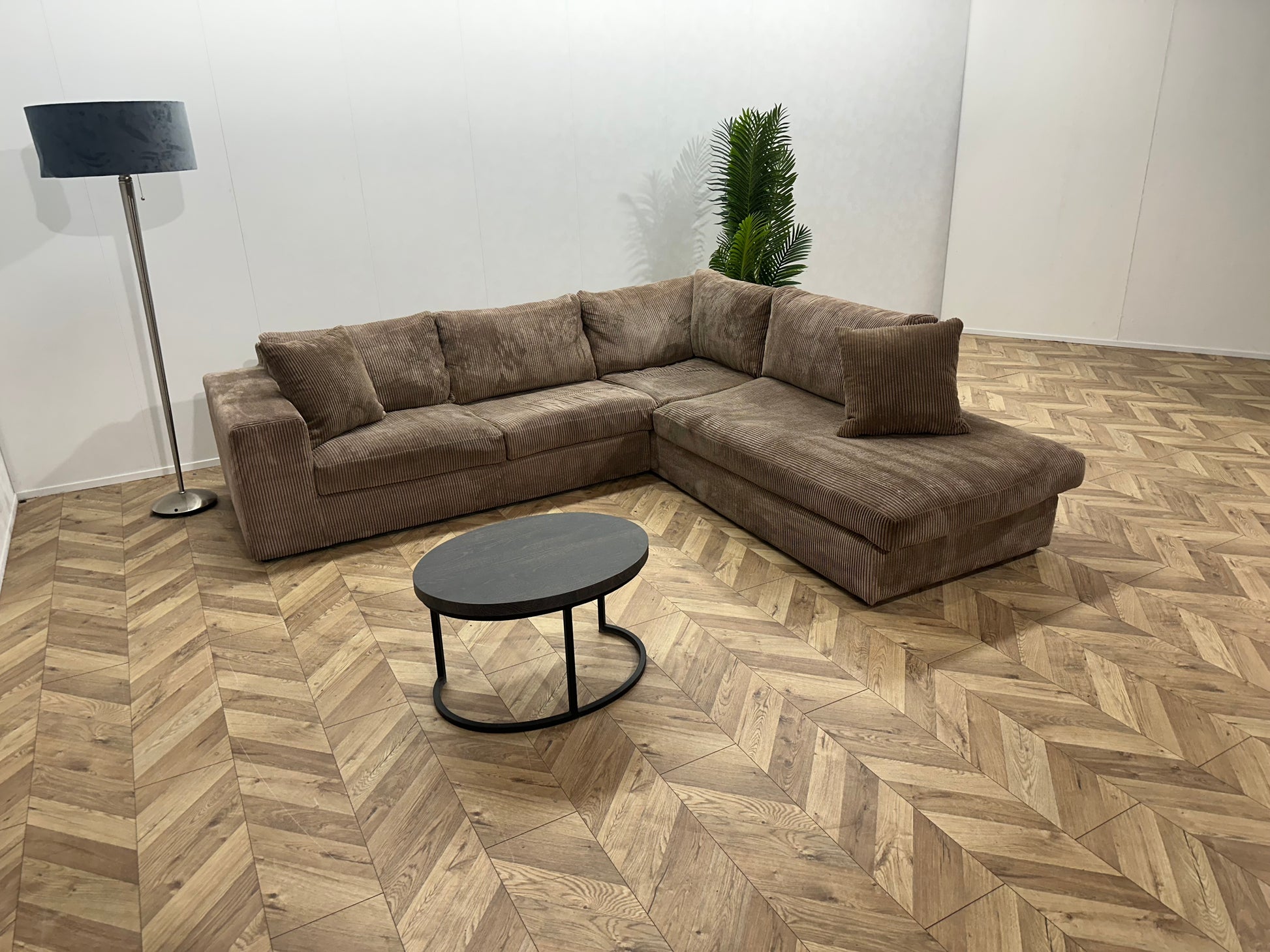 Licht Bruine Ribstof Hoekbank ~ Losse Kussens Met Afneembare Hoezen
