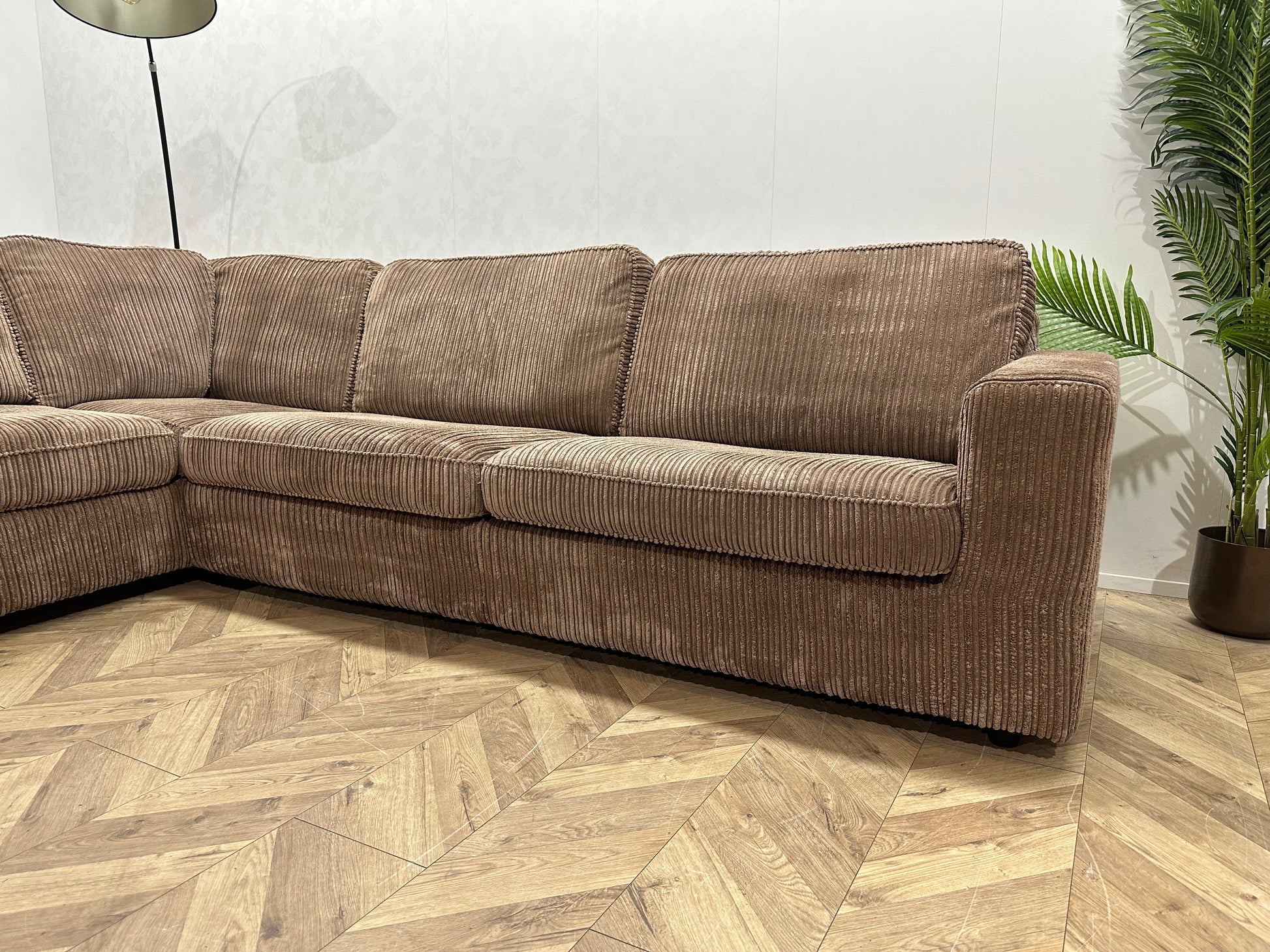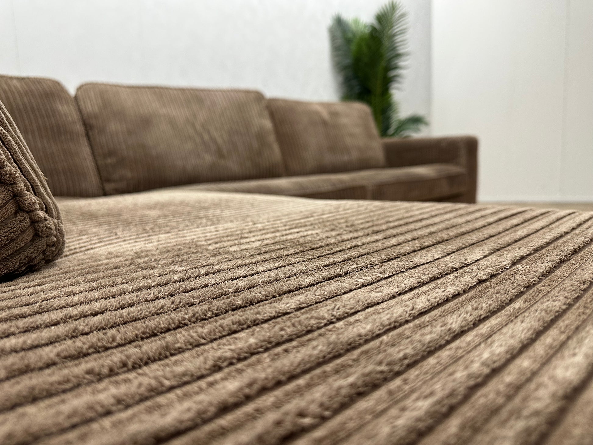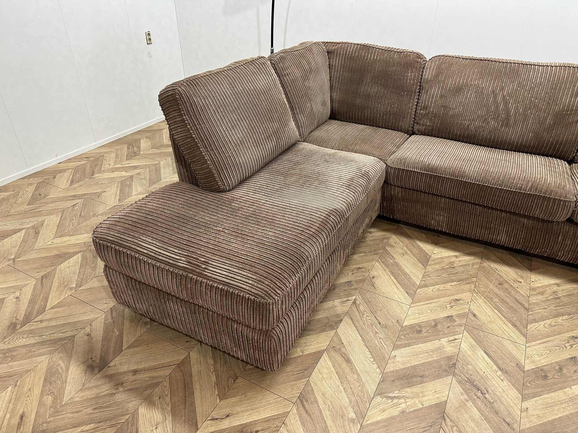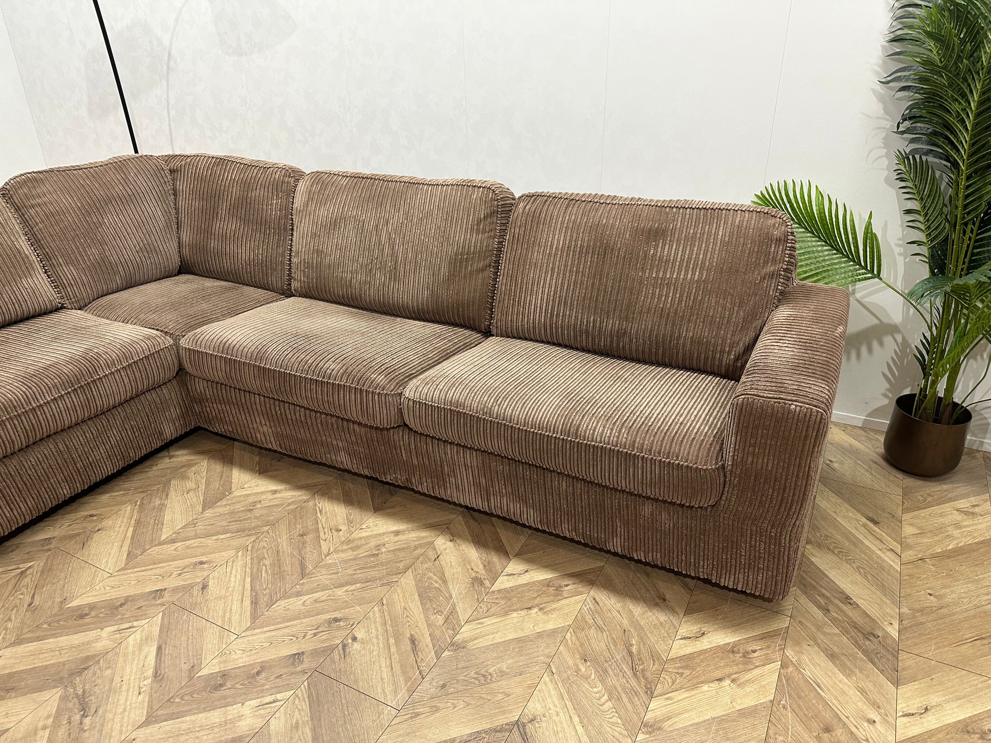 Licht Bruine Ribstof Hoekbank ~ Losse Kussens Met Afneembare Hoezen