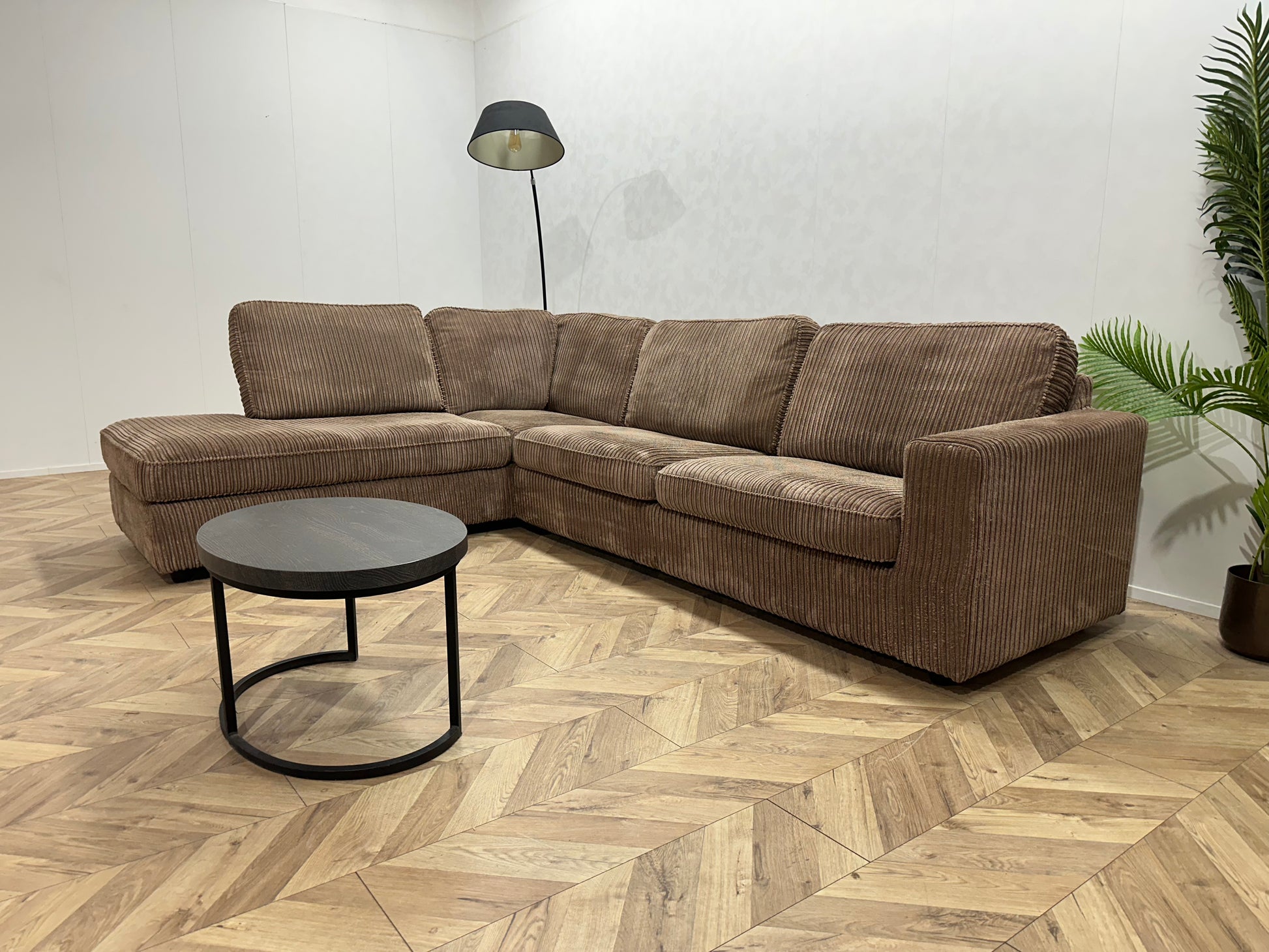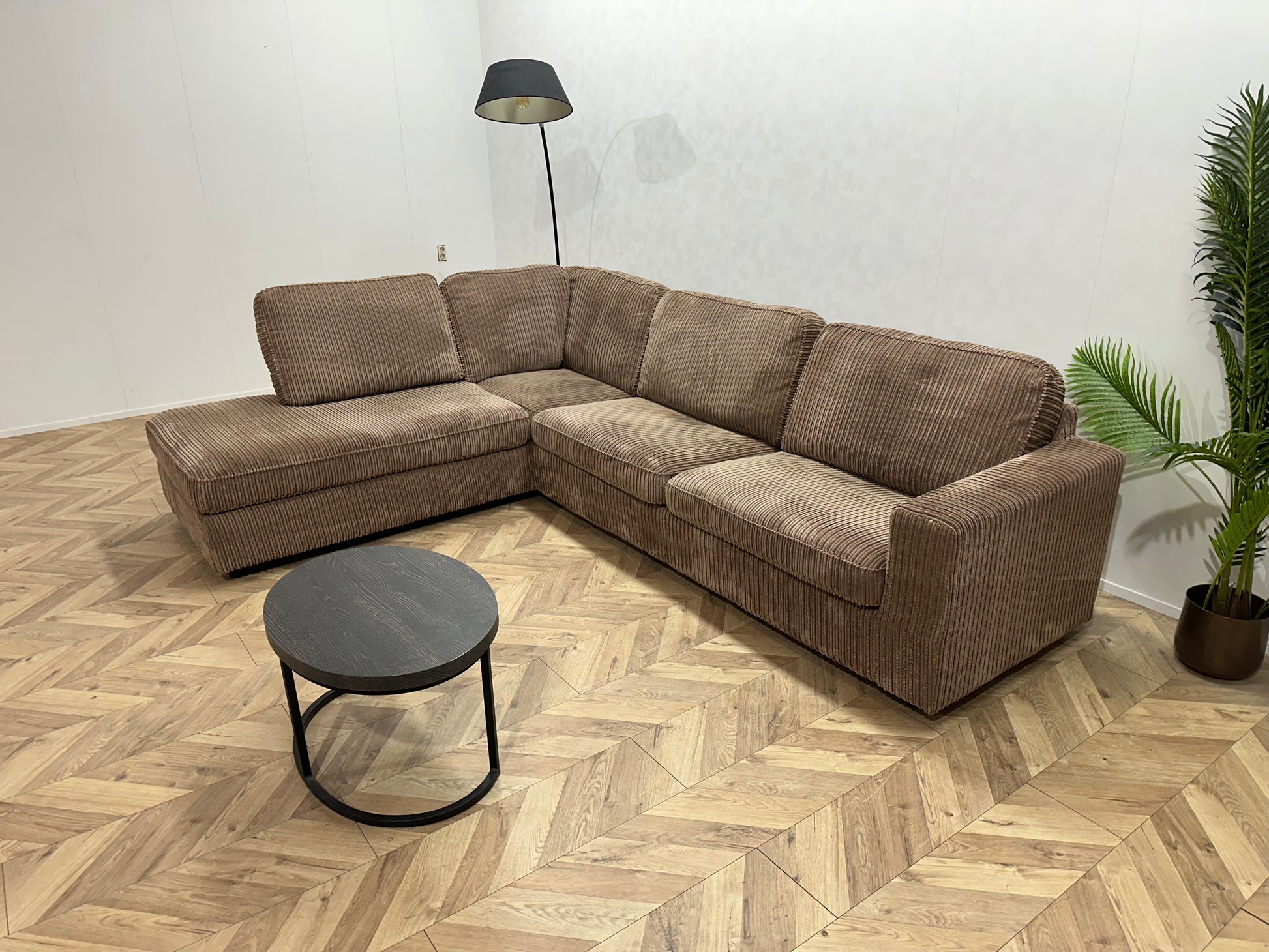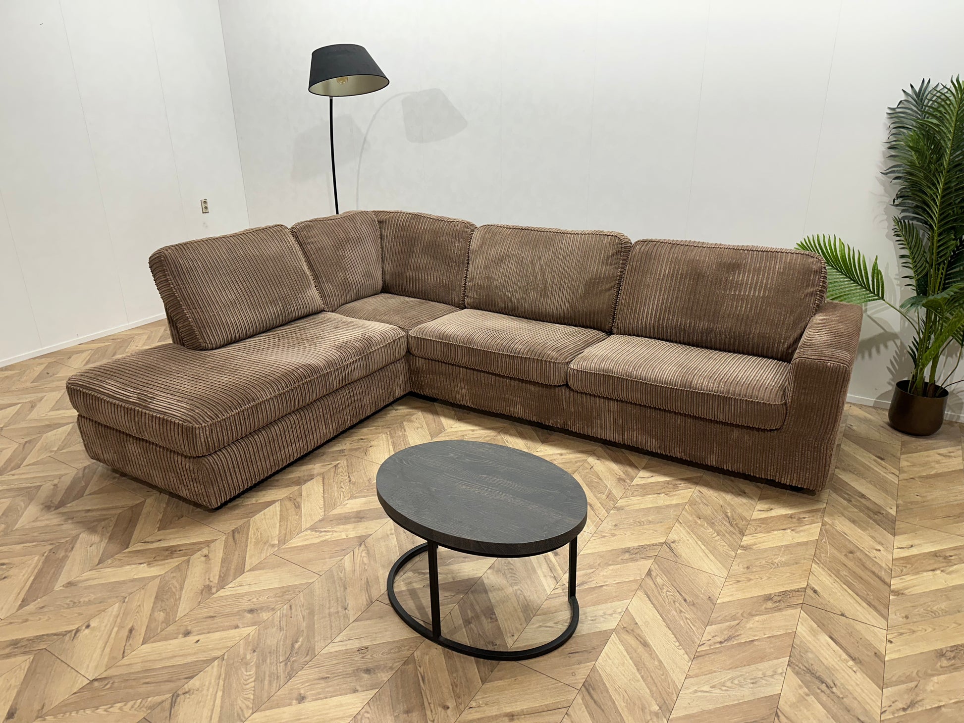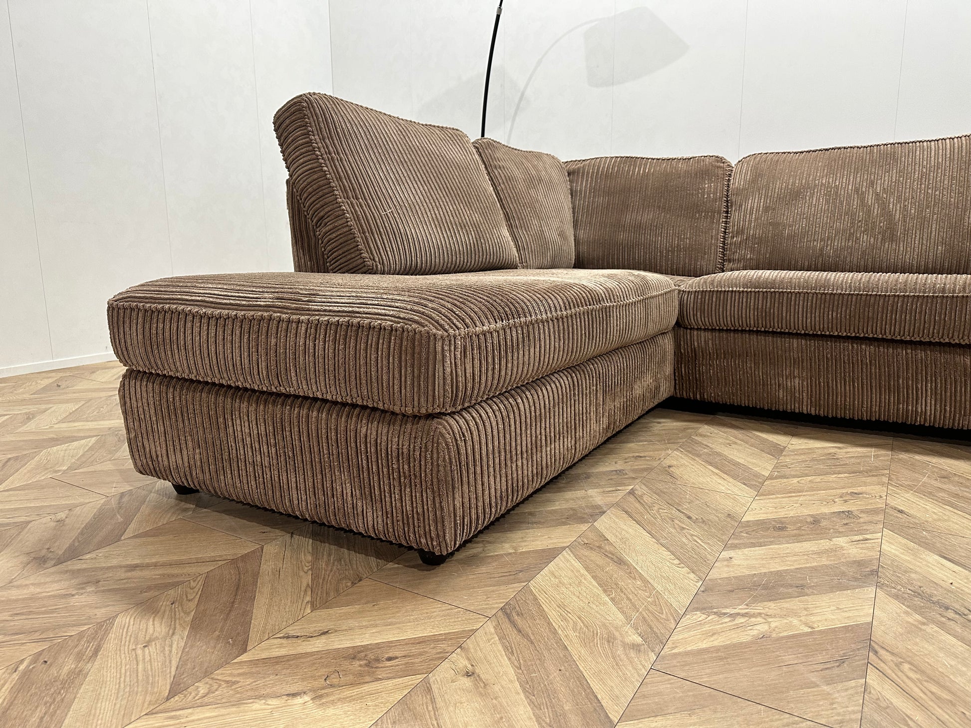 Licht Bruine Ribstof Hoekbank ~ Losse Kussens Met Afneembare Hoezen