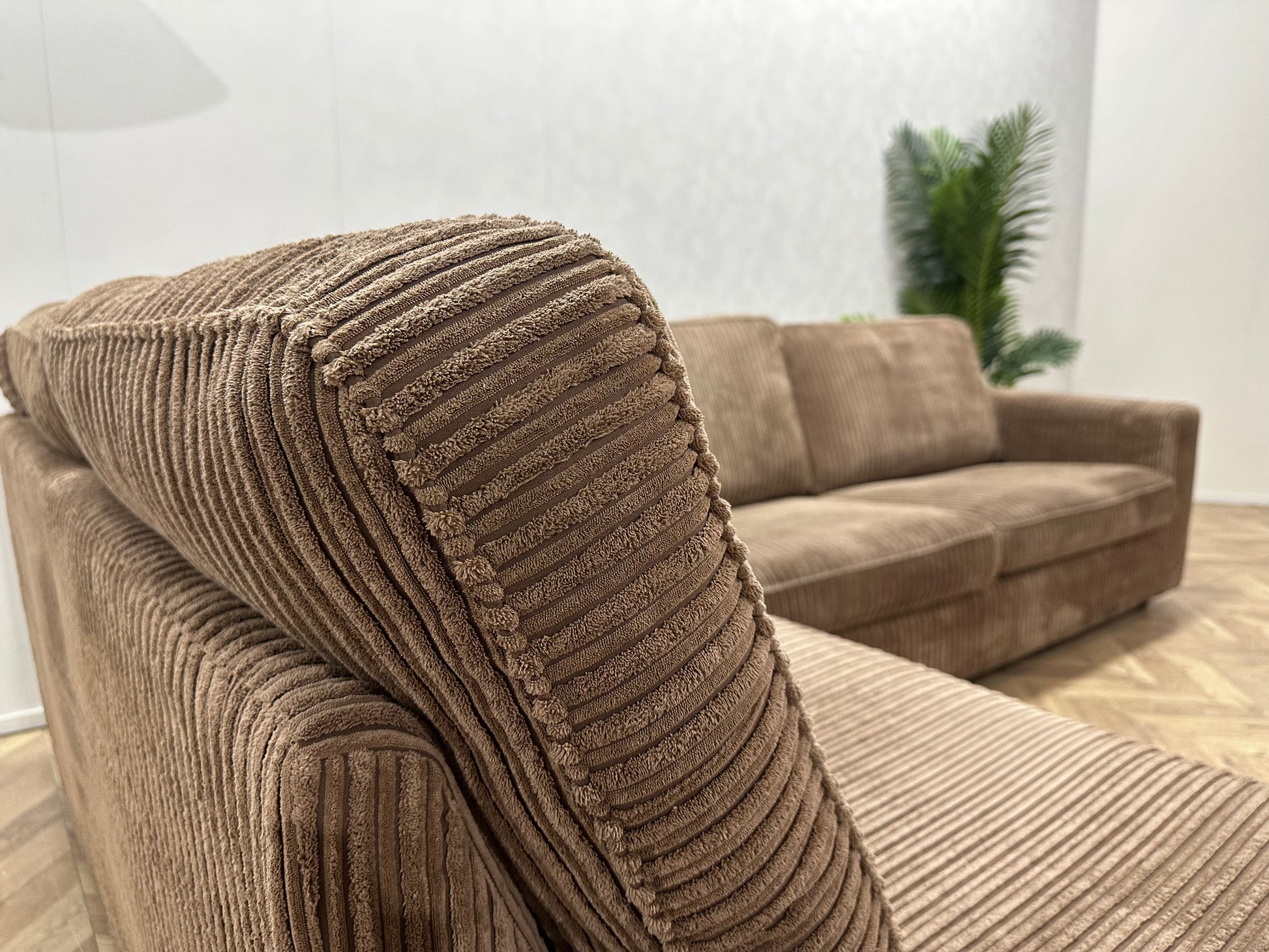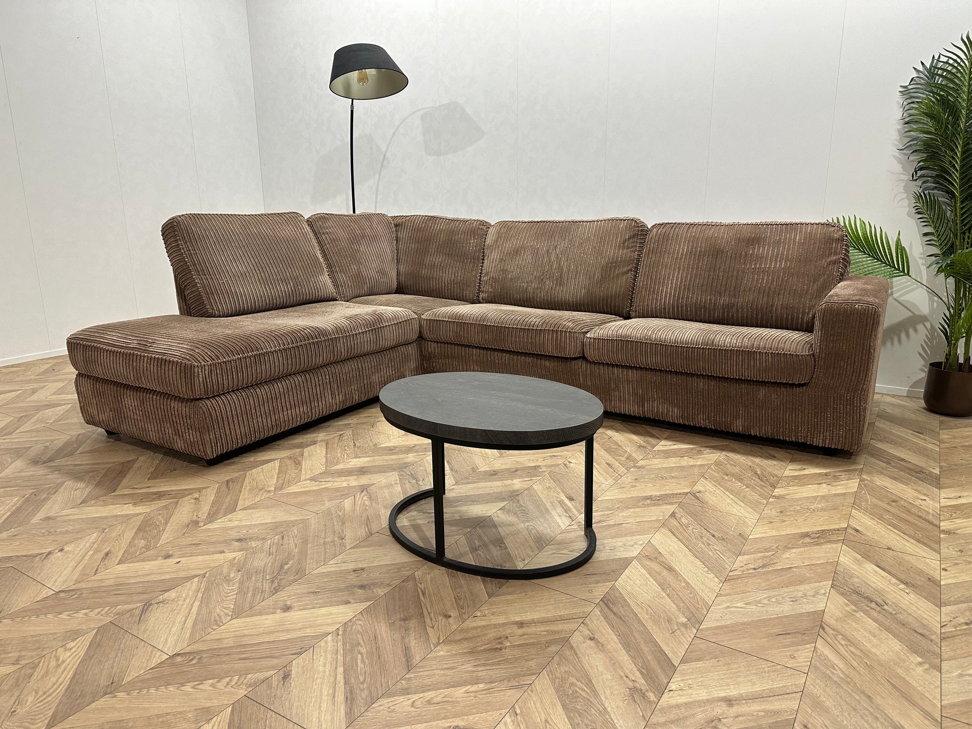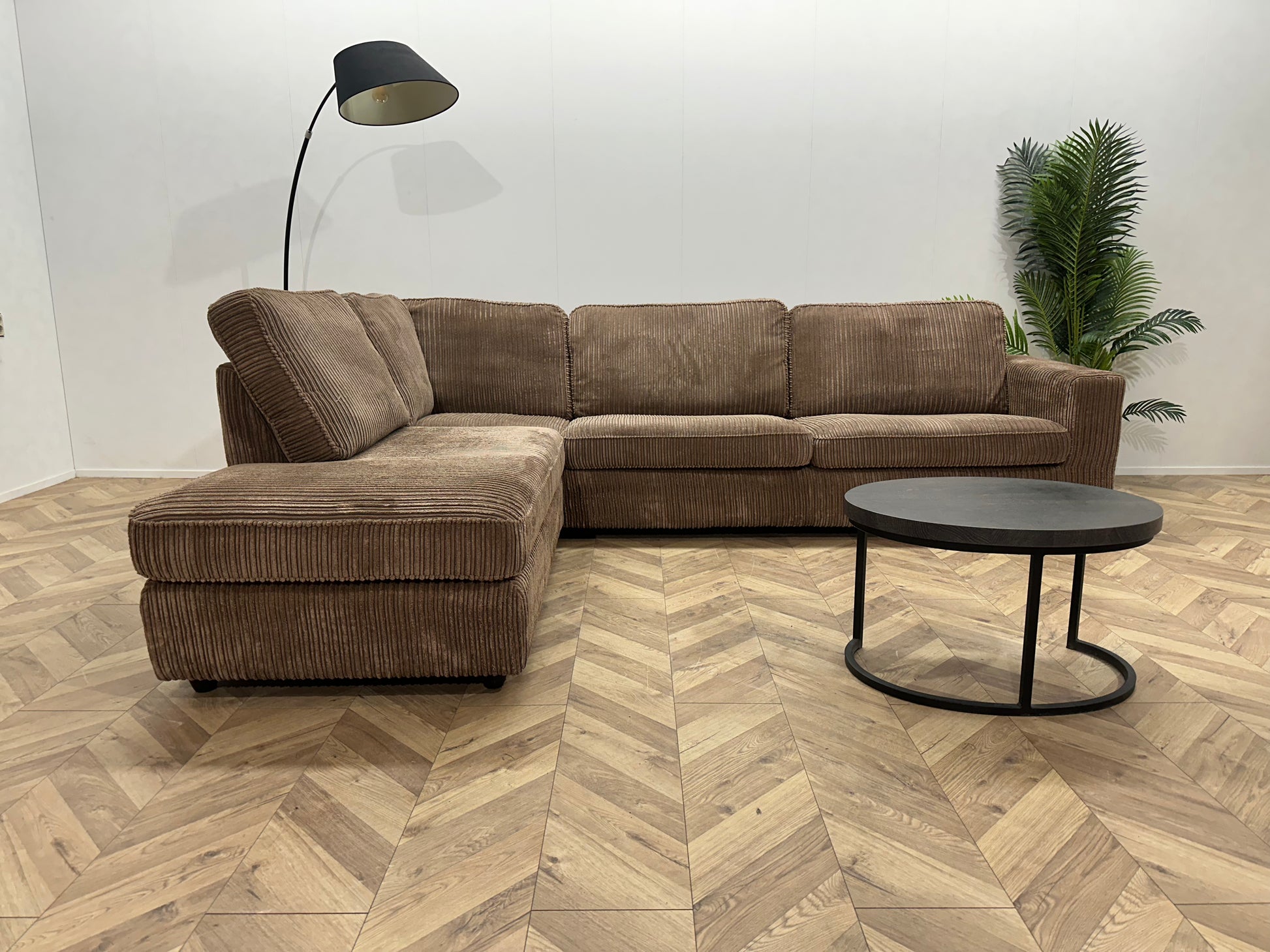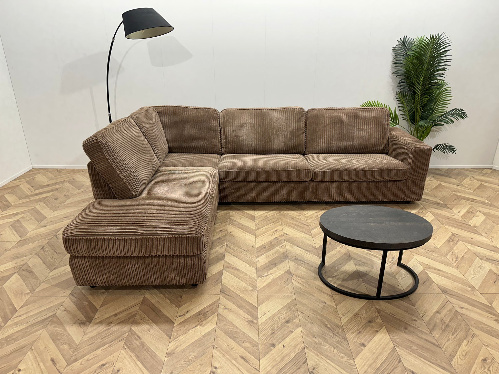 Licht Bruine Ribstof Hoekbank ~ Losse Kussens Met Afneembare Hoezen