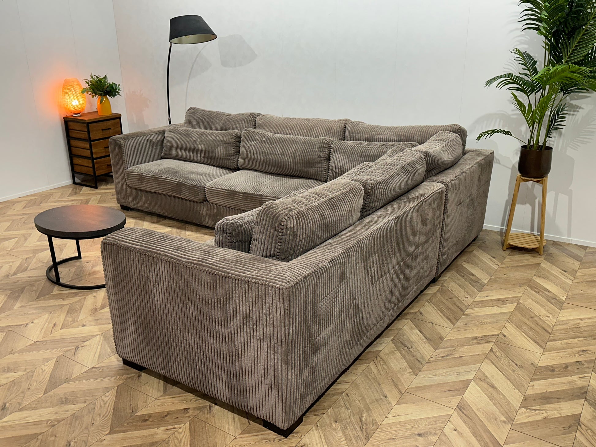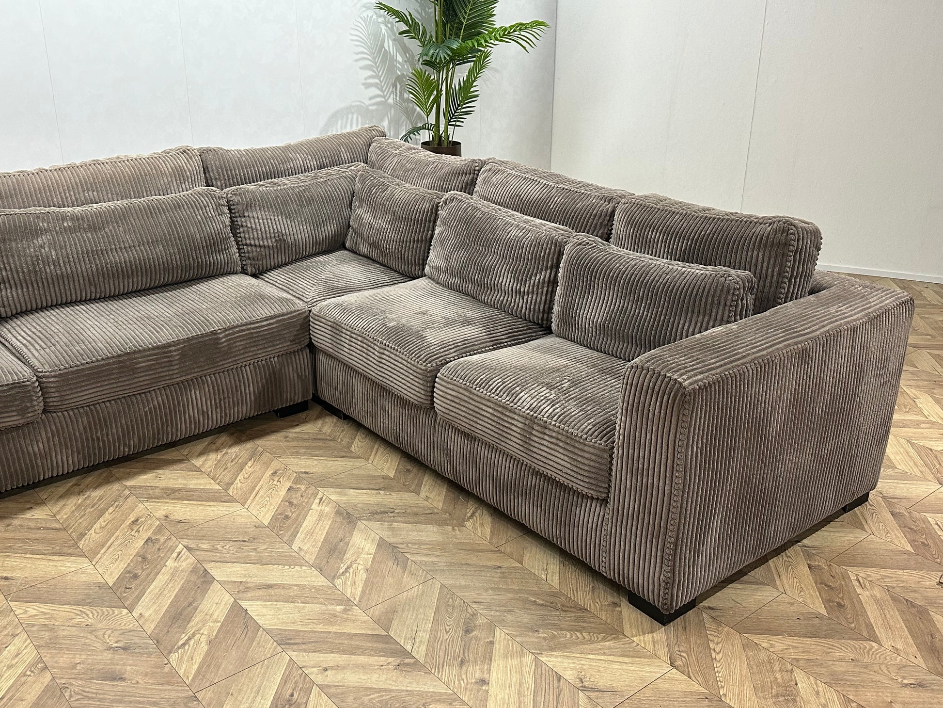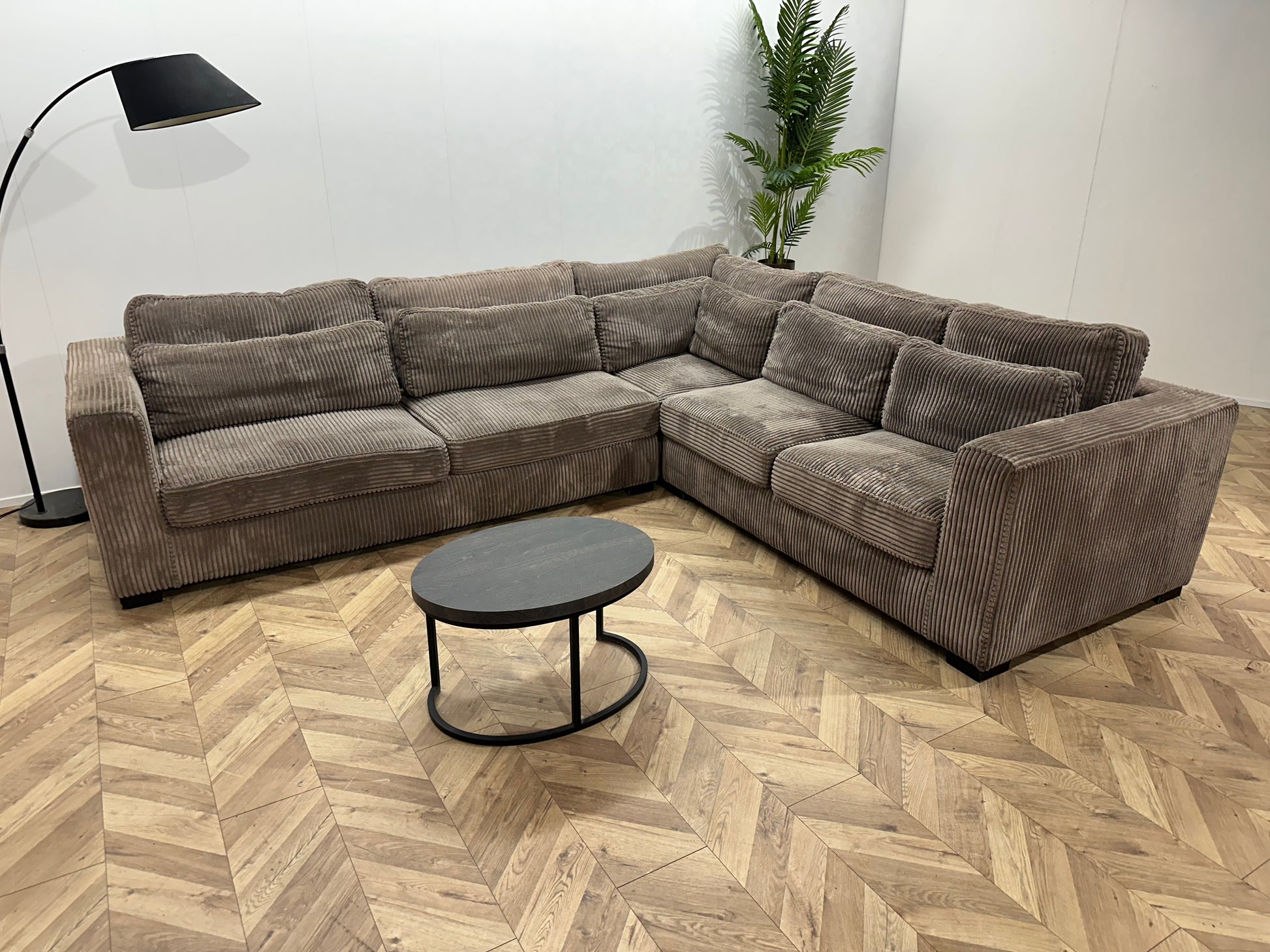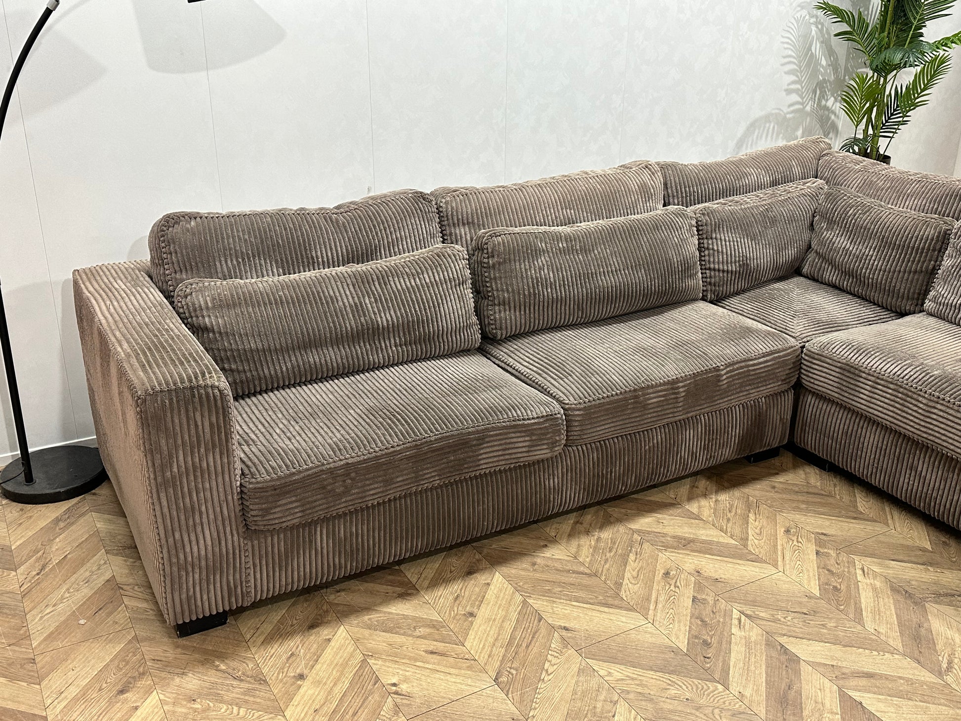 Licht Bruine Ribstof Hoekbank ~ Losse Kussens Met Afneembare Hoezen