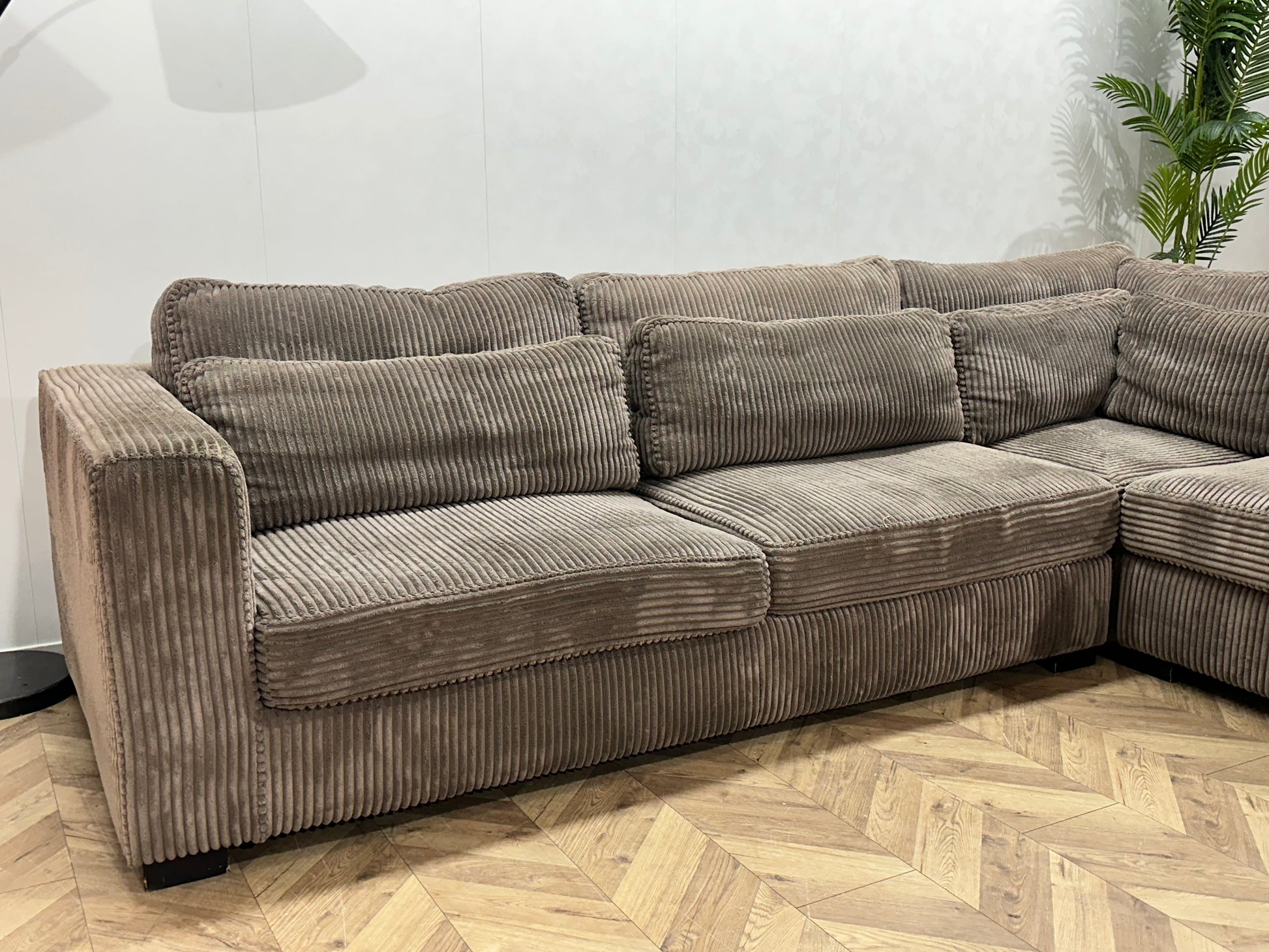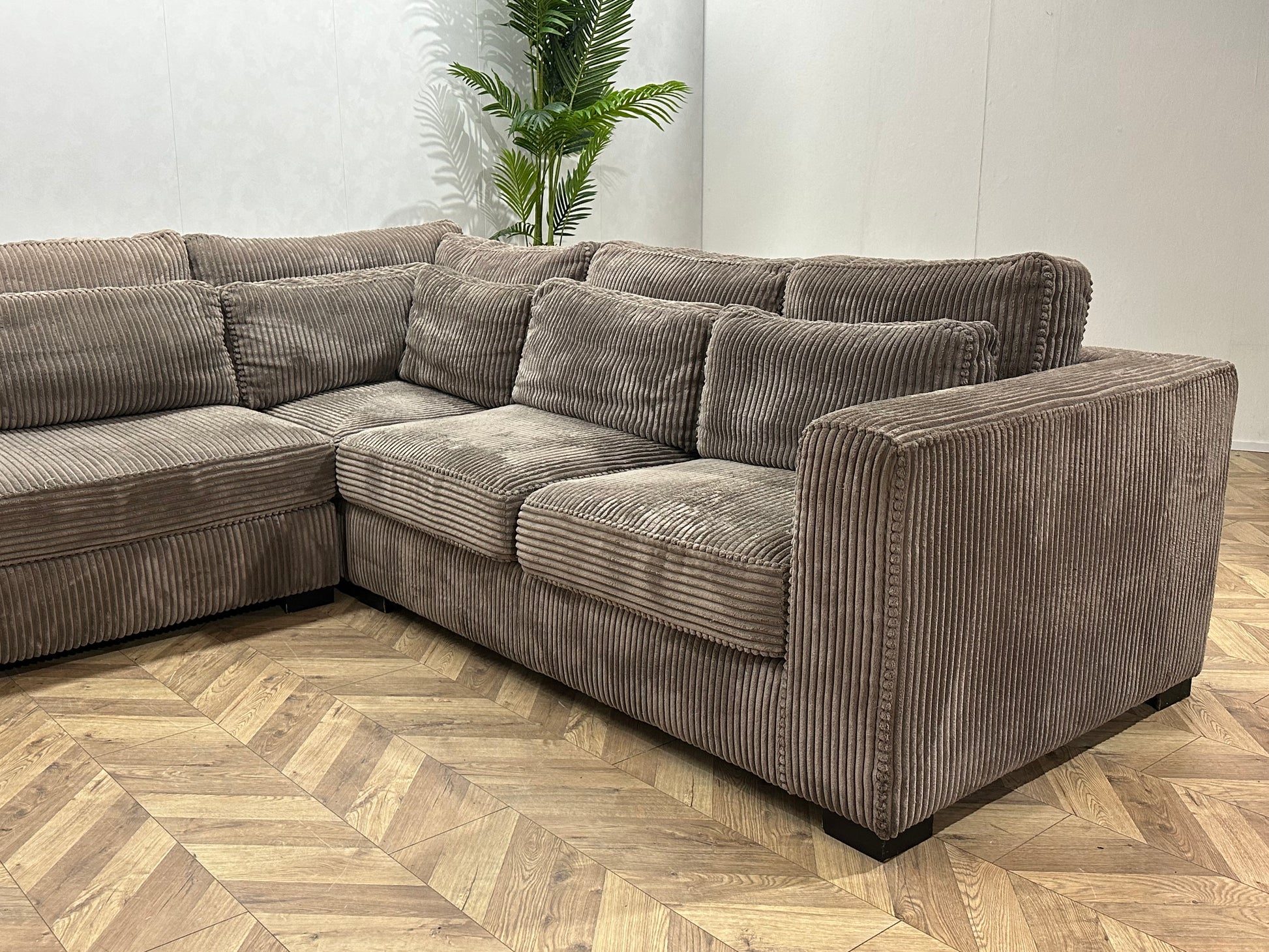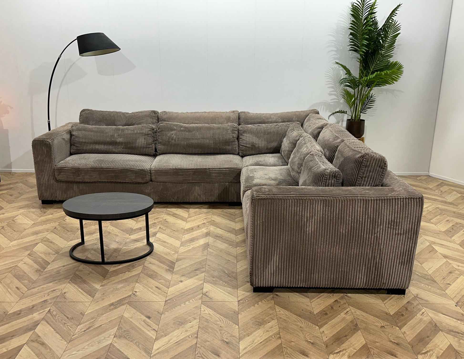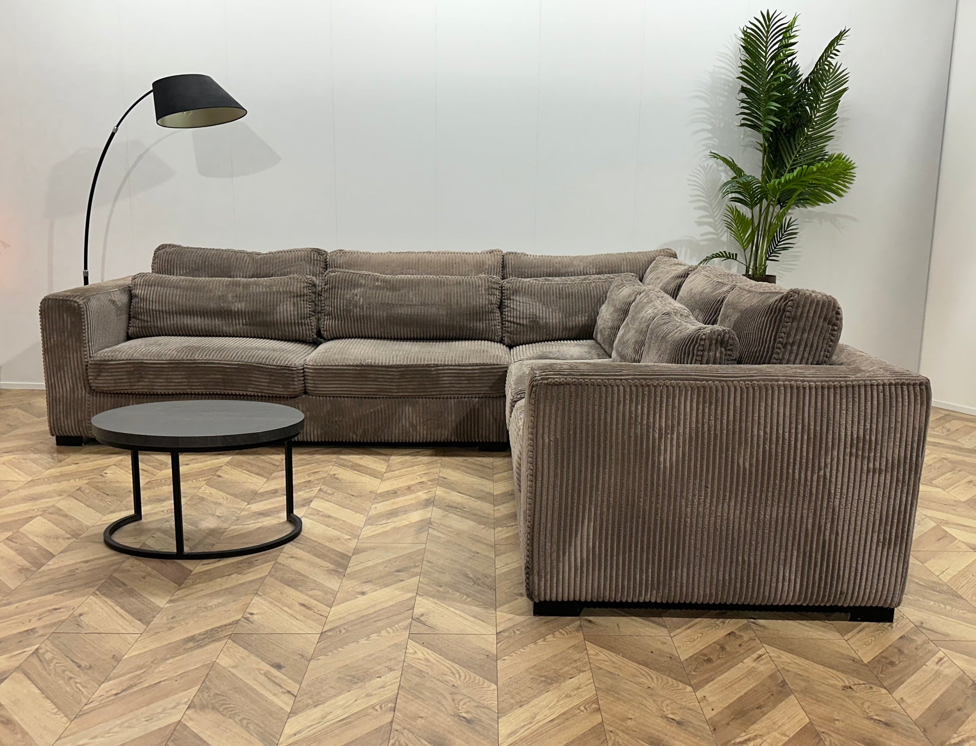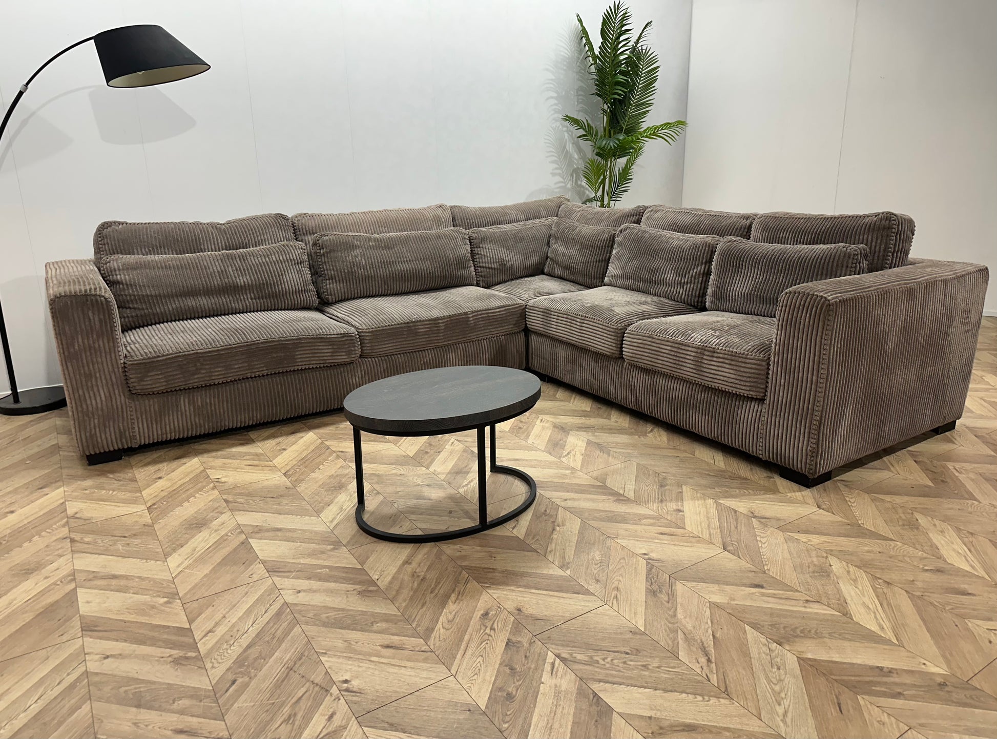 Licht Bruine Ribstof Hoekbank ~ Losse Kussens Met Afneembare Hoezen