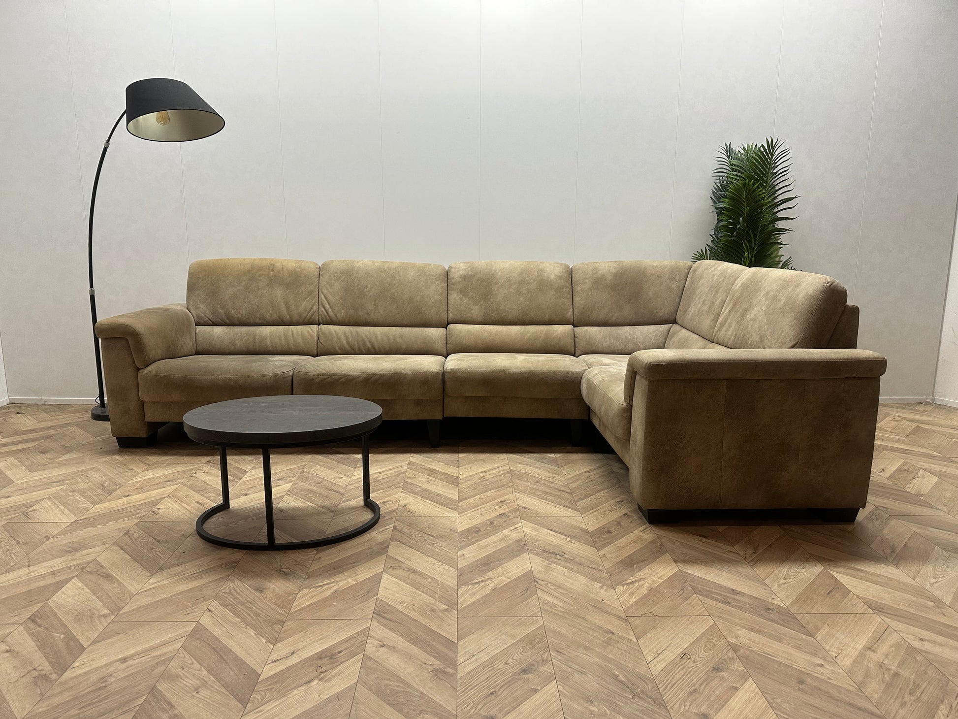 Licht Bruine Suede Lederen Hoekbank ~ Vaste Kussens