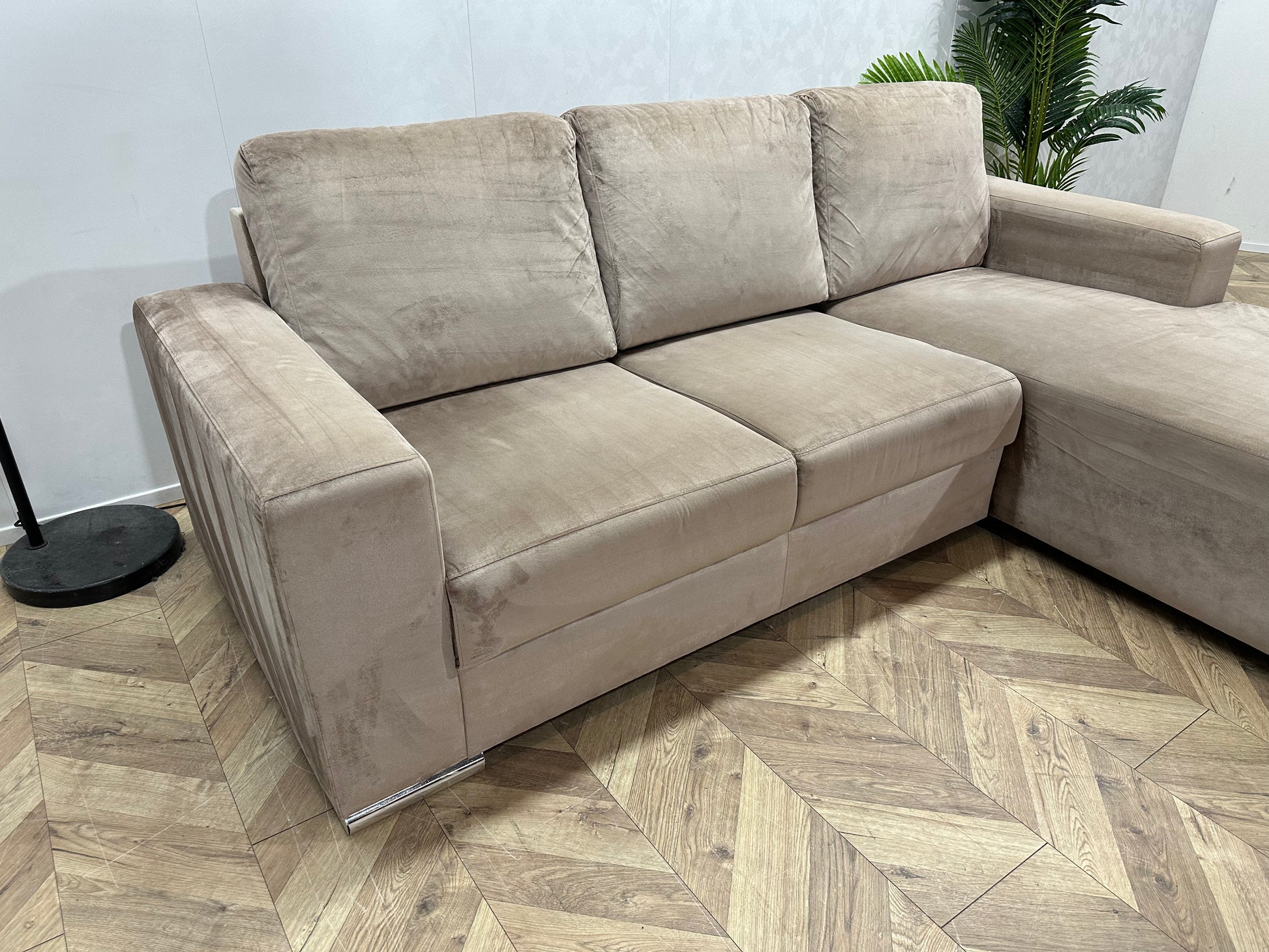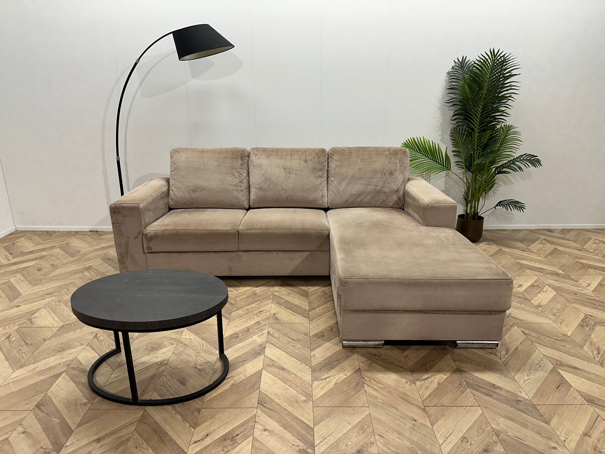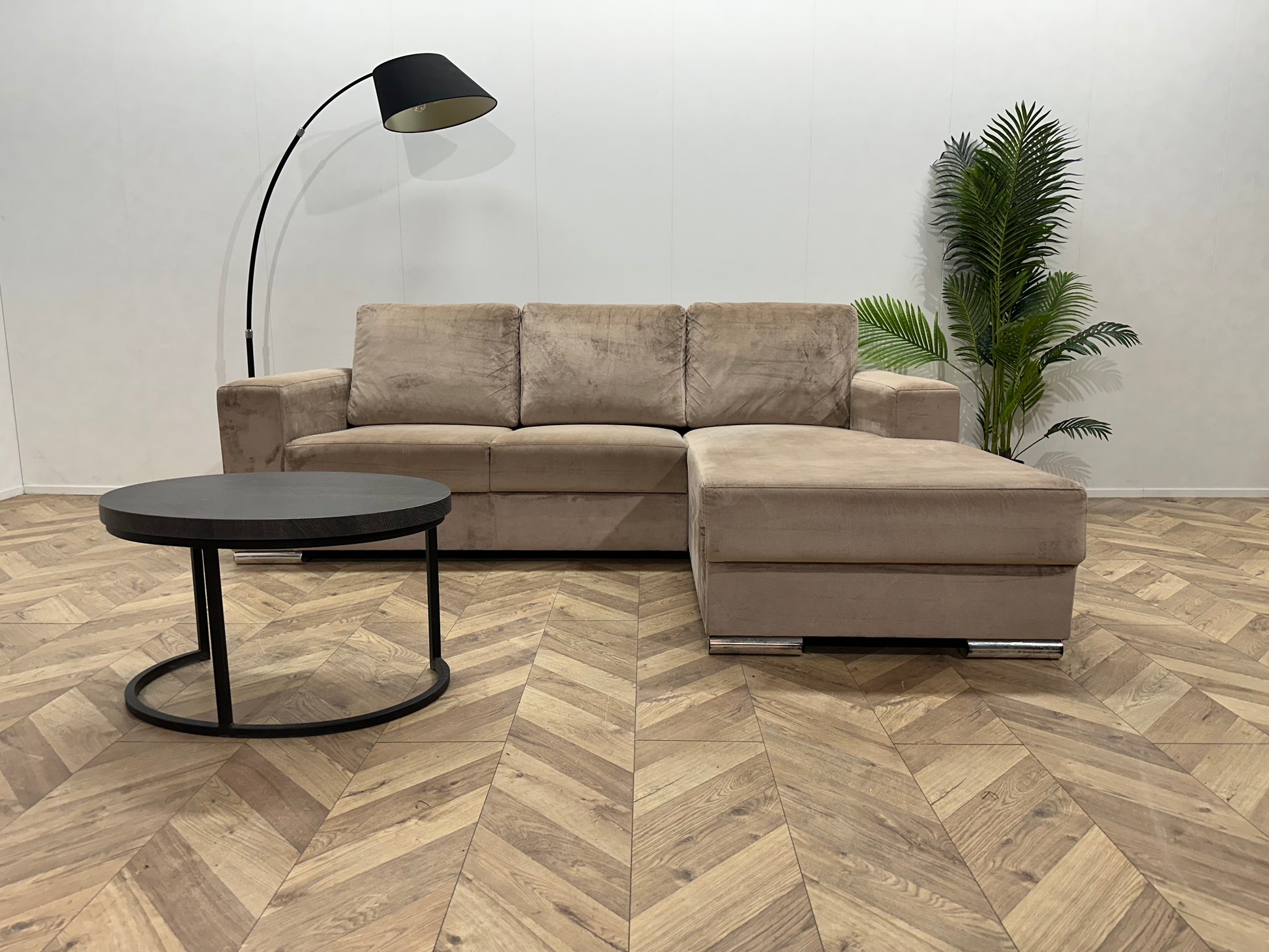 Licht Bruine Velvet Hoekbank ~ Losse Rugkussens Met Afneembare Hoezen