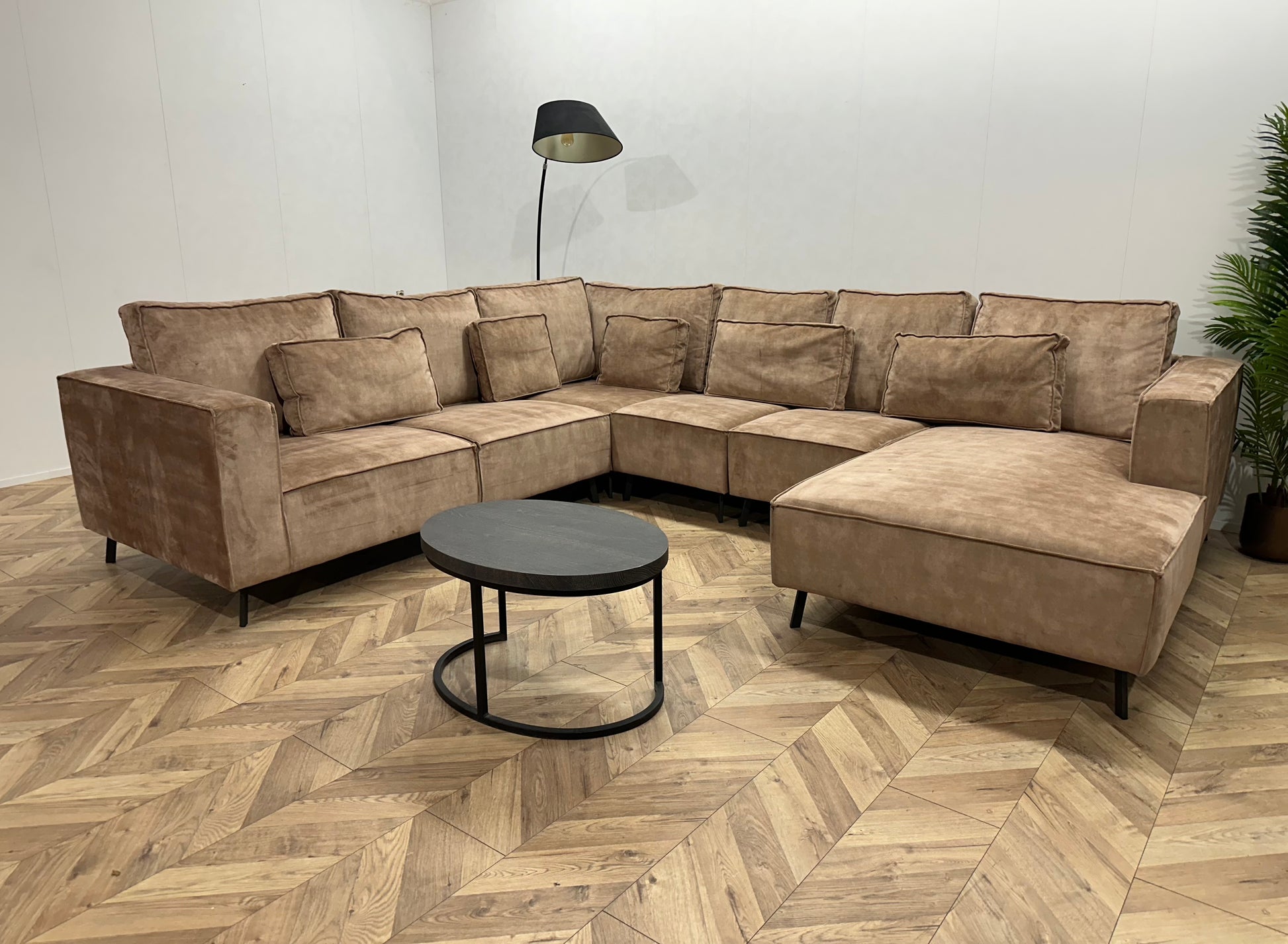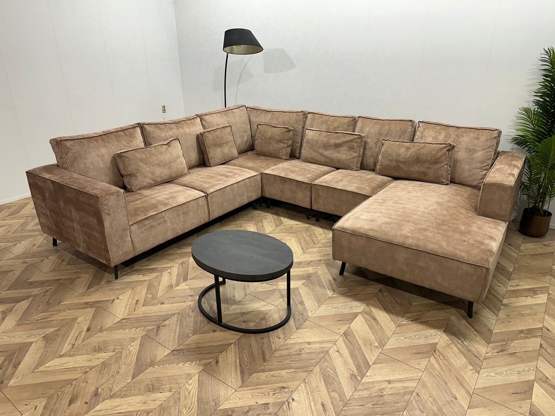 Zwarte Velvet Hoekbank ~ Losse Kussens Met Afneembare Hoezen