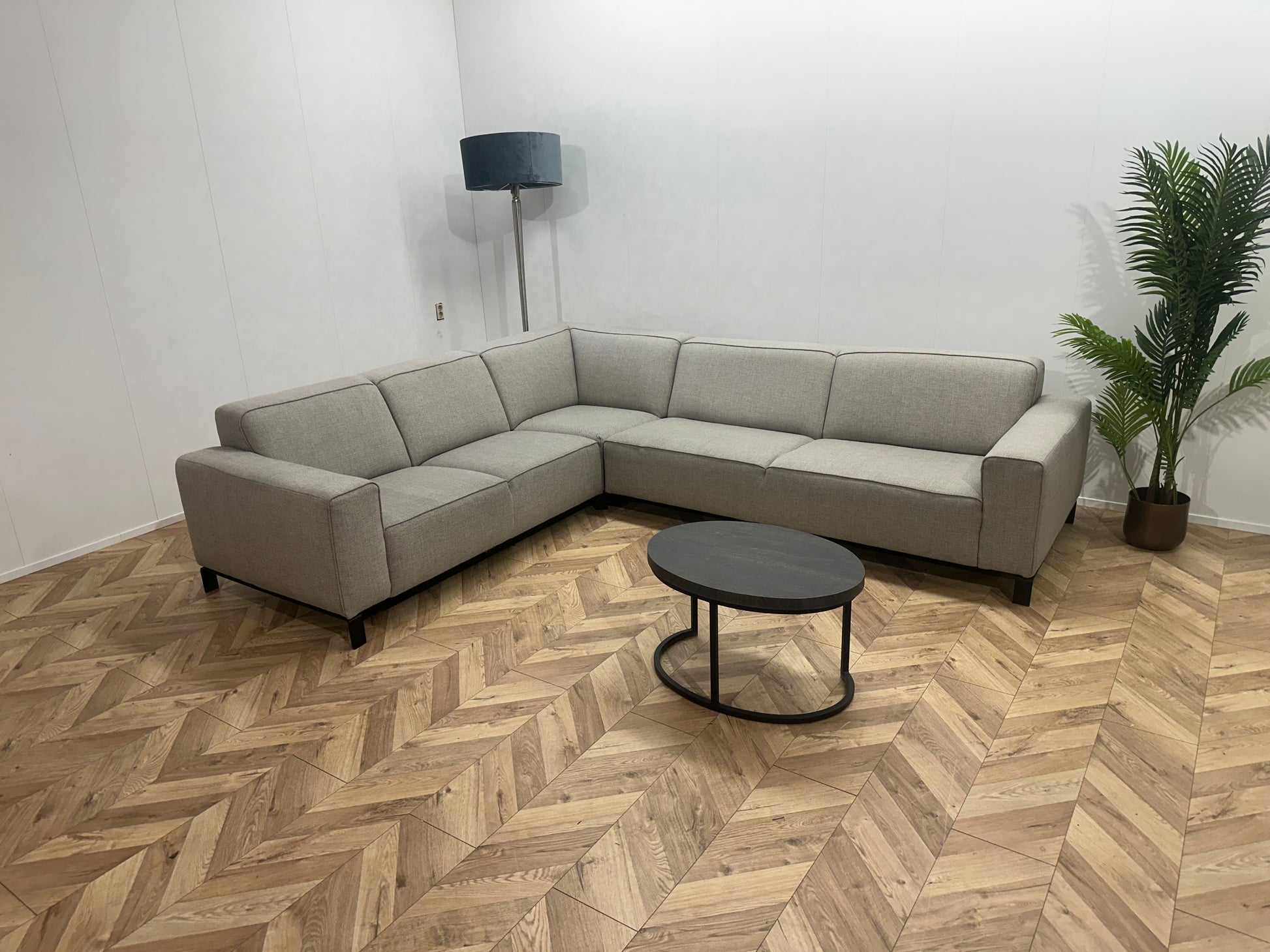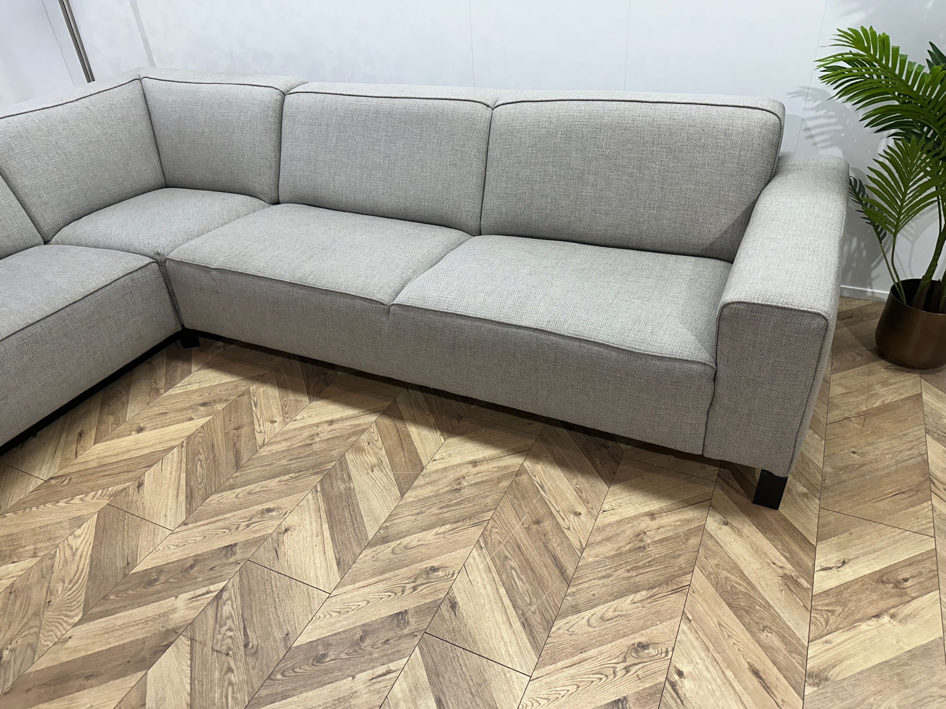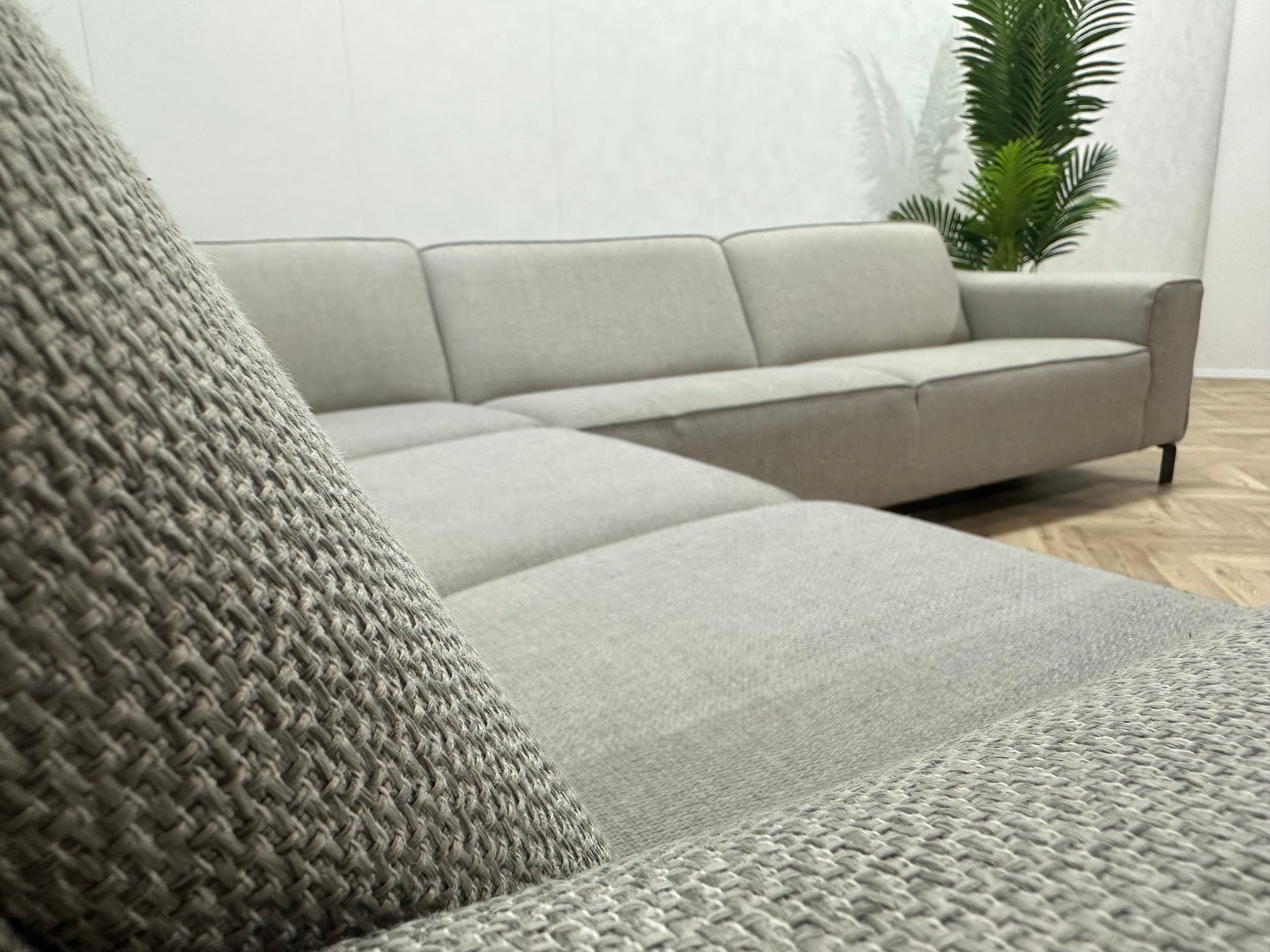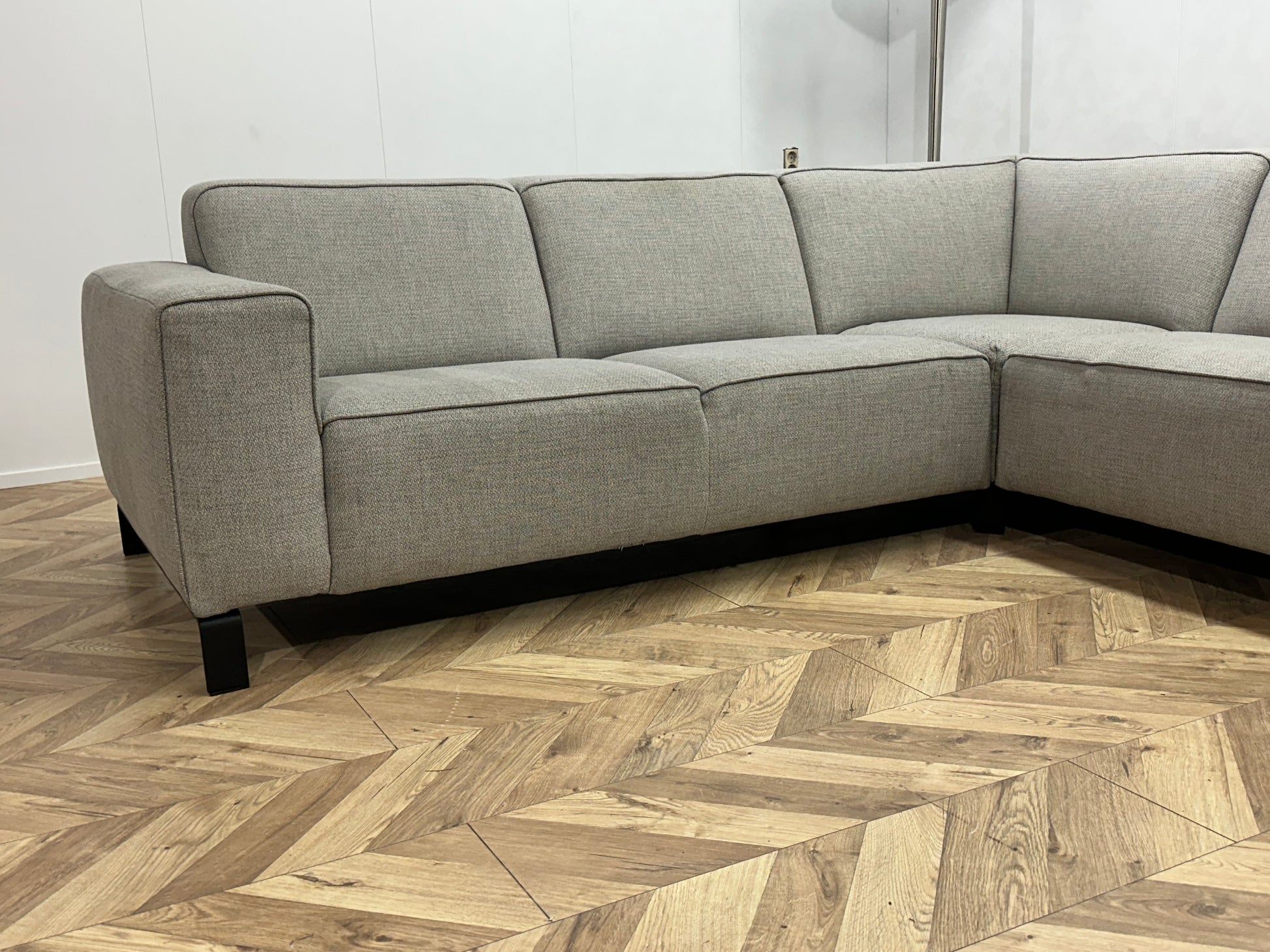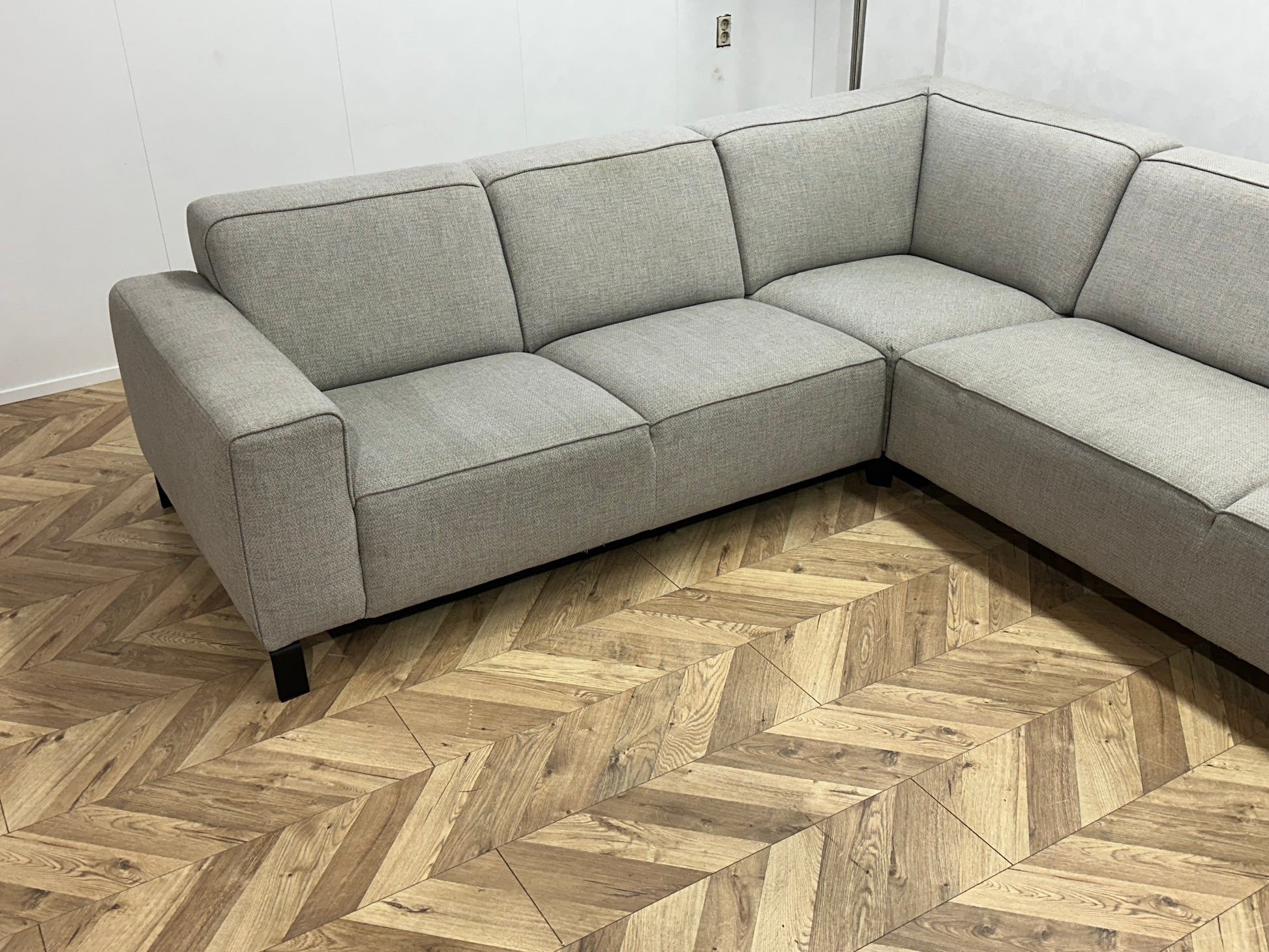 Licht Grijze Hoekbank ~ Vaste Kussens