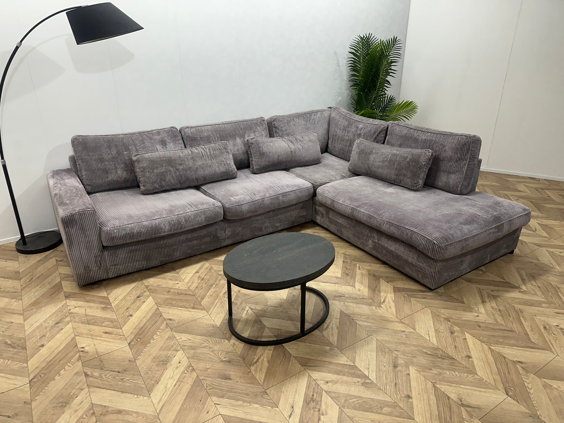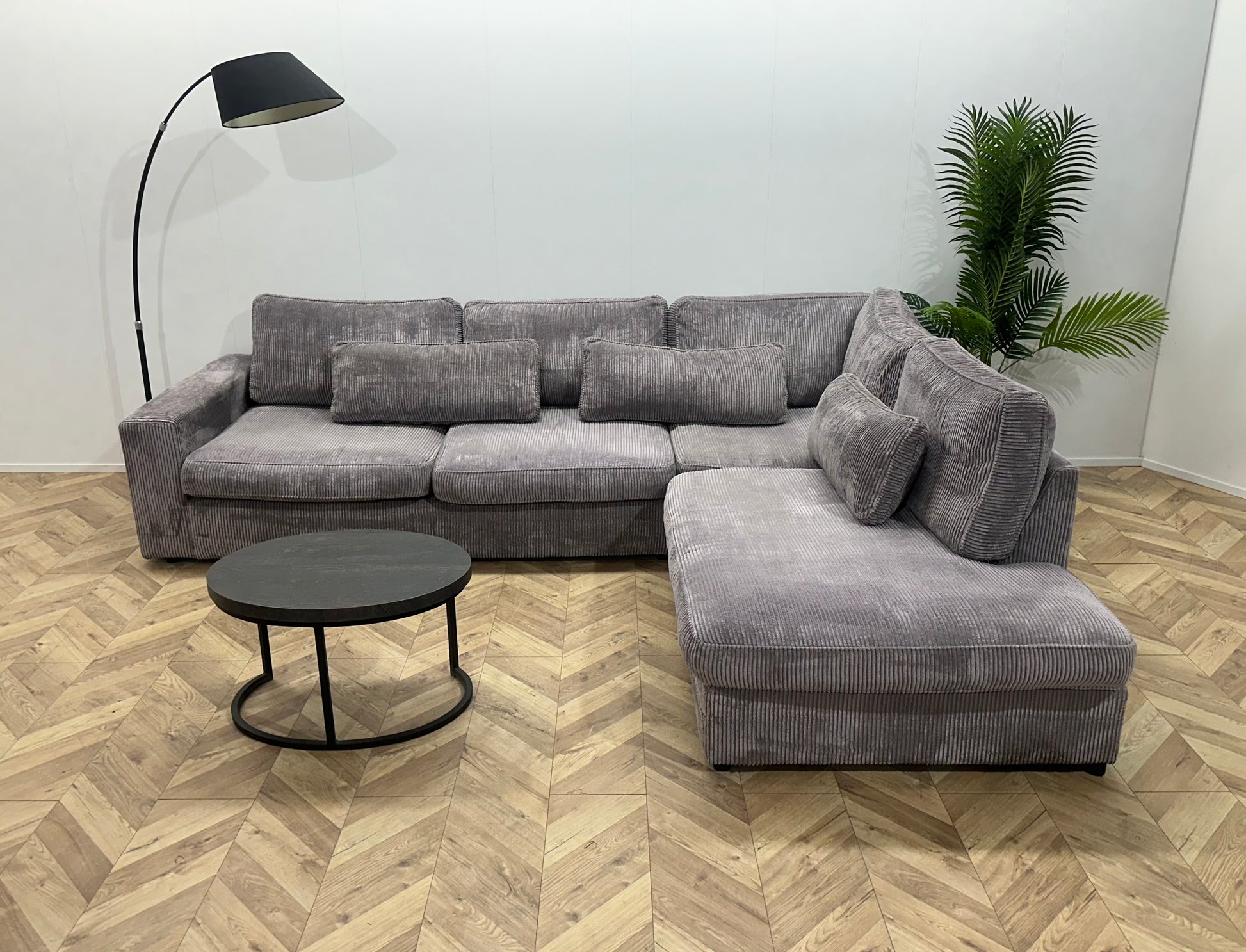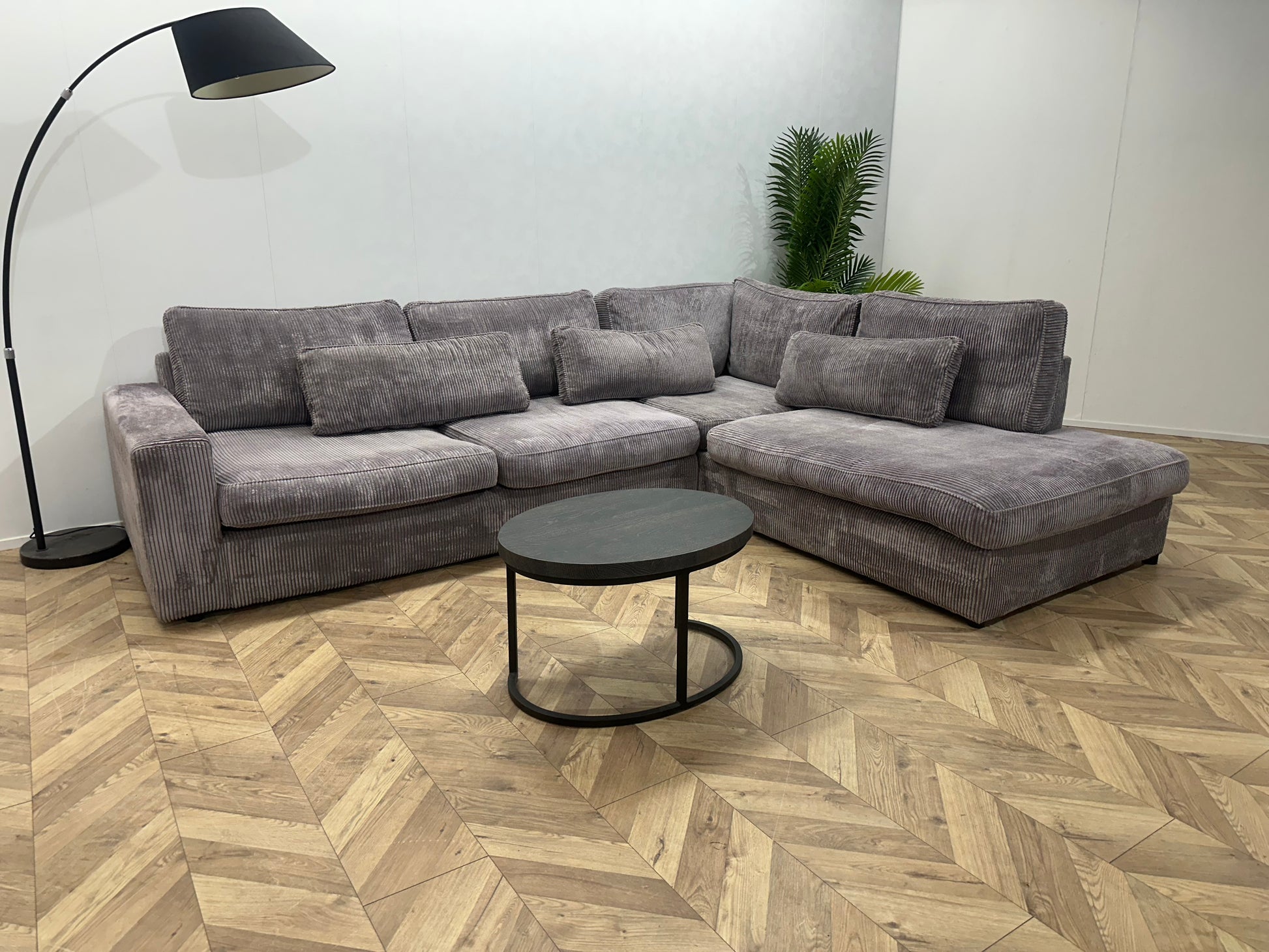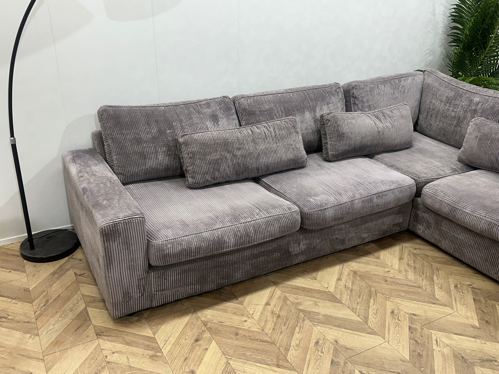 Licht Grijze Ribstof Hoekbank ~ Losse Kussens Met Afneembare Hoezen
