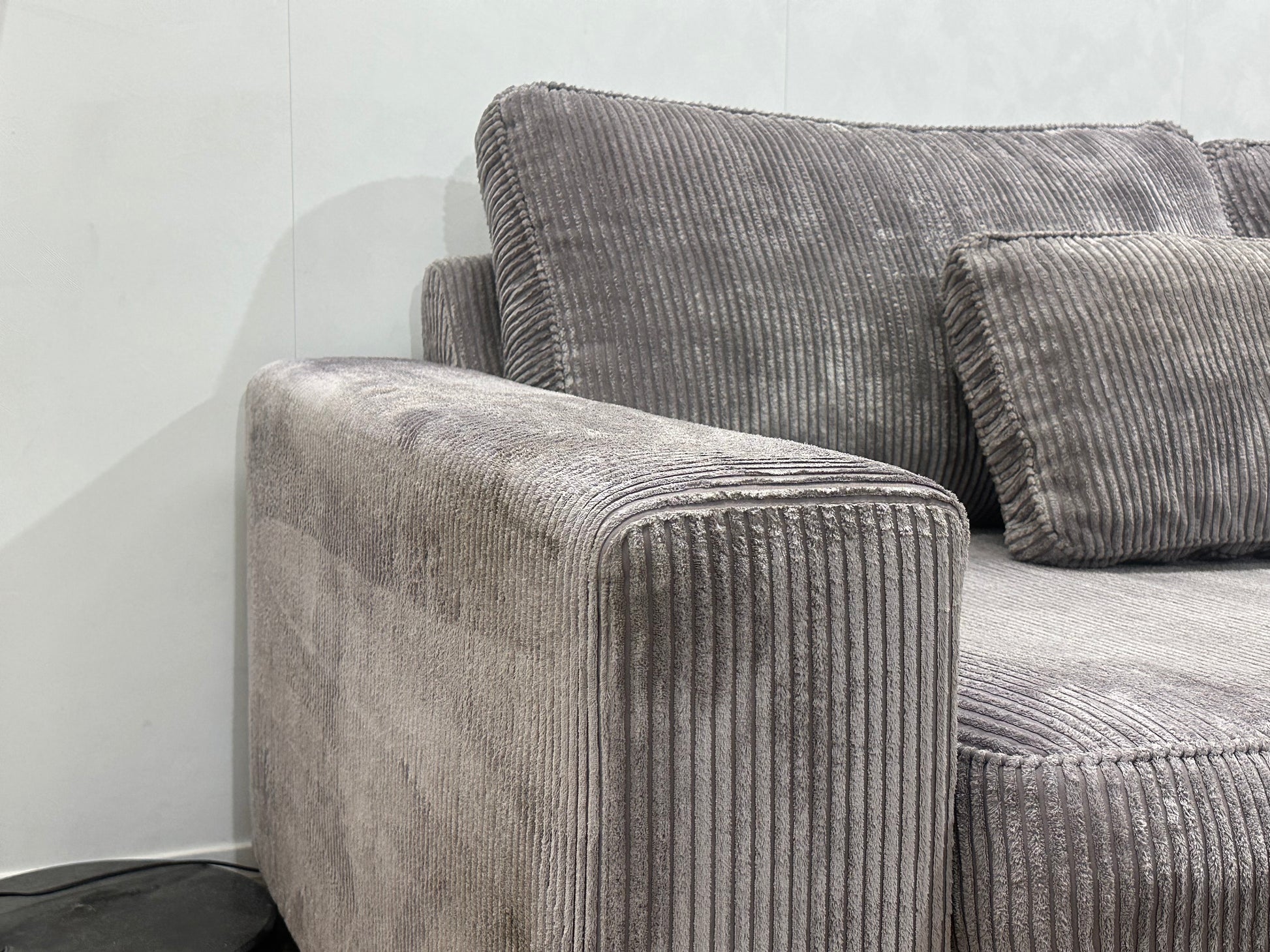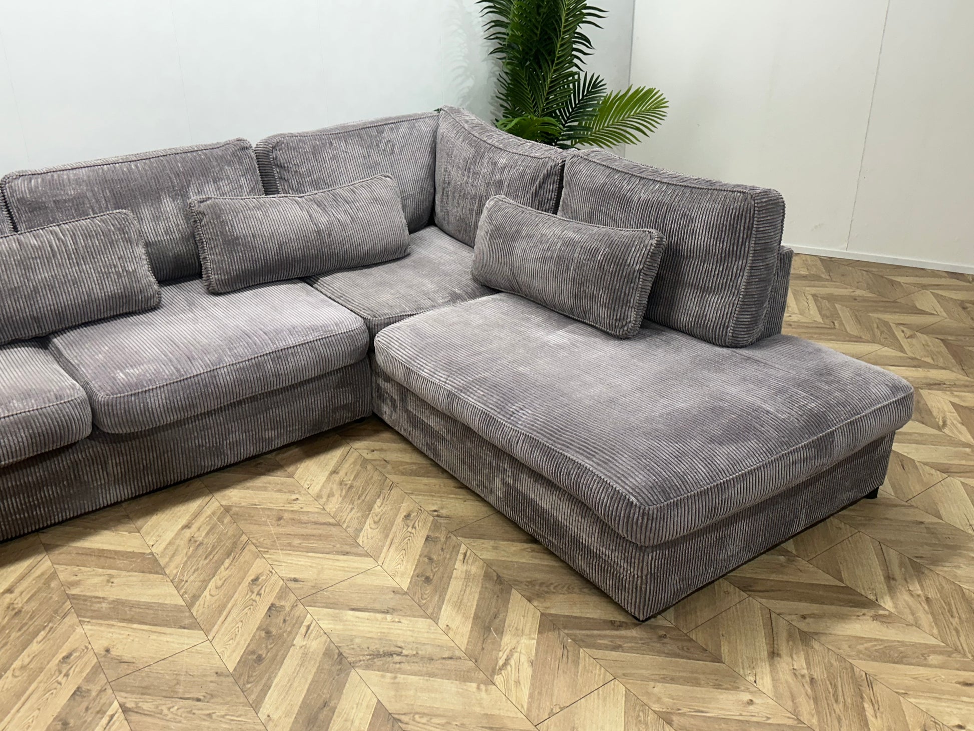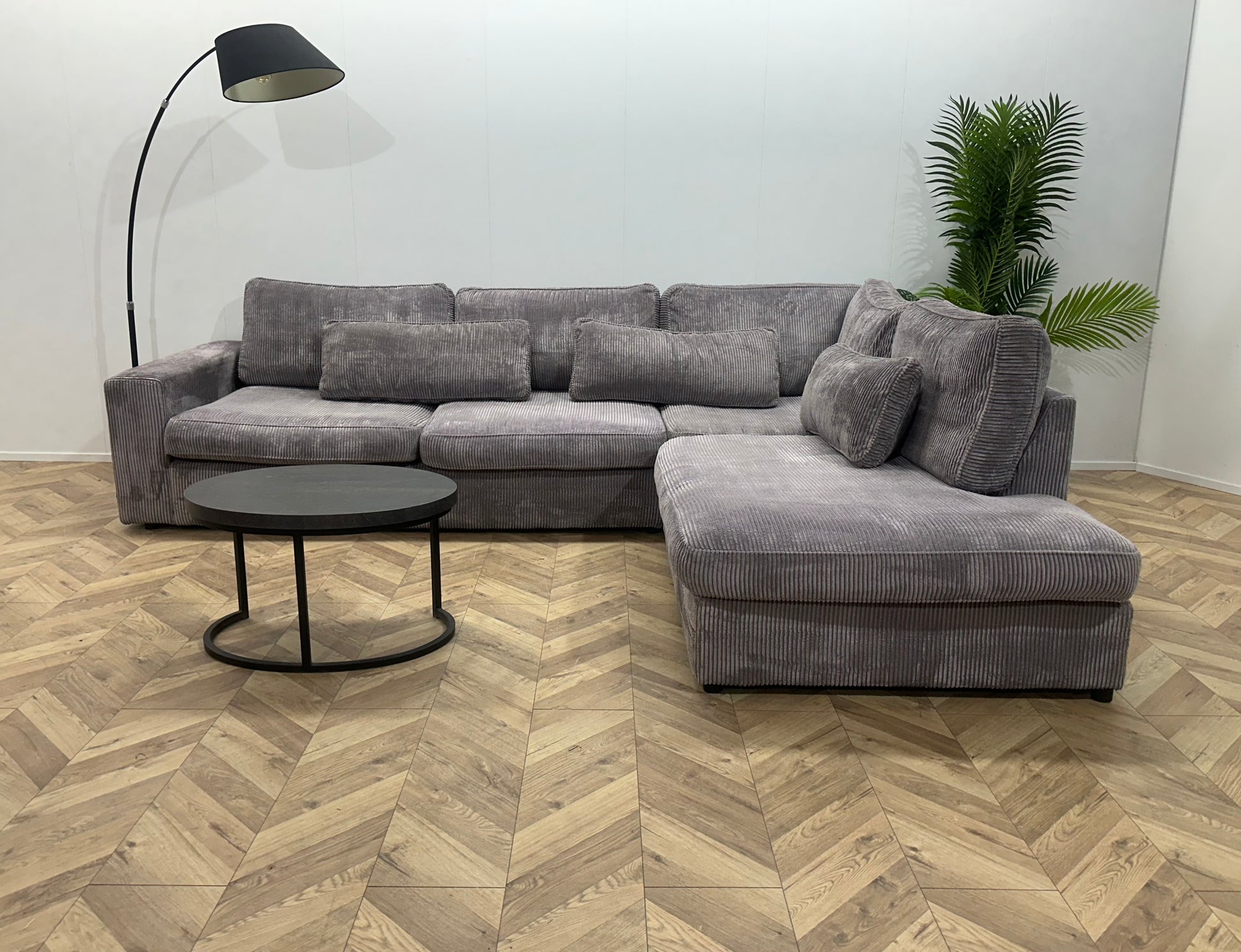 Licht Grijze Ribstof Hoekbank ~ Losse Kussens Met Afneembare Hoezen
