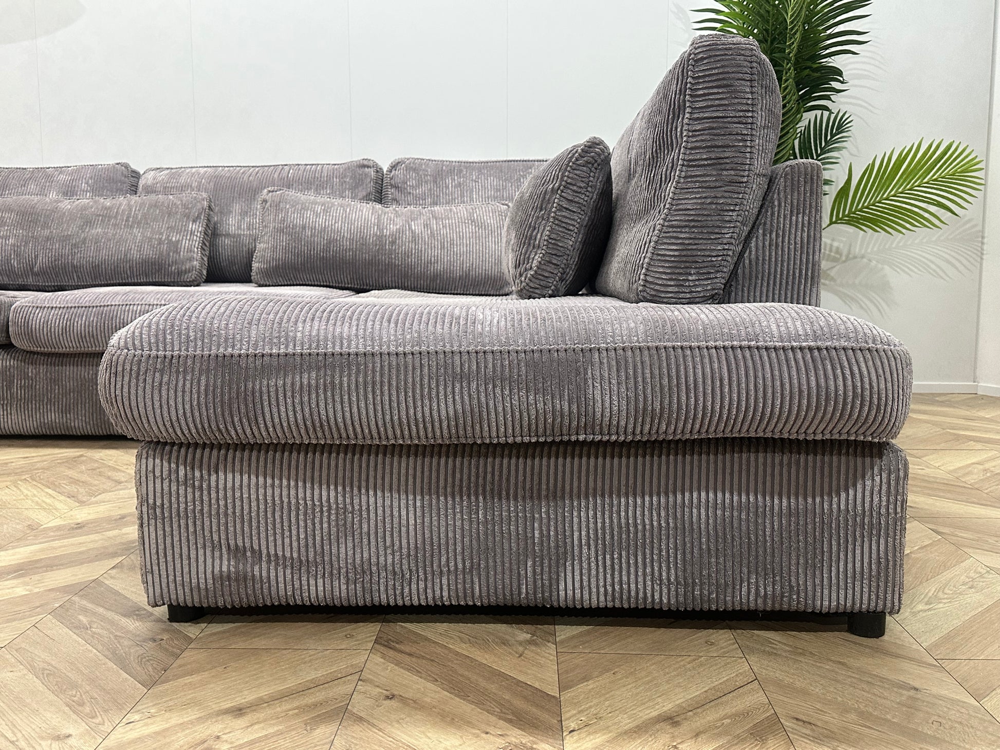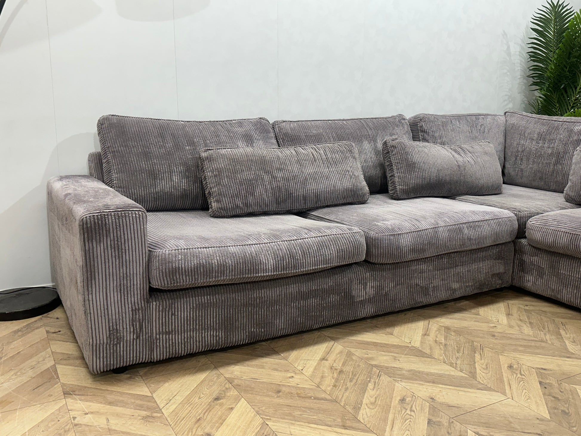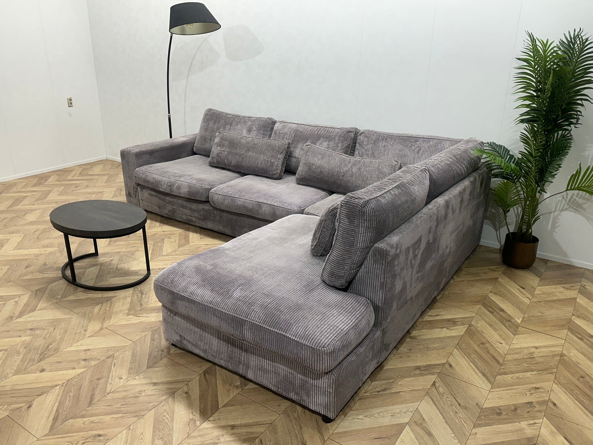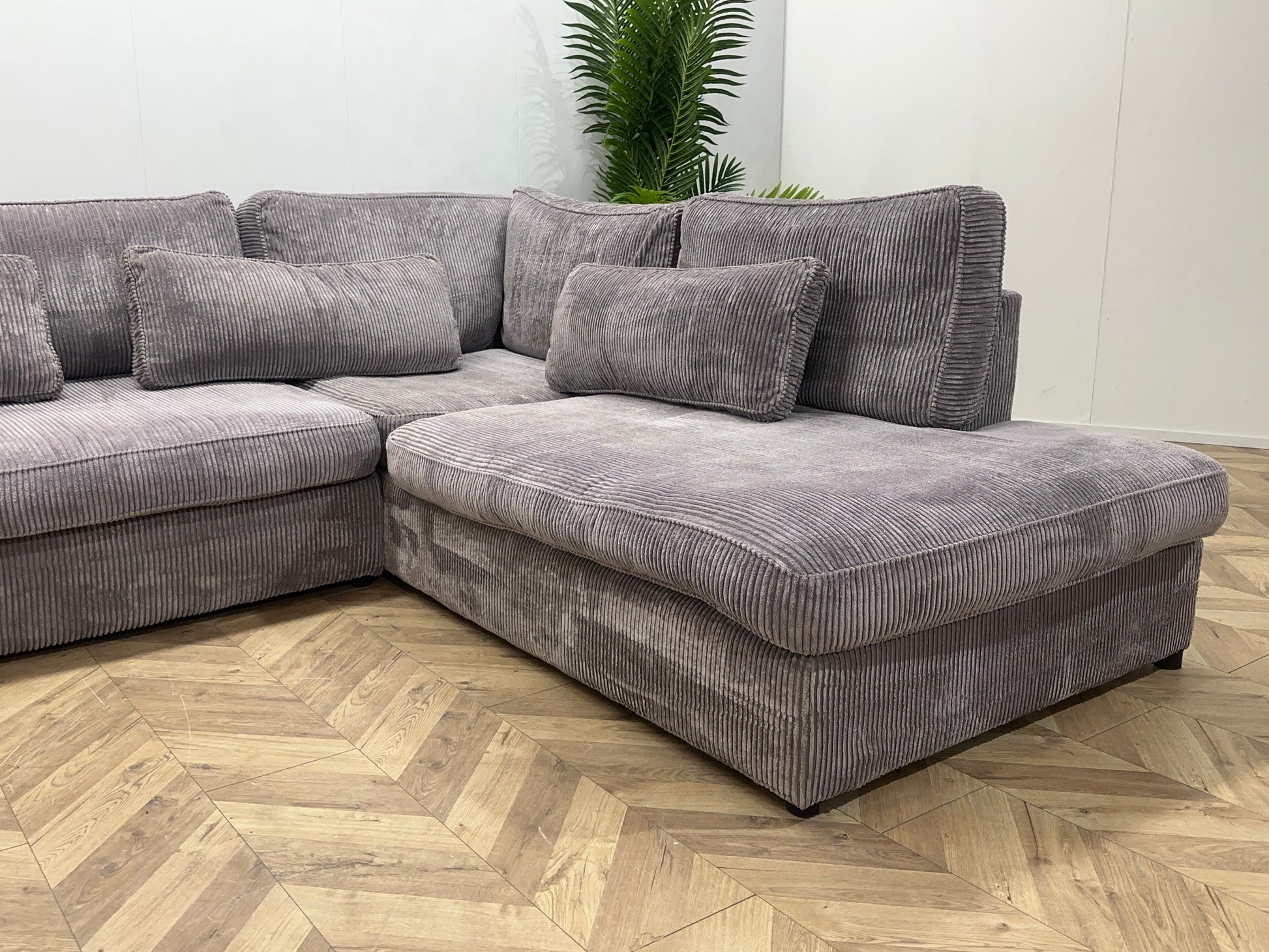 Licht Grijze Ribstof Hoekbank ~ Losse Kussens Met Afneembare Hoezen