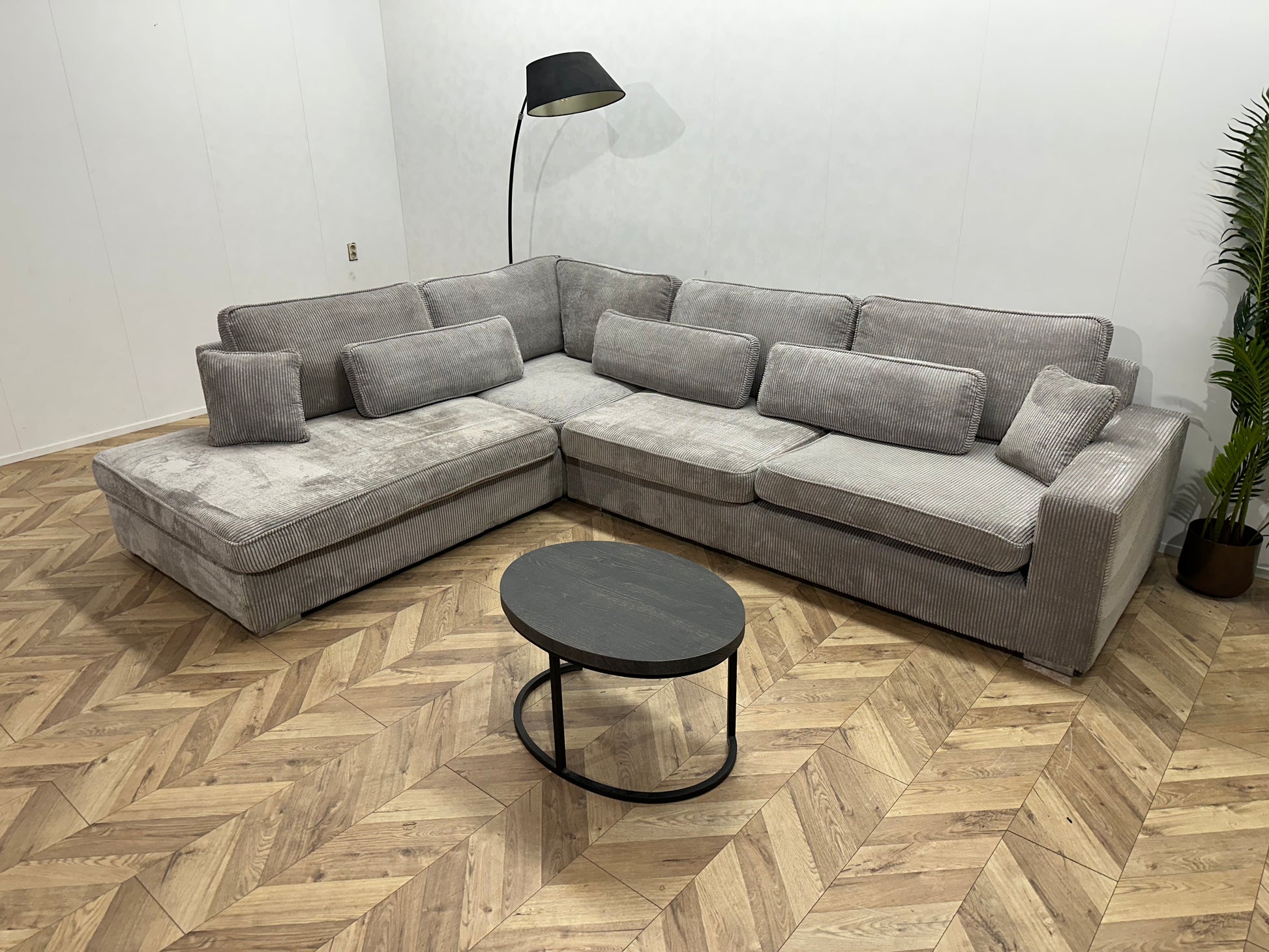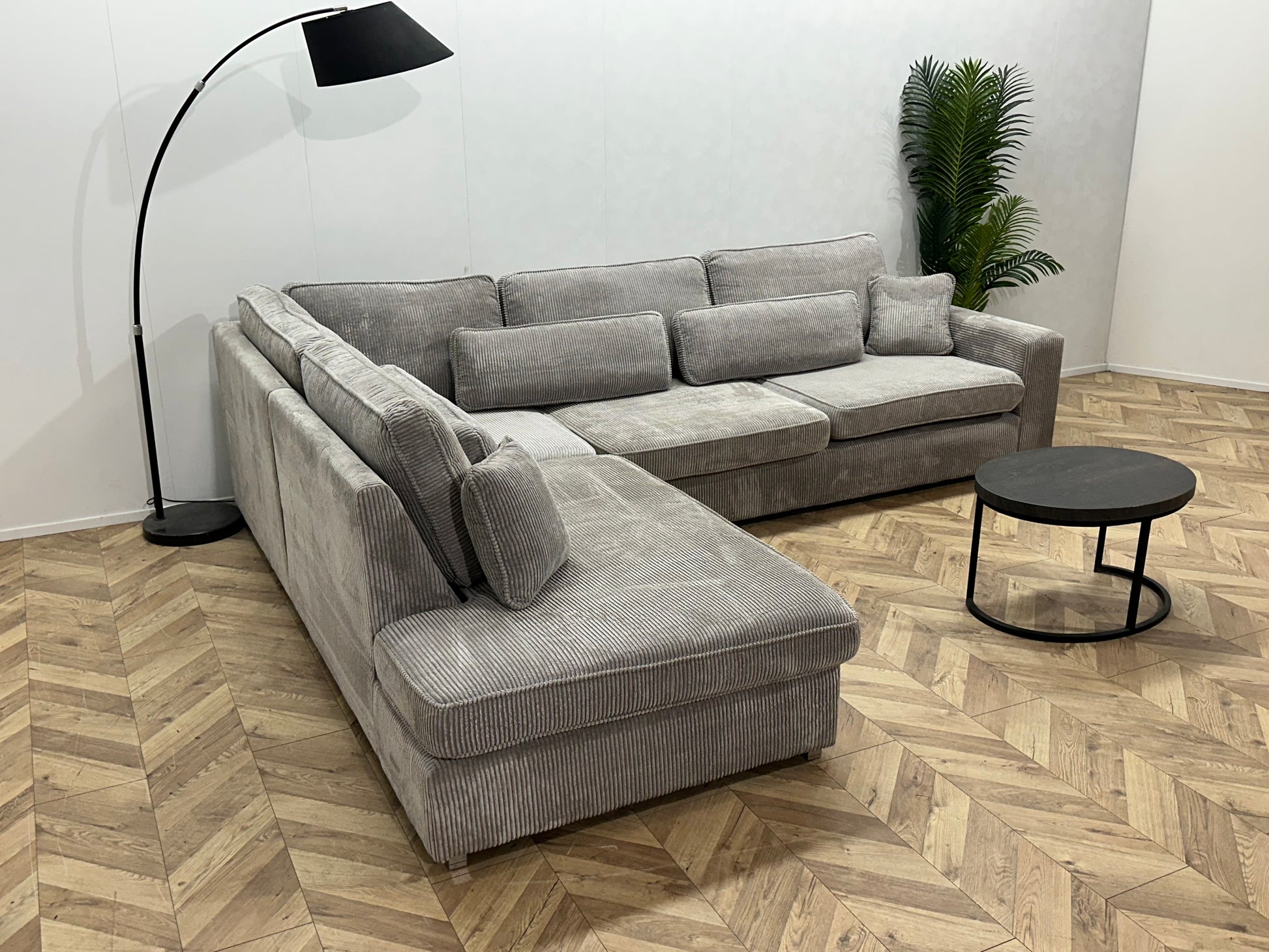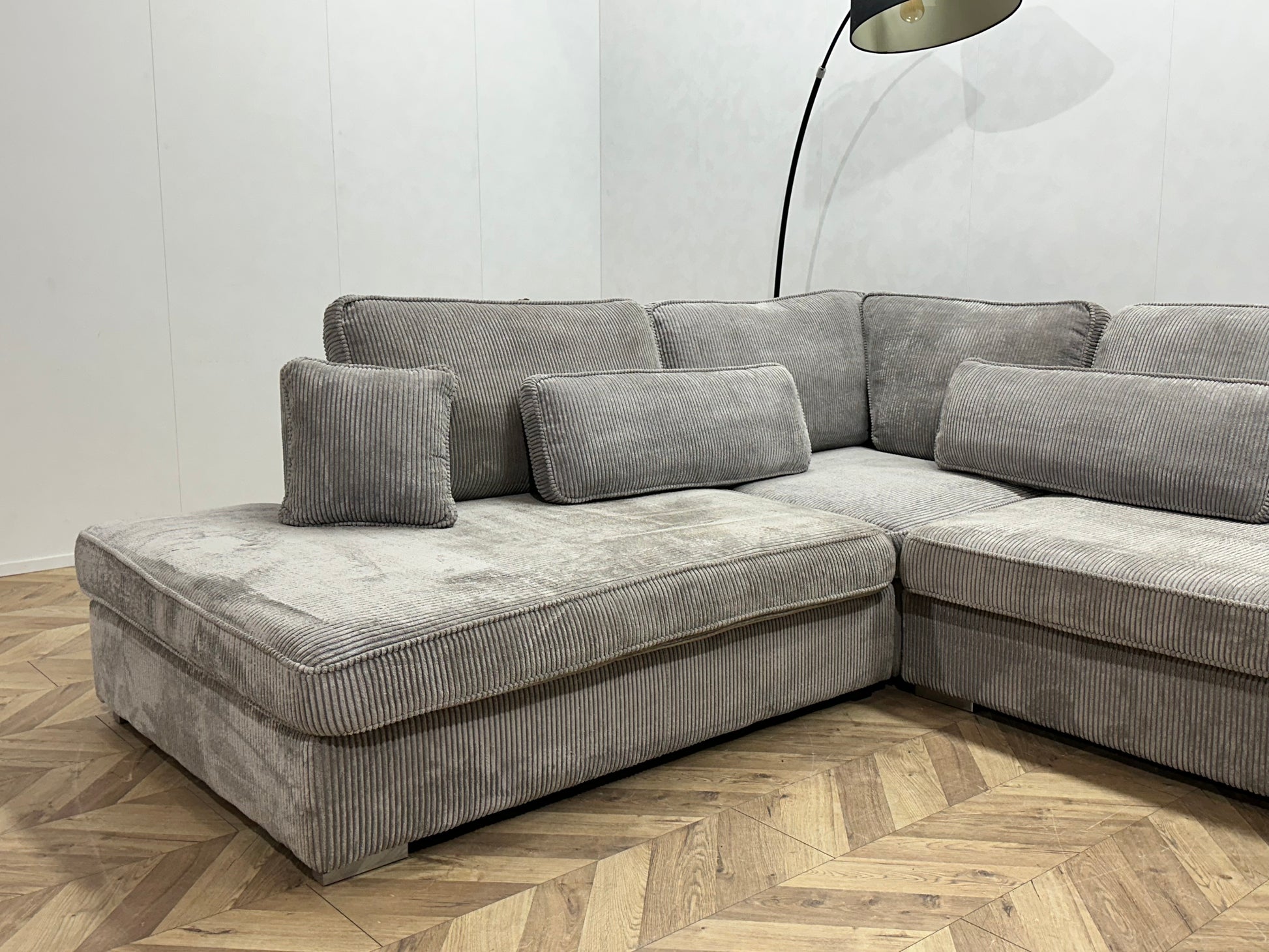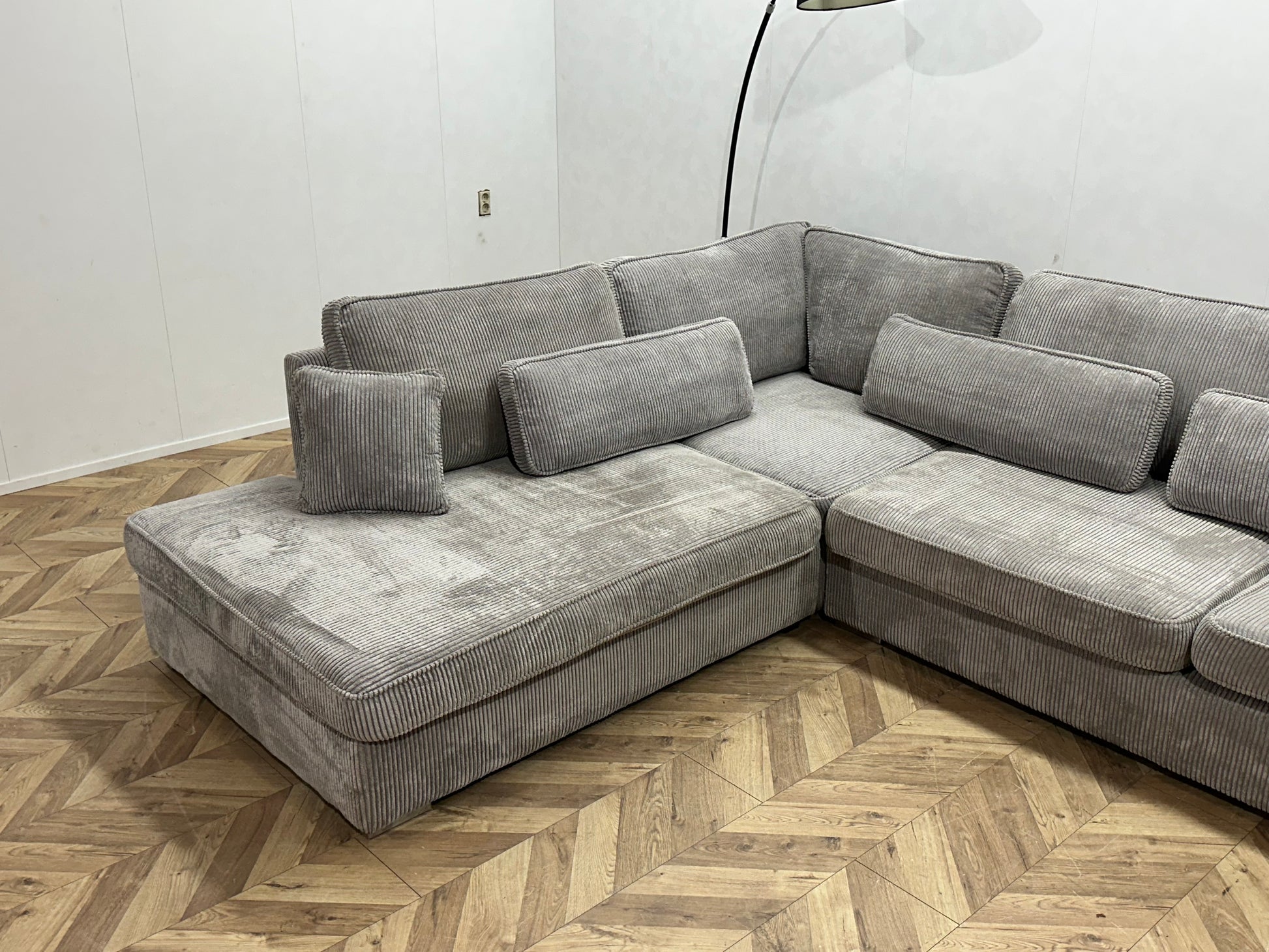 Licht Grijze Ribstof Hoekbank ~ Losse Kussens Met Afneembare Hoezen