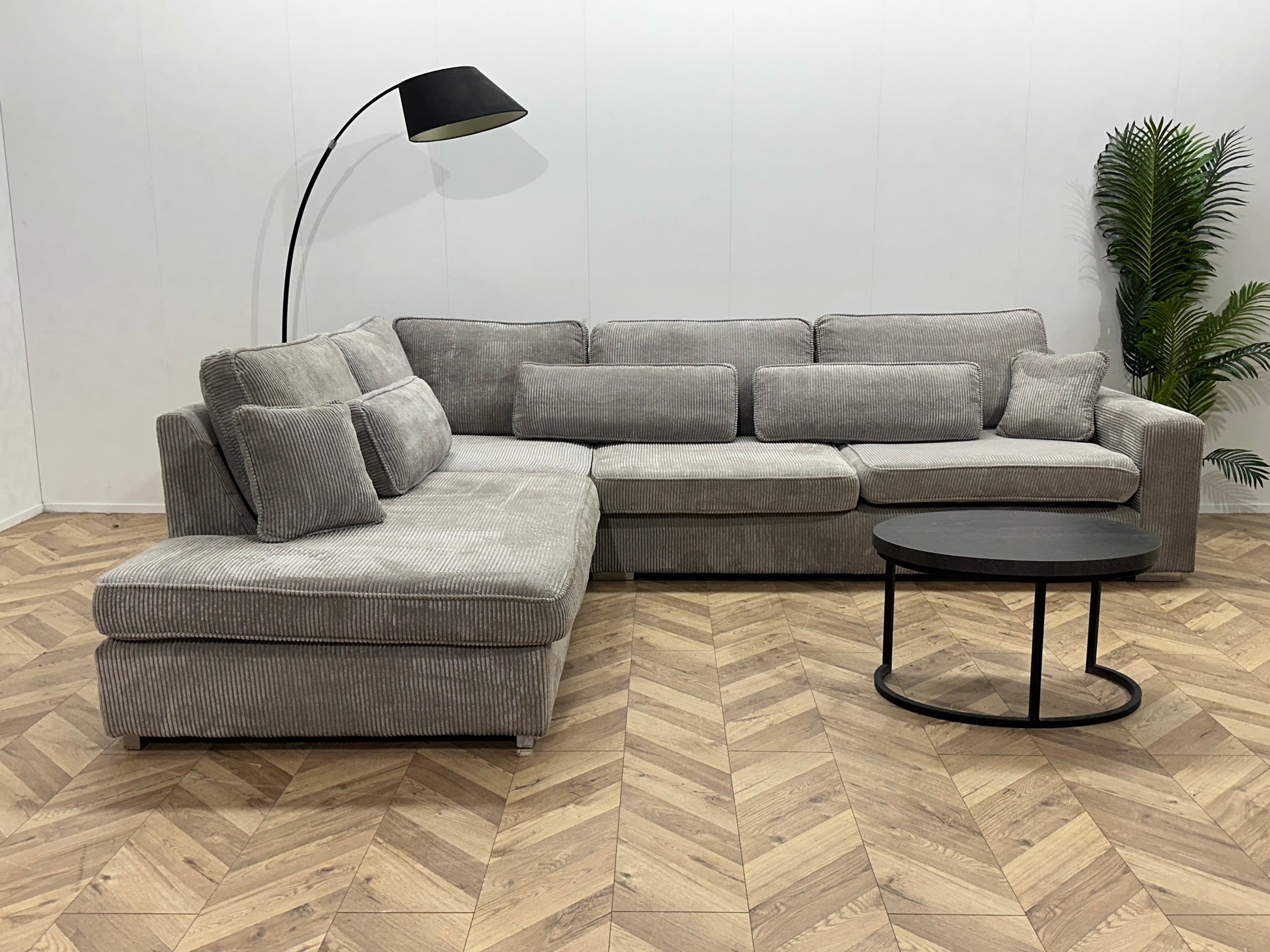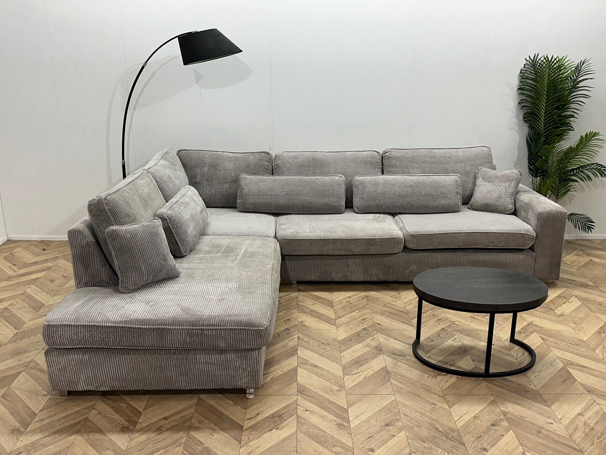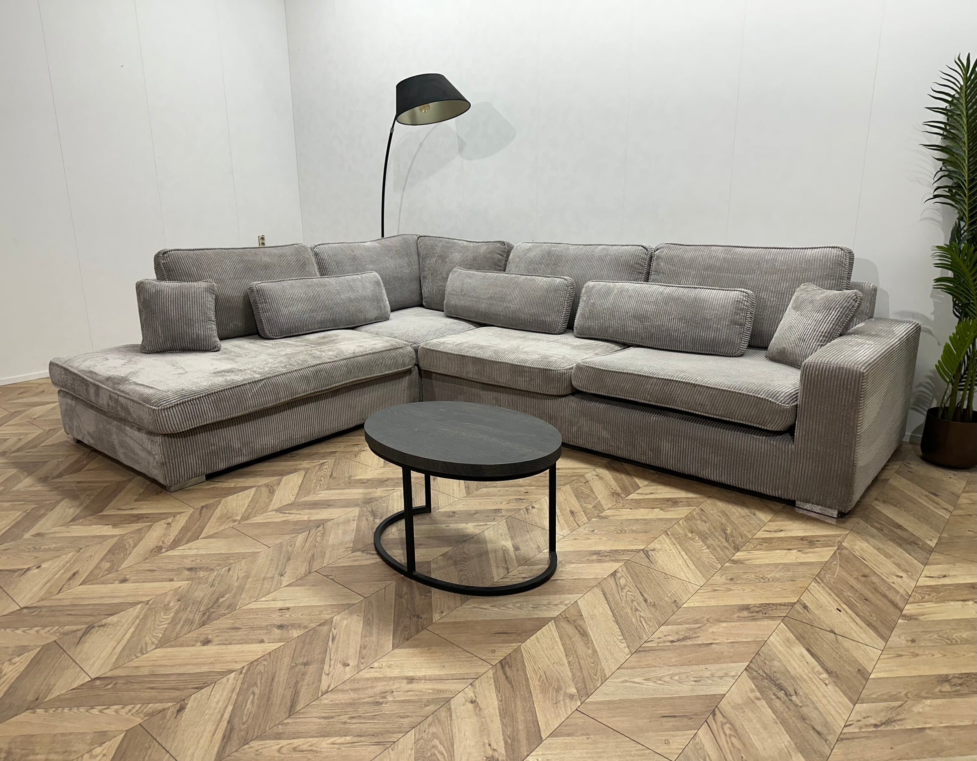 Licht Grijze Ribstof Hoekbank ~ Losse Kussens Met Afneembare Hoezen