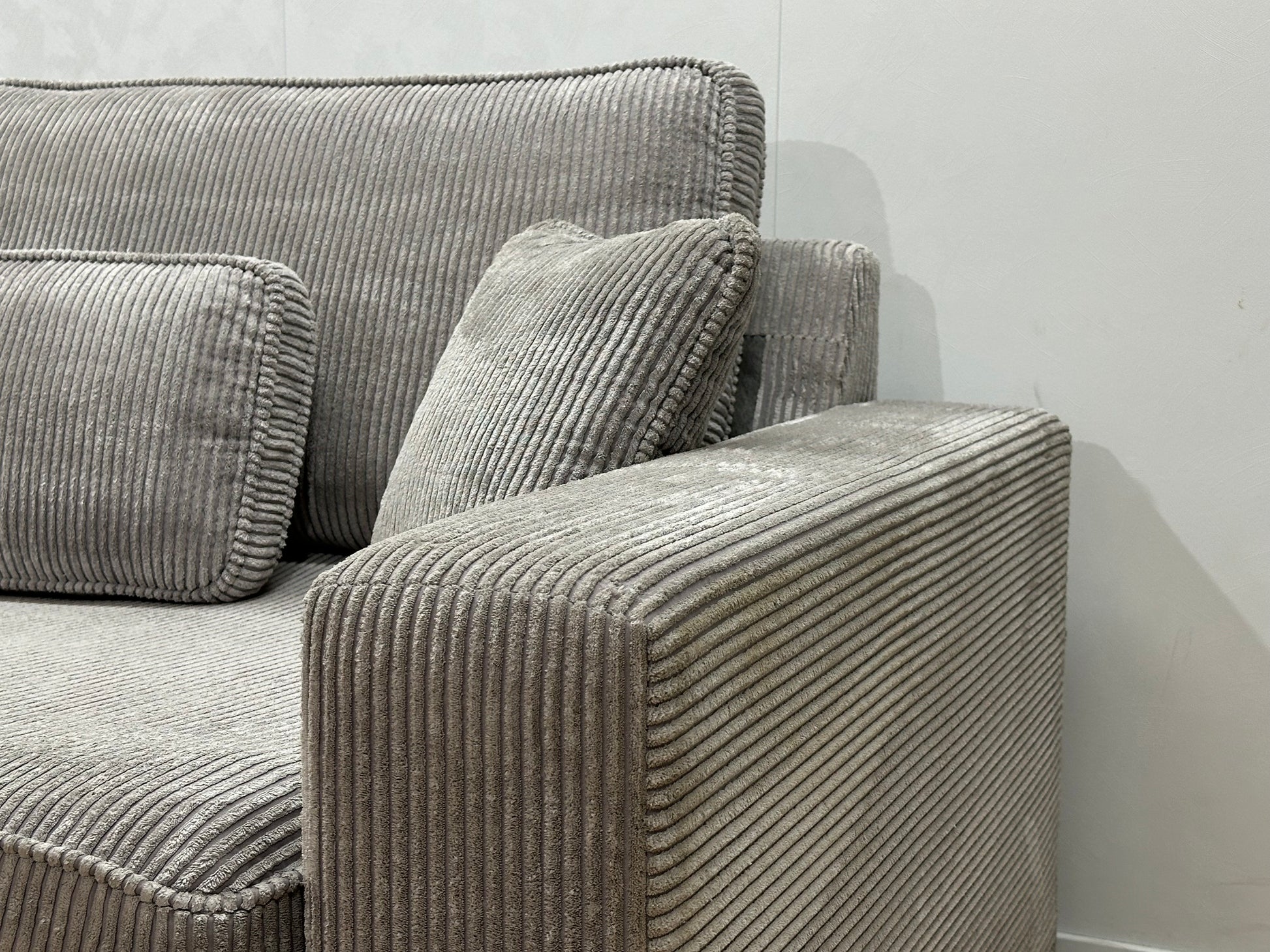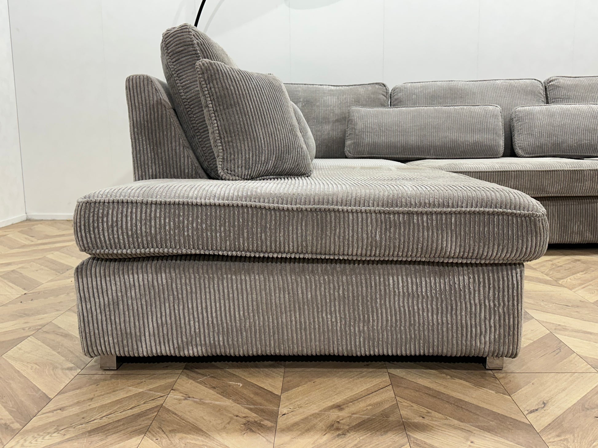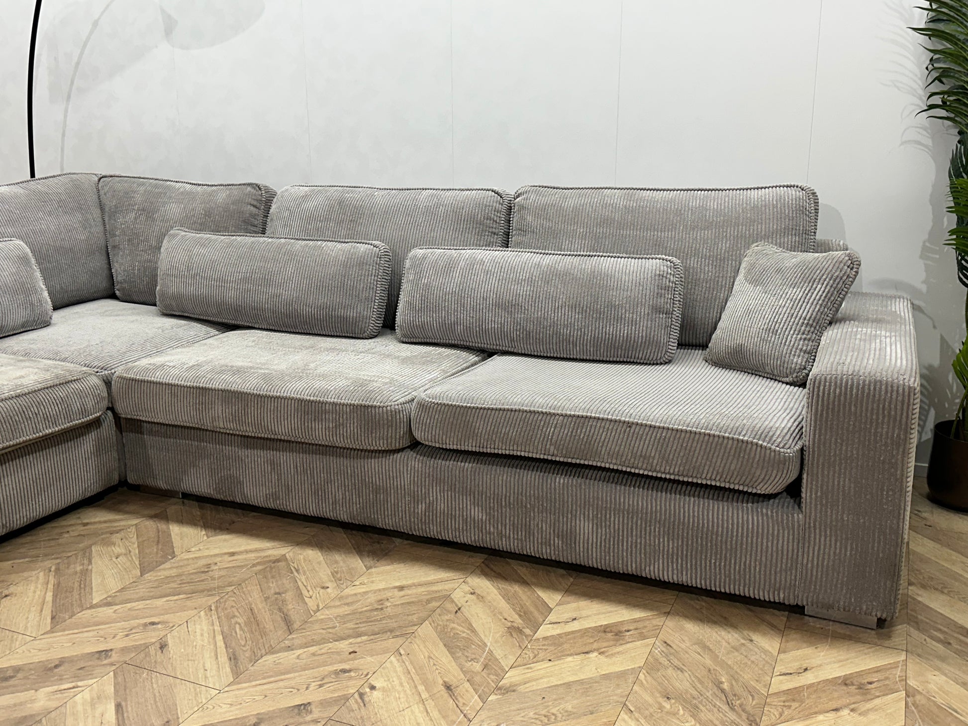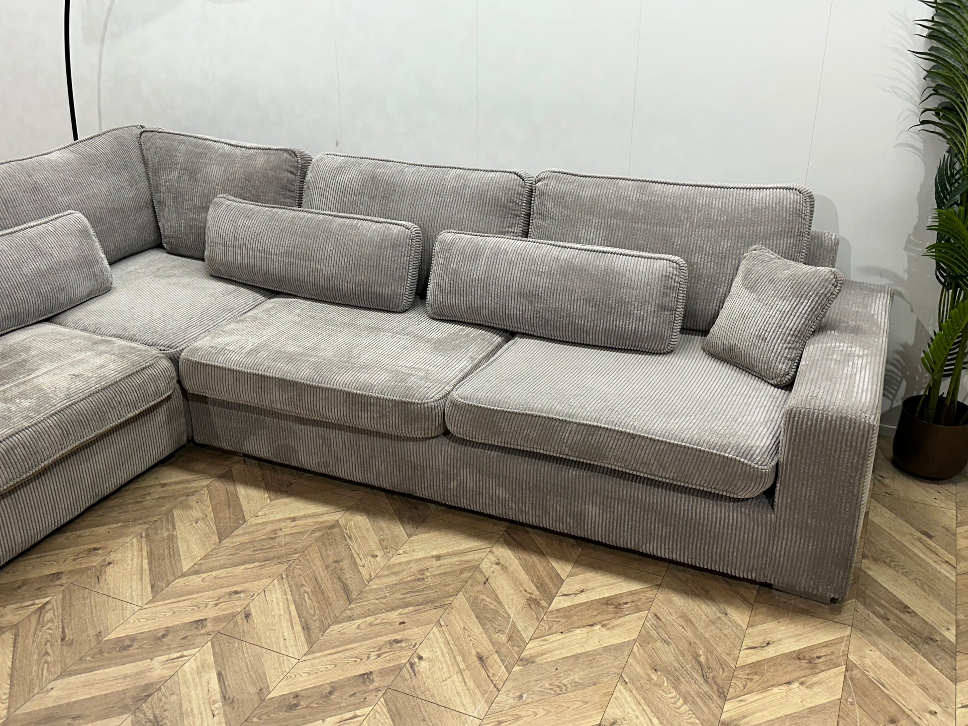 Licht Grijze Ribstof Hoekbank ~ Losse Kussens Met Afneembare Hoezen