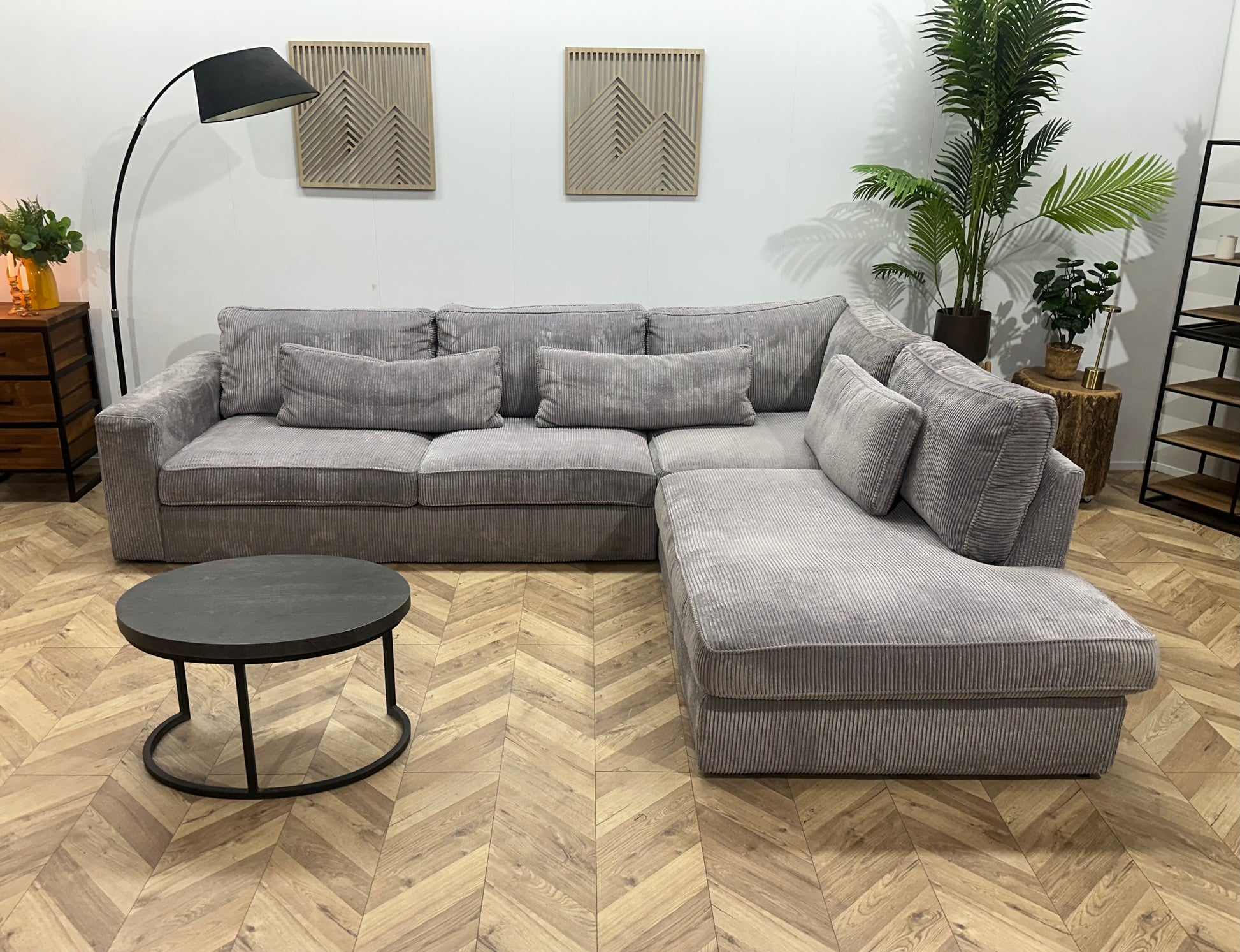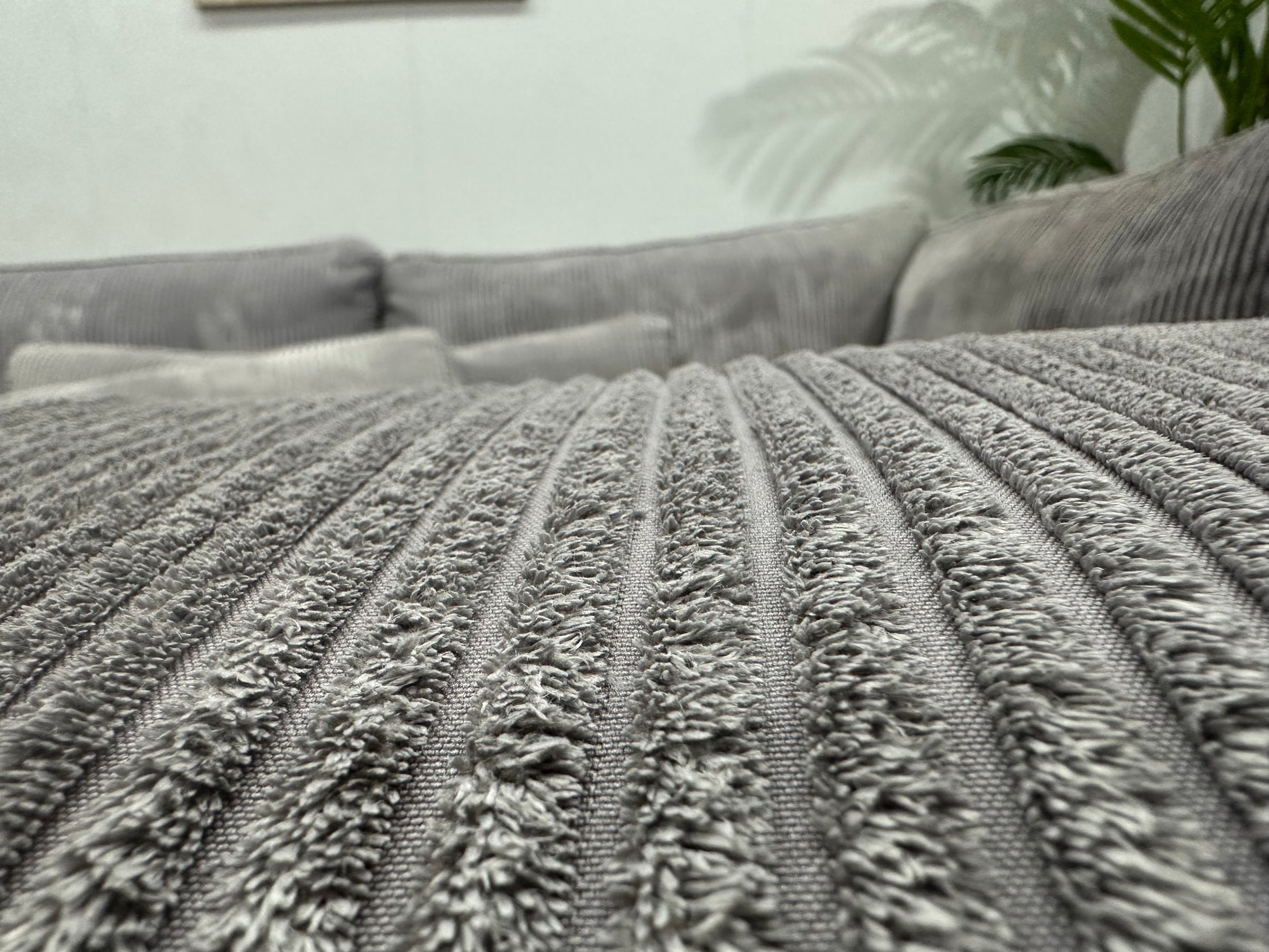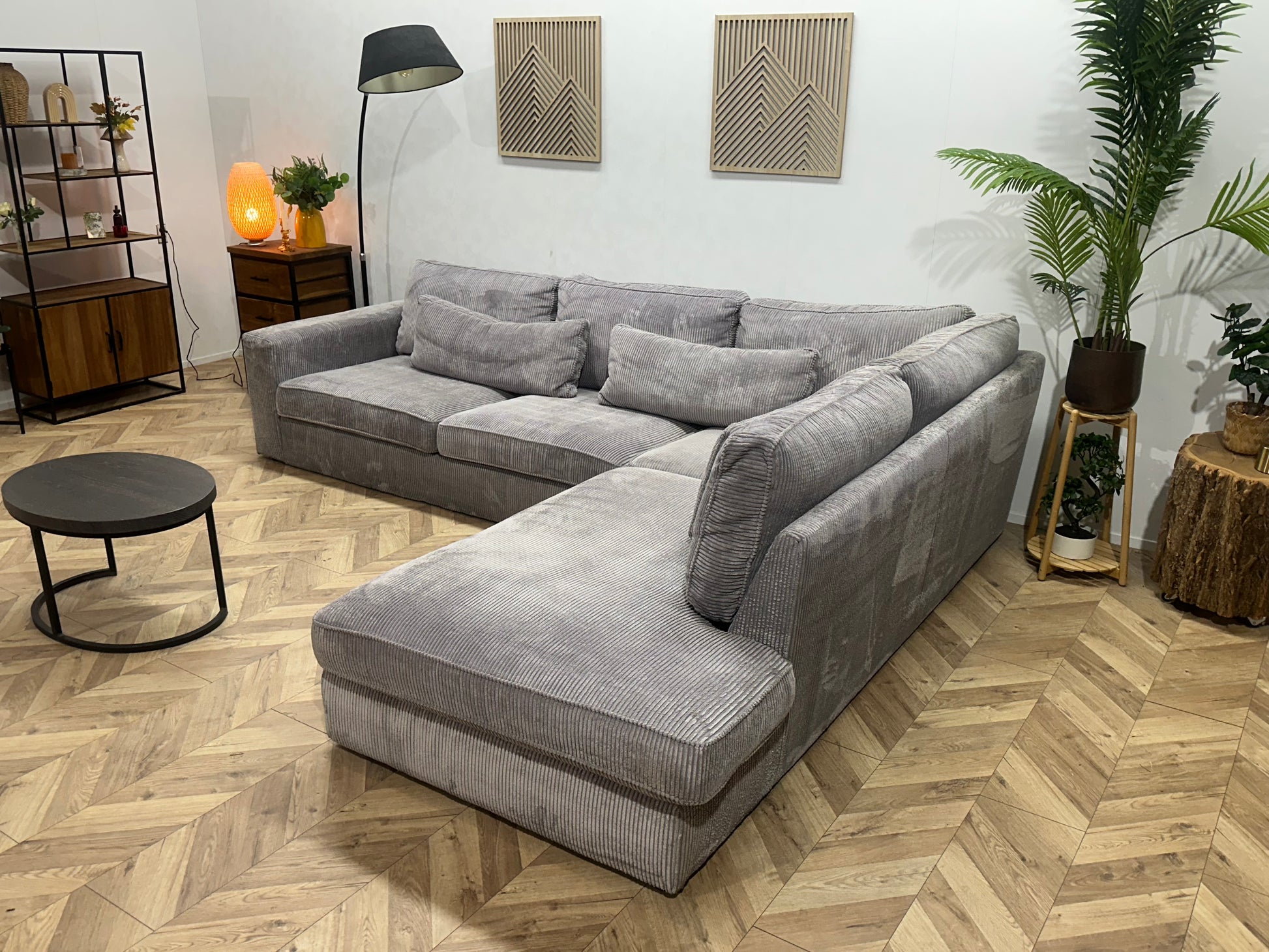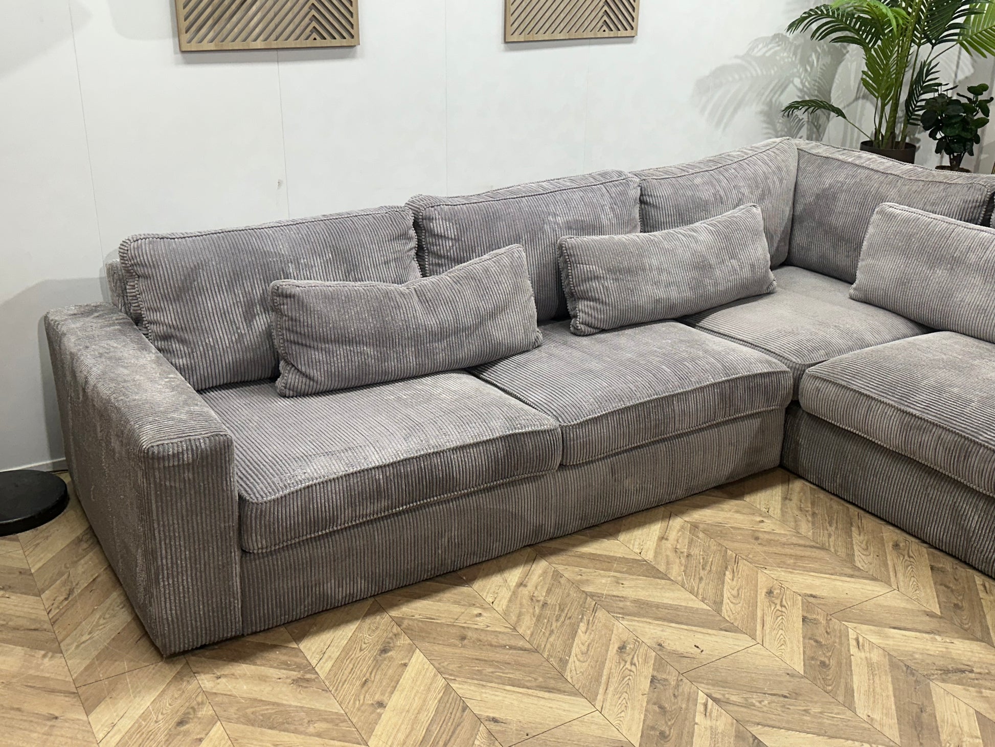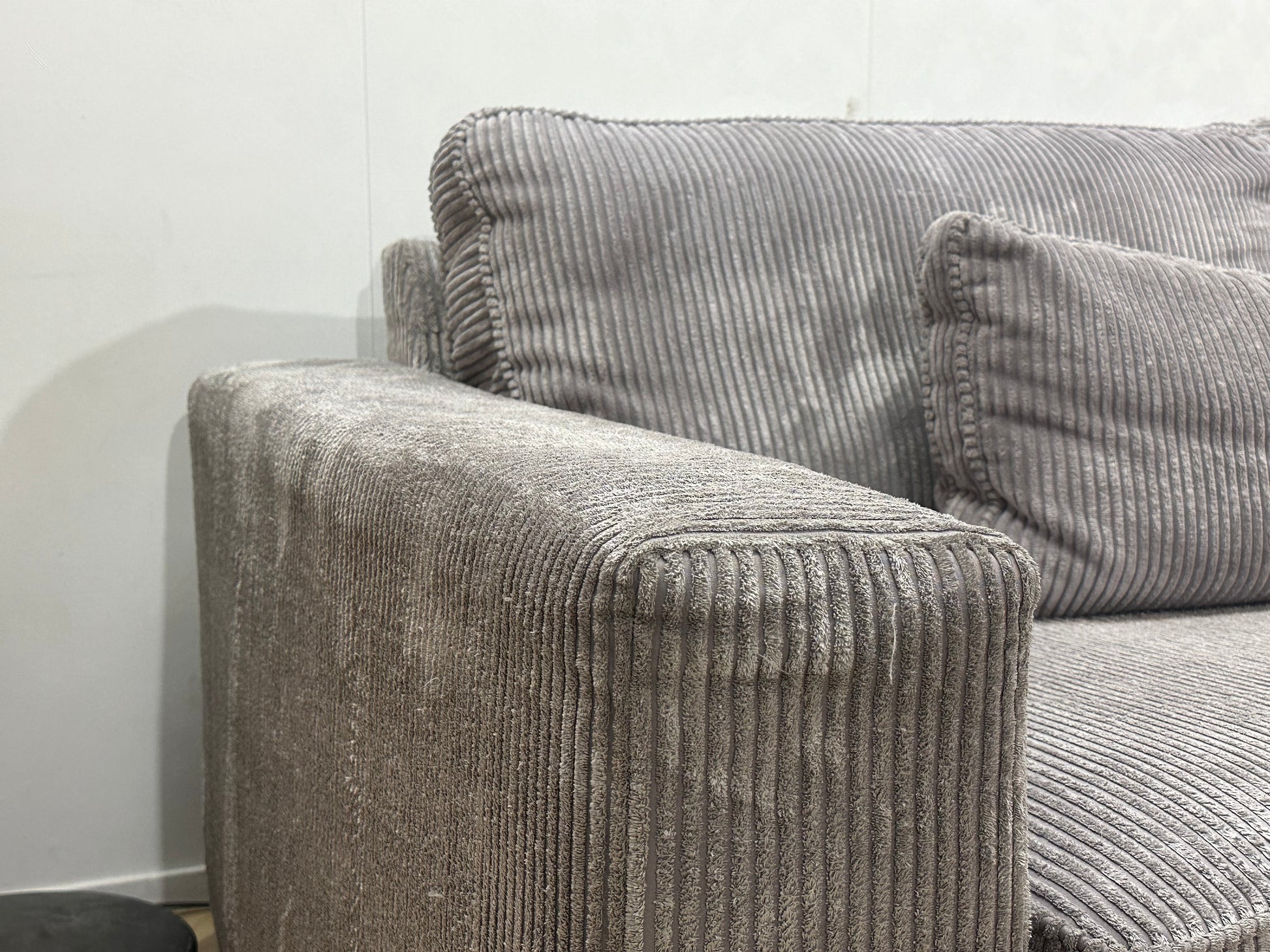 Licht Grijze Ribstof Hoekbank ~ Losse Kussens Met Afneembare Hoezen