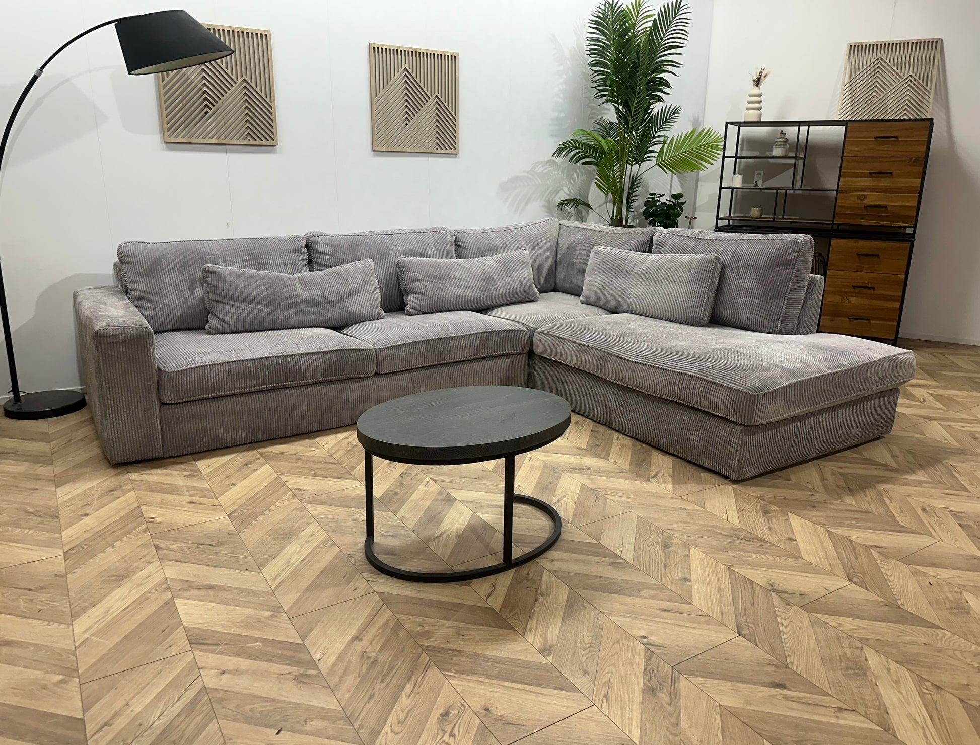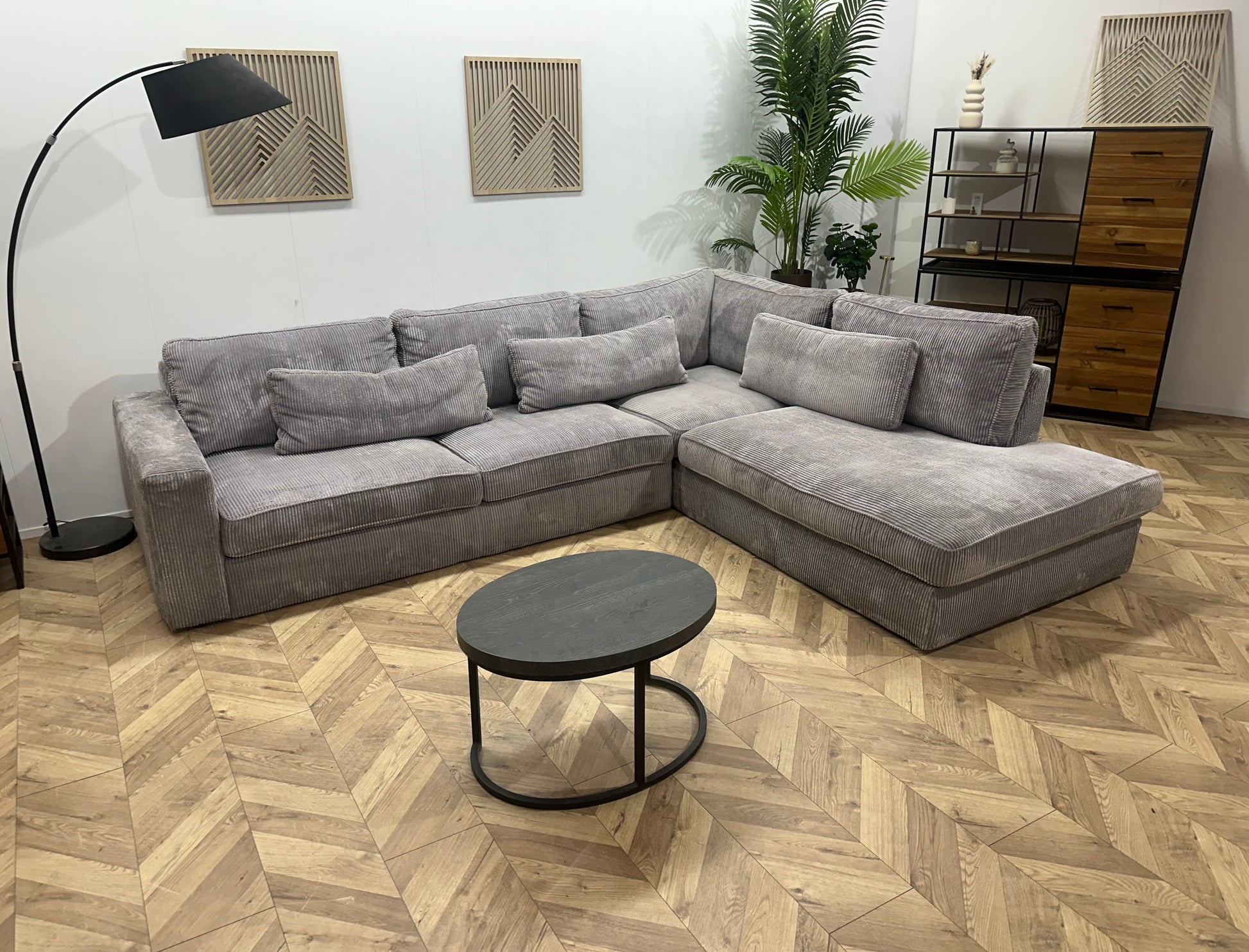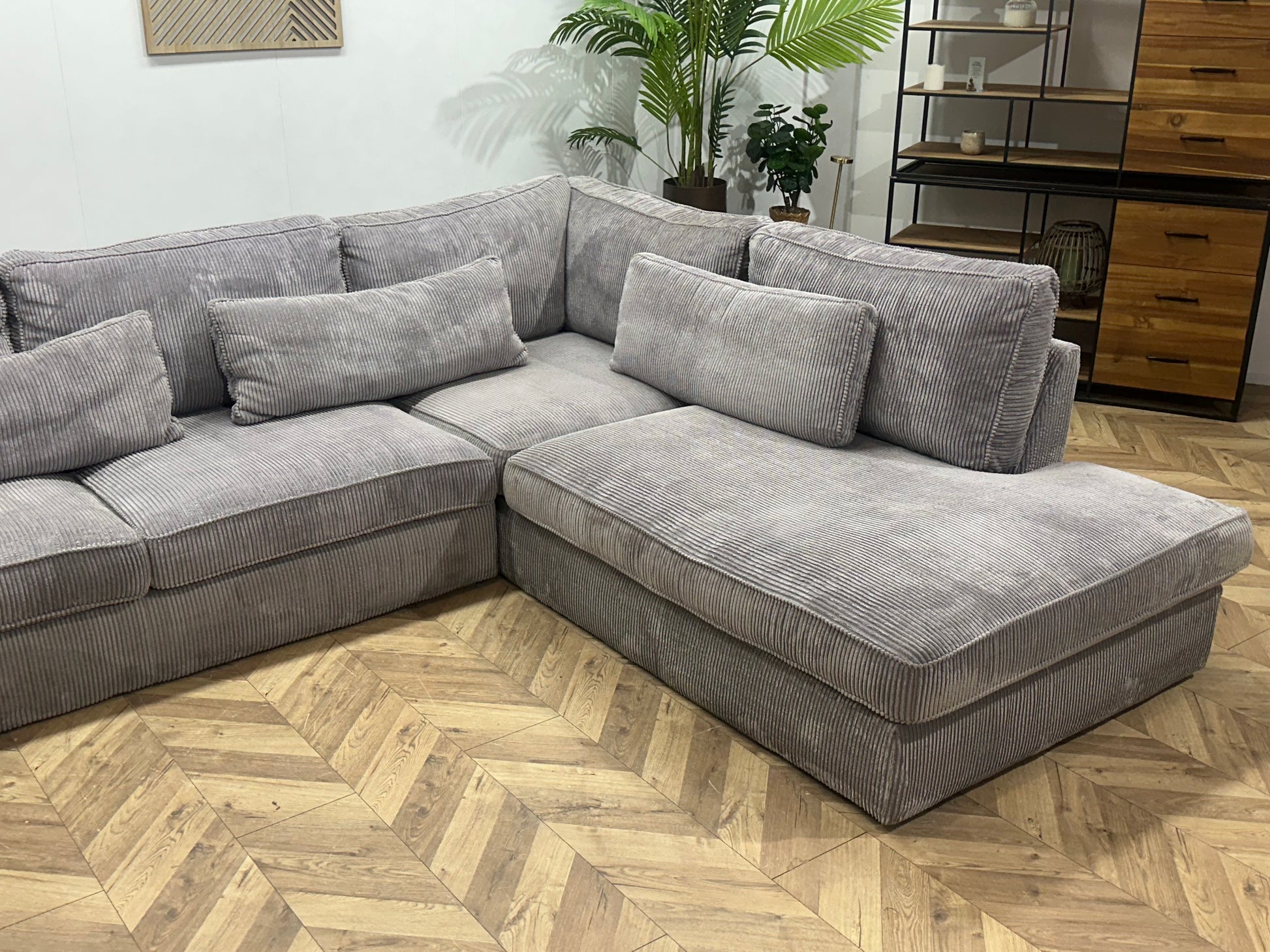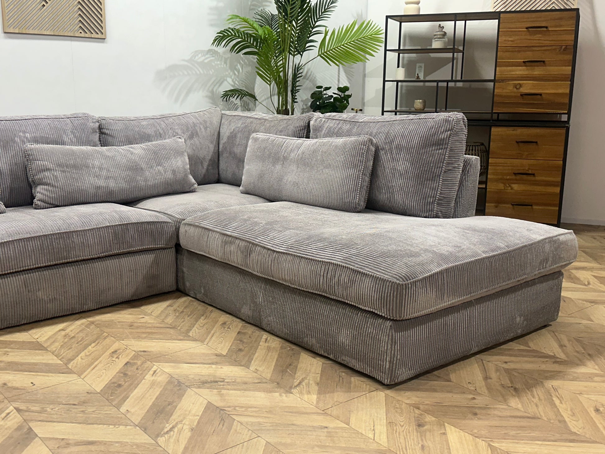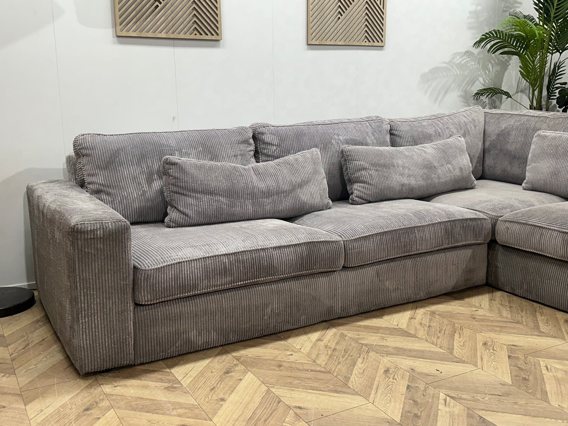 Licht Grijze Ribstof Hoekbank ~ Losse Kussens Met Afneembare Hoezen