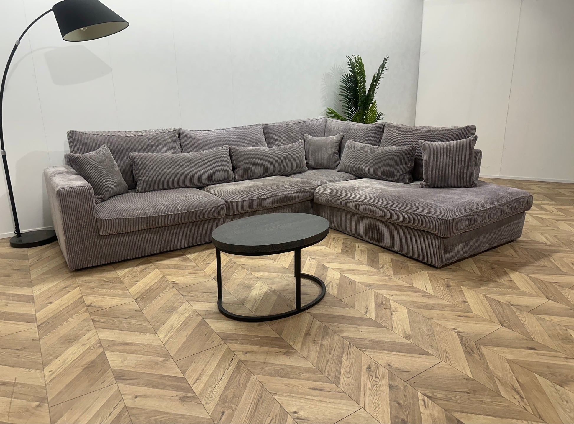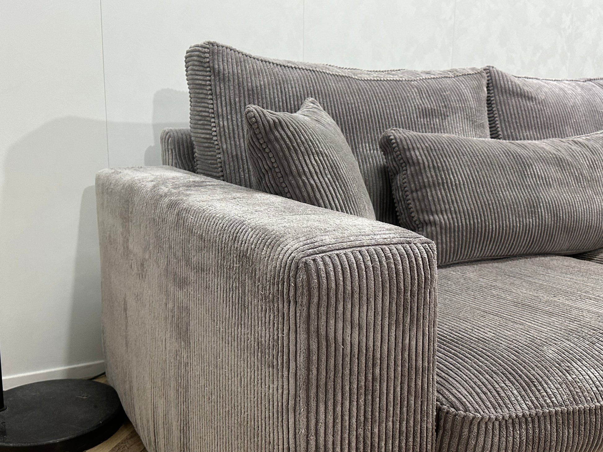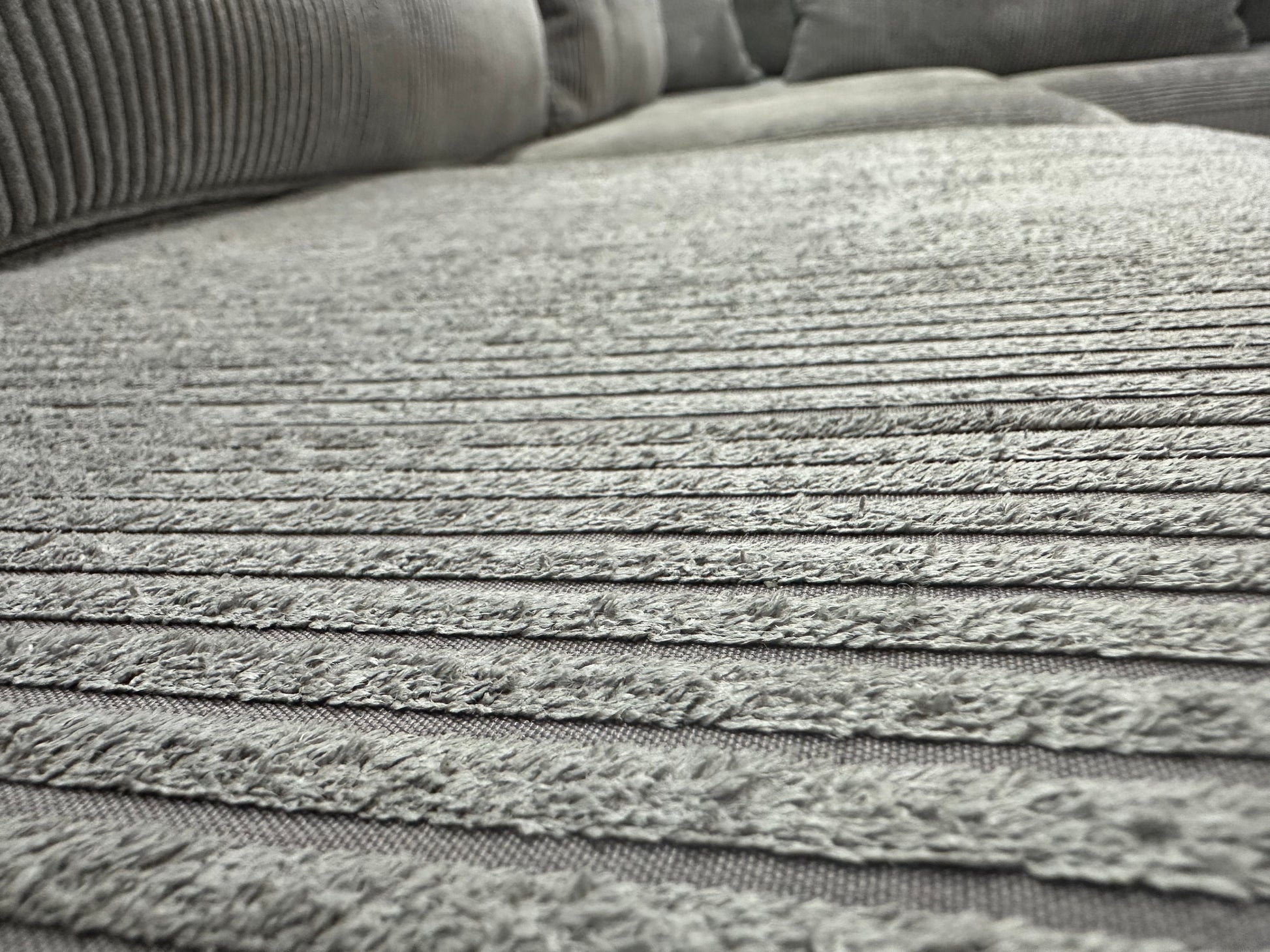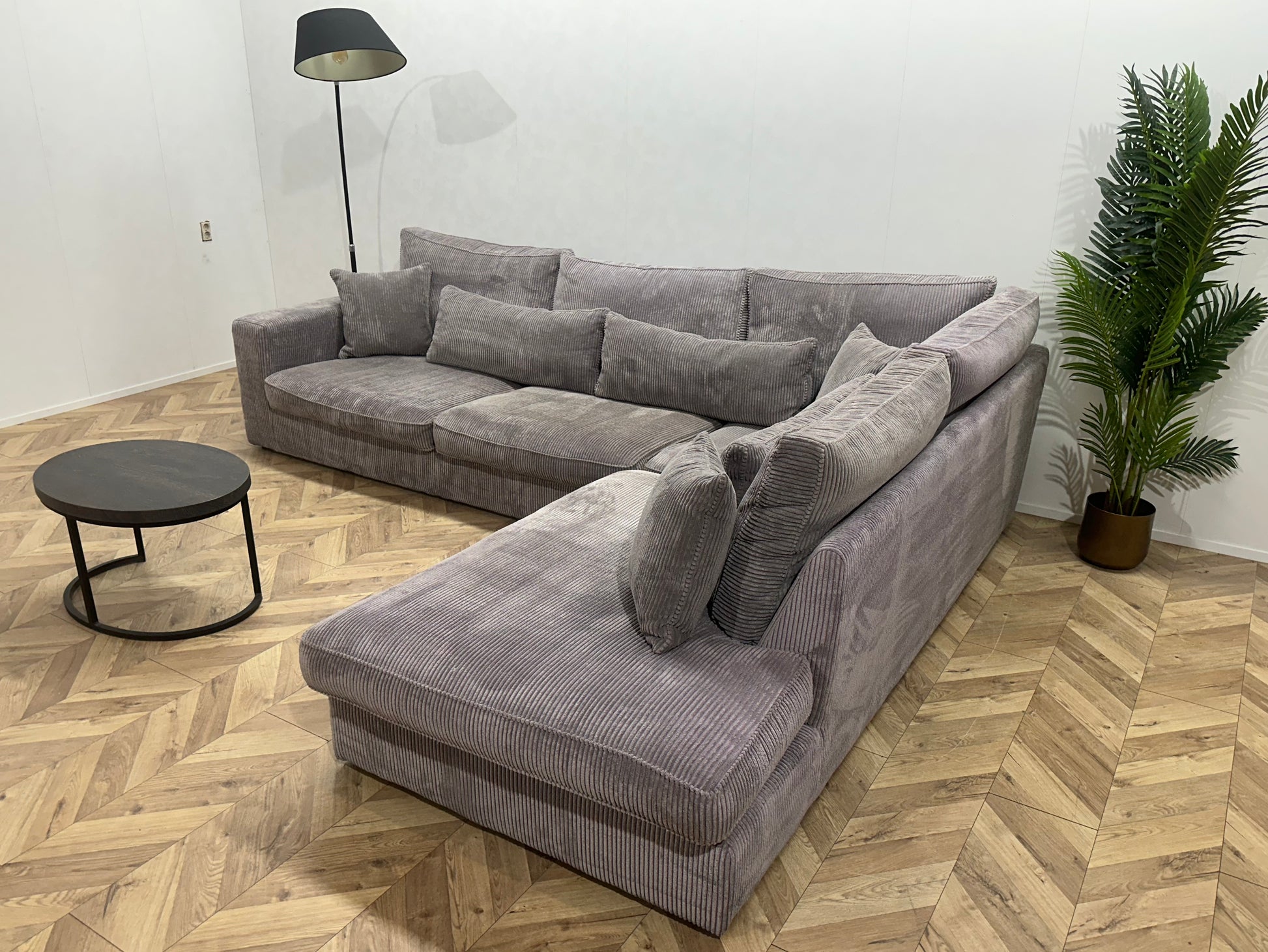 Licht Grijze Ribstof Hoekbank ~ Losse Kussens Met Afneembare Hoezen