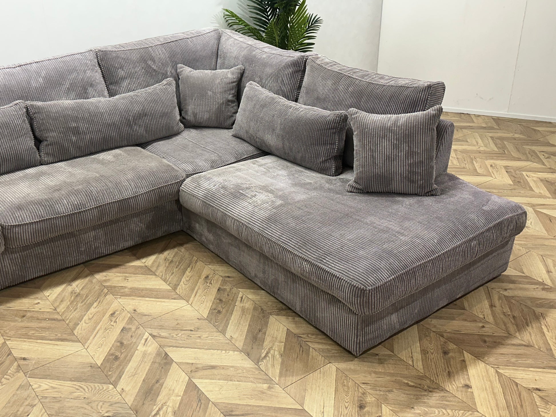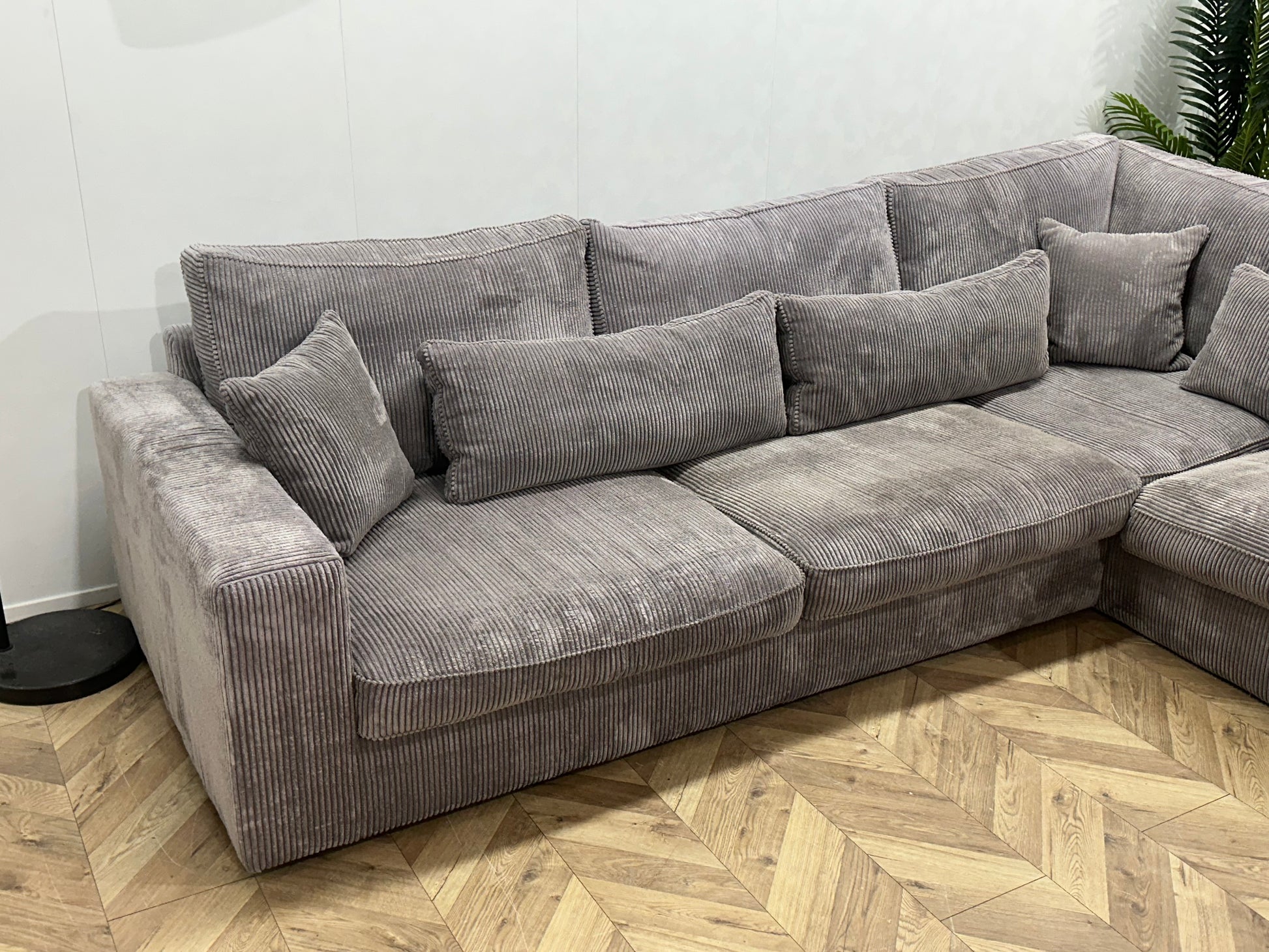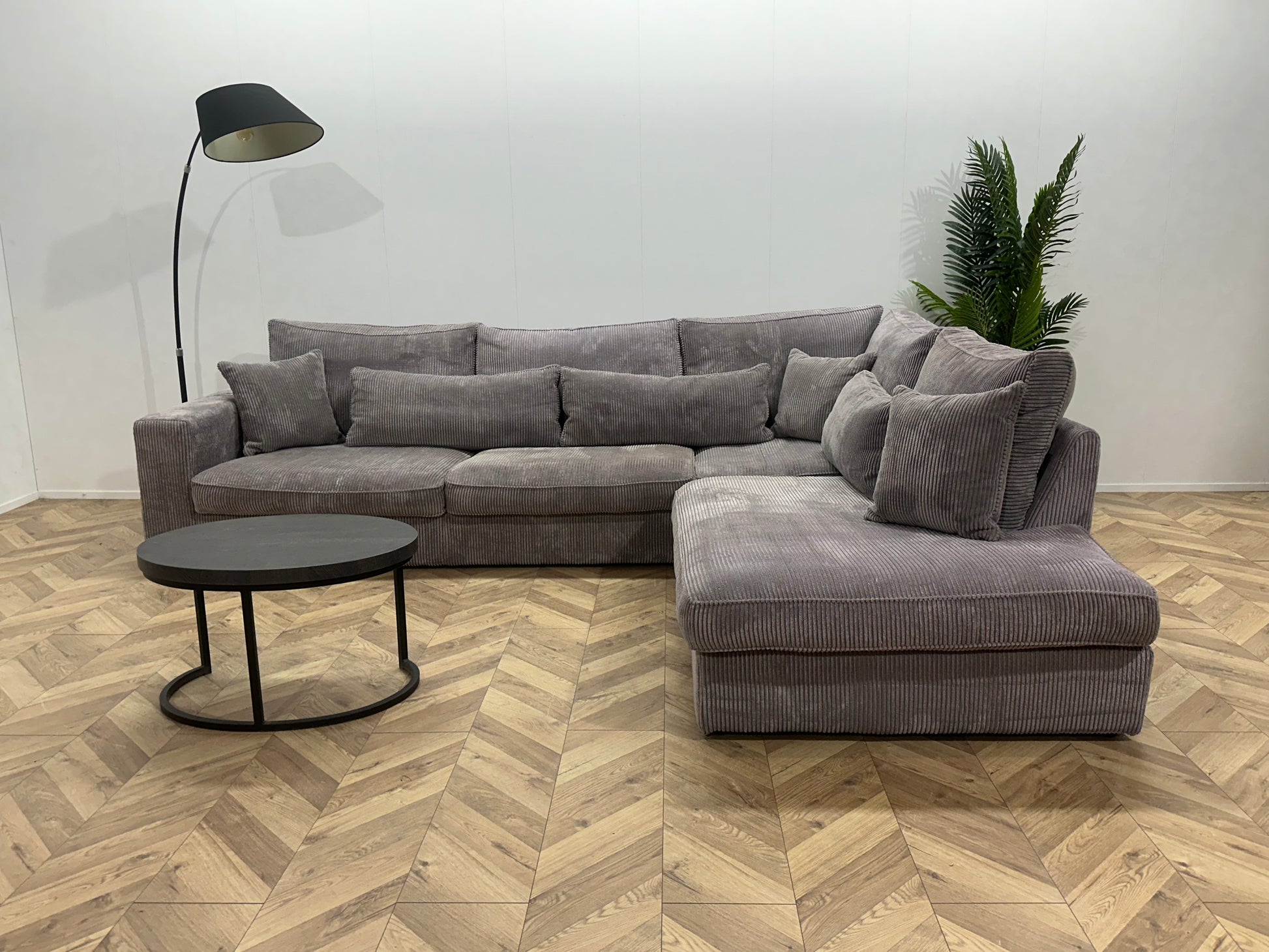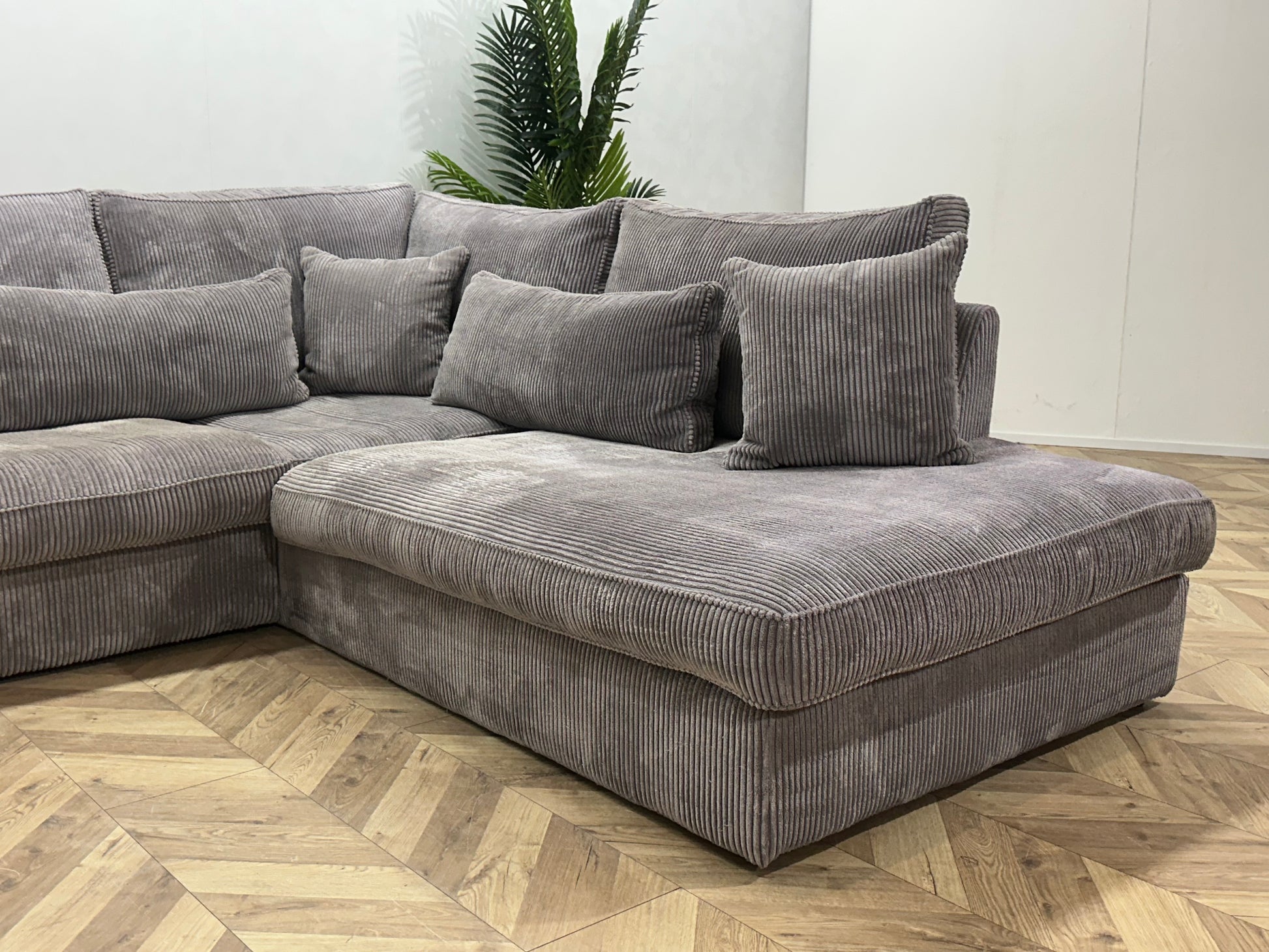 Licht Grijze Ribstof Hoekbank ~ Losse Kussens Met Afneembare Hoezen